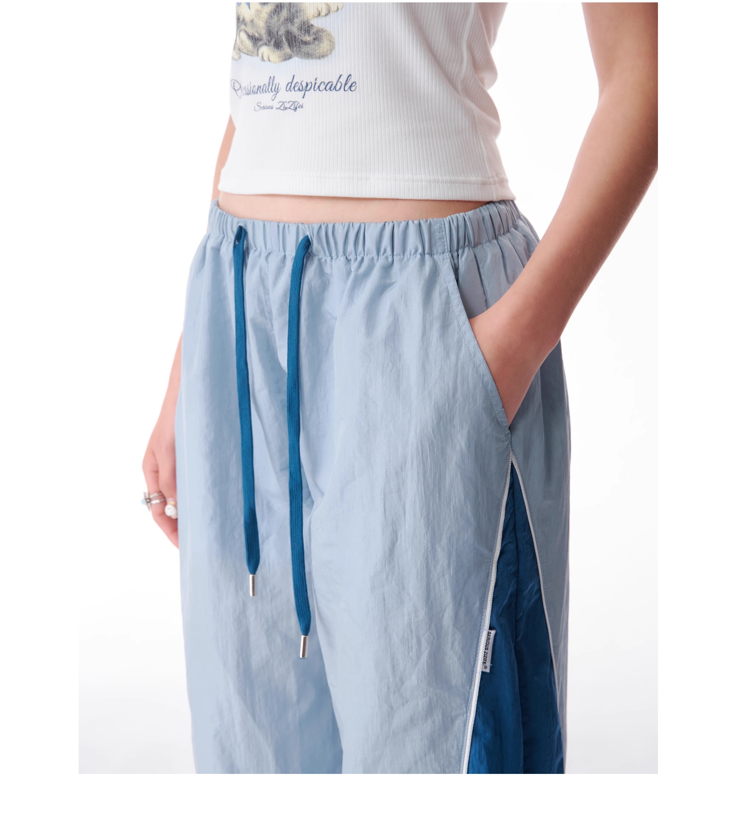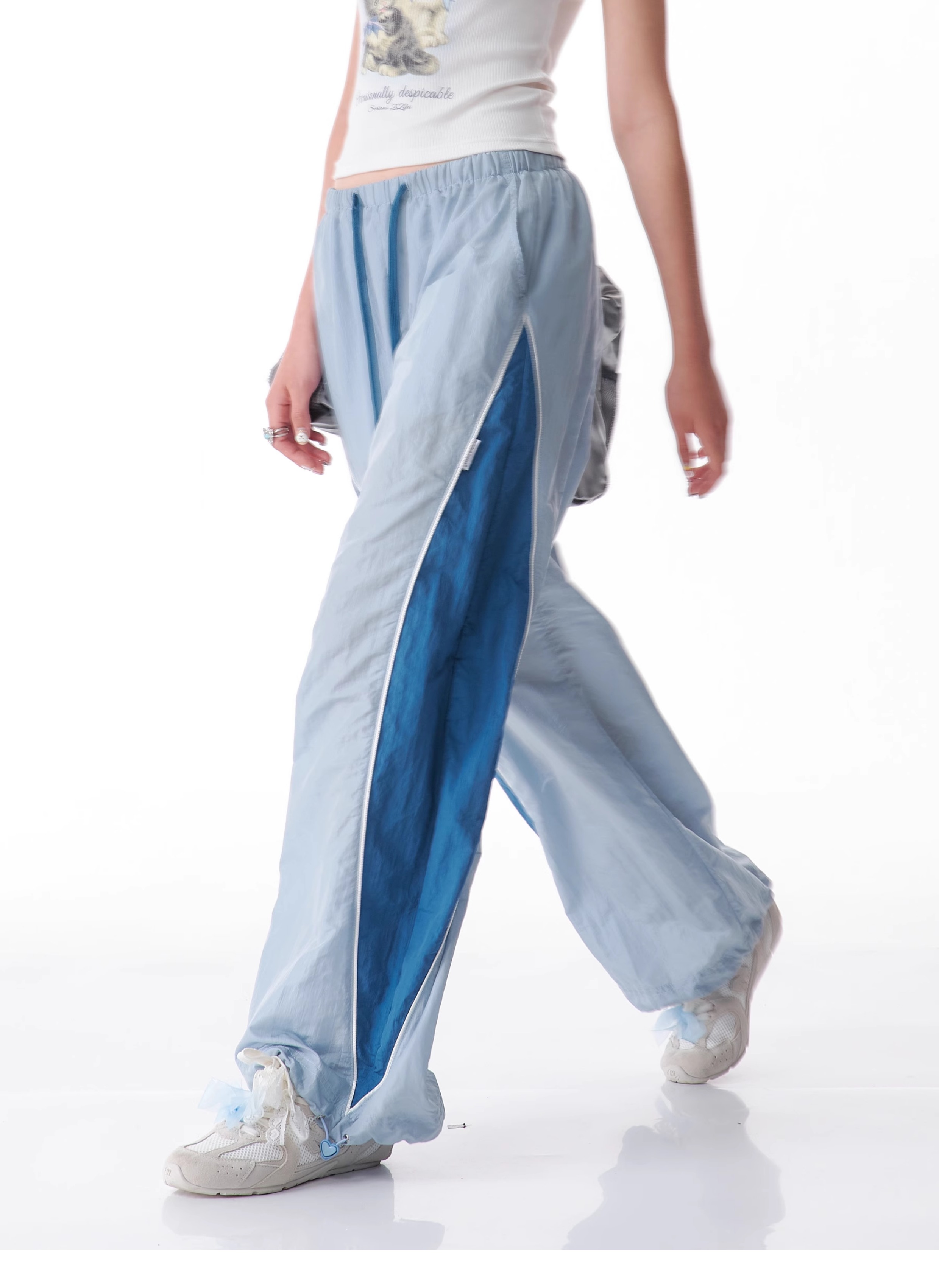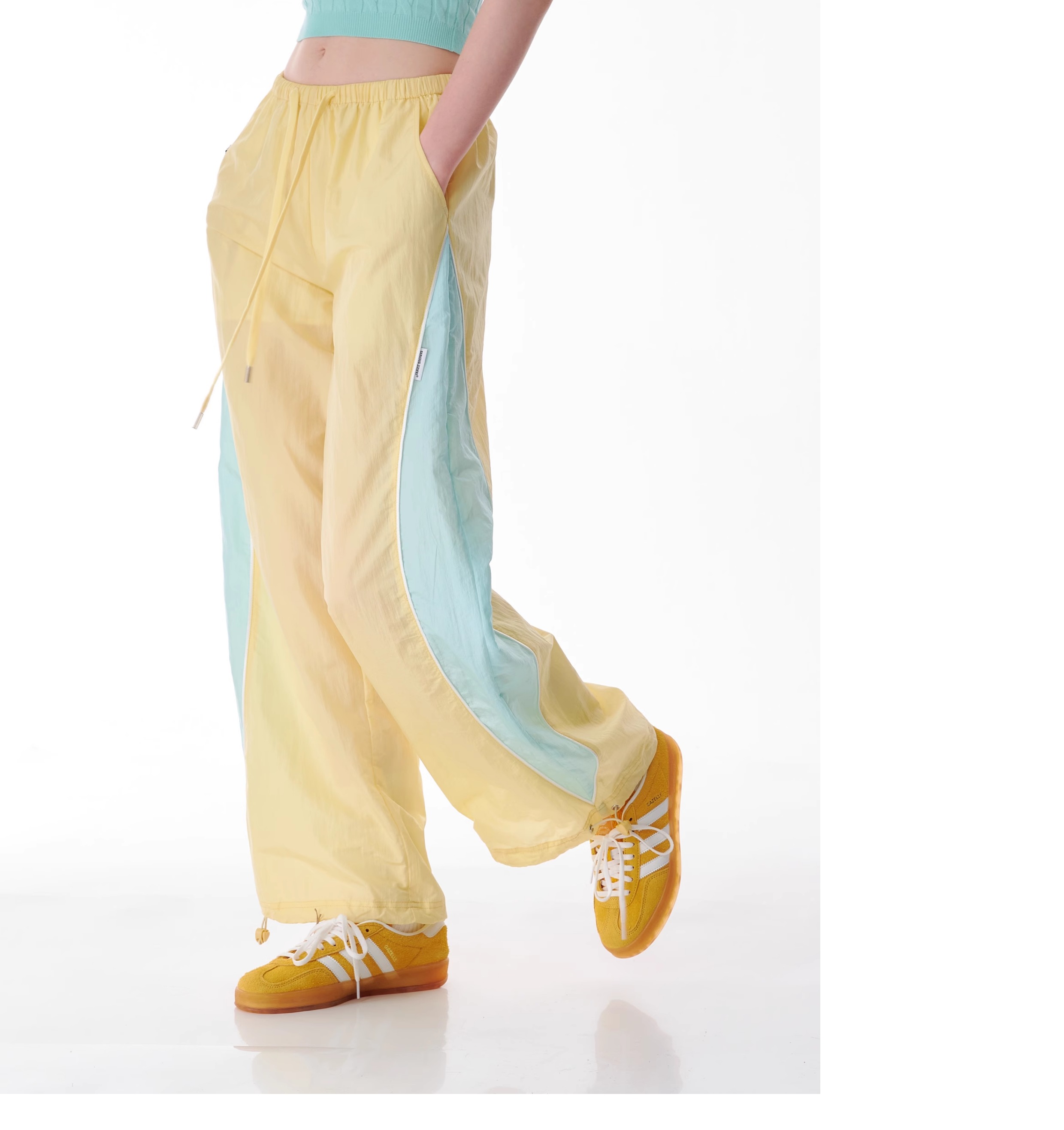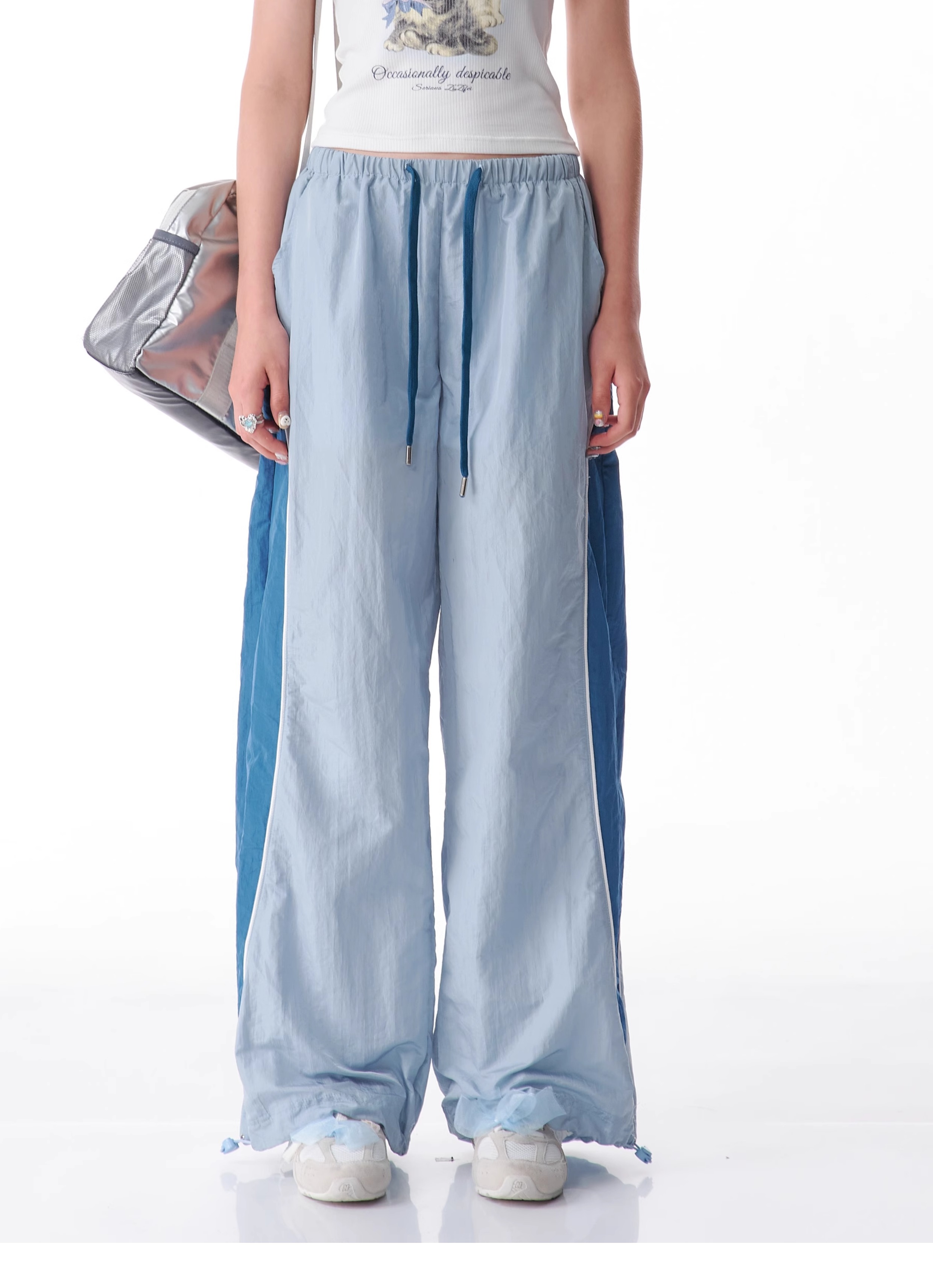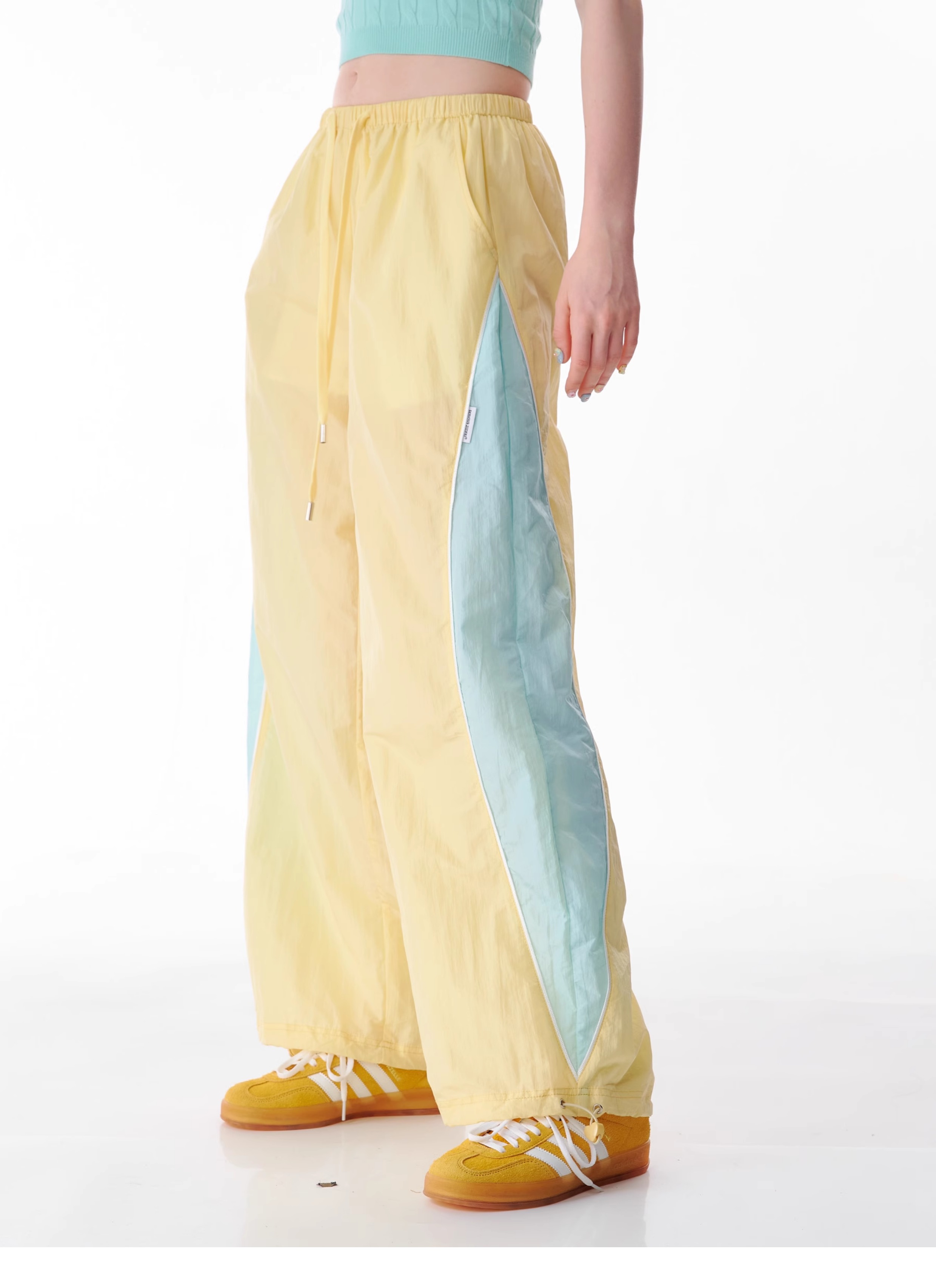 Pantalon de sport à jambes larges contrastées, coupe ajustée, style rétro américain à séchage rapide
