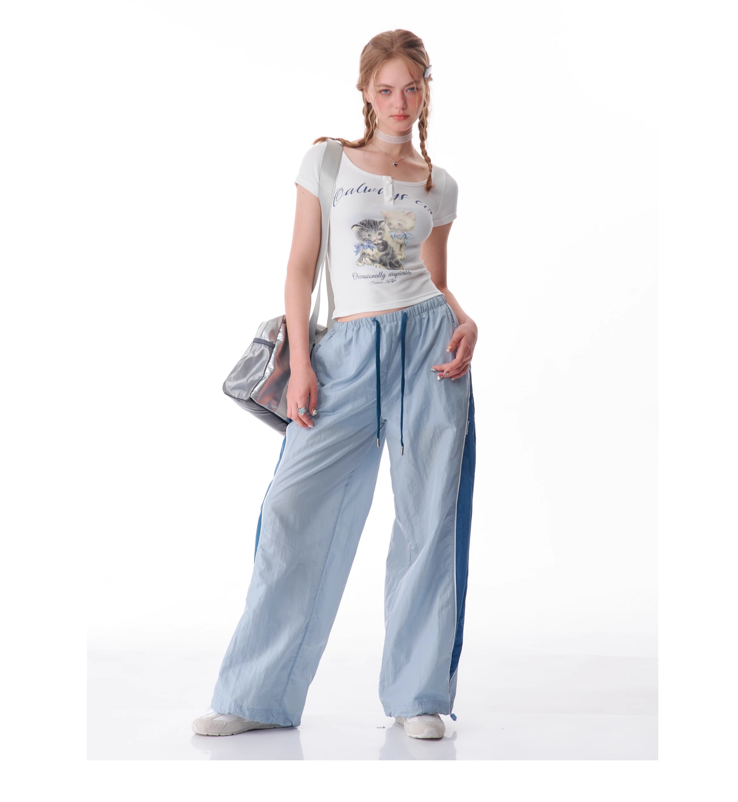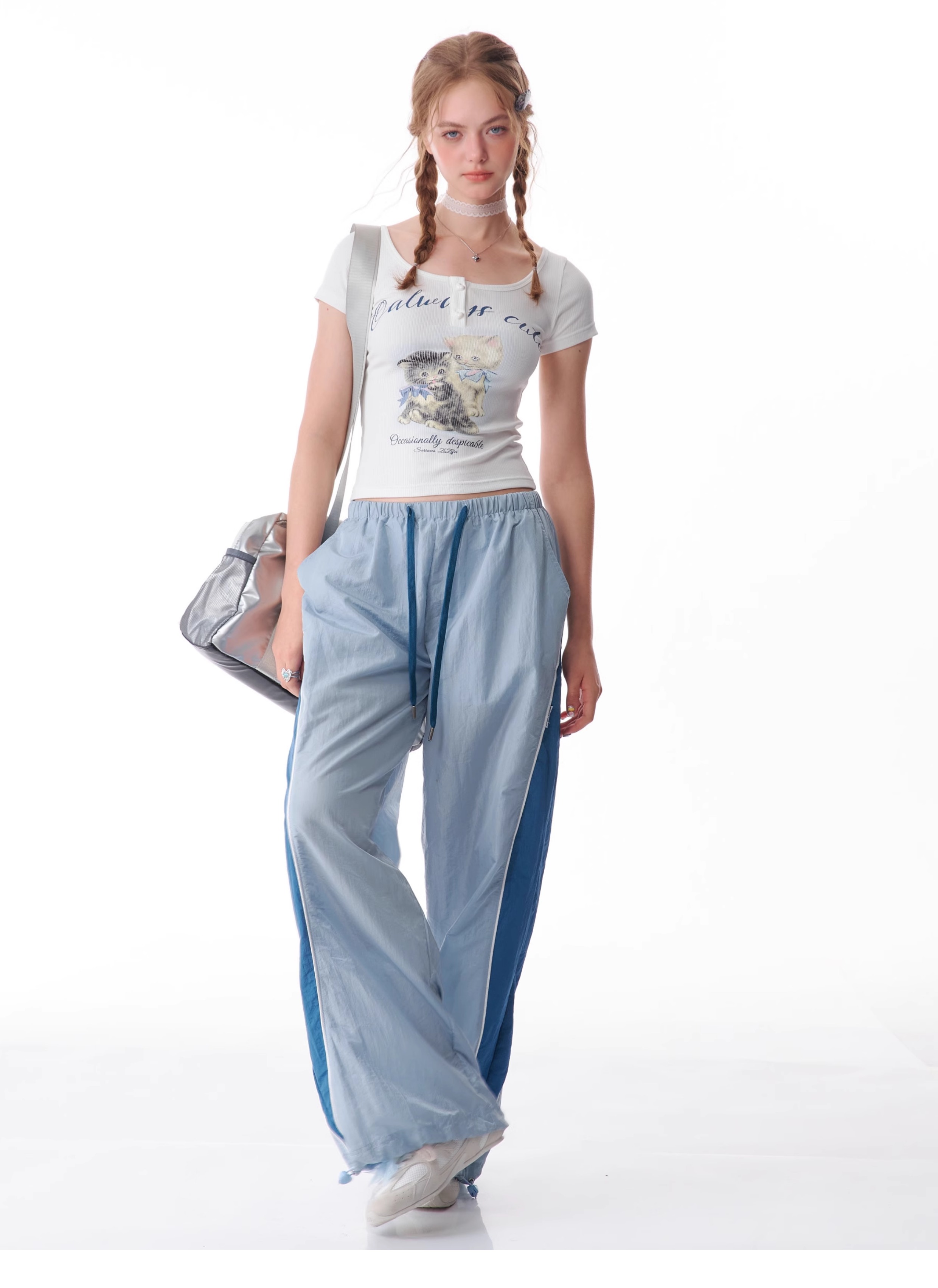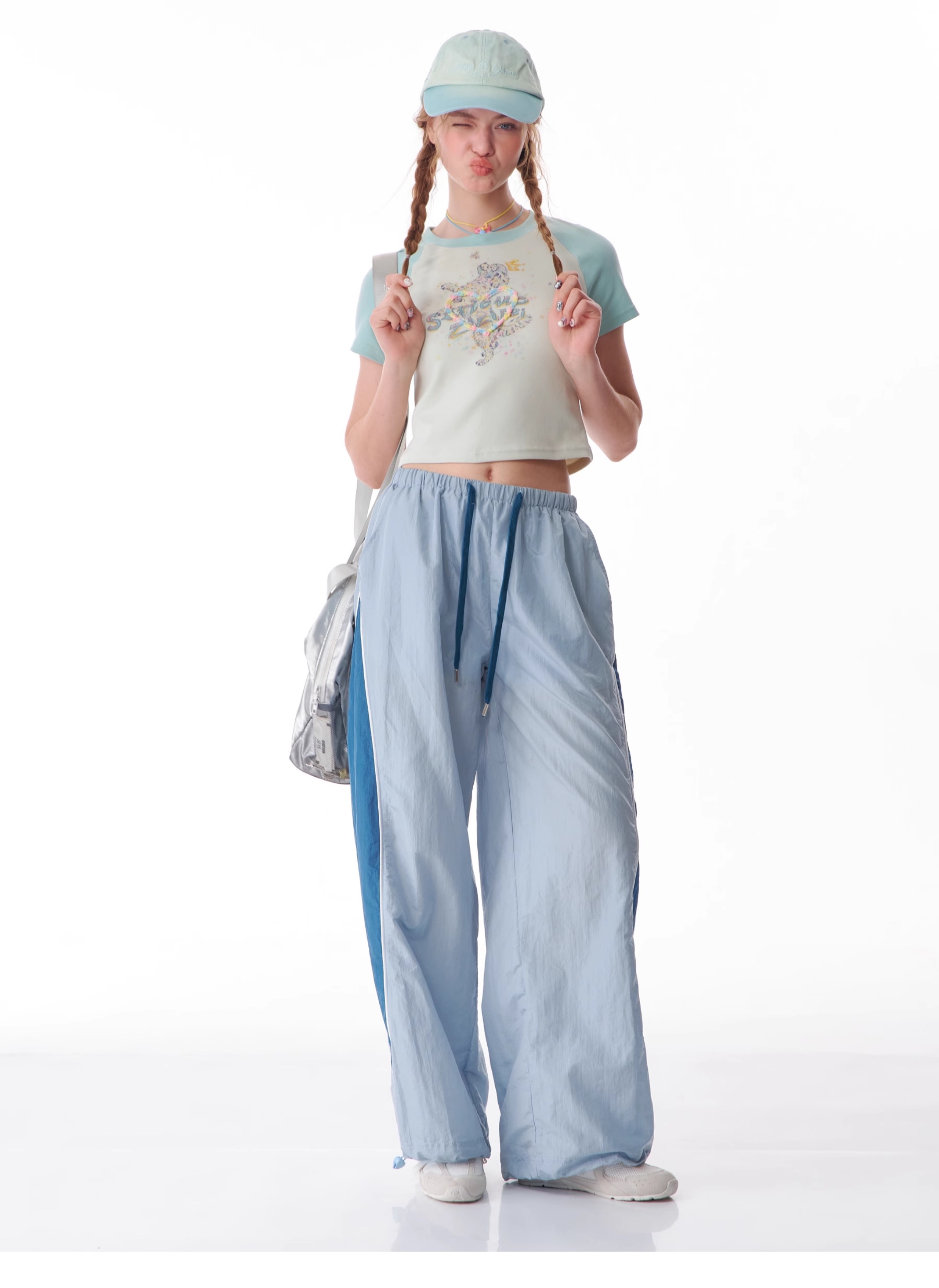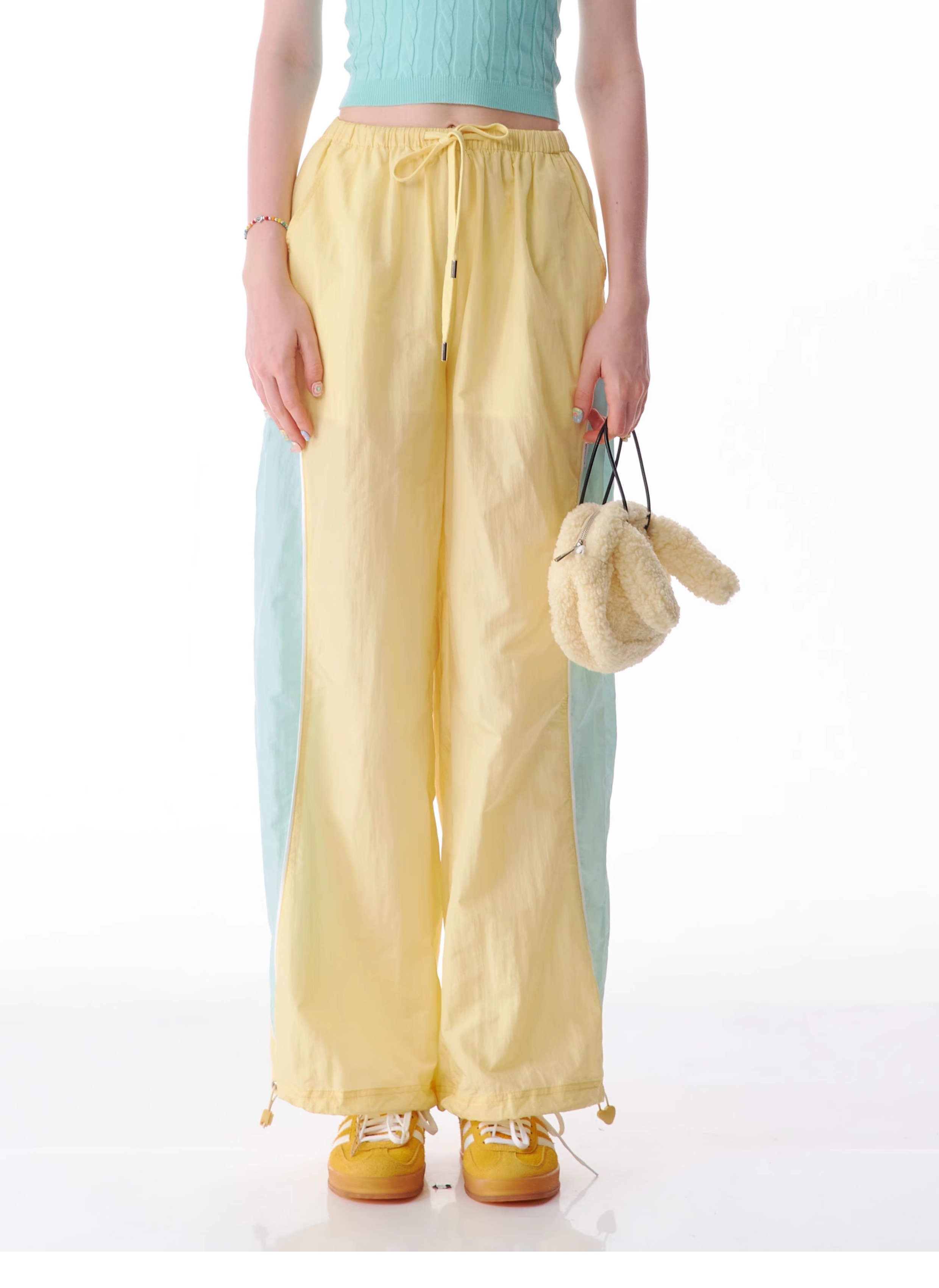 Pantalon de sport à jambes larges contrastées, coupe ajustée, style rétro américain à séchage rapide