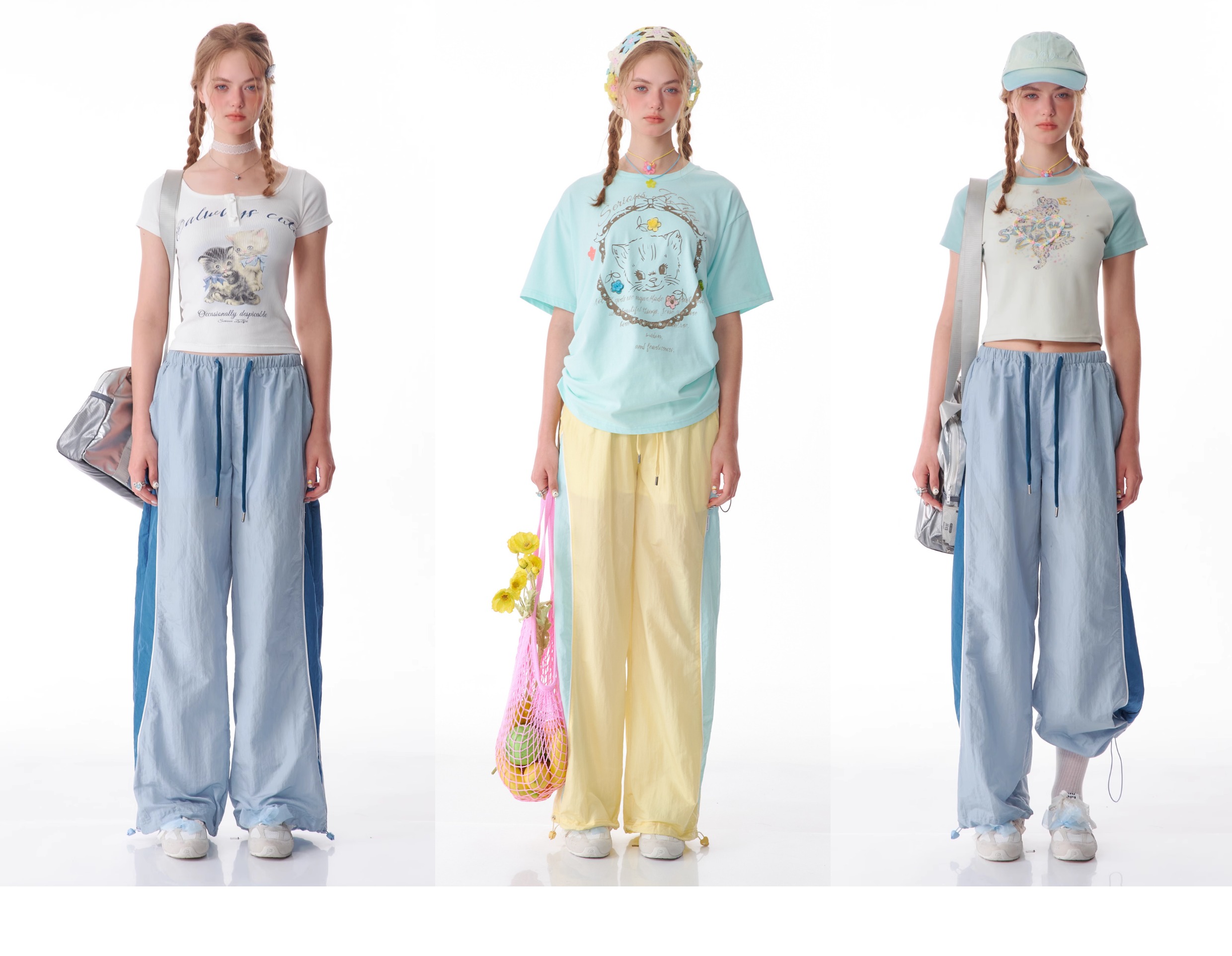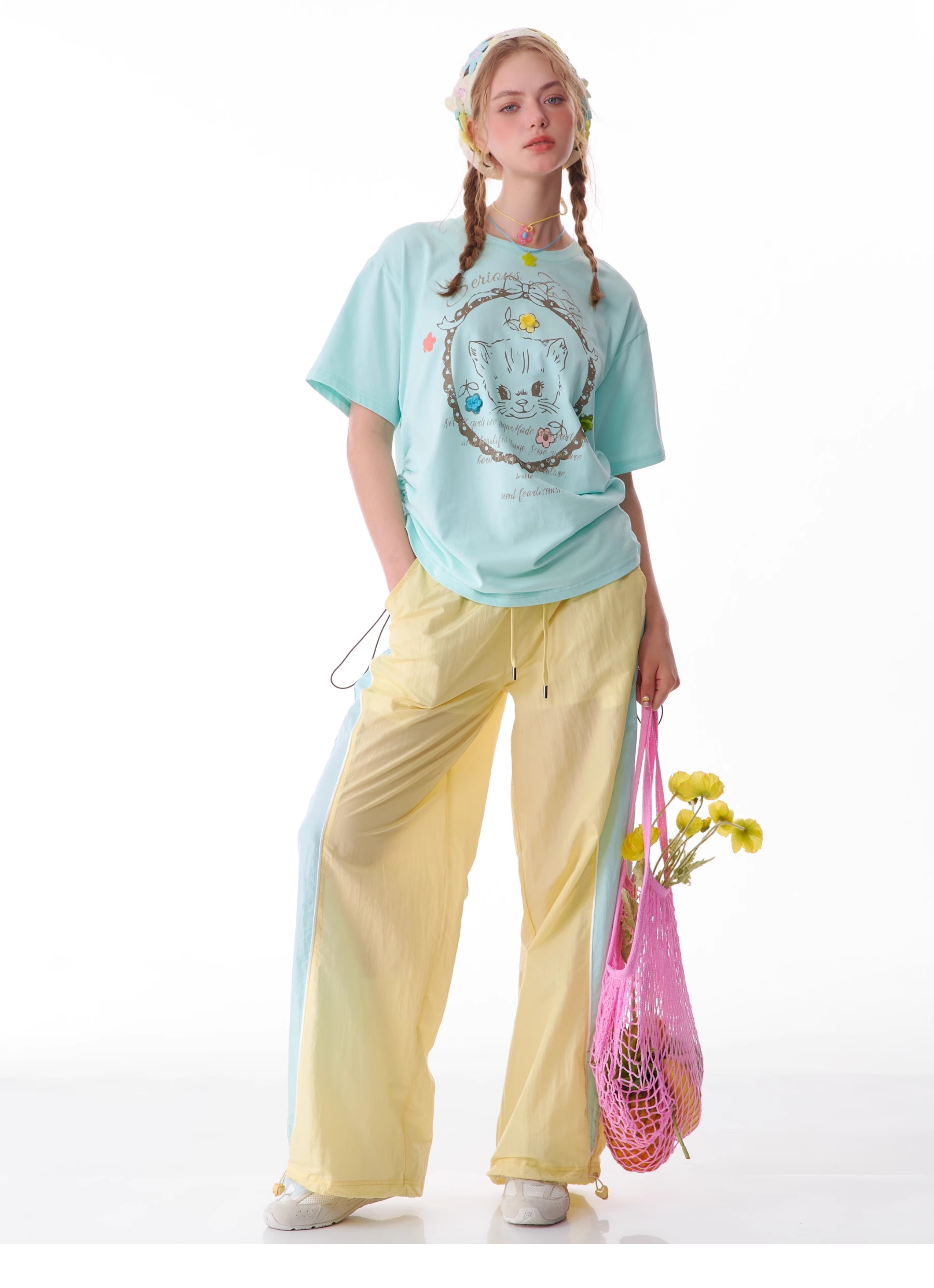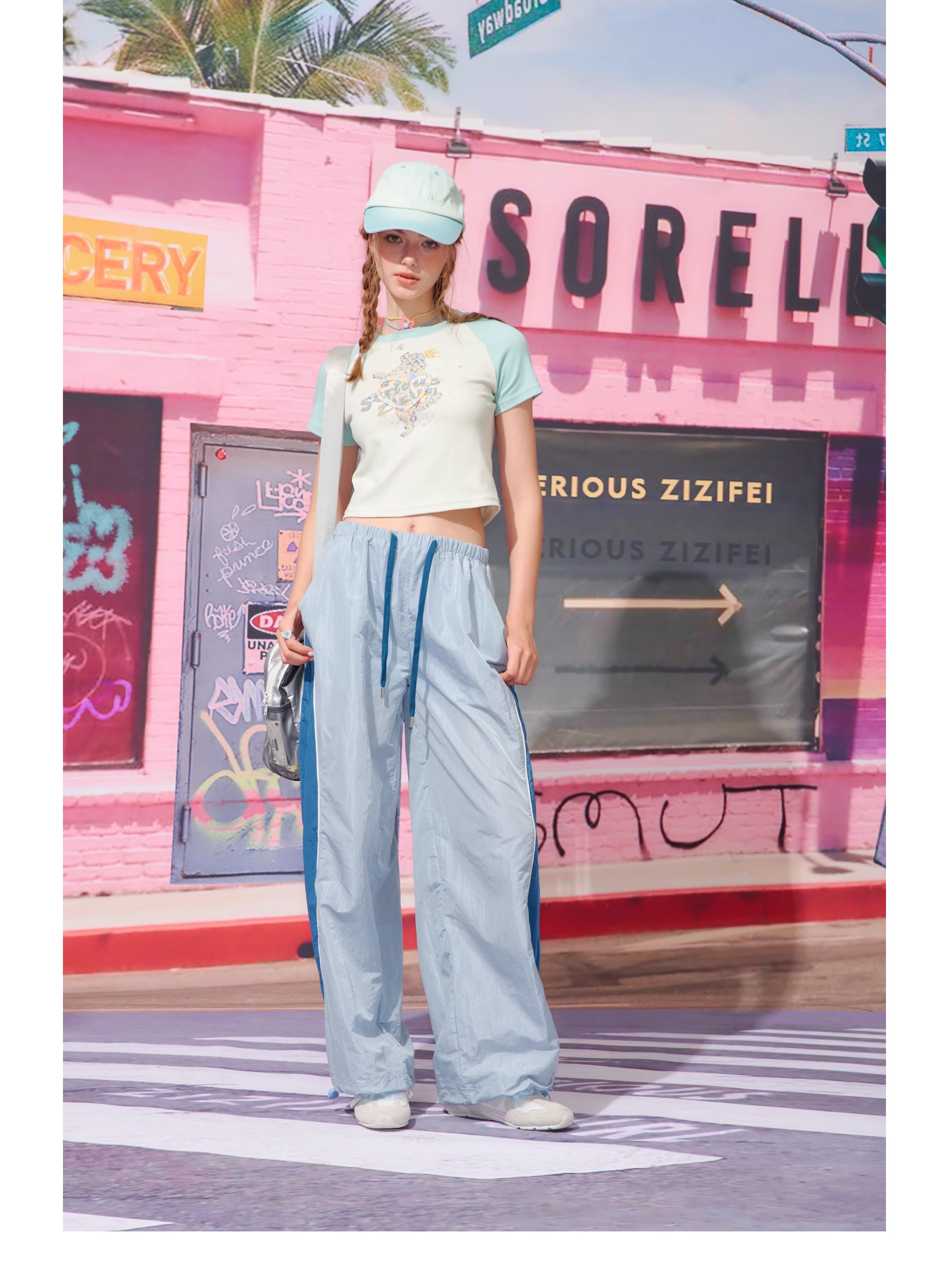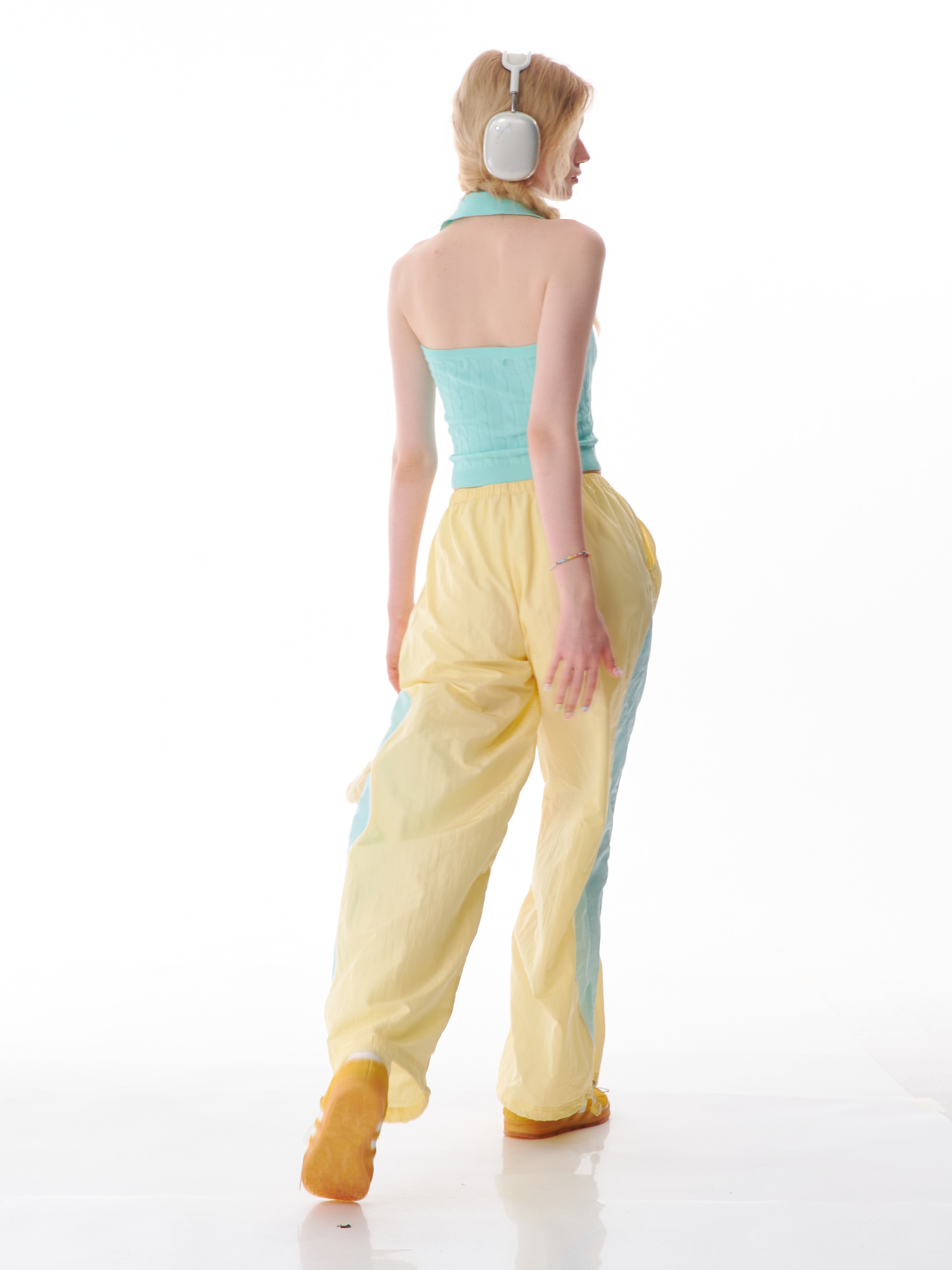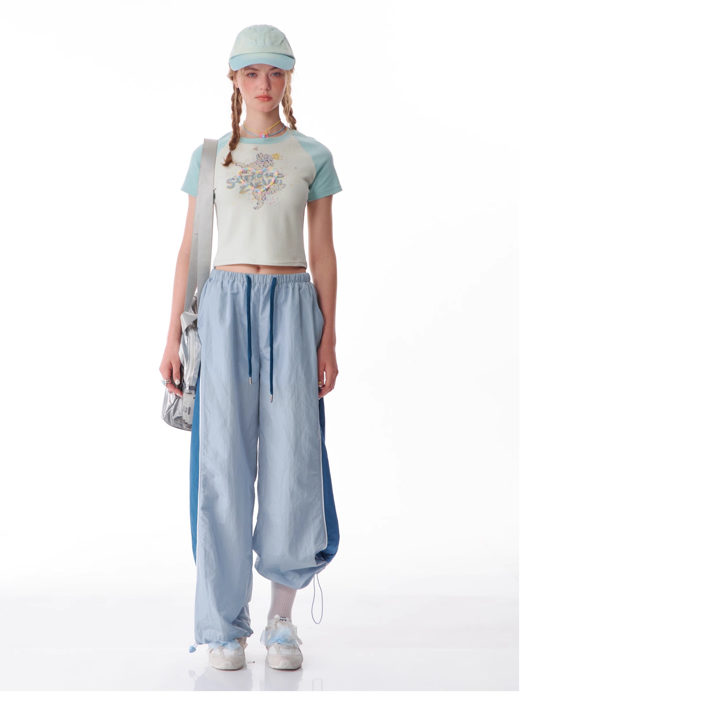 Pantalon de sport à jambes larges contrastées, coupe ajustée, style rétro américain à séchage rapide