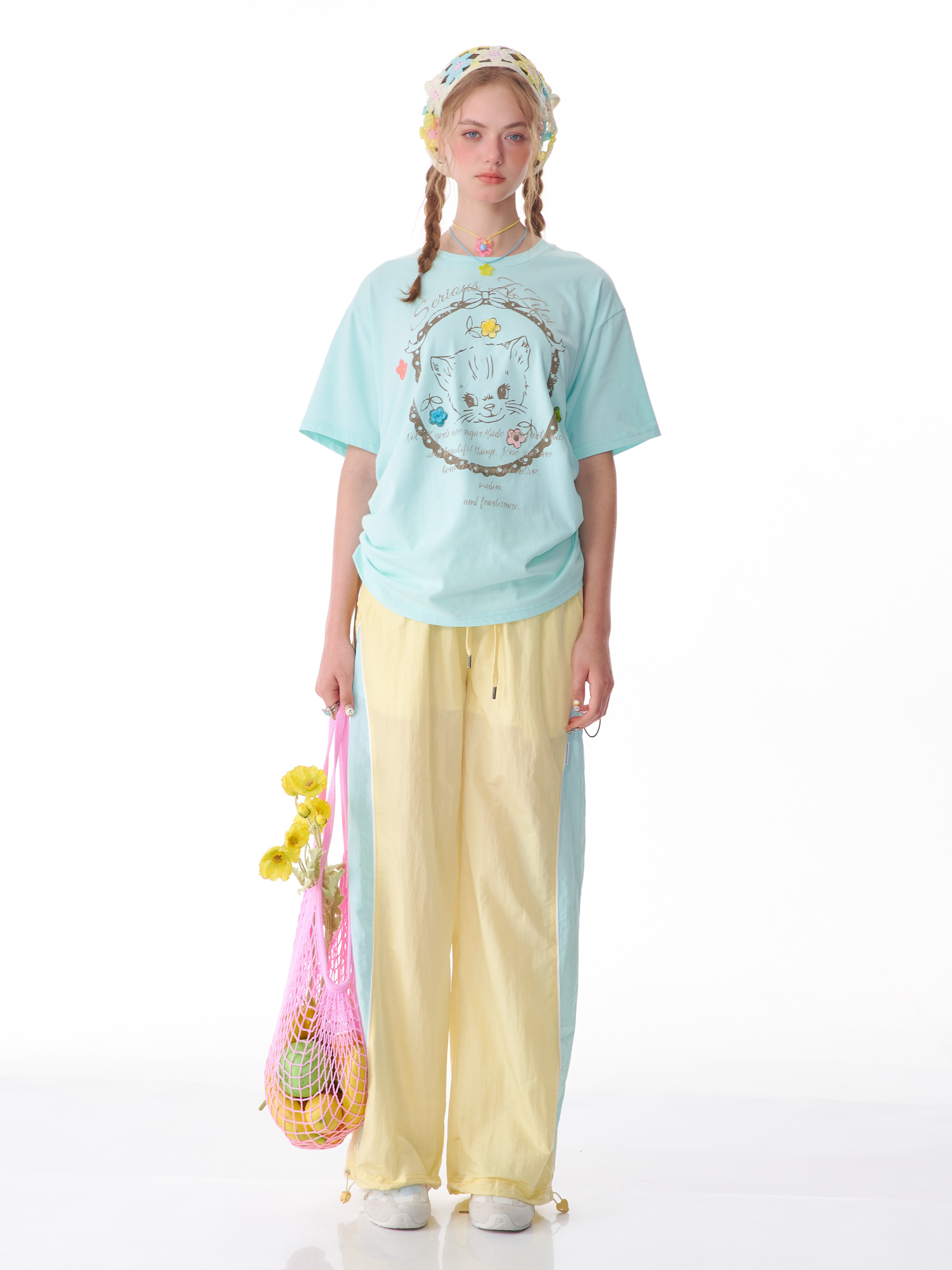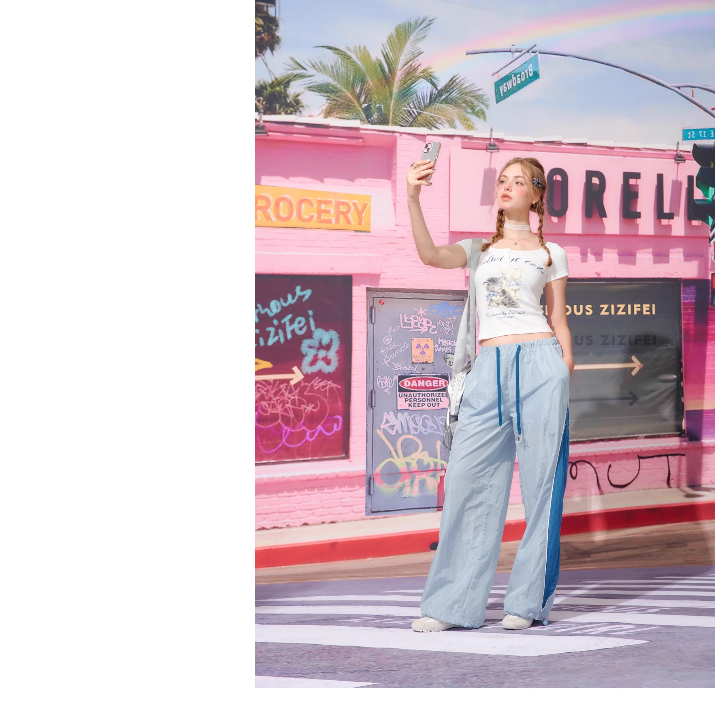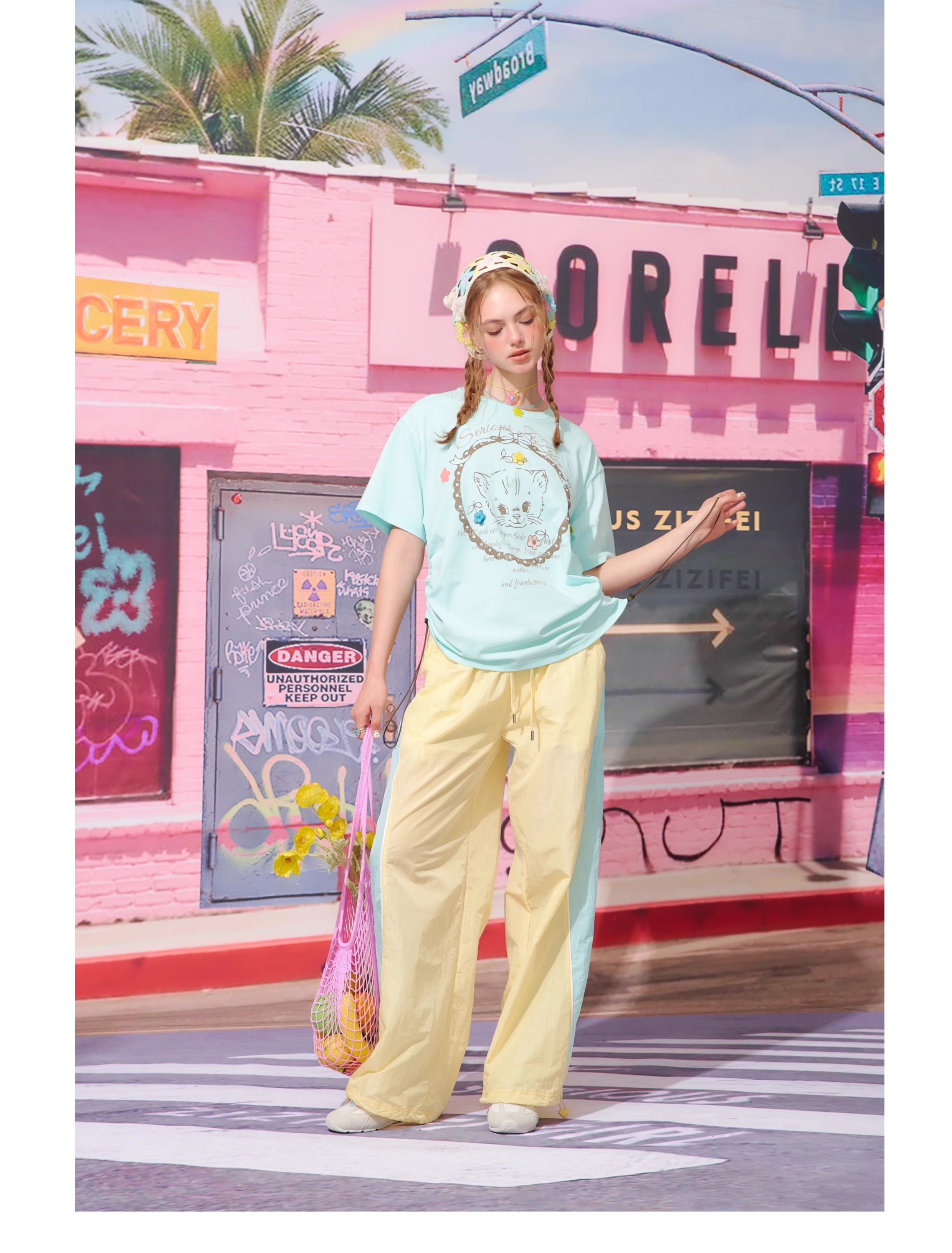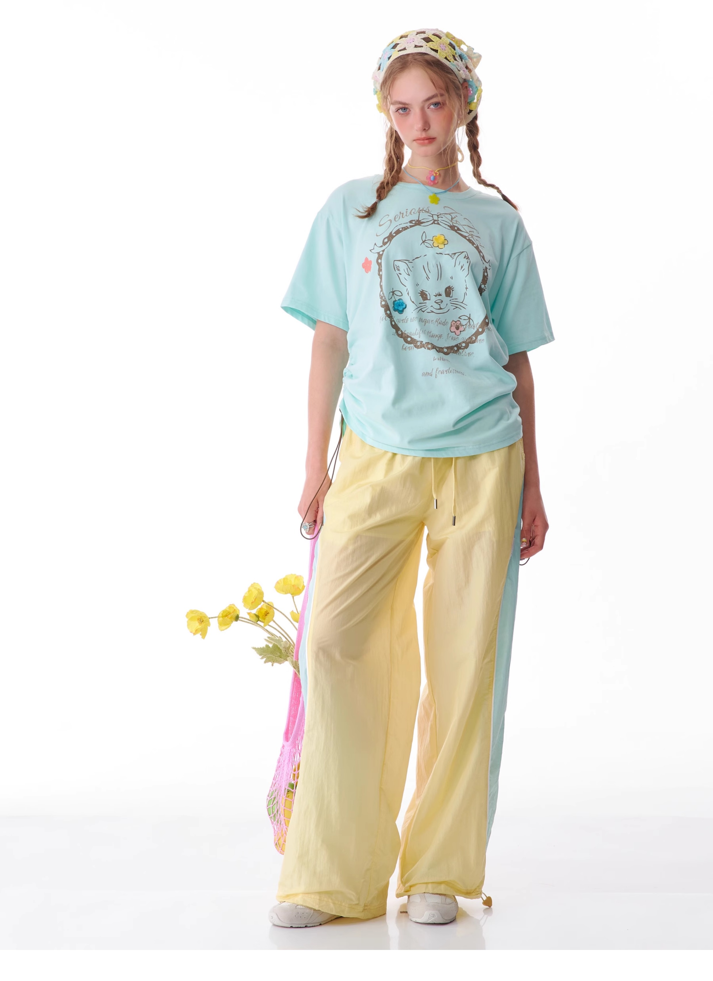 Pantalon de sport à jambes larges contrastées, coupe ajustée, style rétro américain à séchage rapide