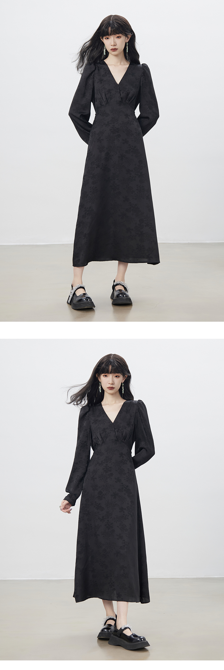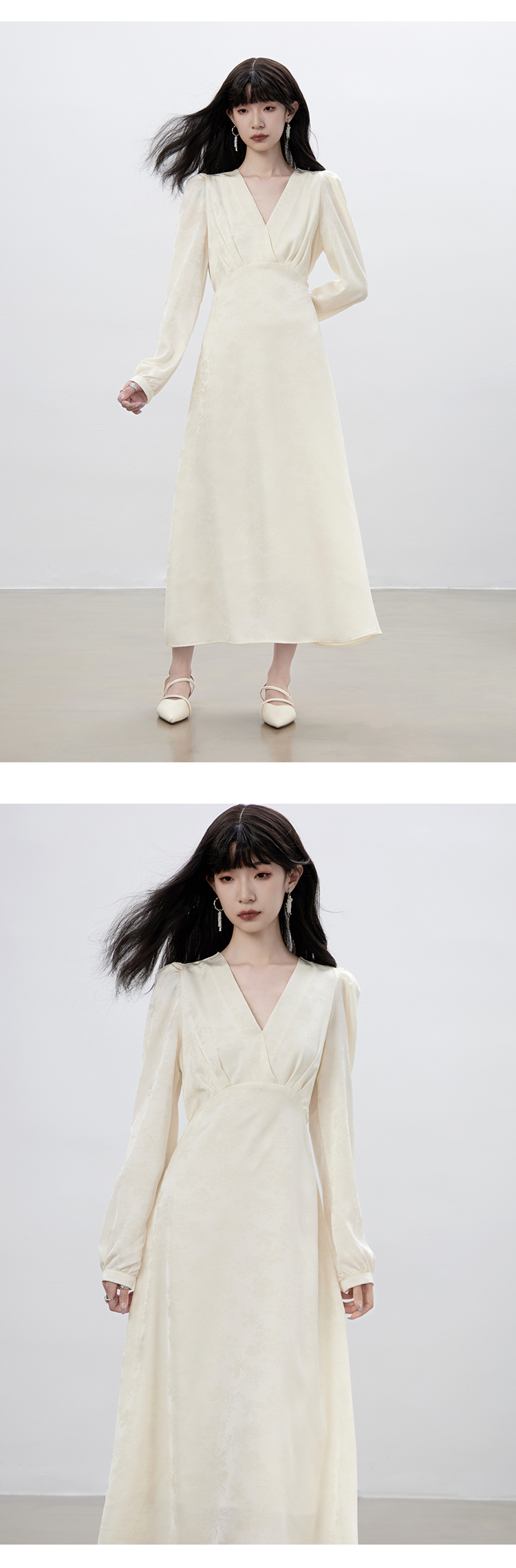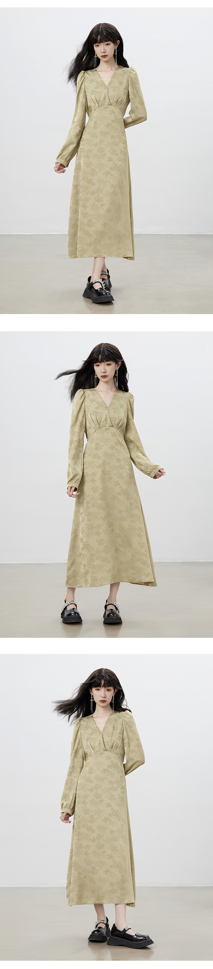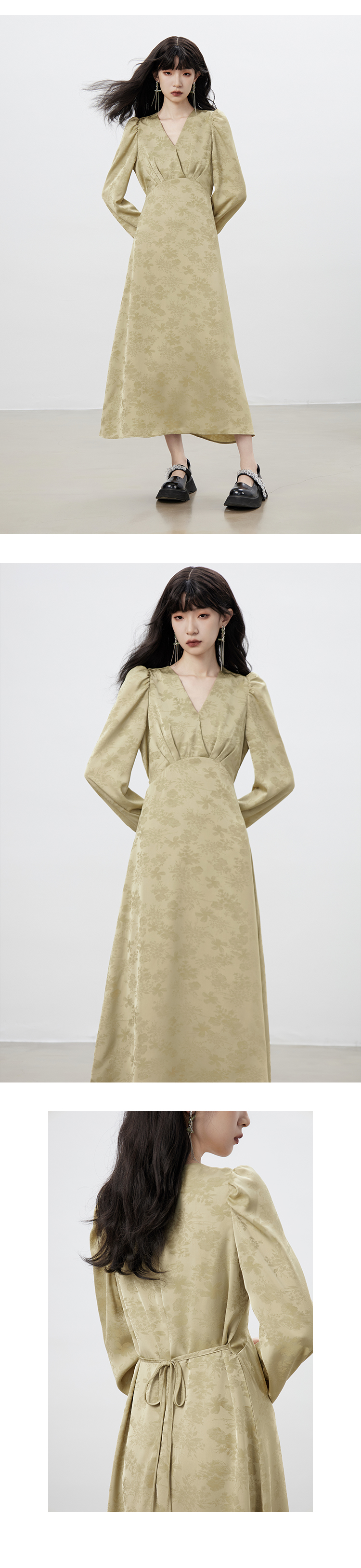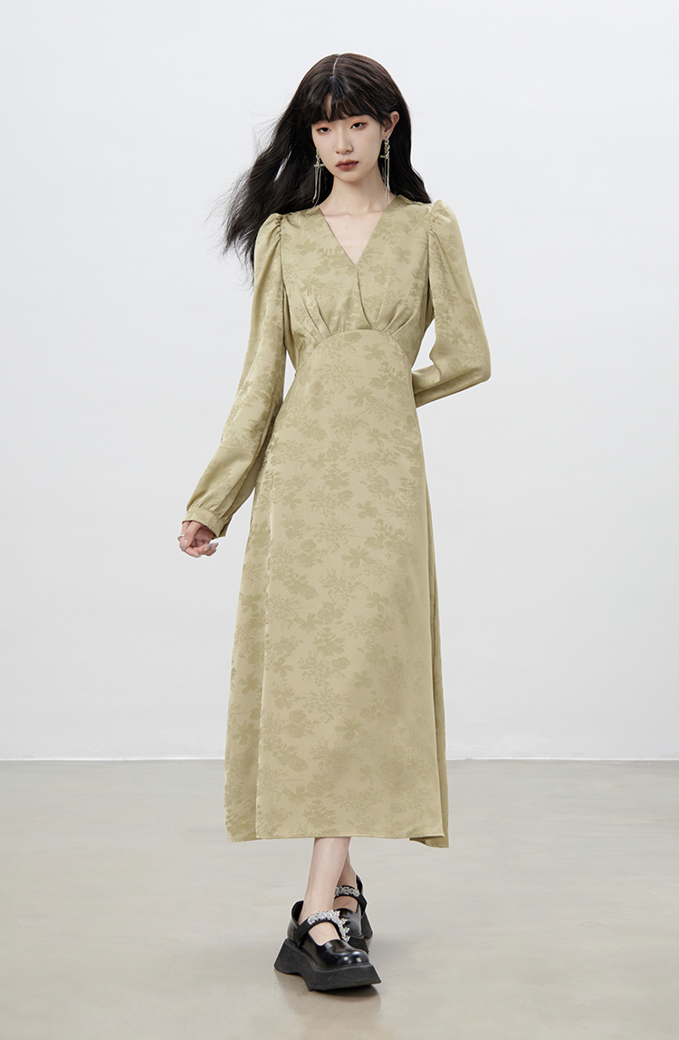Robe à col en V chinois automne