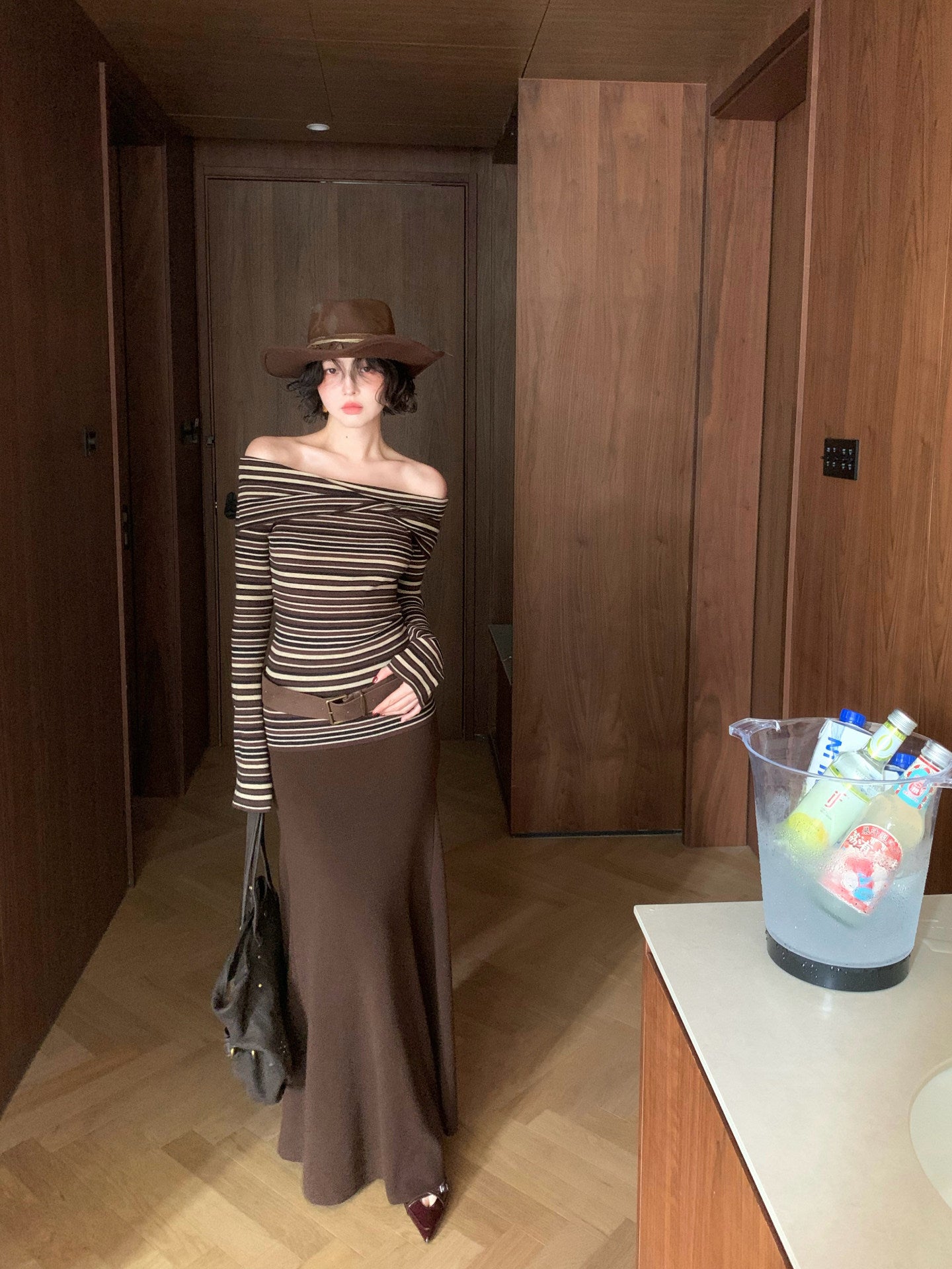 Wine Noon Slanted Shoulder Stripe Slim Knit – Fall/Winter
