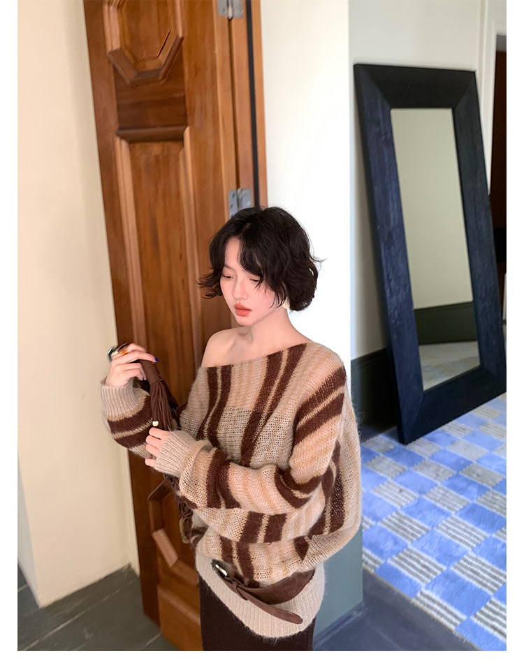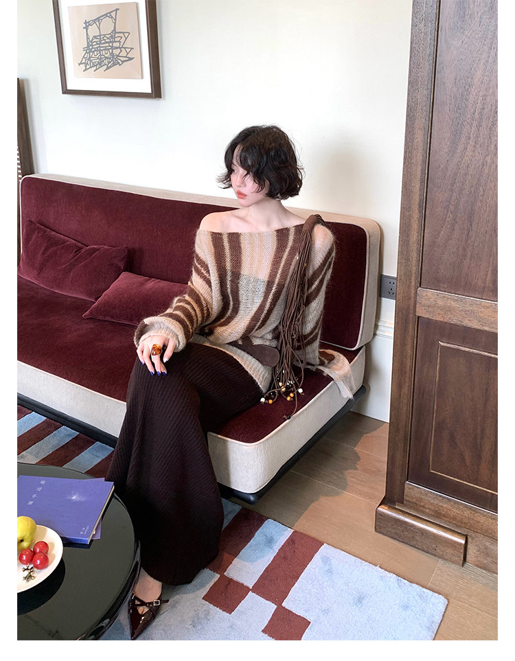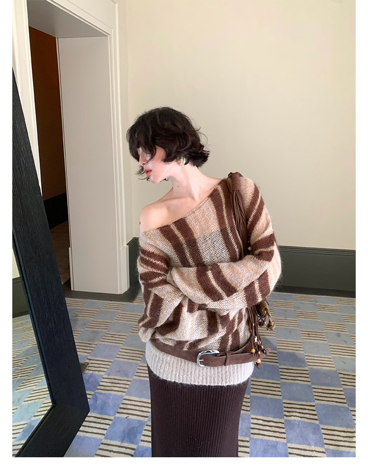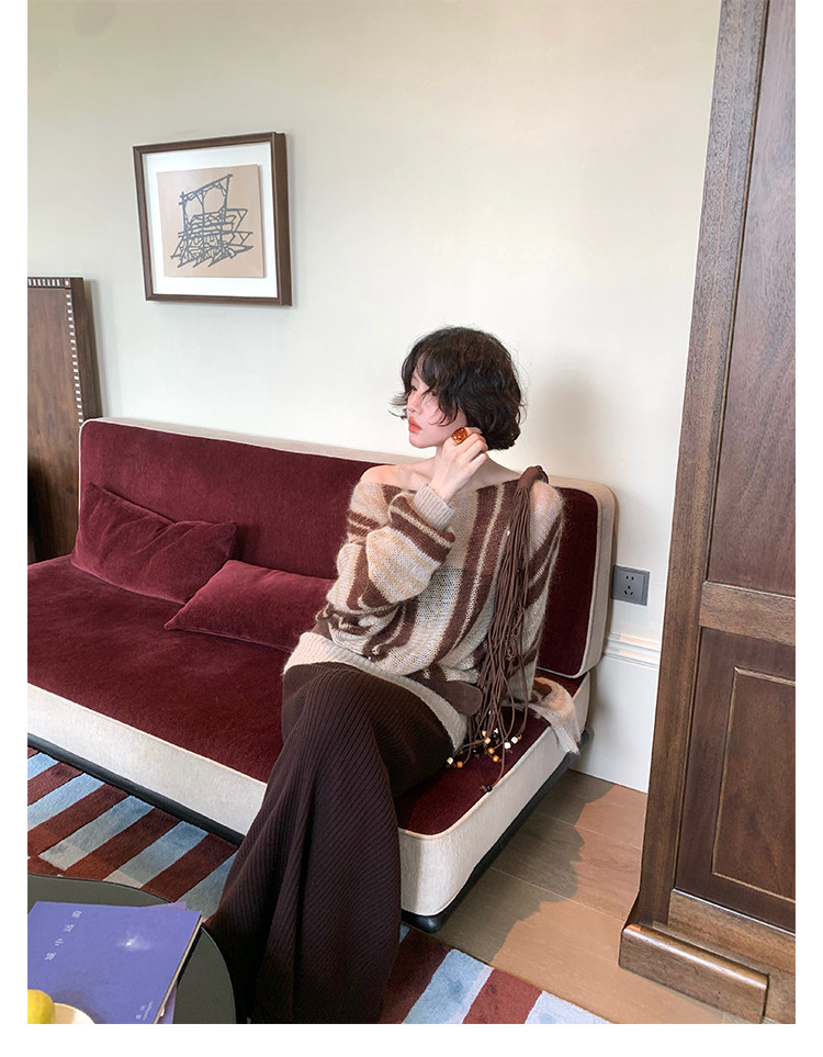 Relaxed Striped Wool-Blend Knit Top – Hong Kong Retro Autumn Drop-Shoulder Style