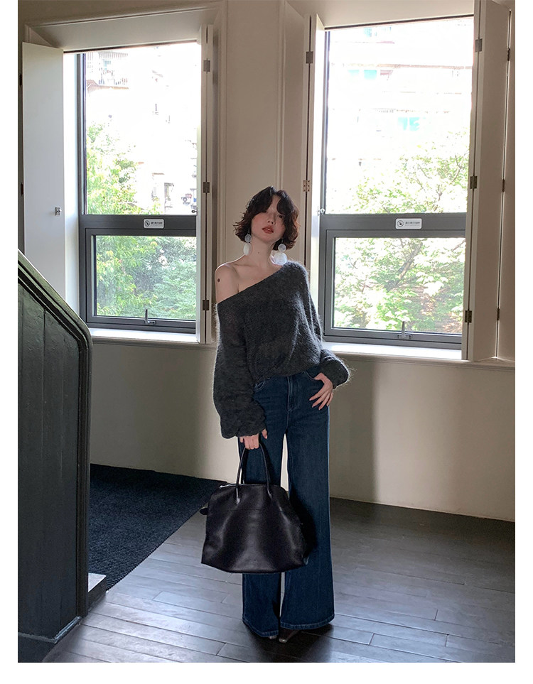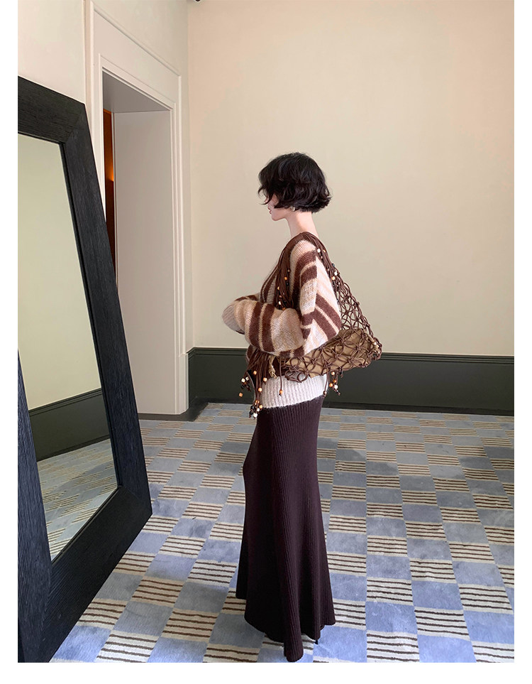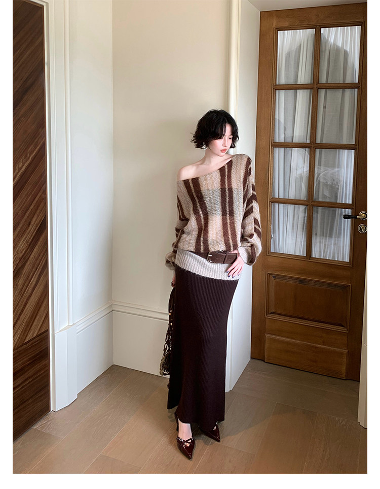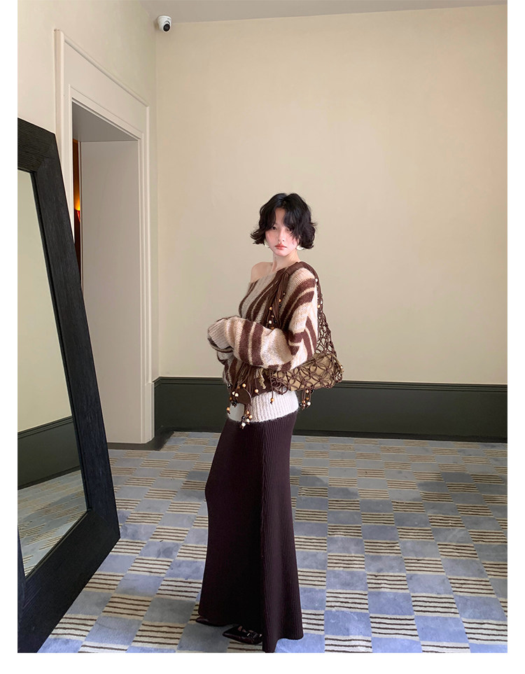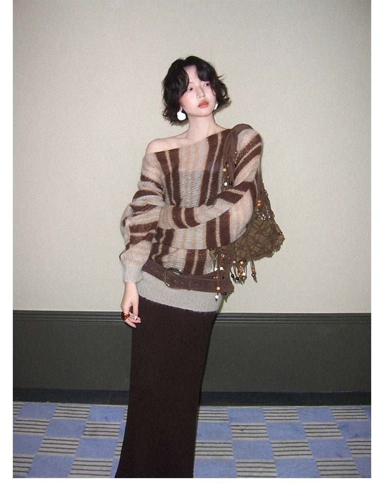 Relaxed Striped Wool-Blend Knit Top – Hong Kong Retro Autumn Drop-Shoulder Style