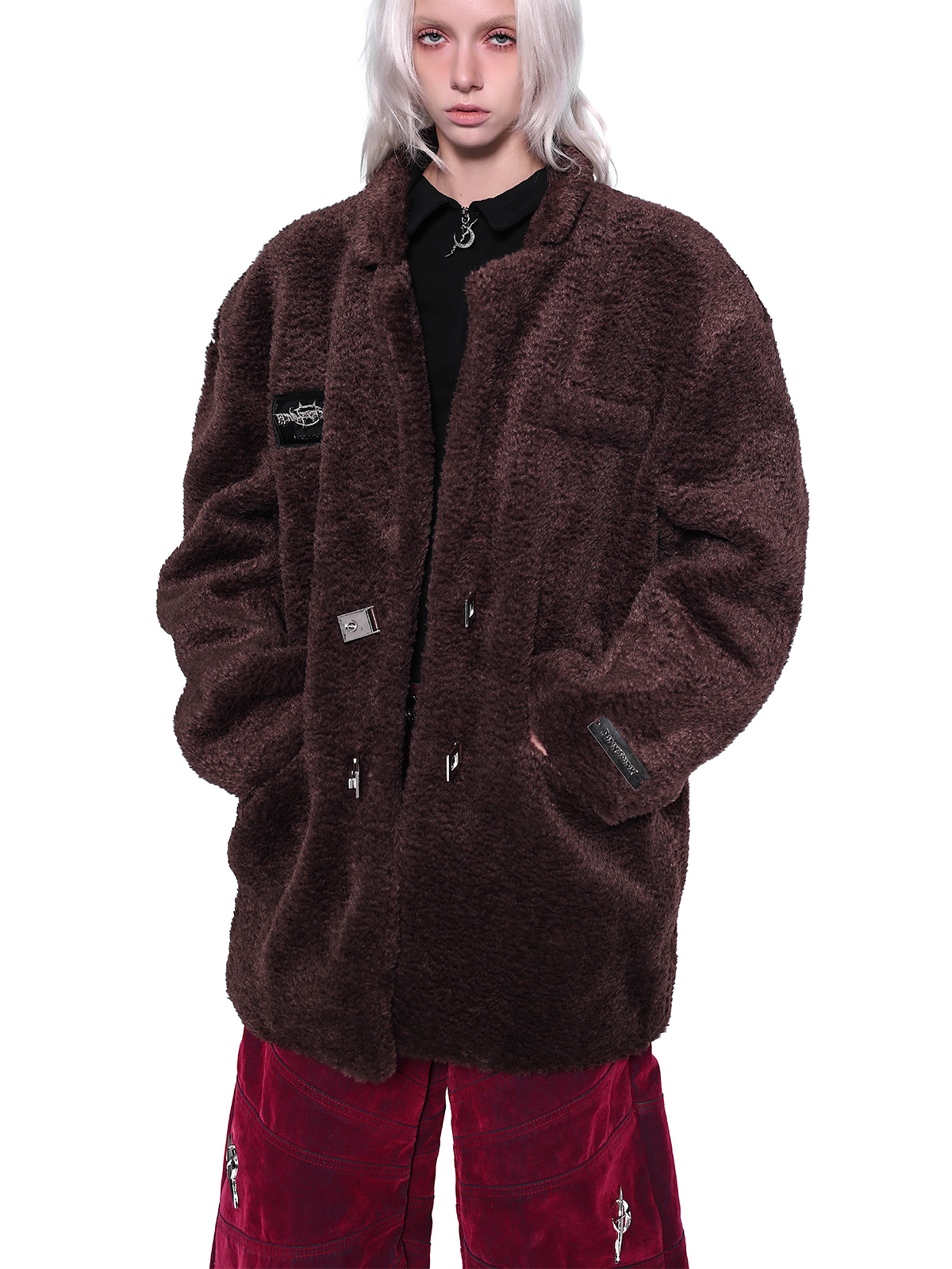 Caramel Suede Genderless Coat – Luxe Fur Loose Silhouette for Warmth