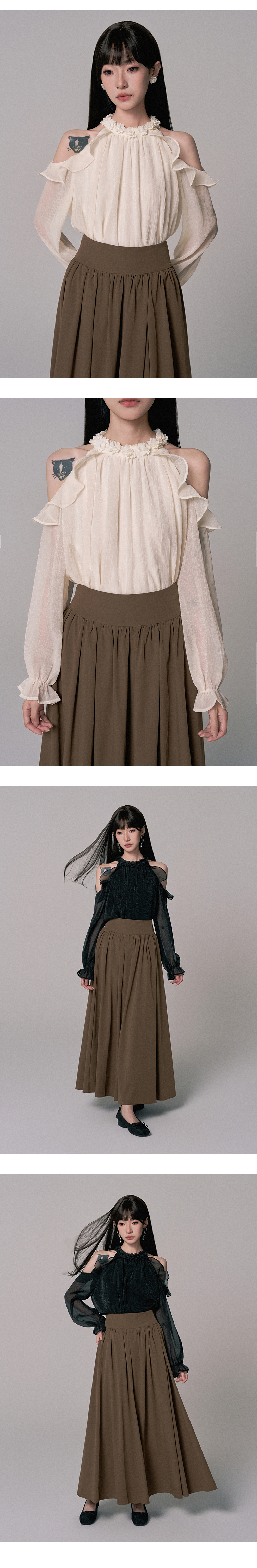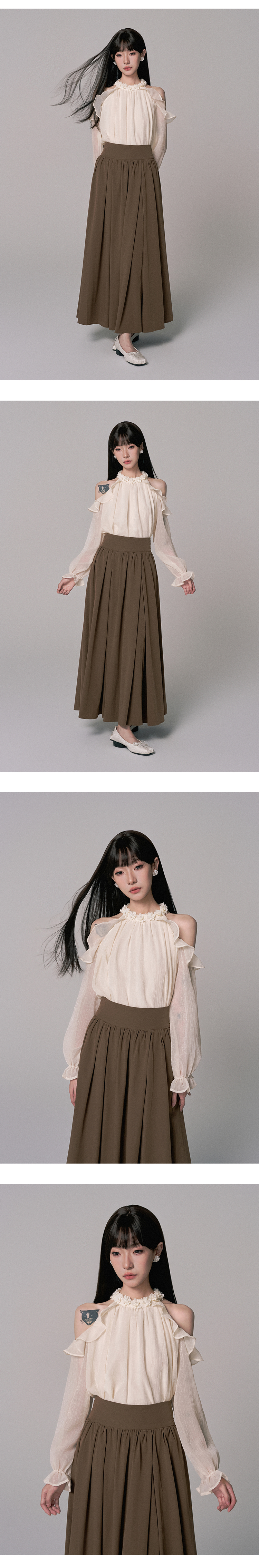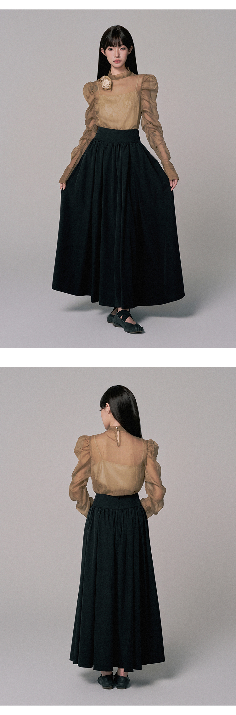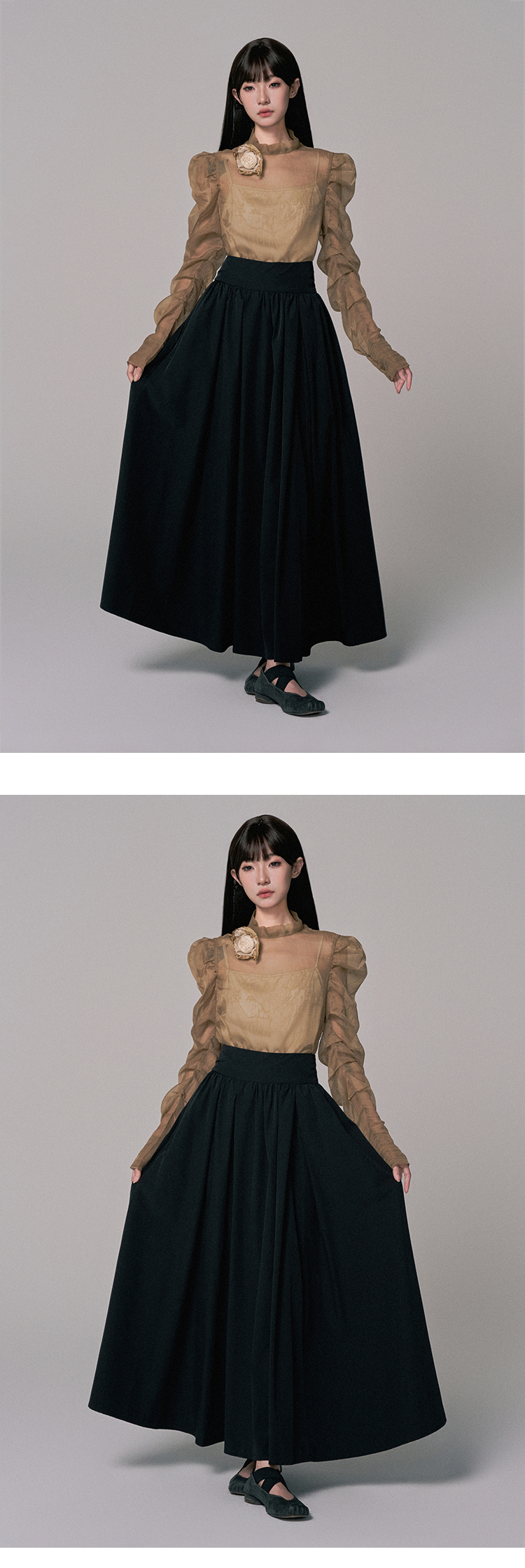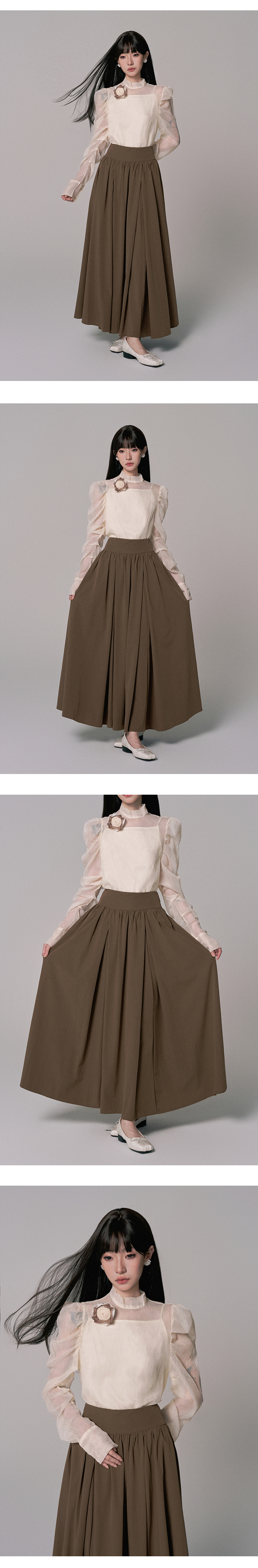 High-Waist Loose Pleated A-Line Long Skirt (Early Autumn)