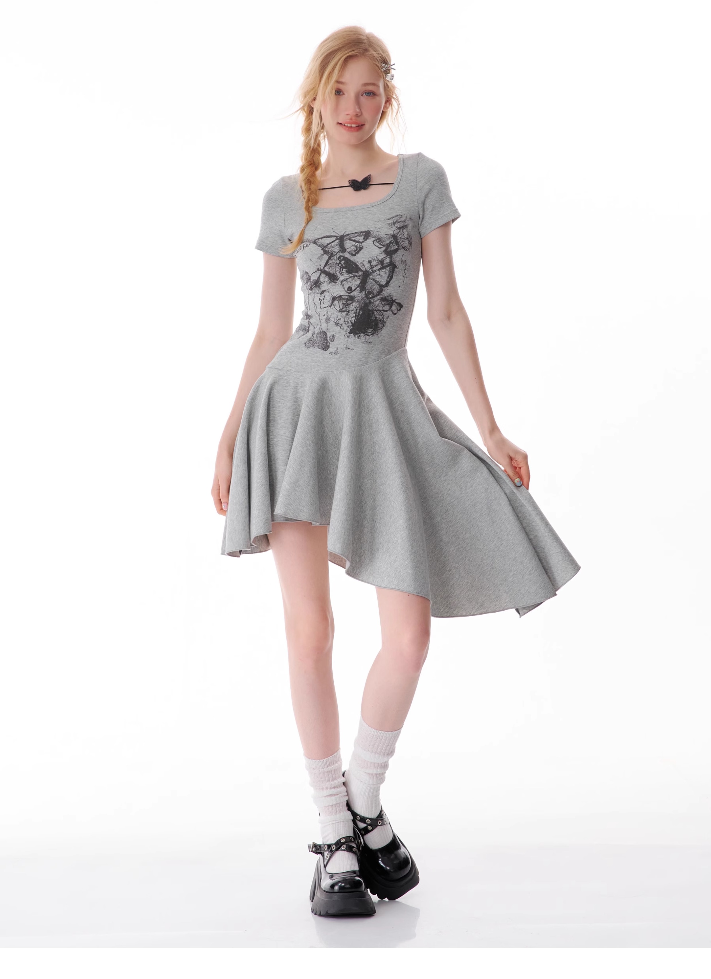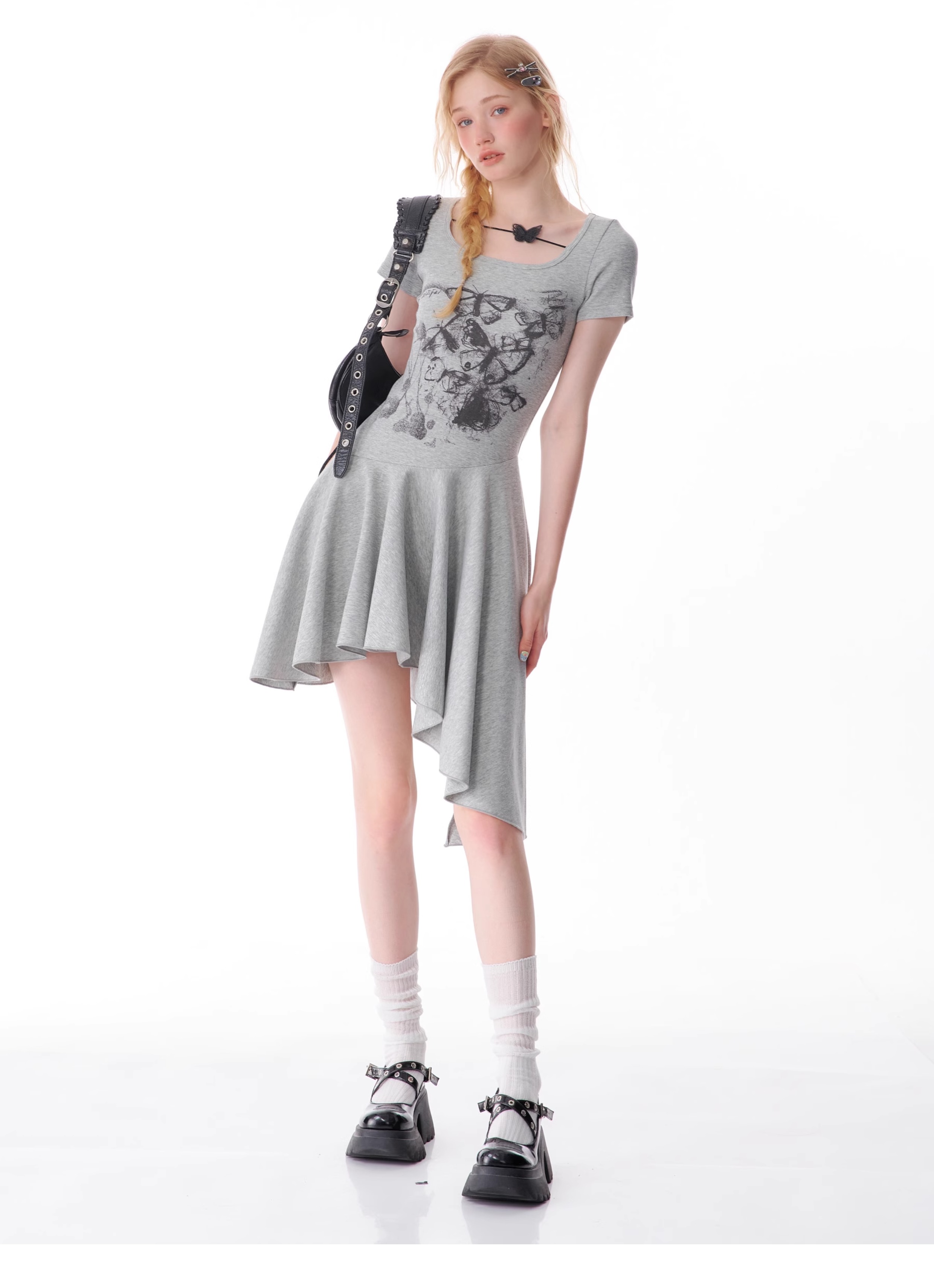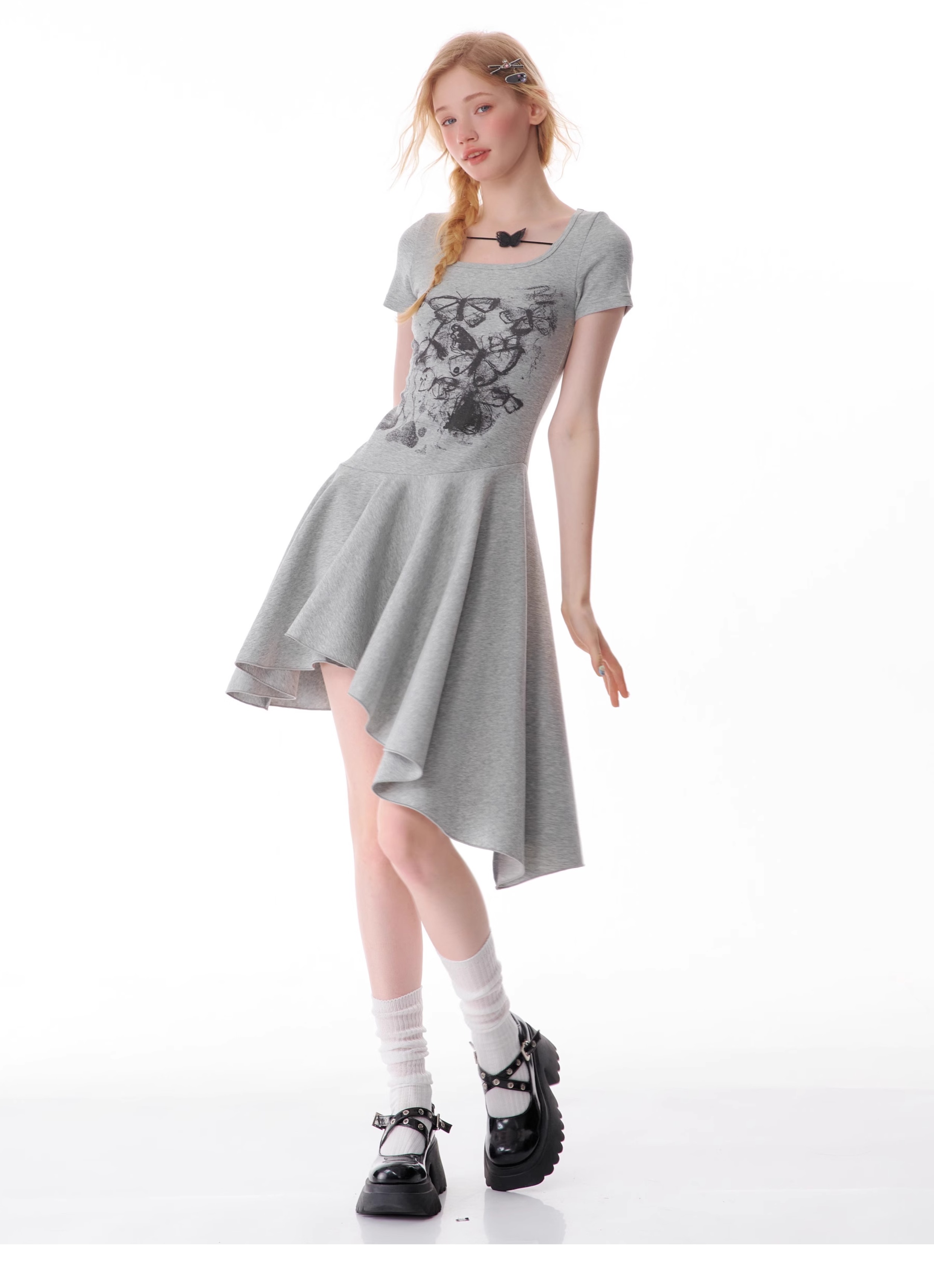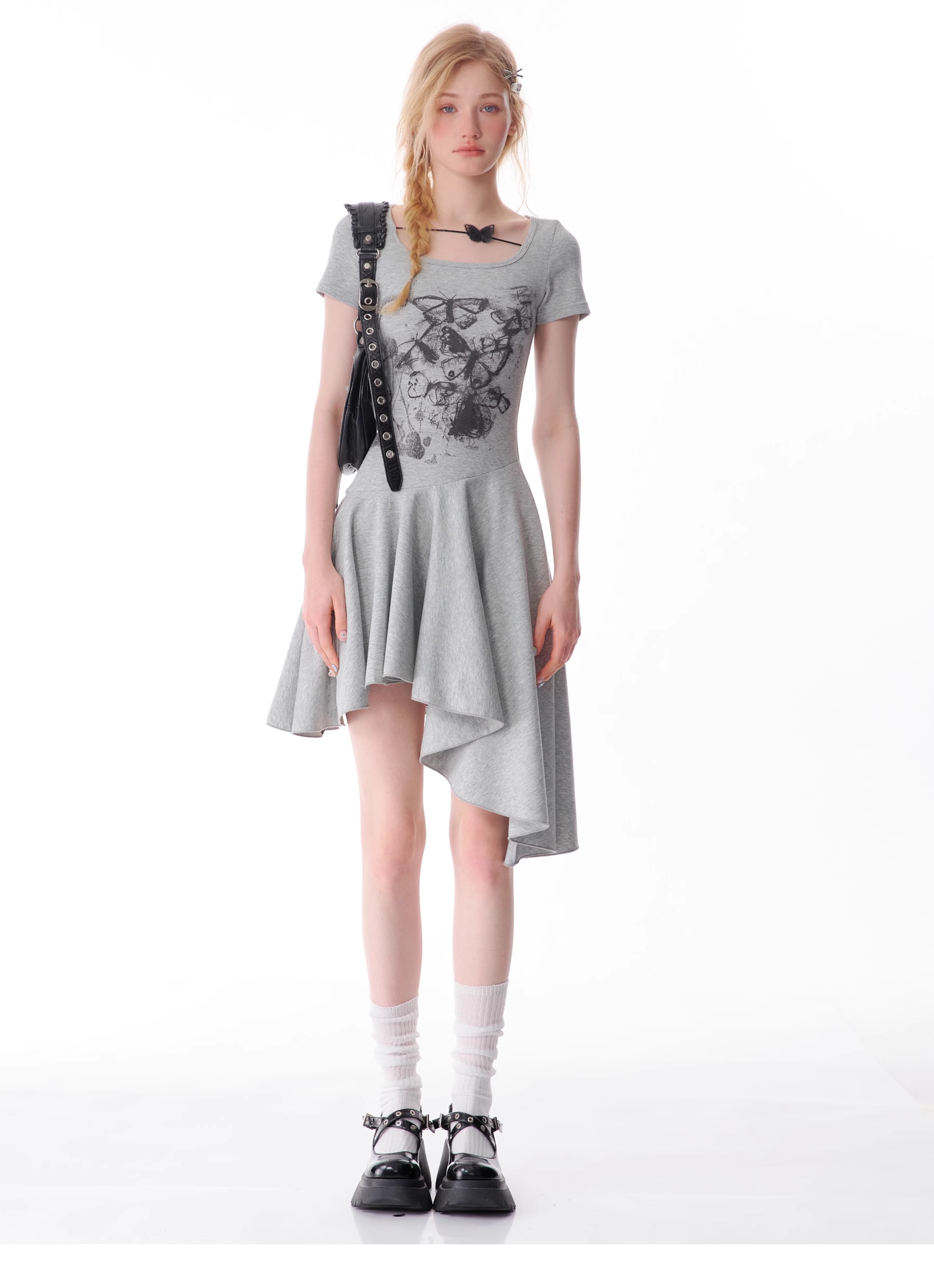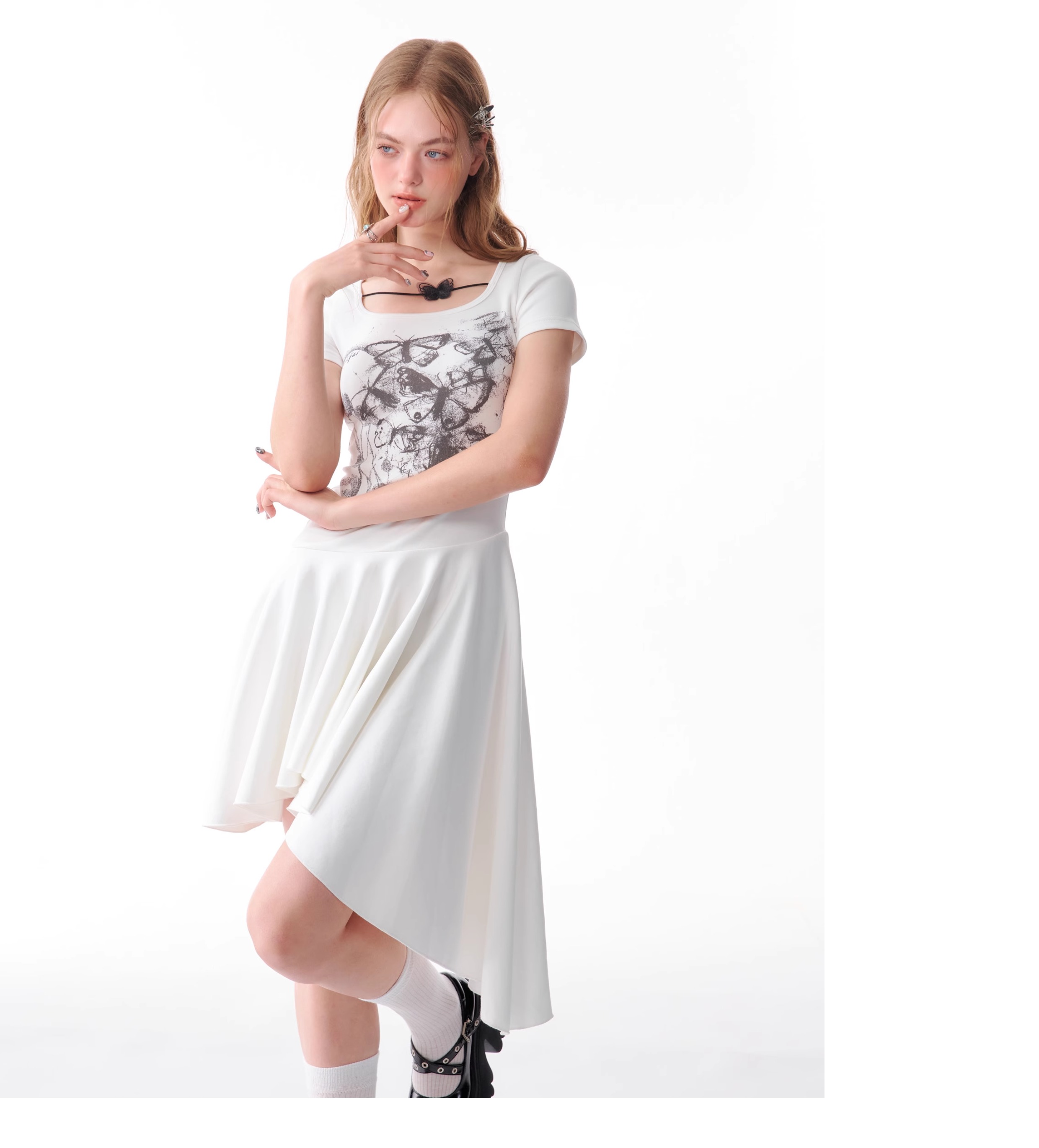 Robe taille imprimée papillon | Rétro coupe slim irrégulière, design d'été