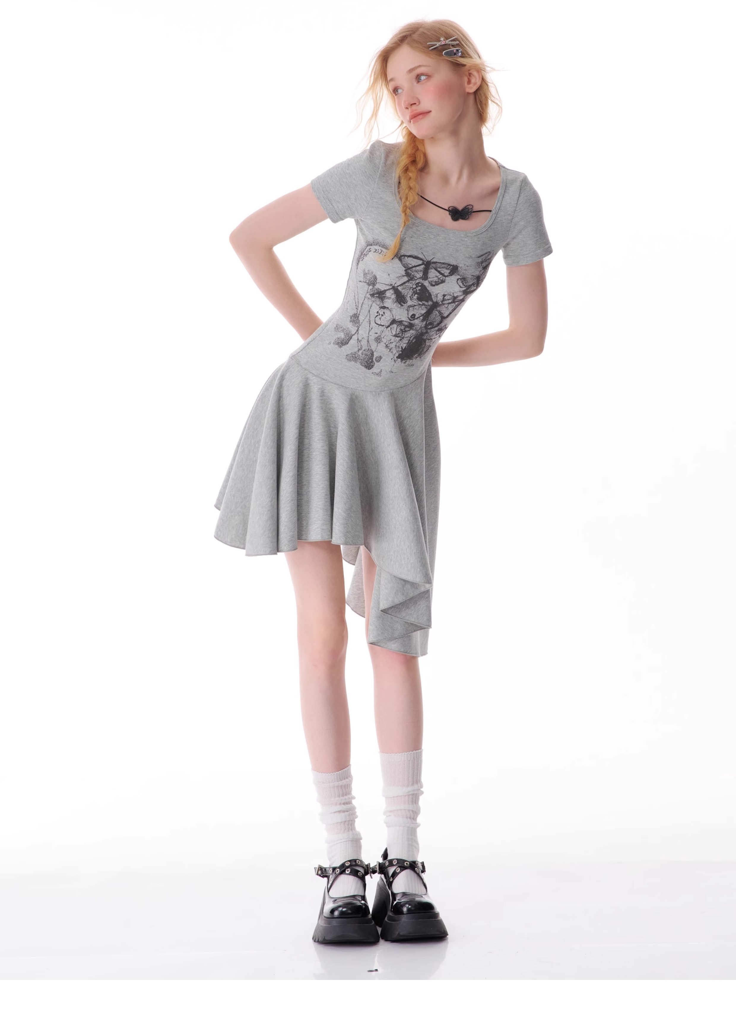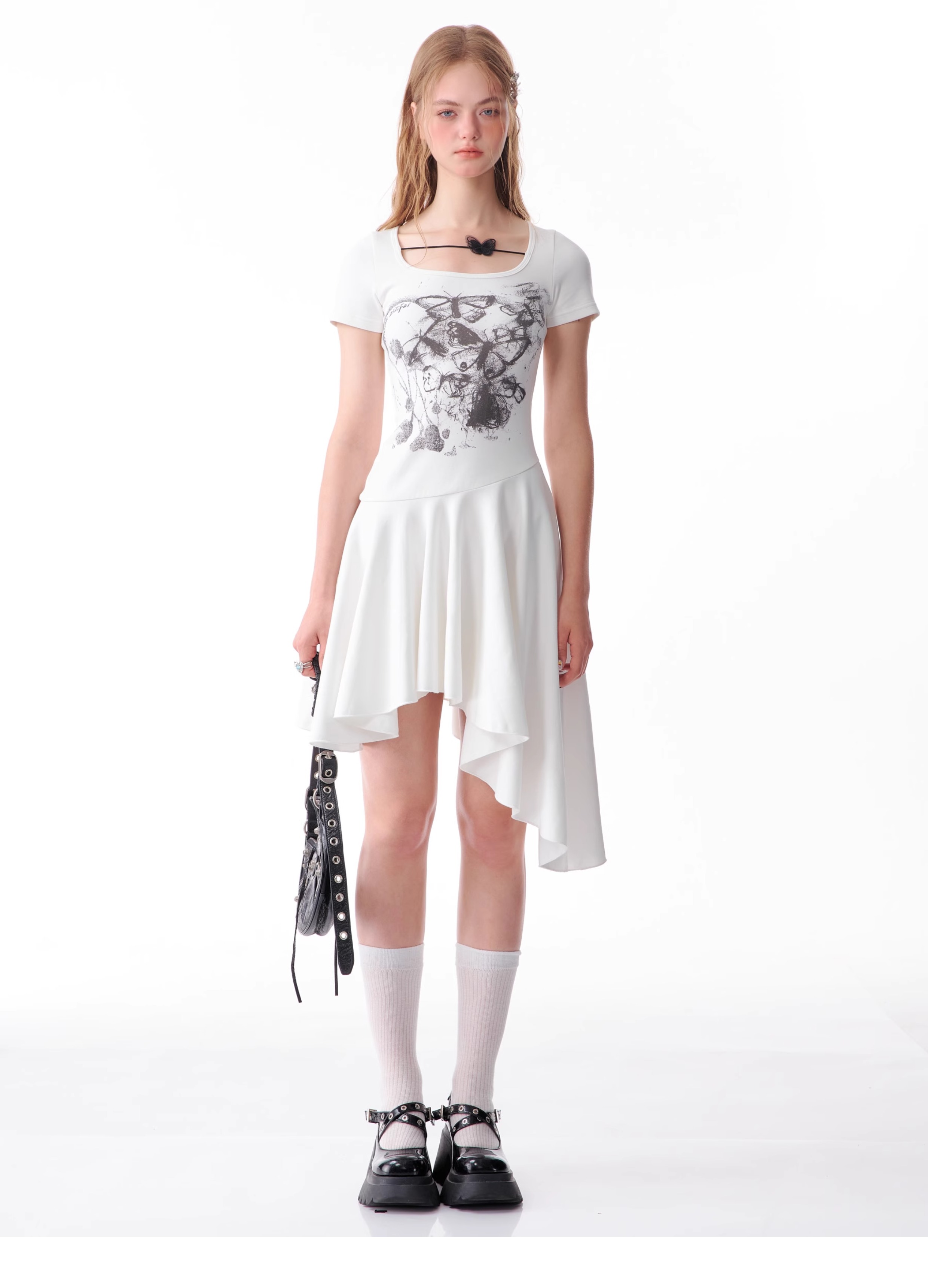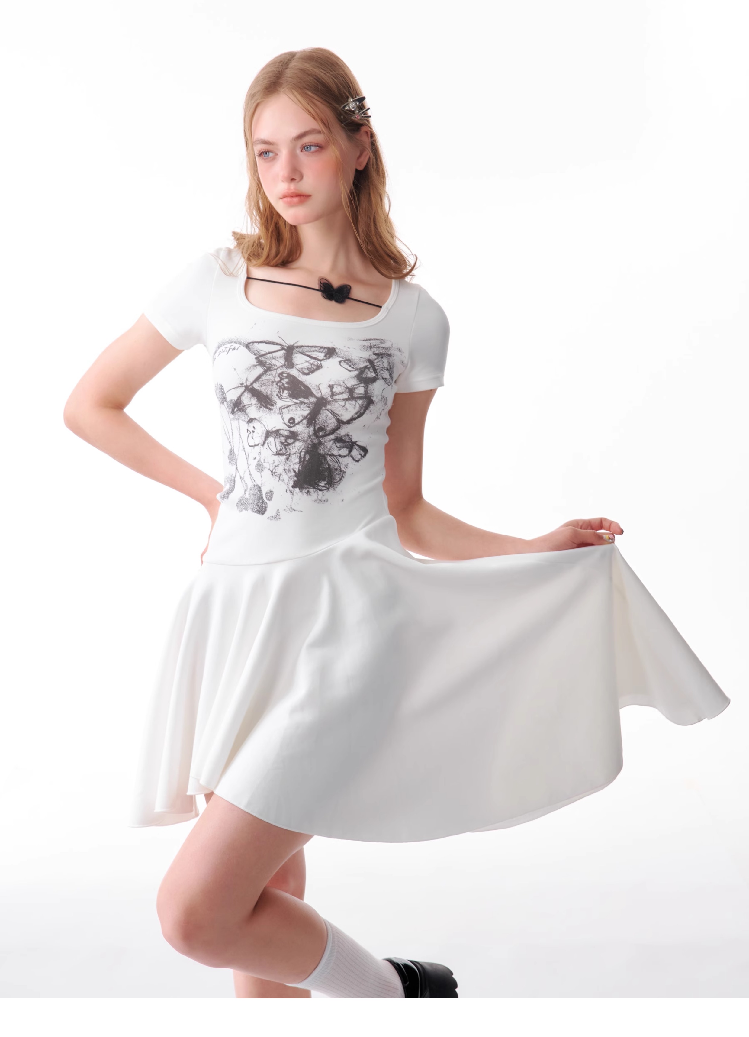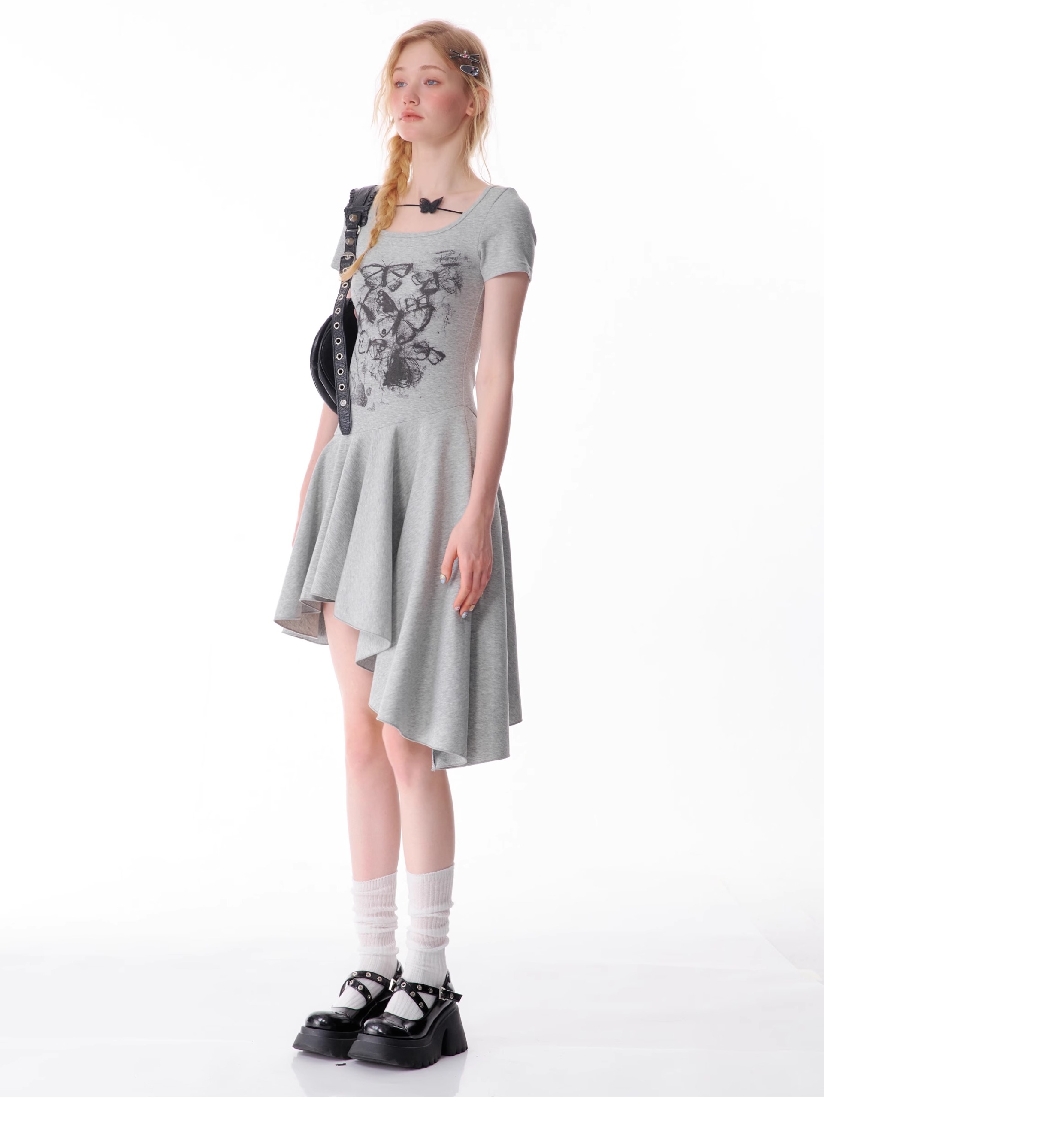 Robe taille imprimée papillon | Rétro coupe slim irrégulière, design d'été