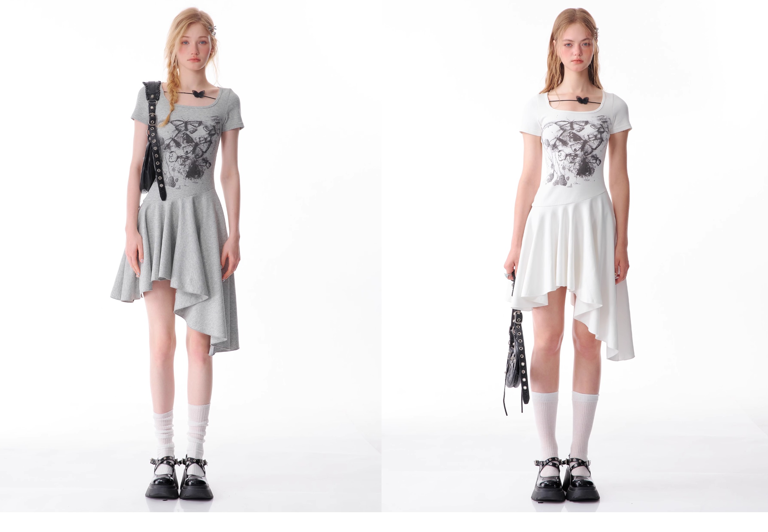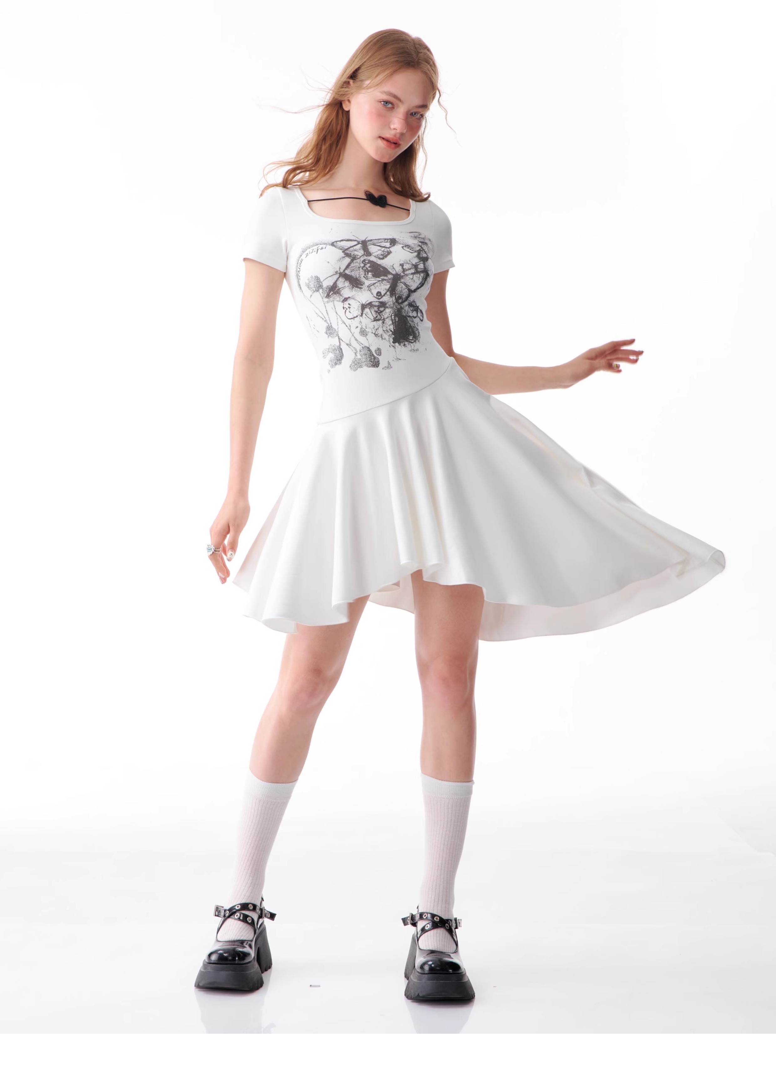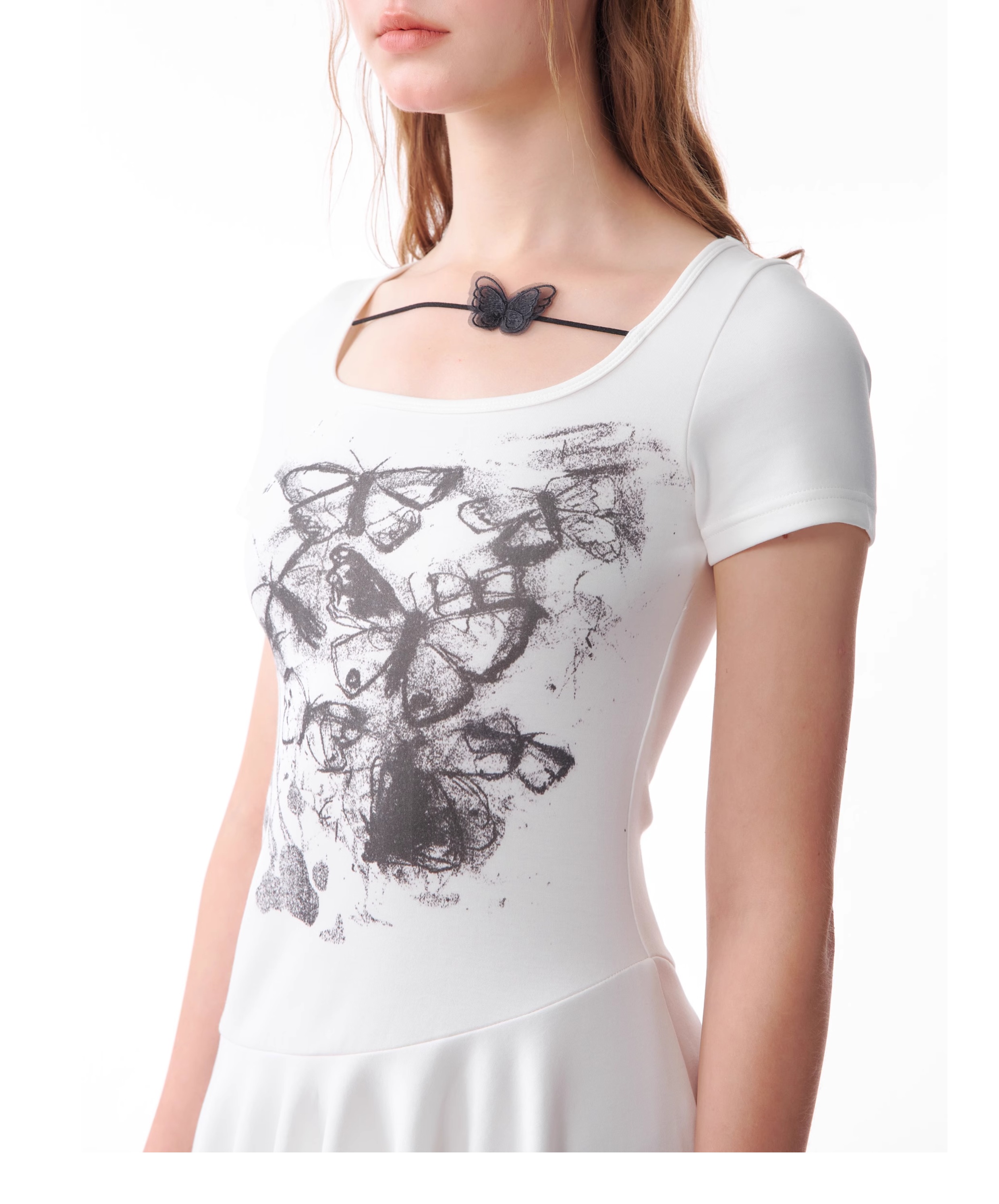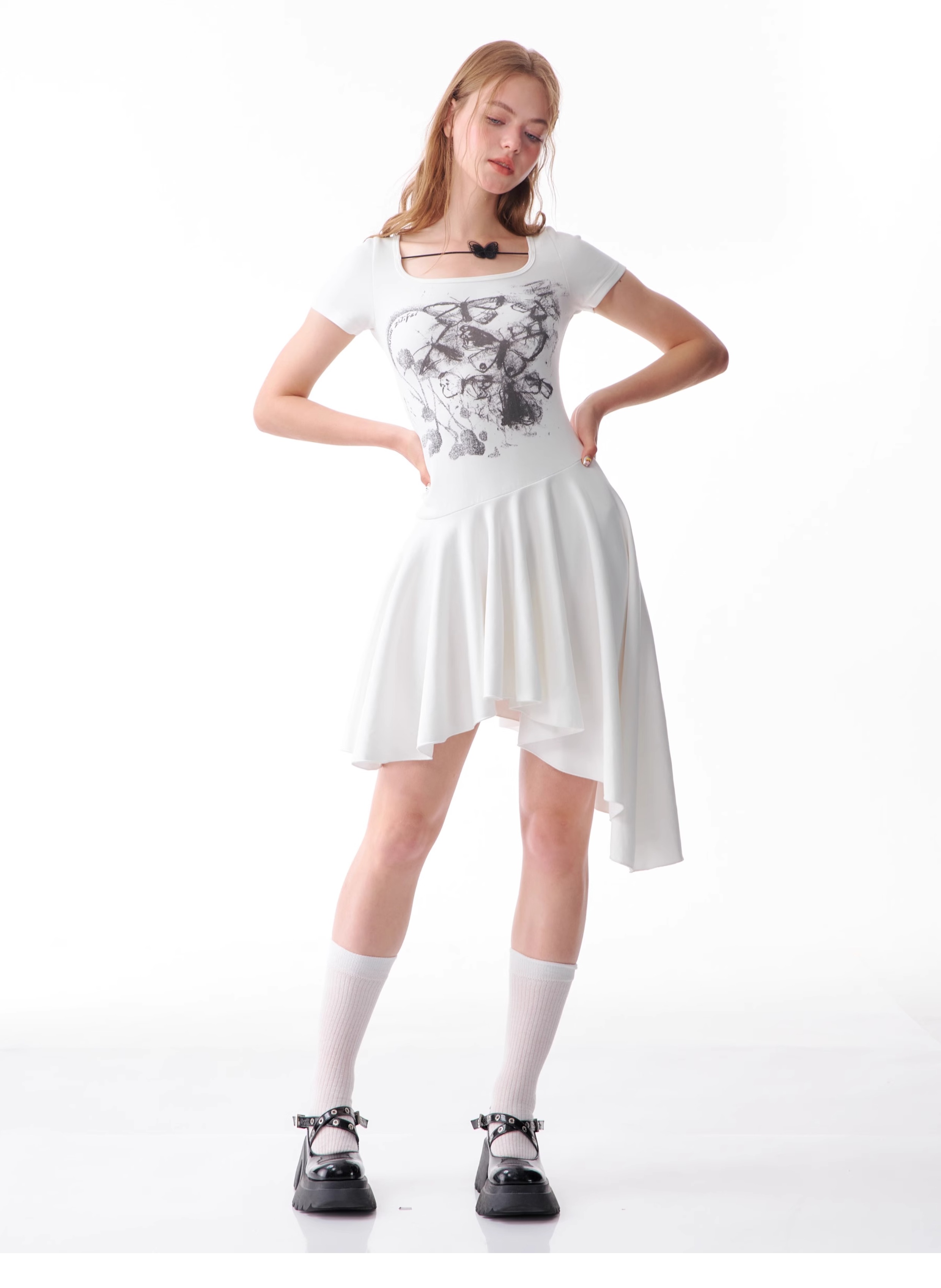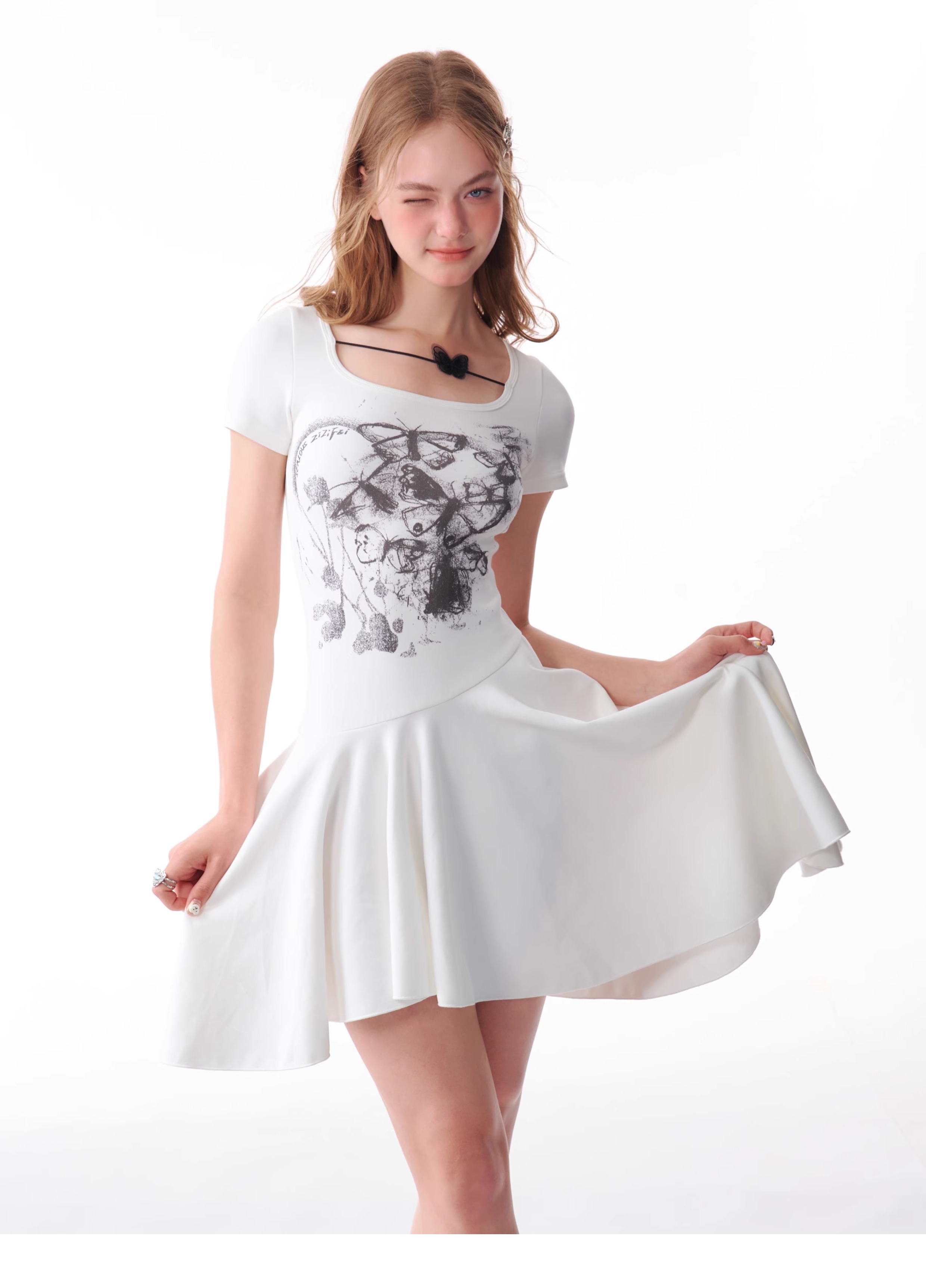 Robe taille imprimée papillon | Rétro coupe slim irrégulière, design d'été