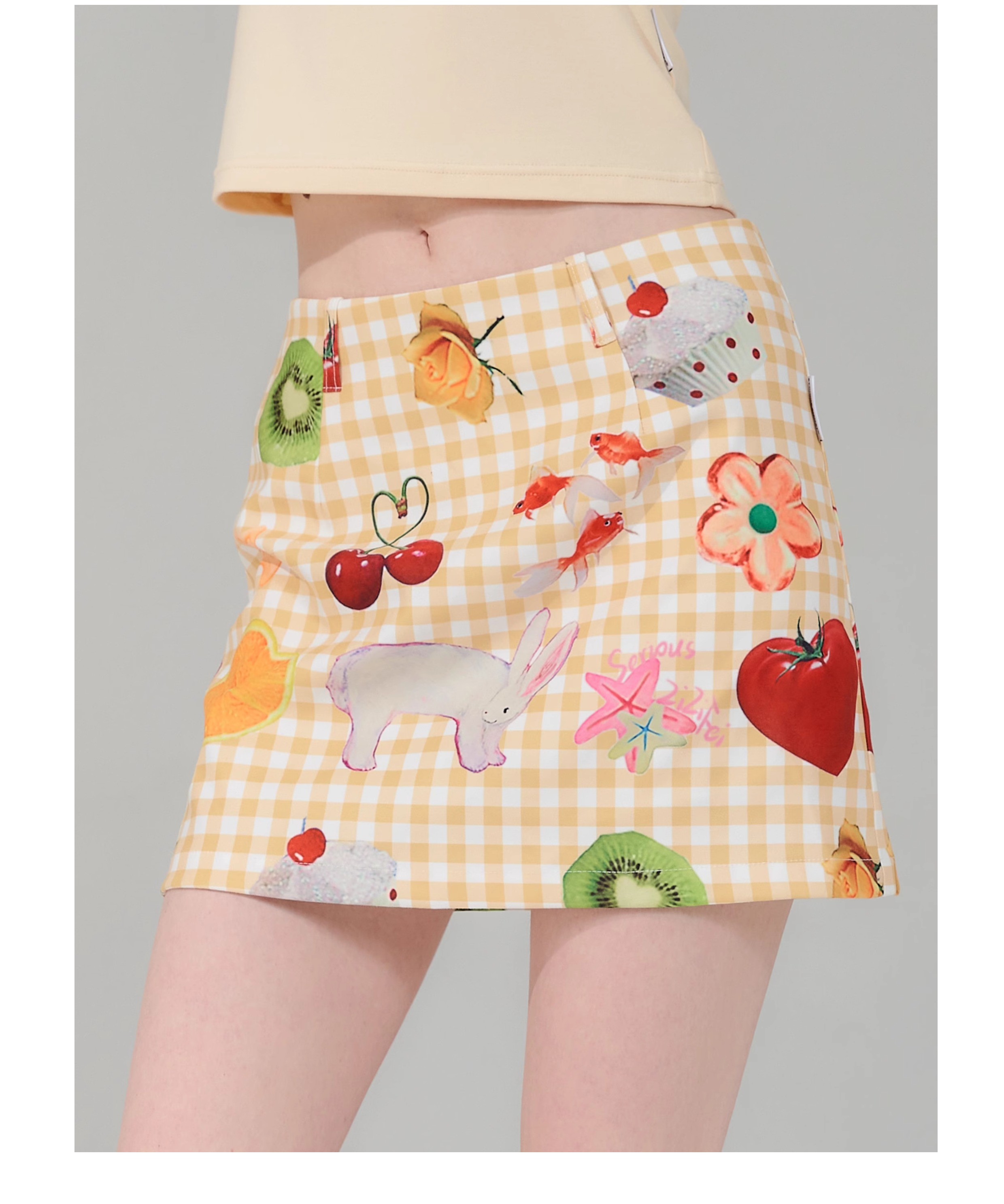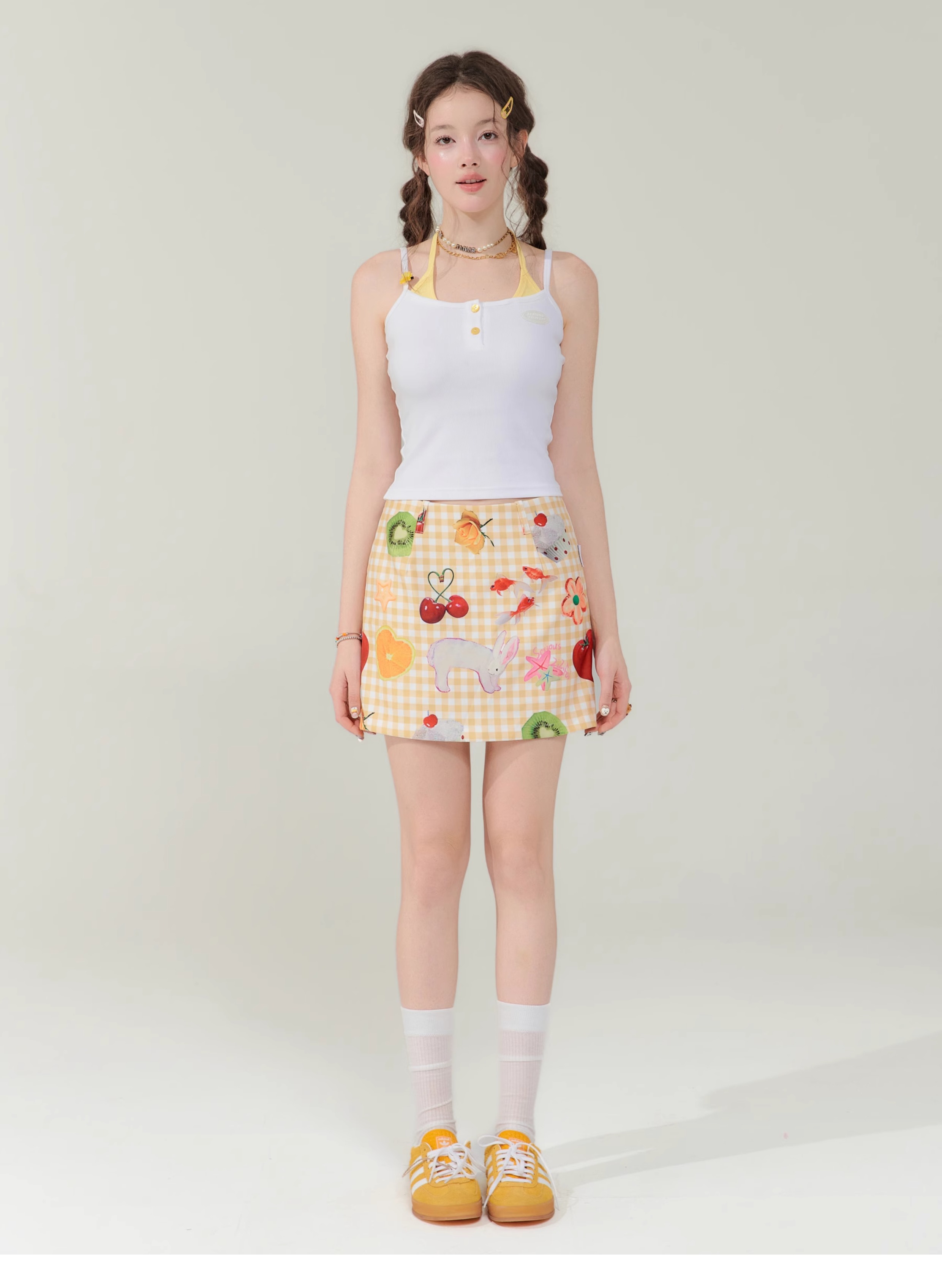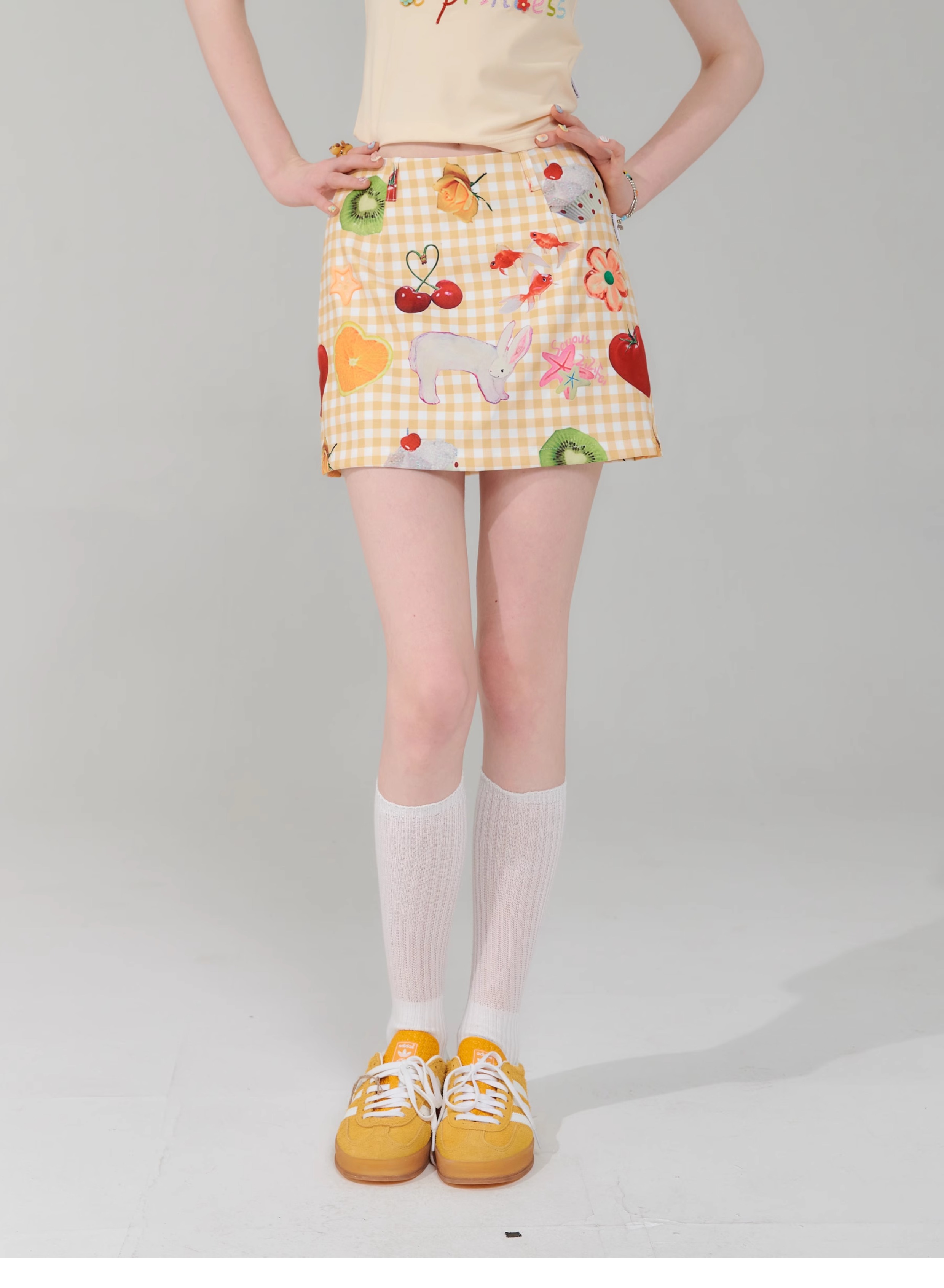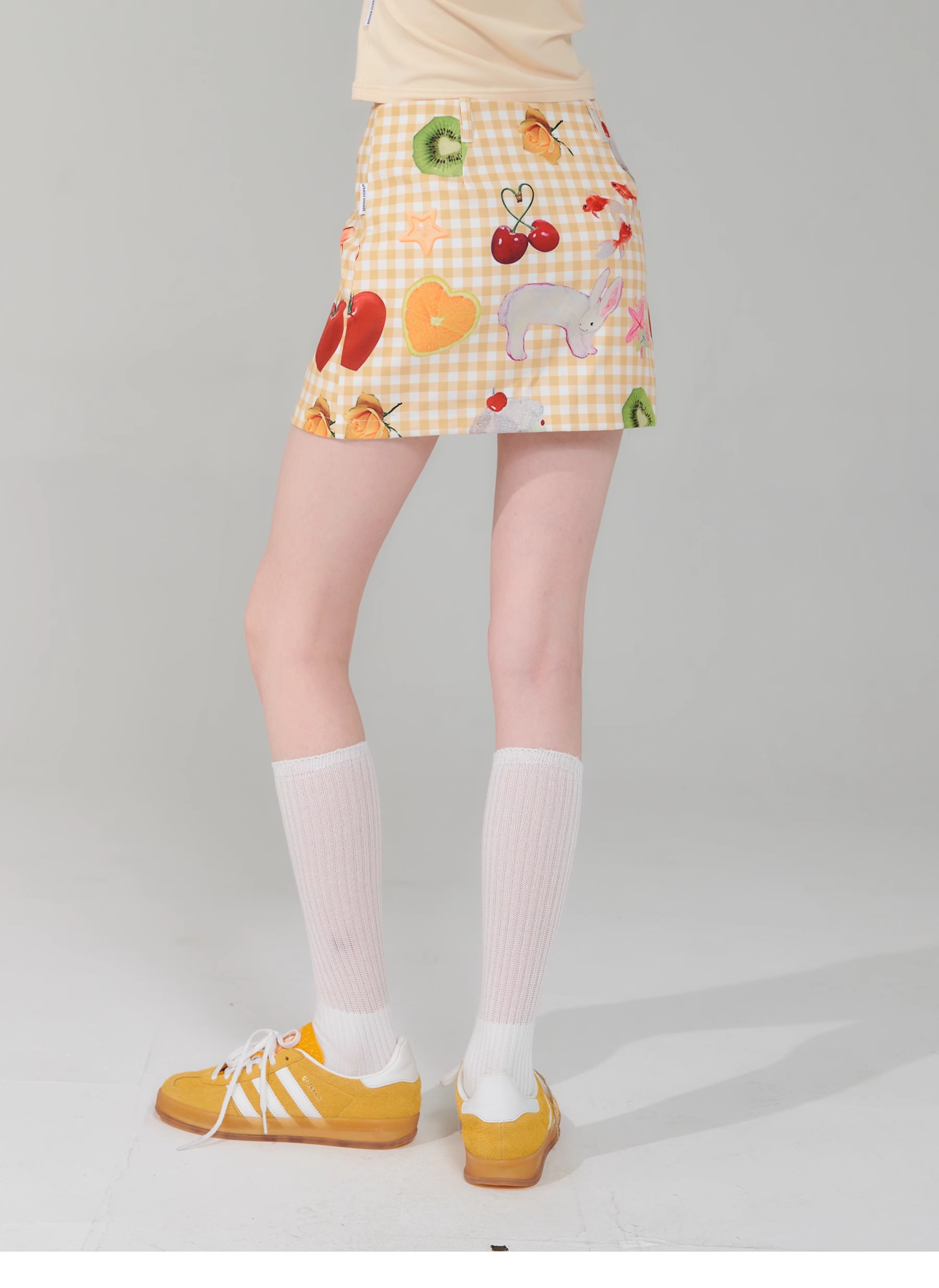 Jupe courte à imprimé fruits | Rétro jaune taille haute Slim Fit Style d’été