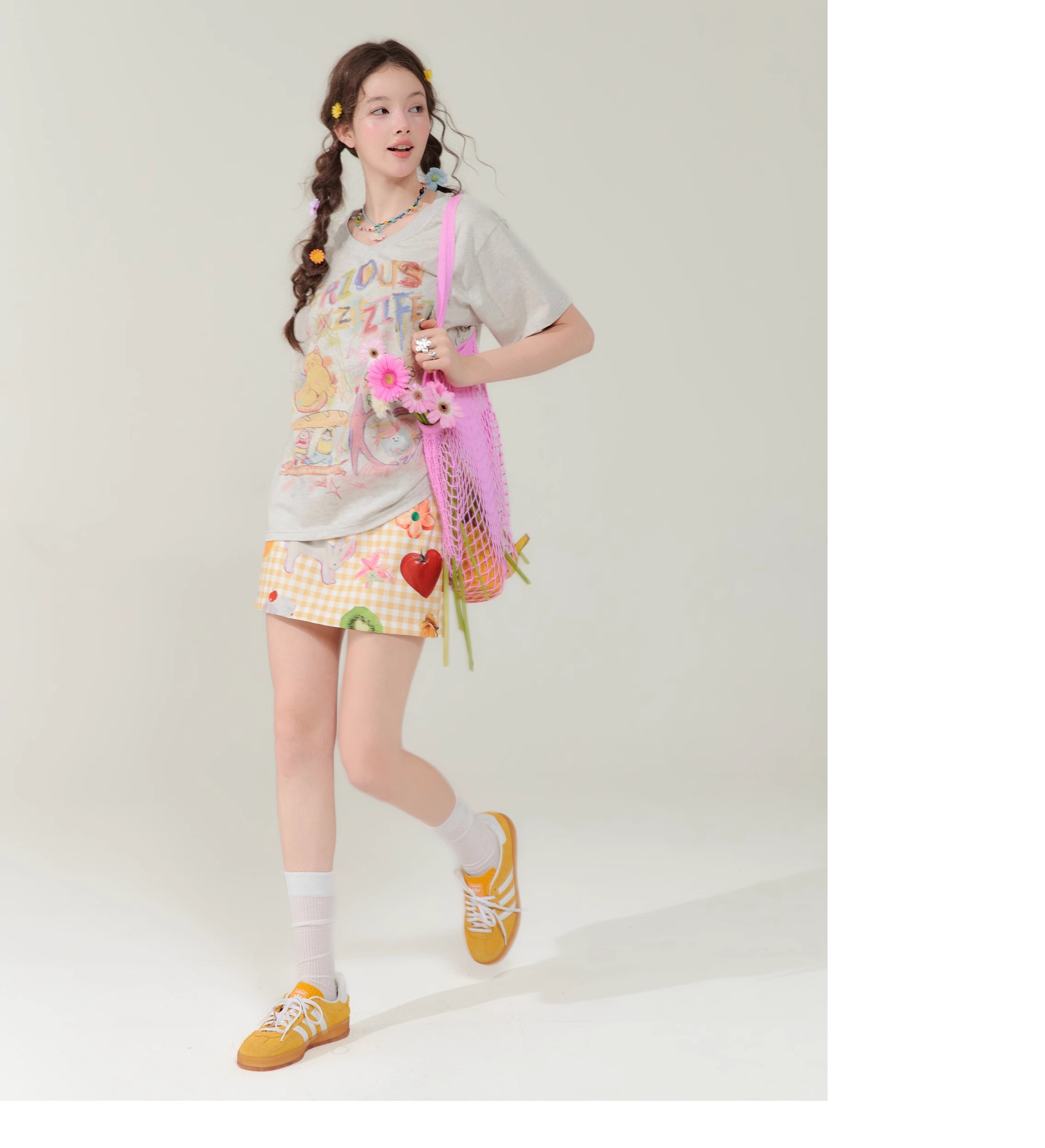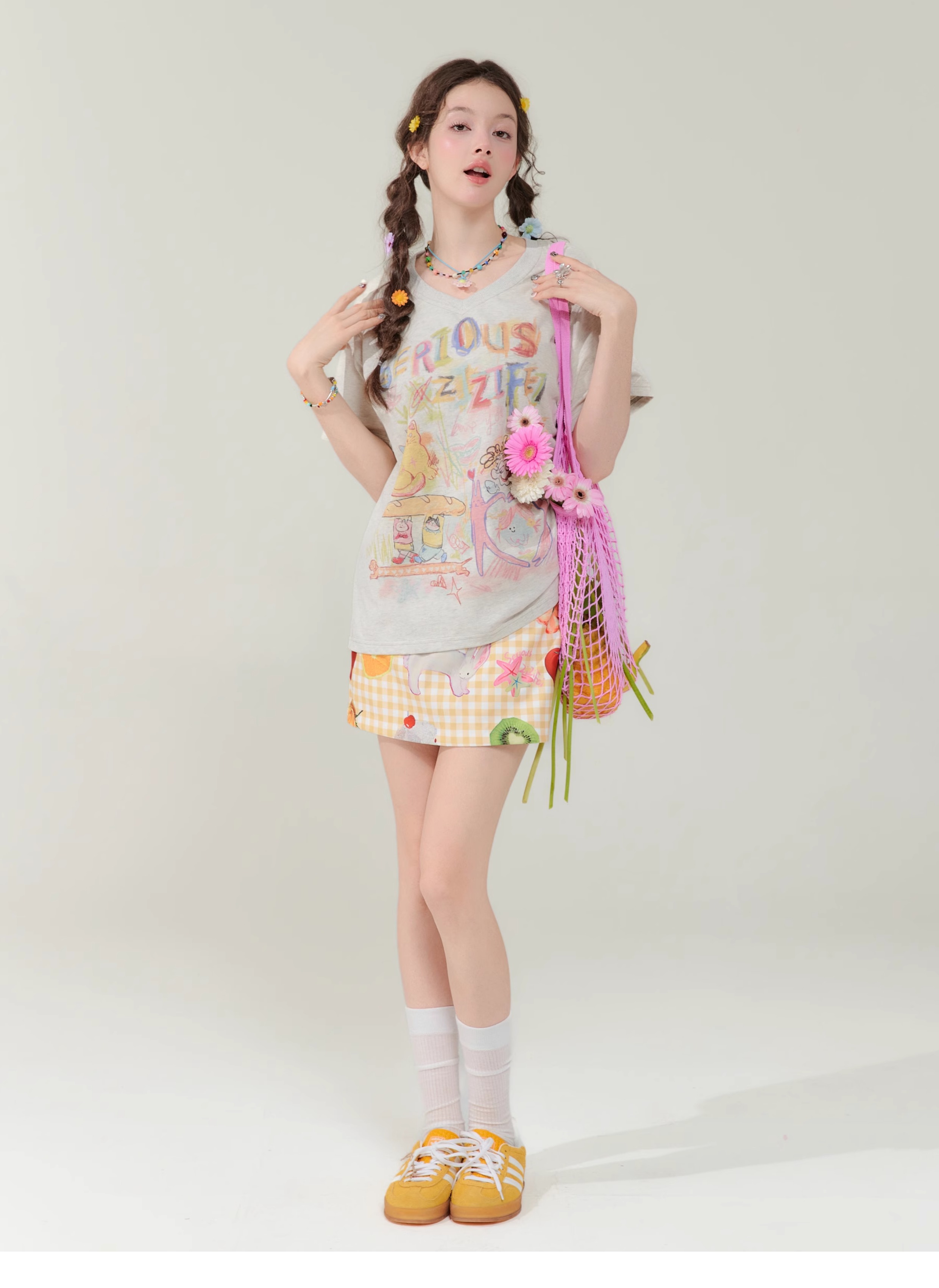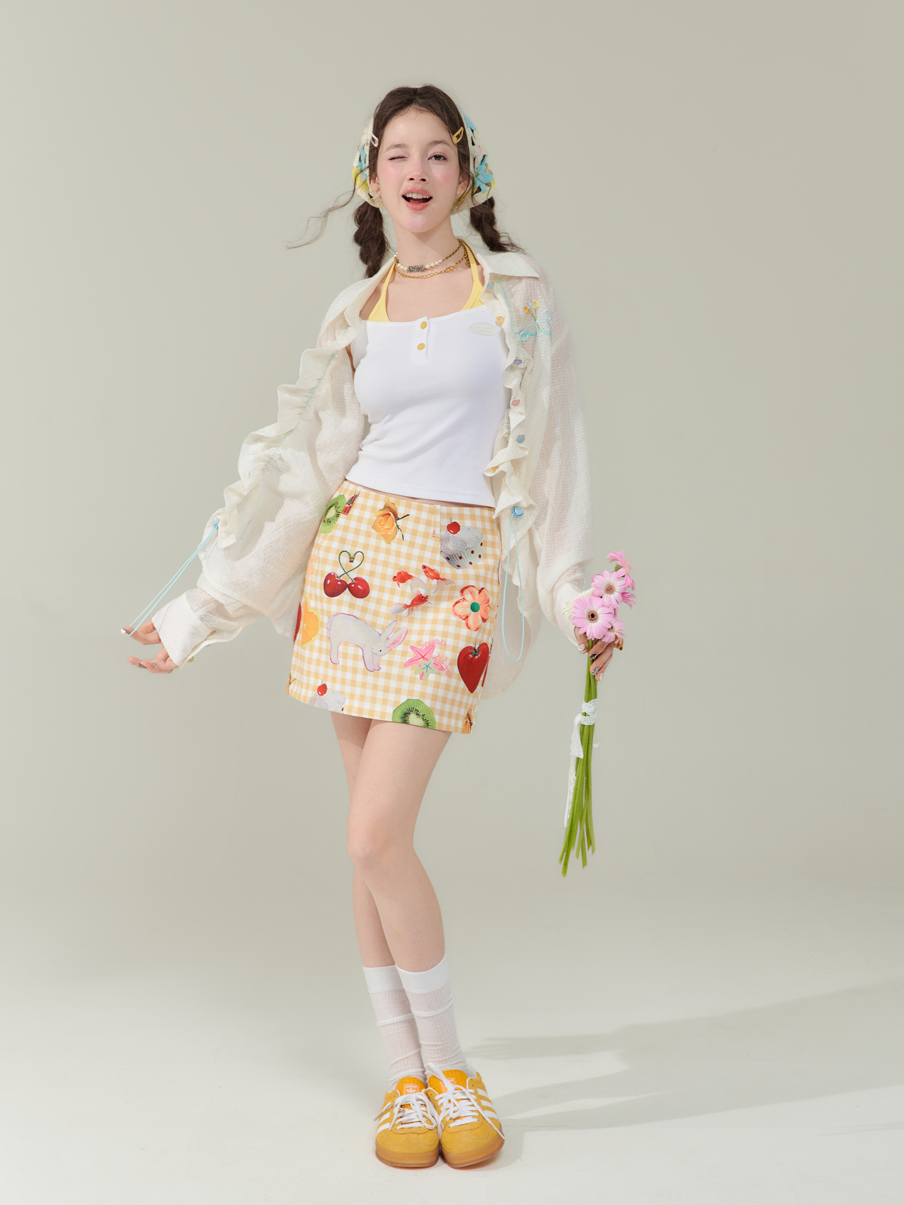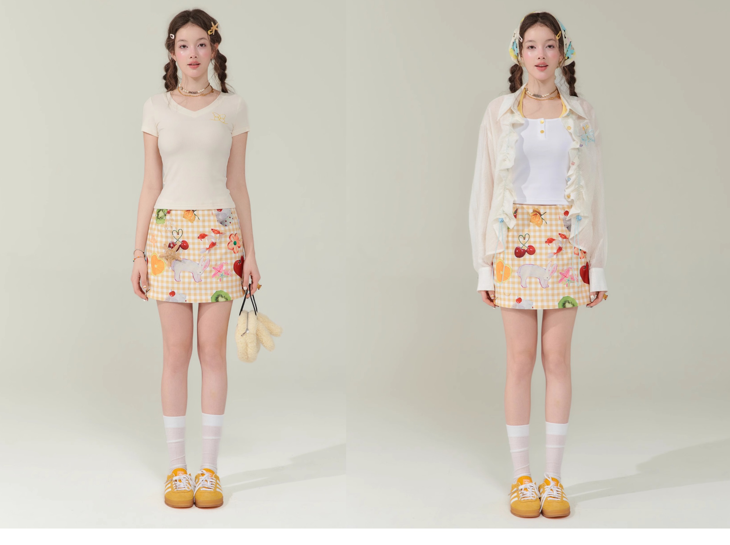 Jupe courte à imprimé fruits | Rétro jaune taille haute Slim Fit Style d’été