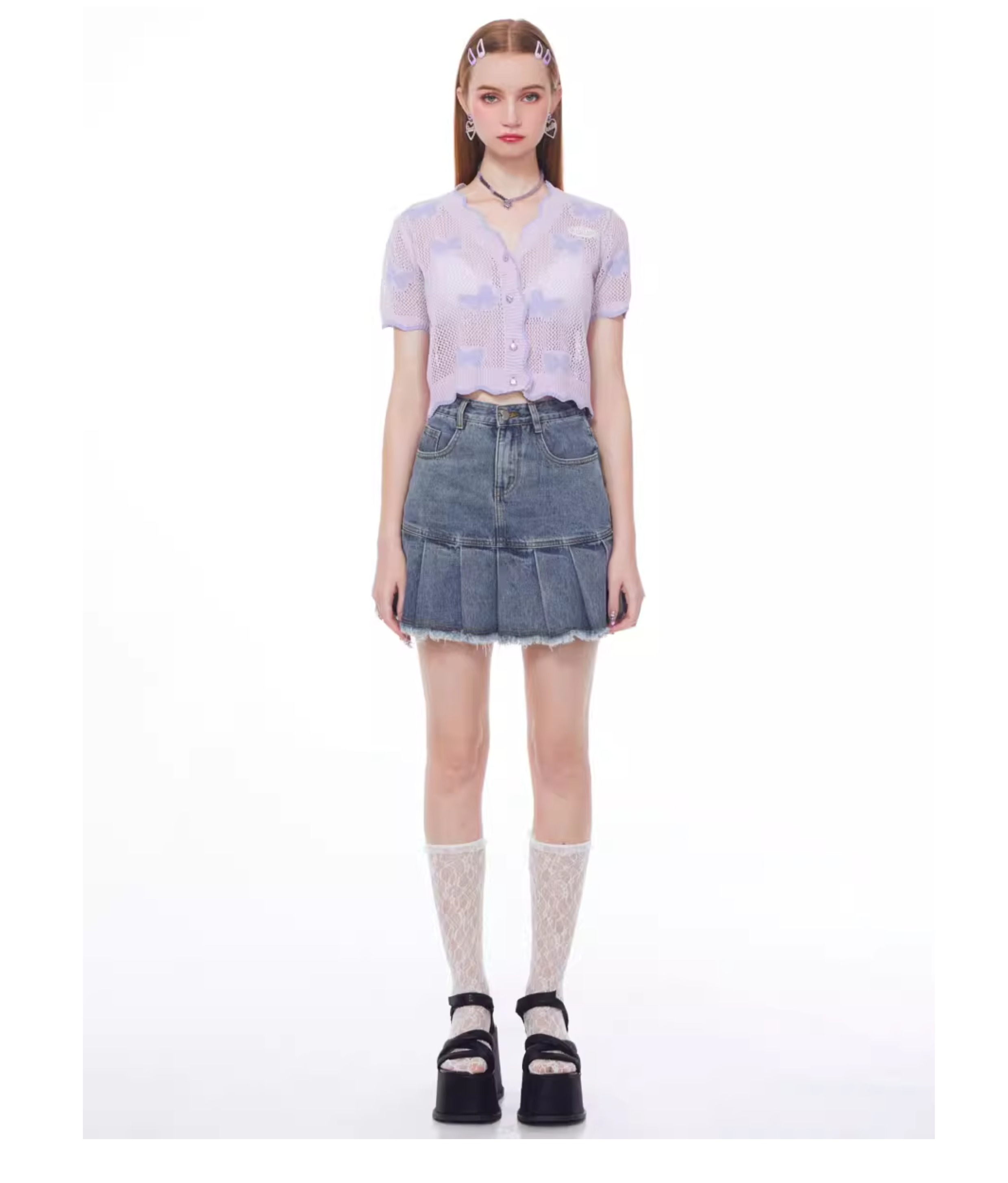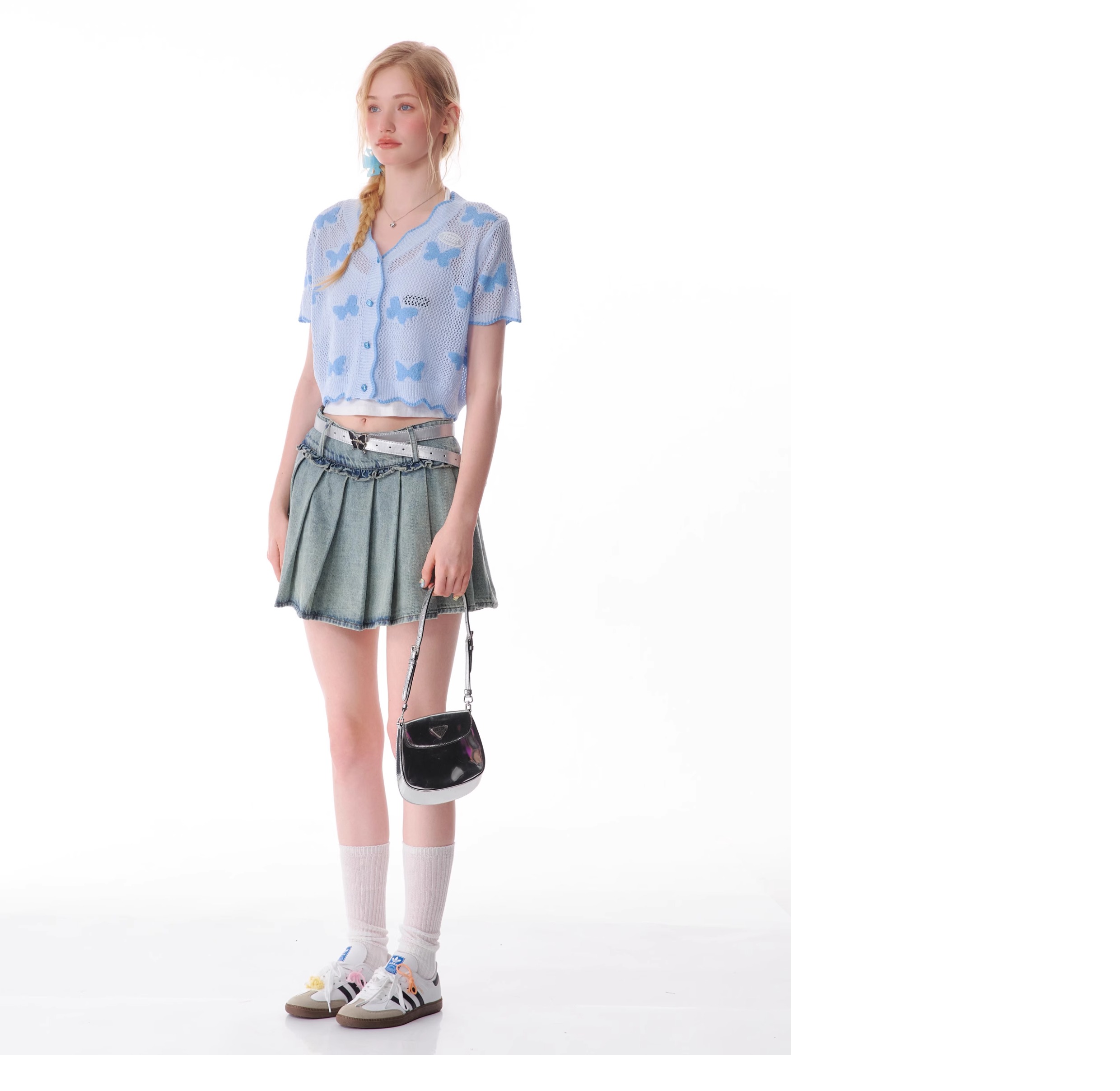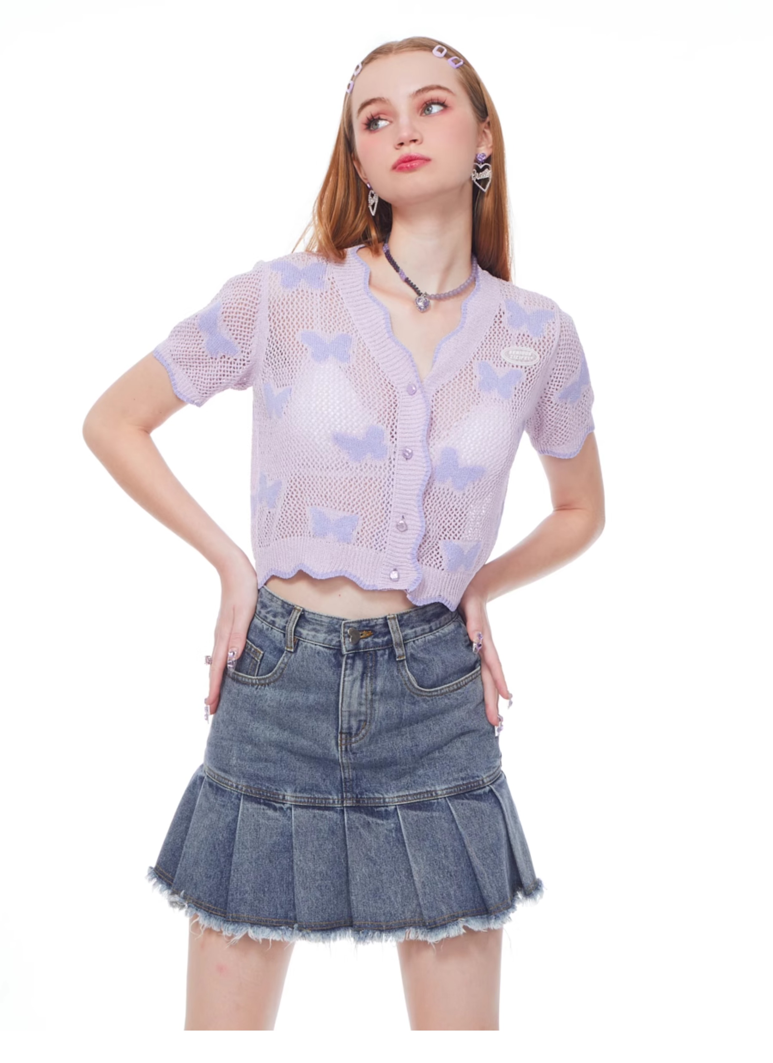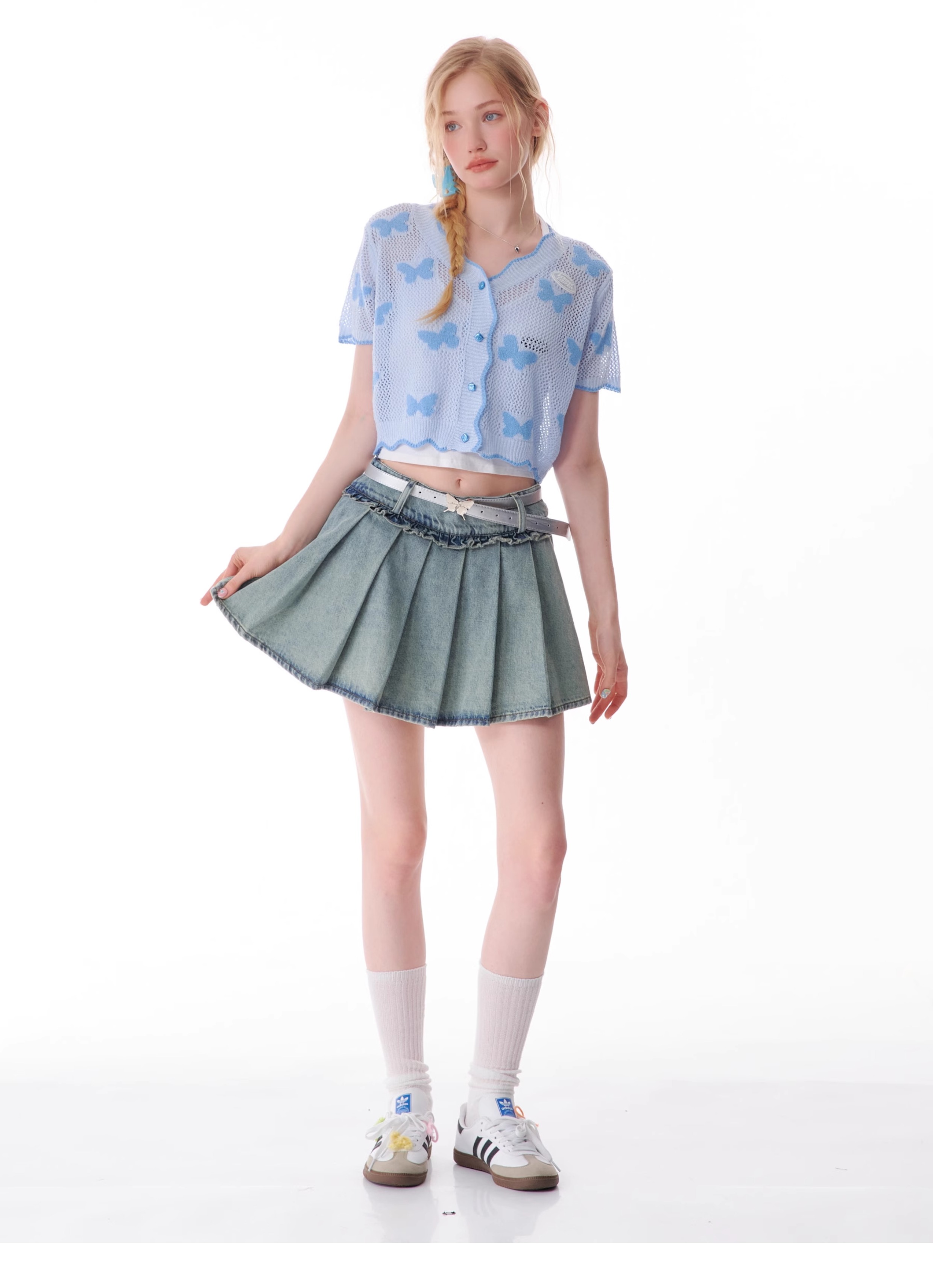 T-shirt à manches courtes tricoté creux papillon | Cardigan de protection solaire rétro d'été