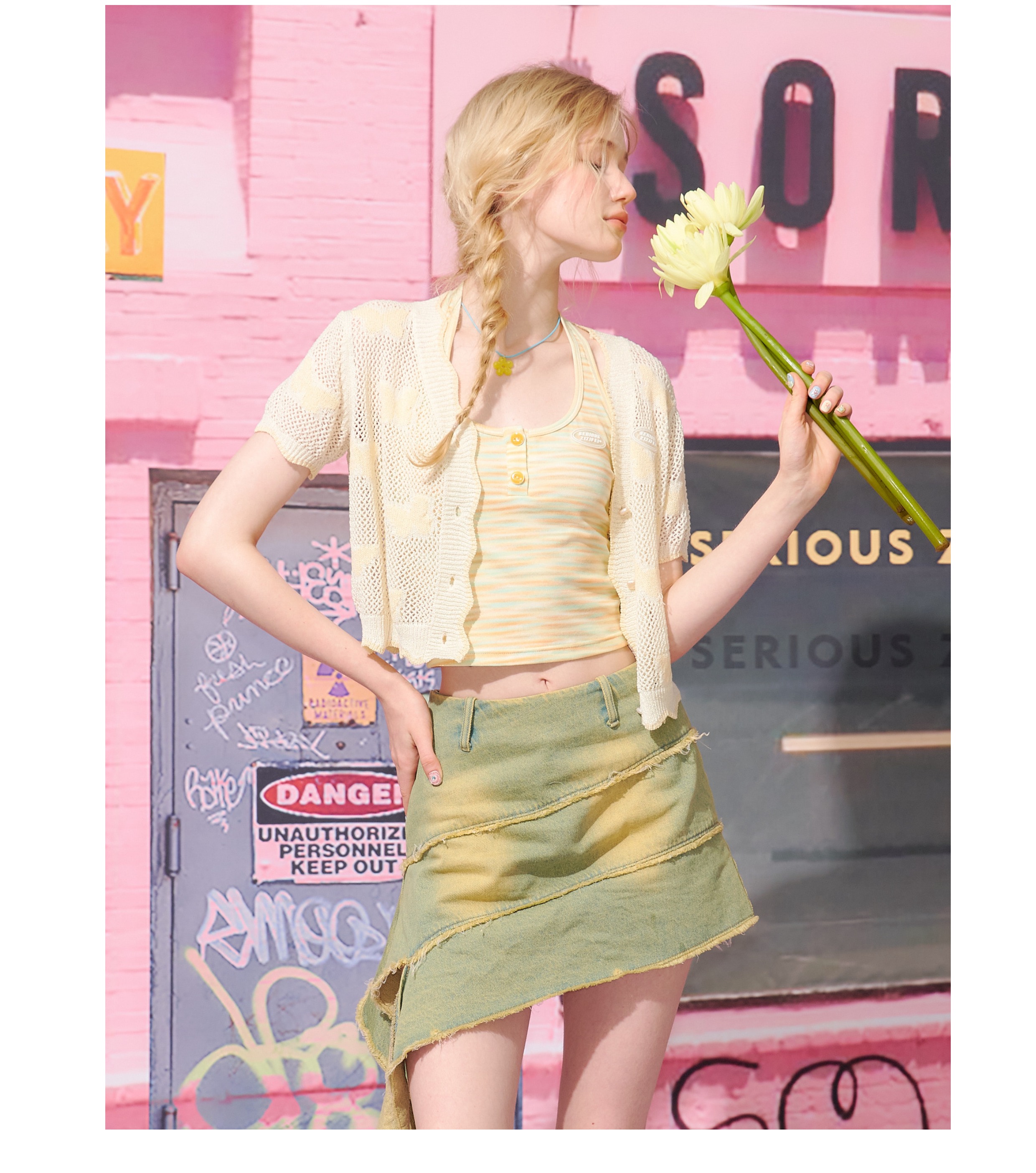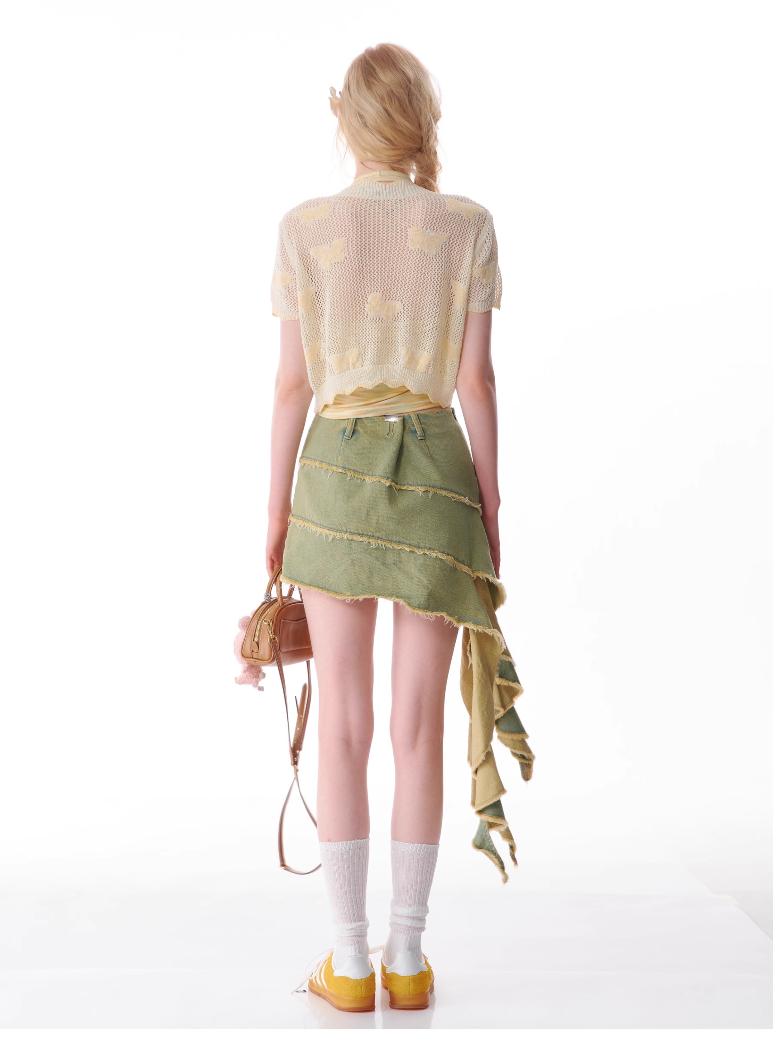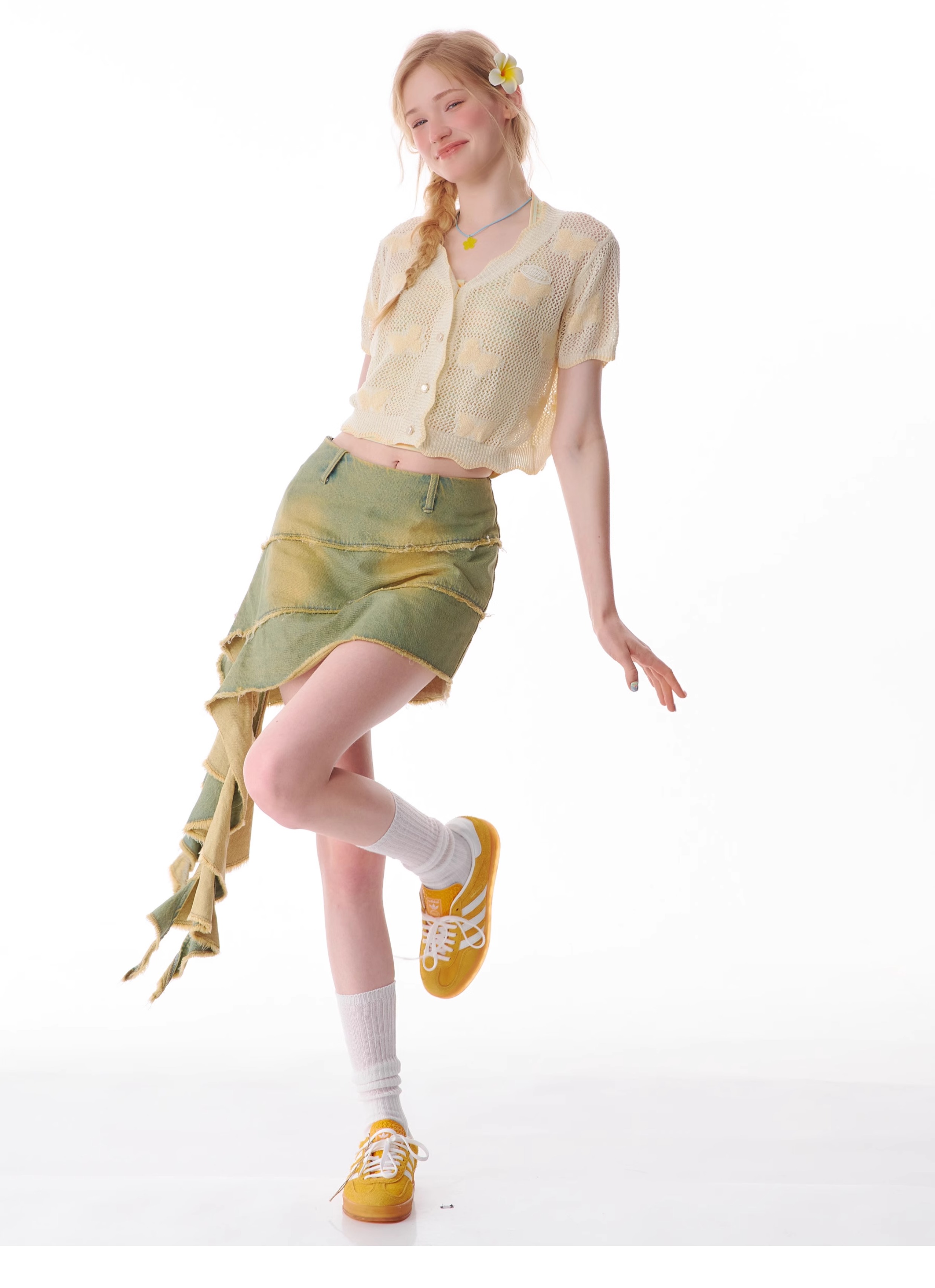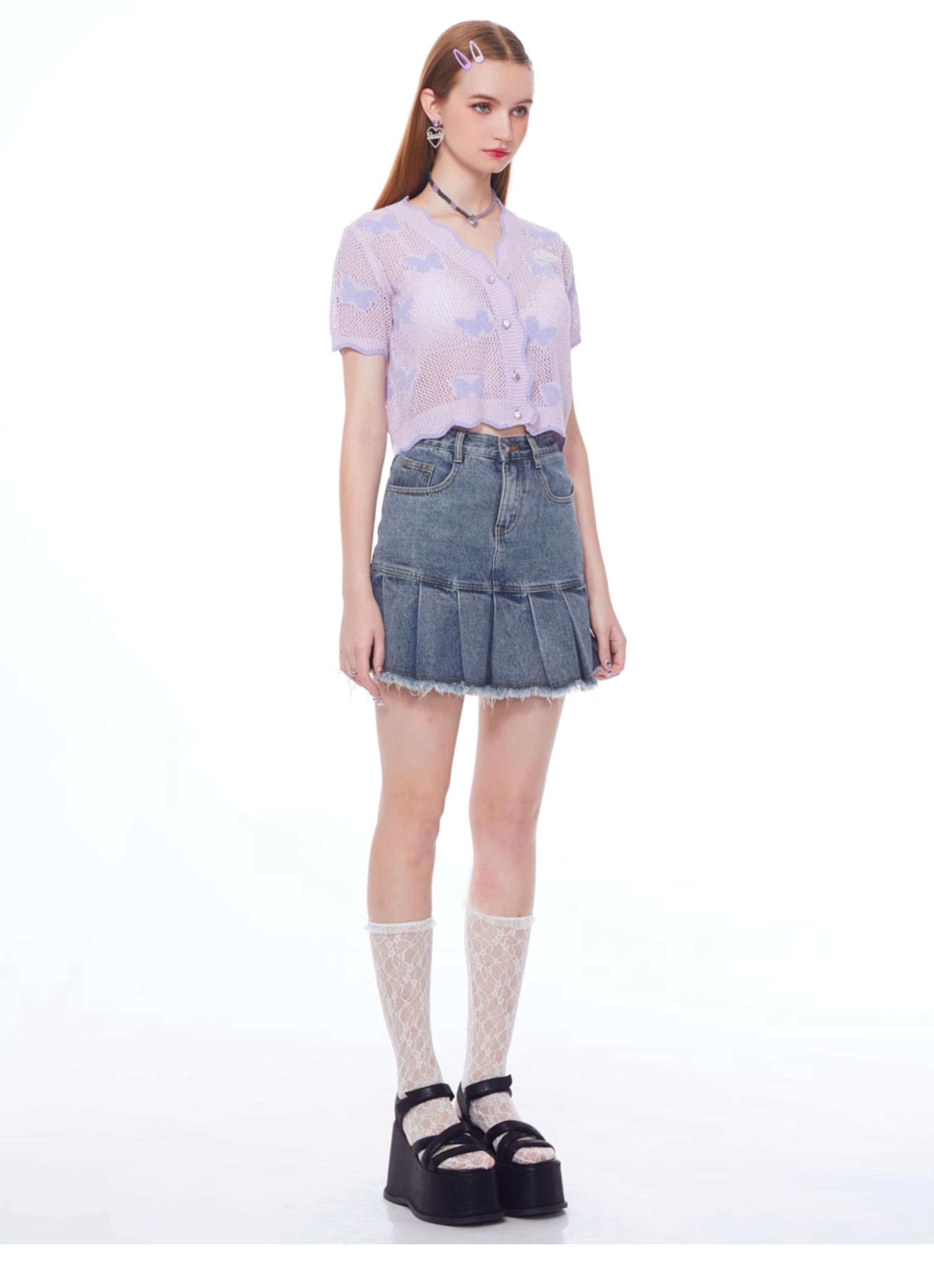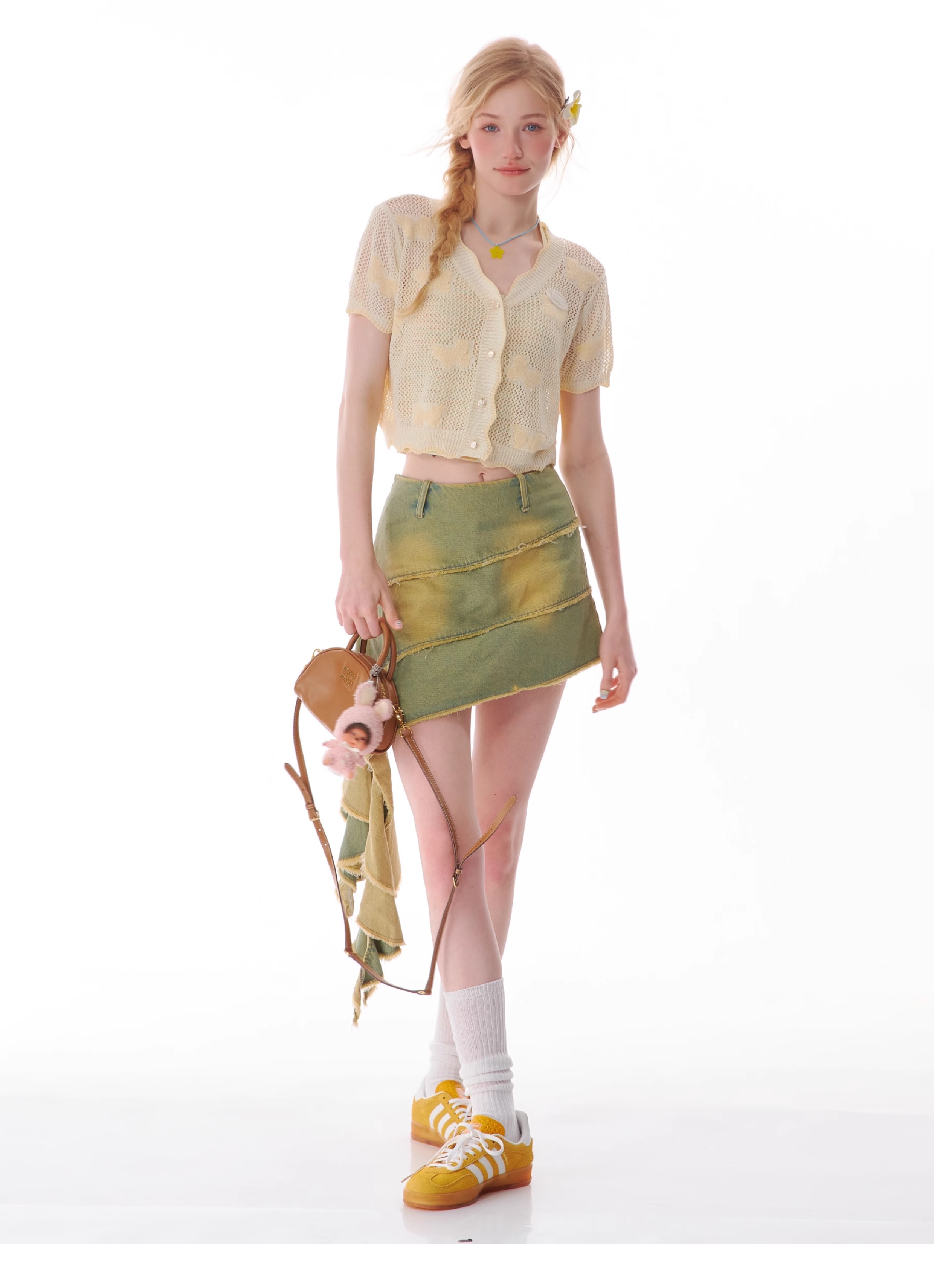 T-shirt à manches courtes tricoté creux papillon | Cardigan de protection solaire rétro d'été