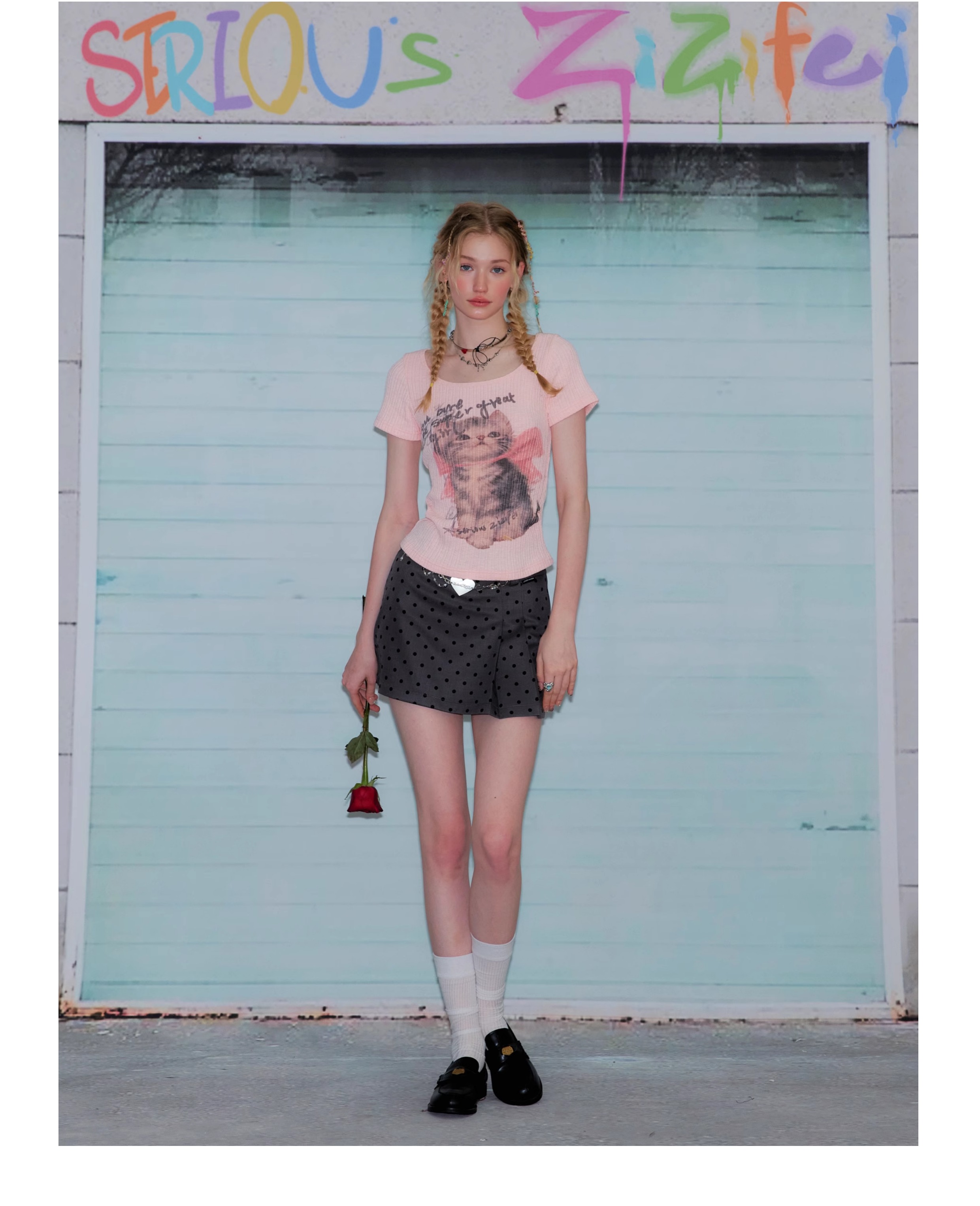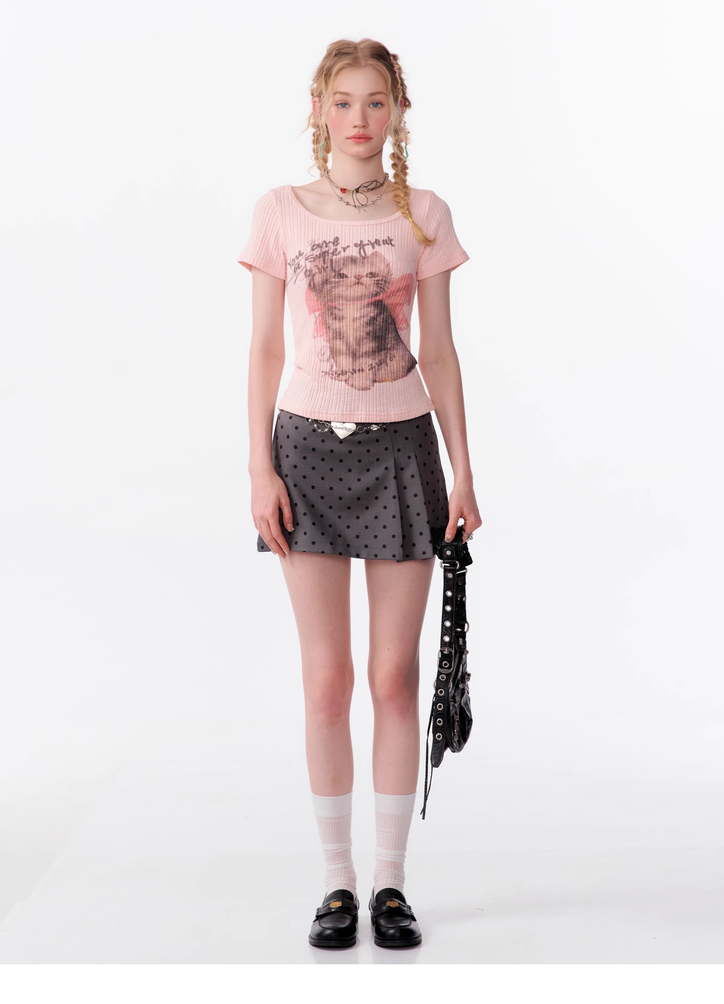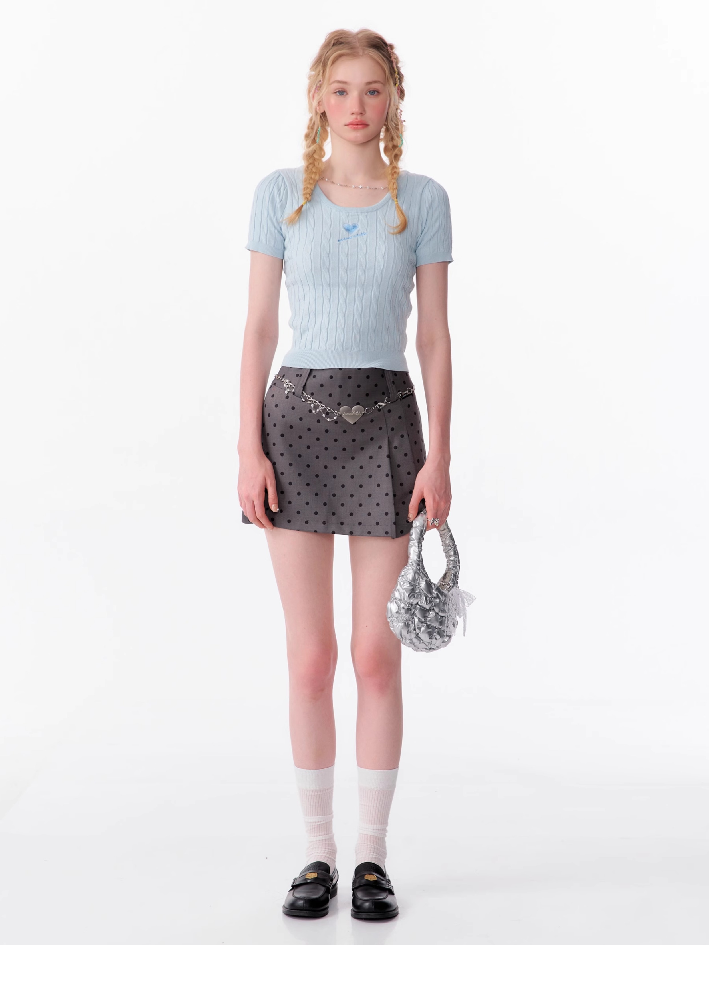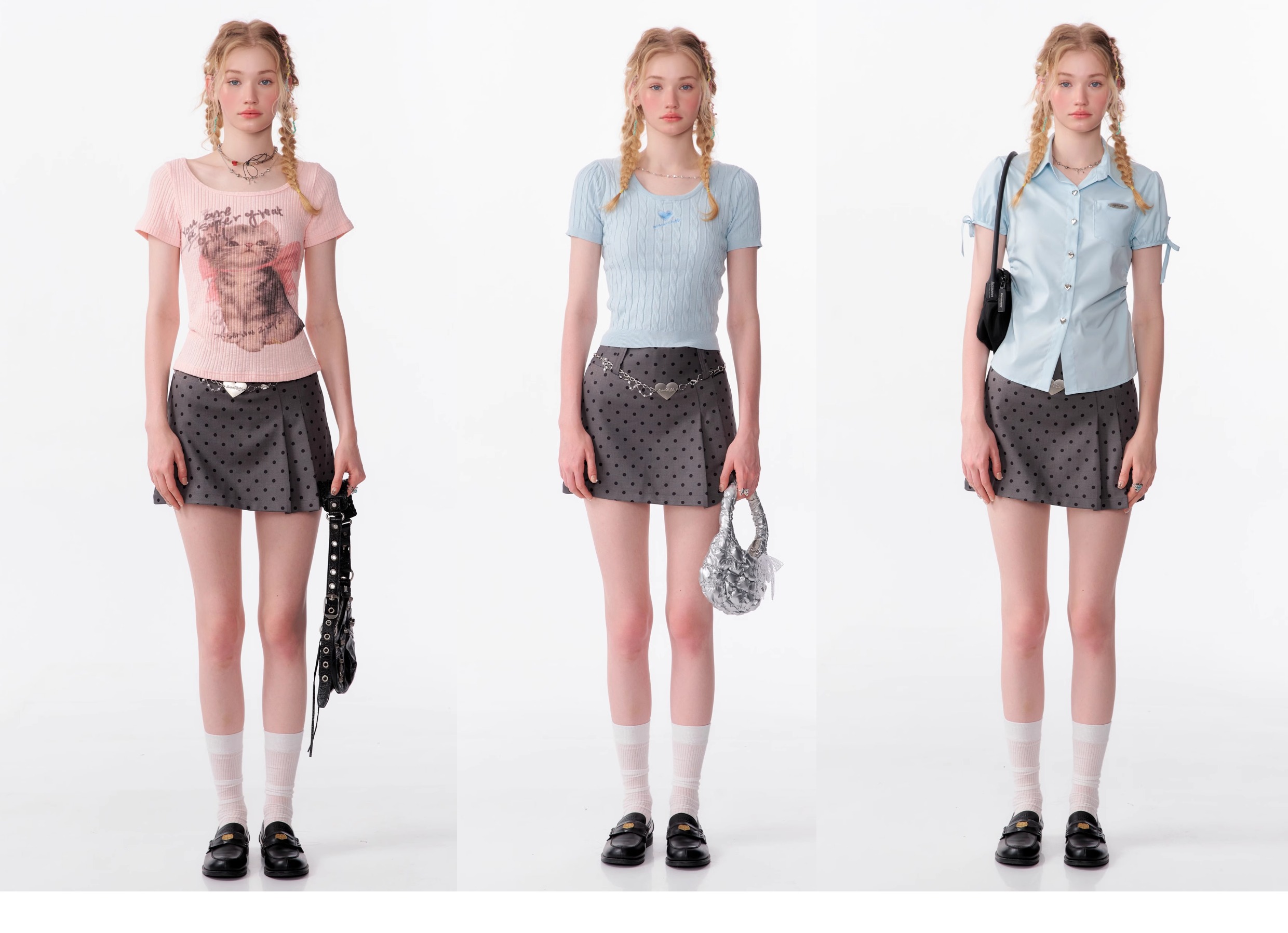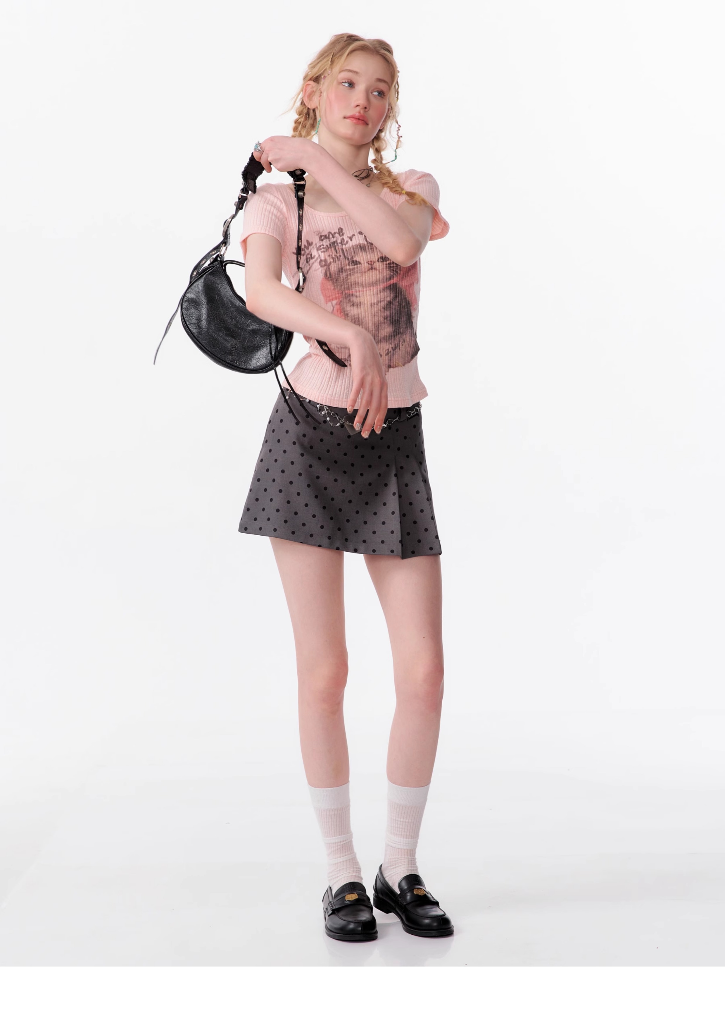 Ensemble jupe trapèze à pois noir et gris | Rétro taille haute Slim Fit Style d'été