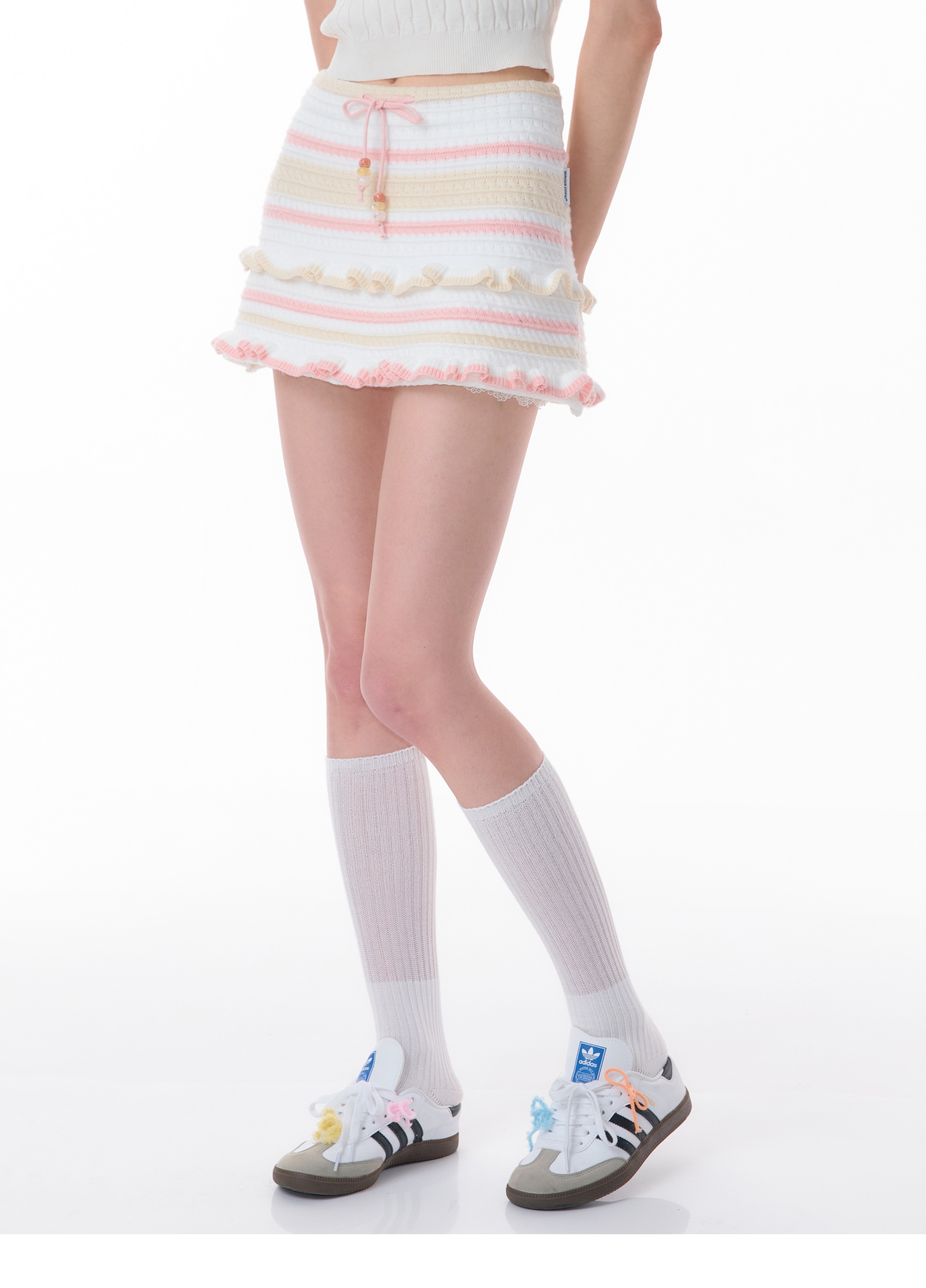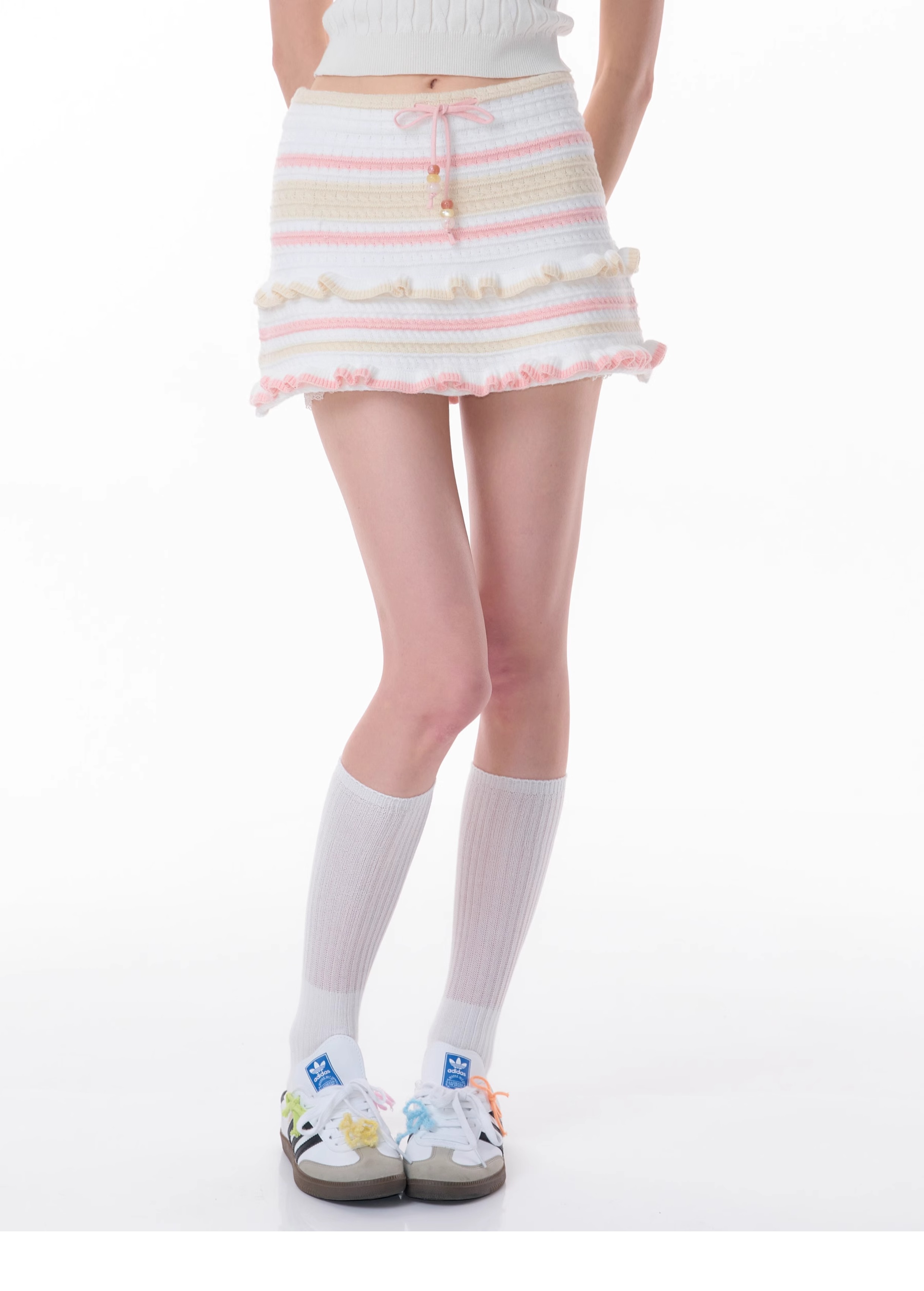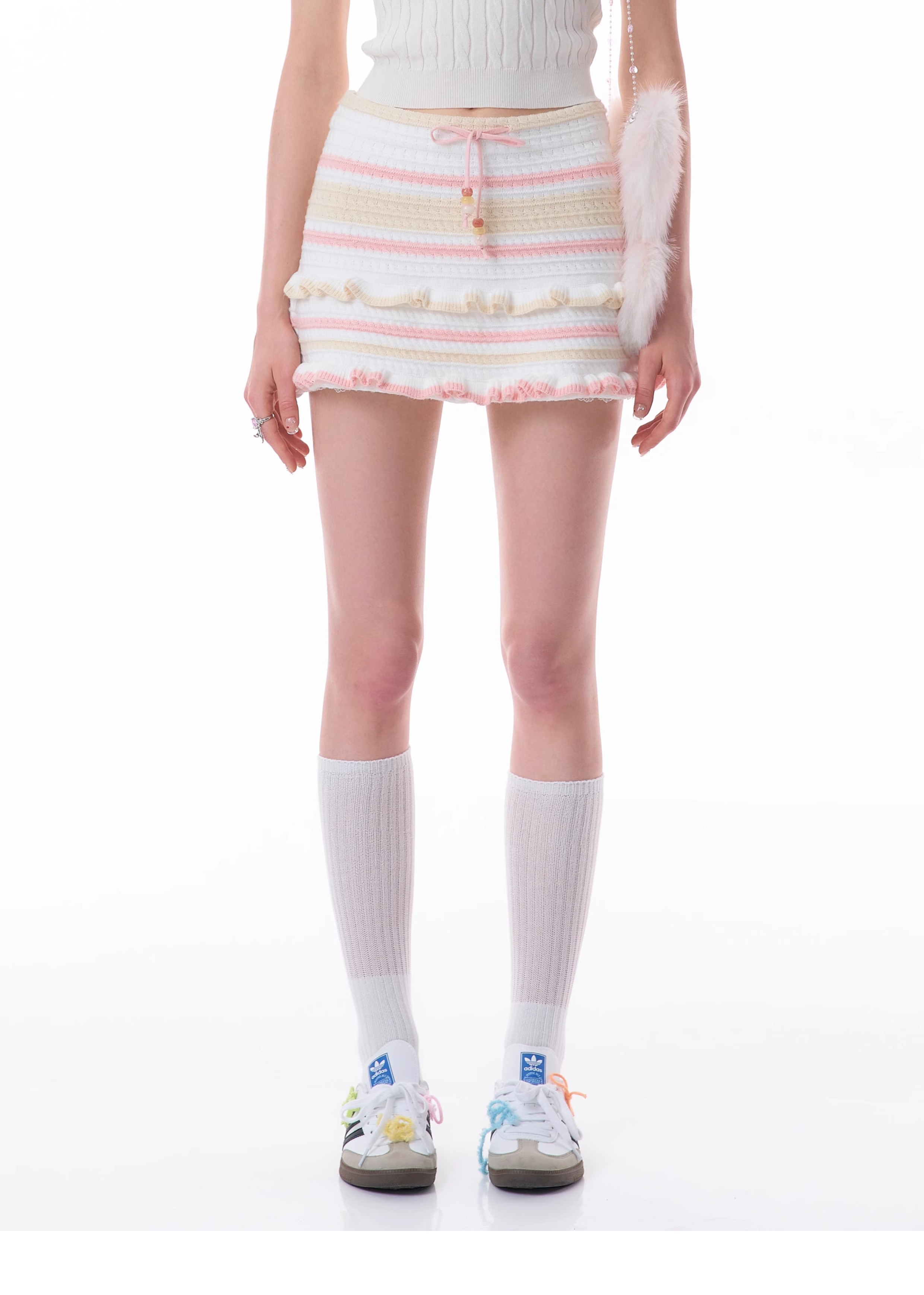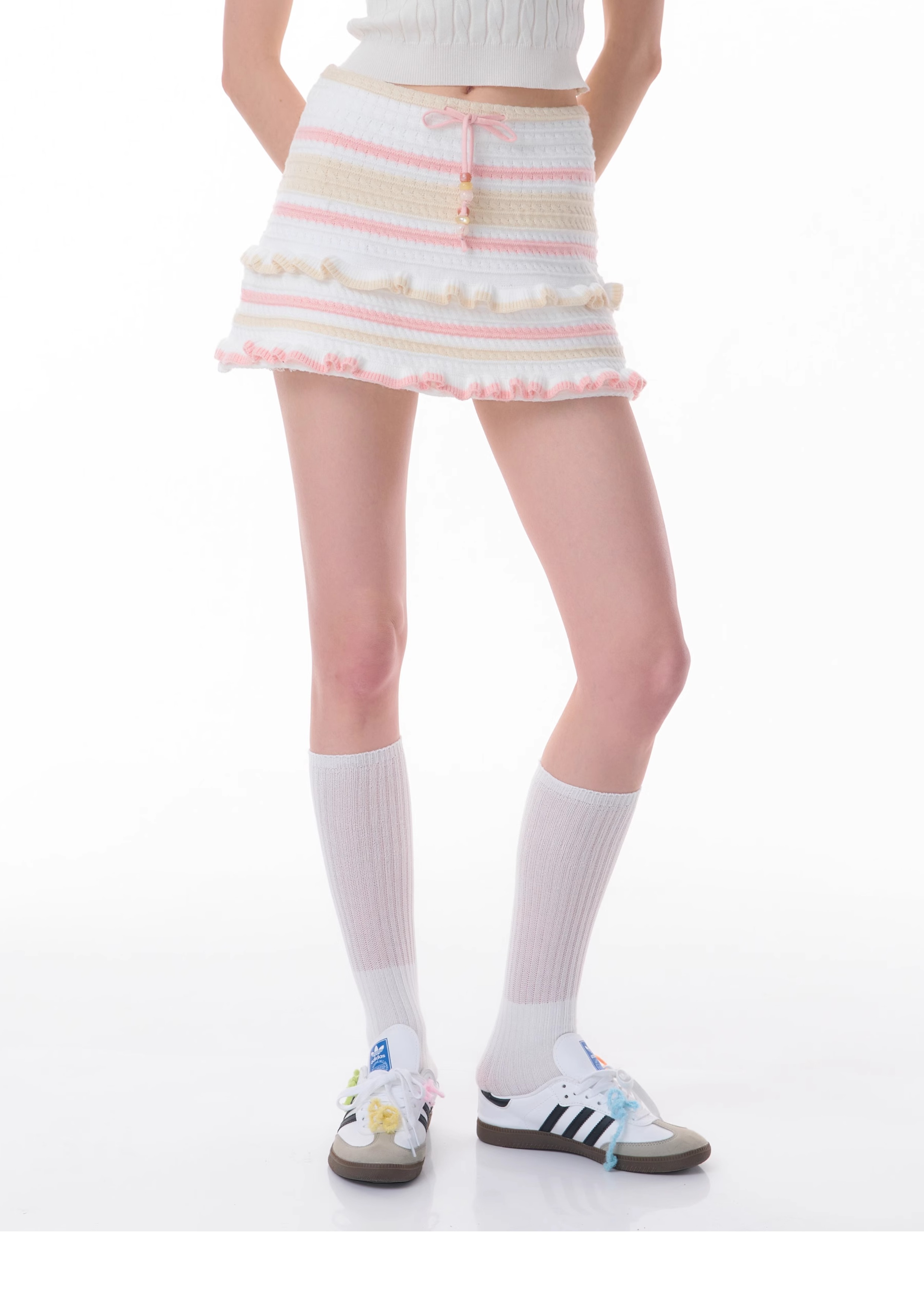Jupe en tricot rayée taille haute contraste rose coupe ajustée style d'été
