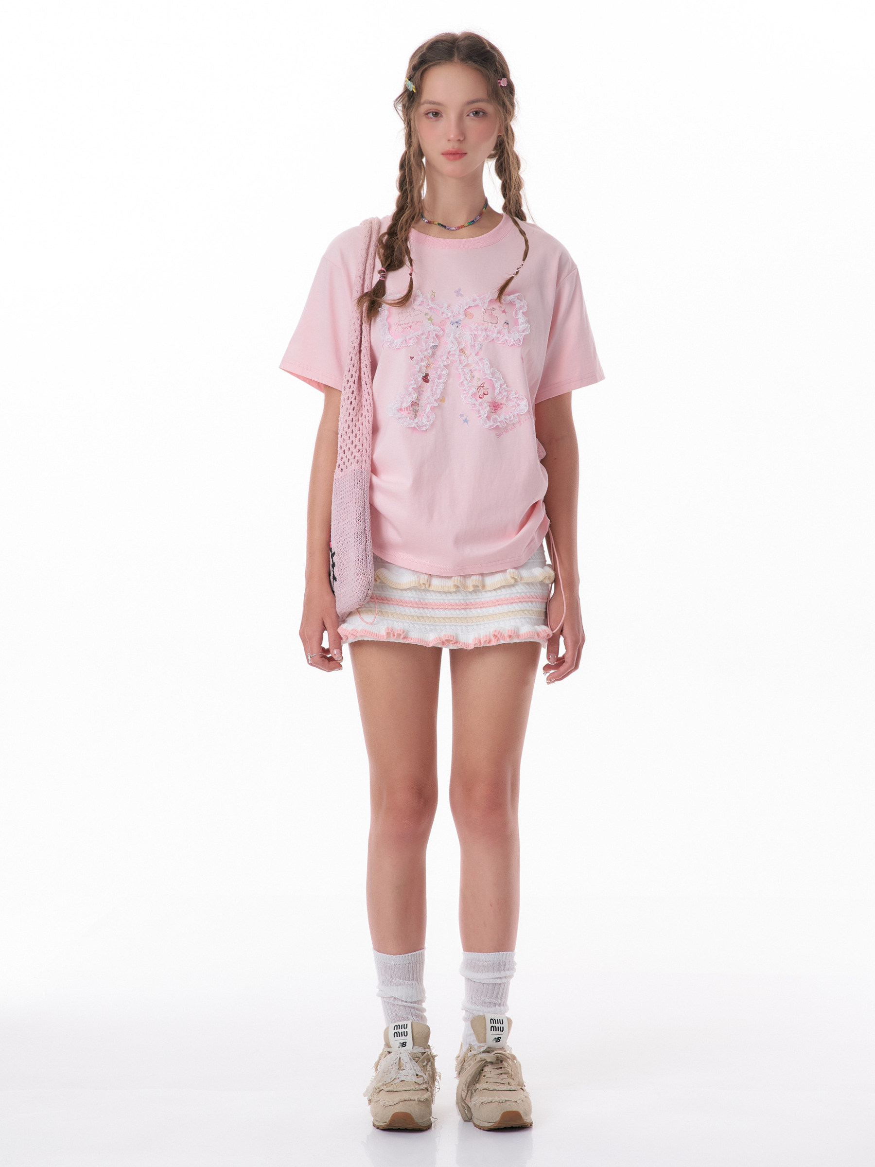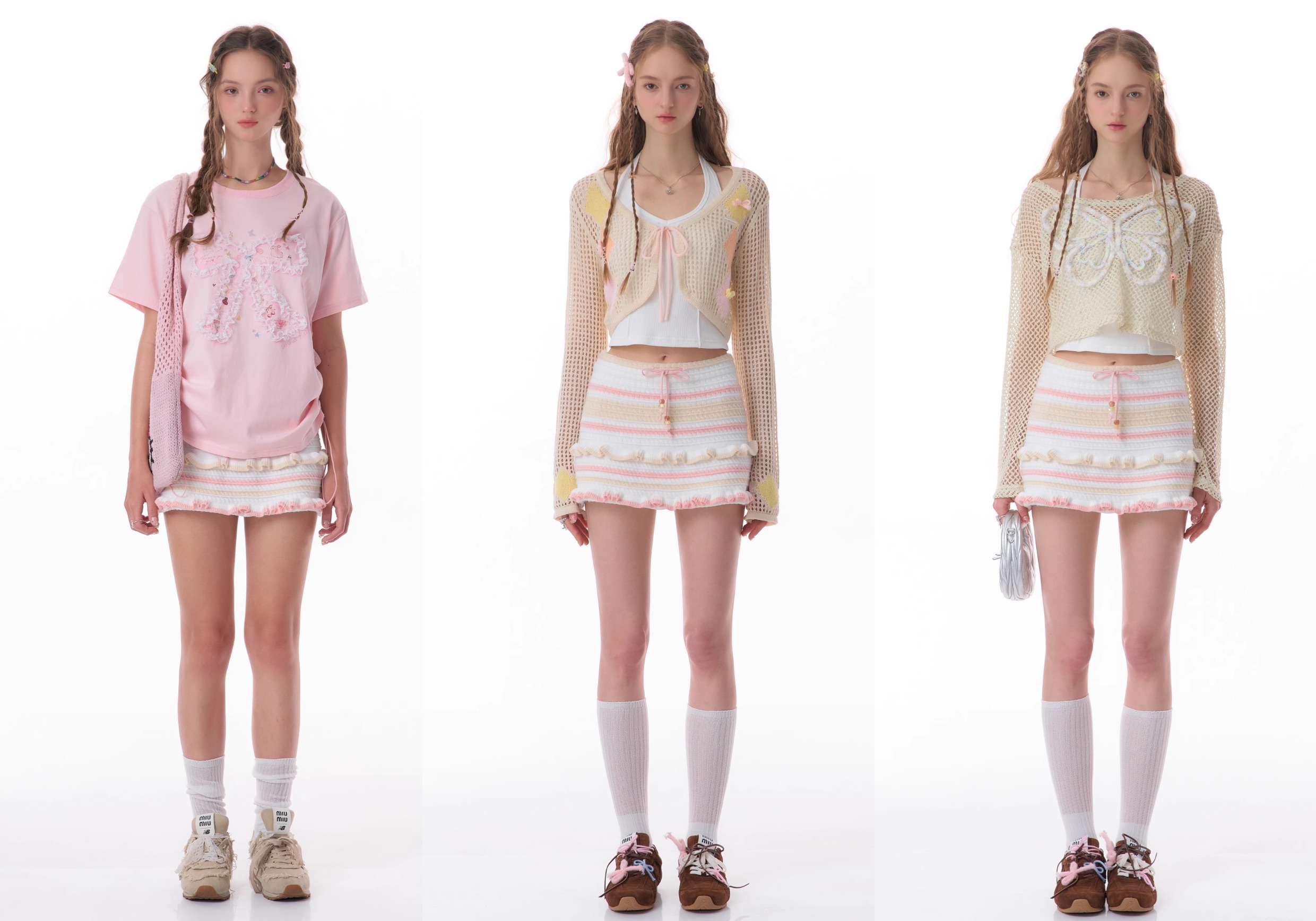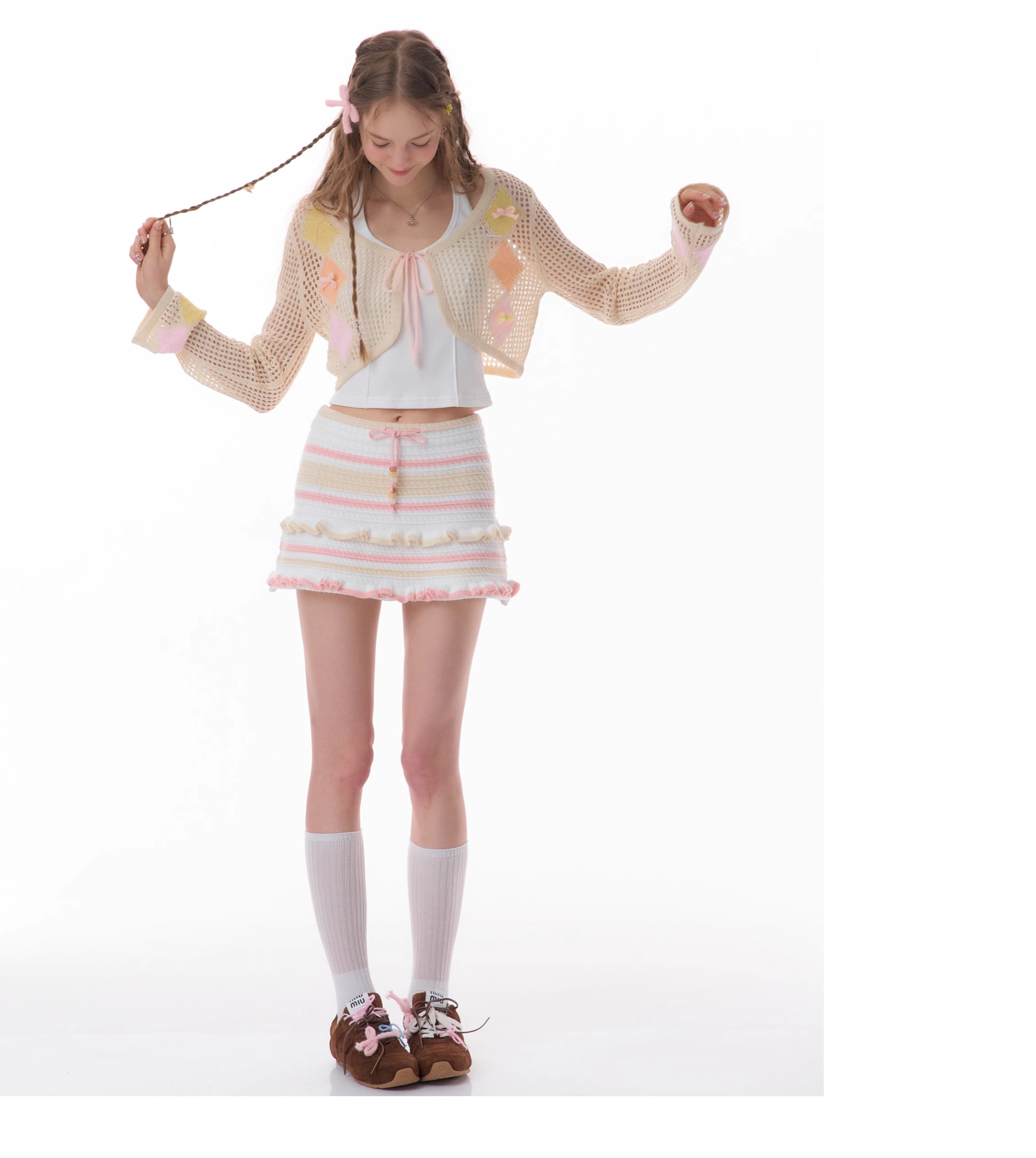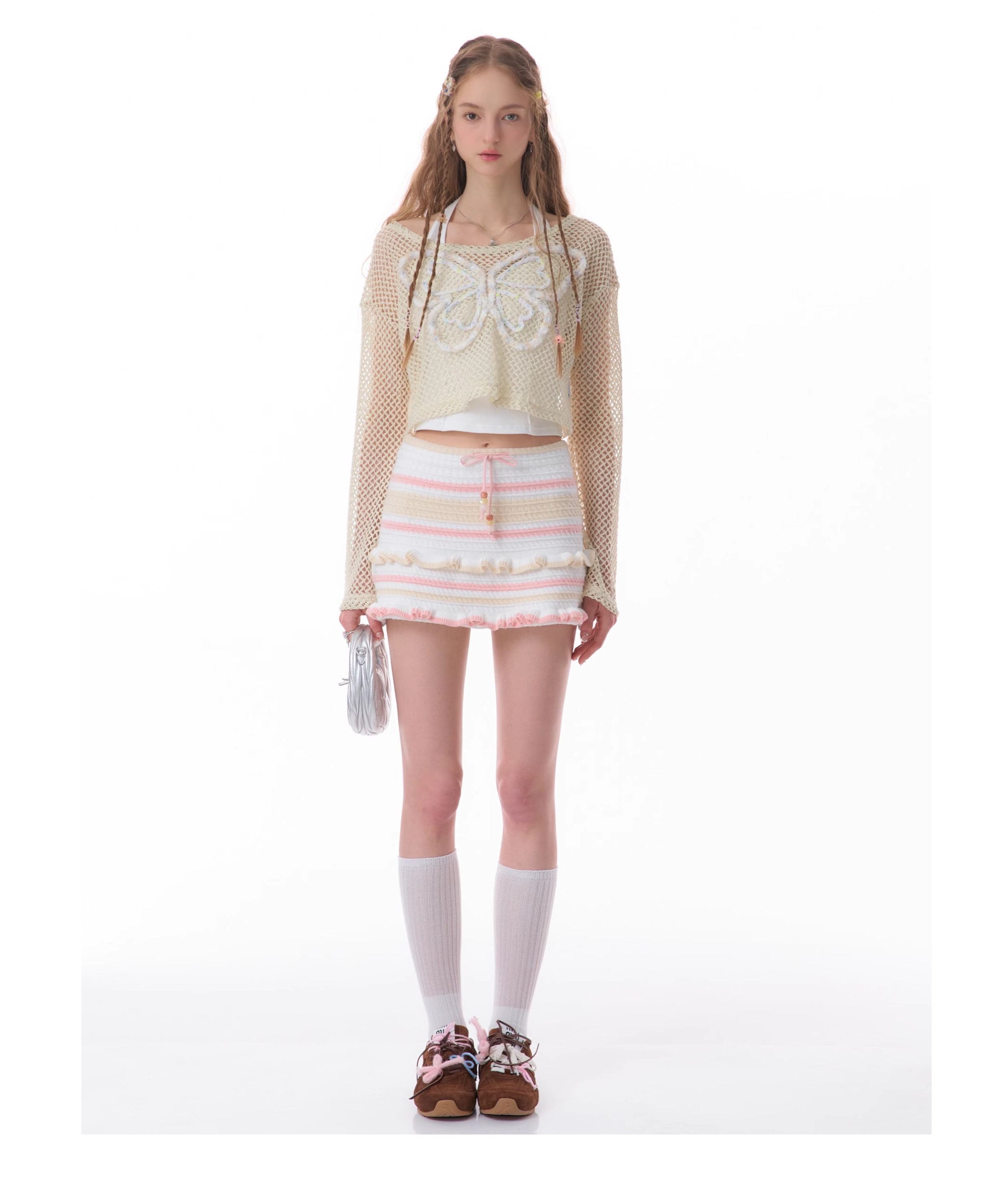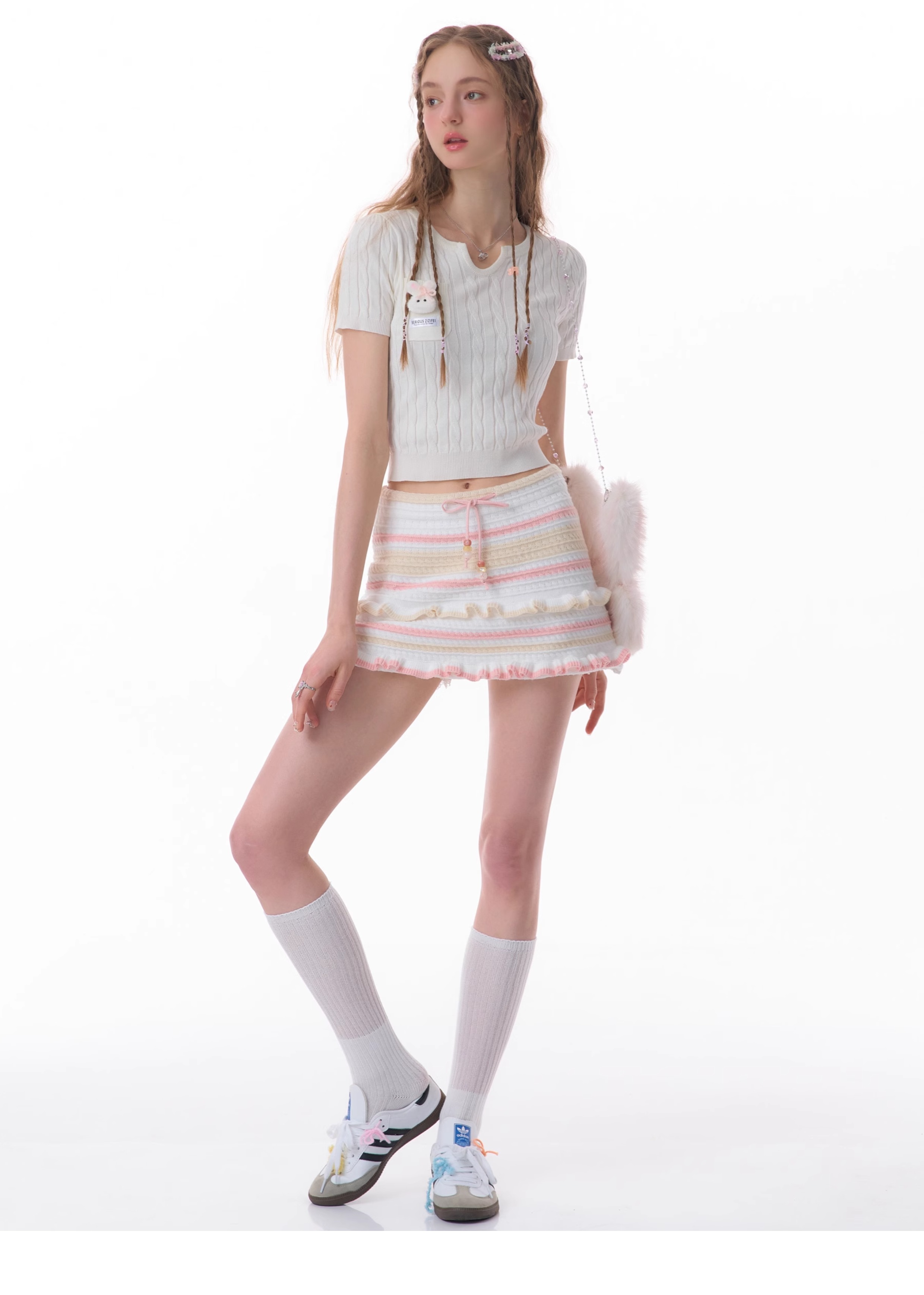 Jupe en tricot rayée taille haute contraste rose coupe ajustée style d'été