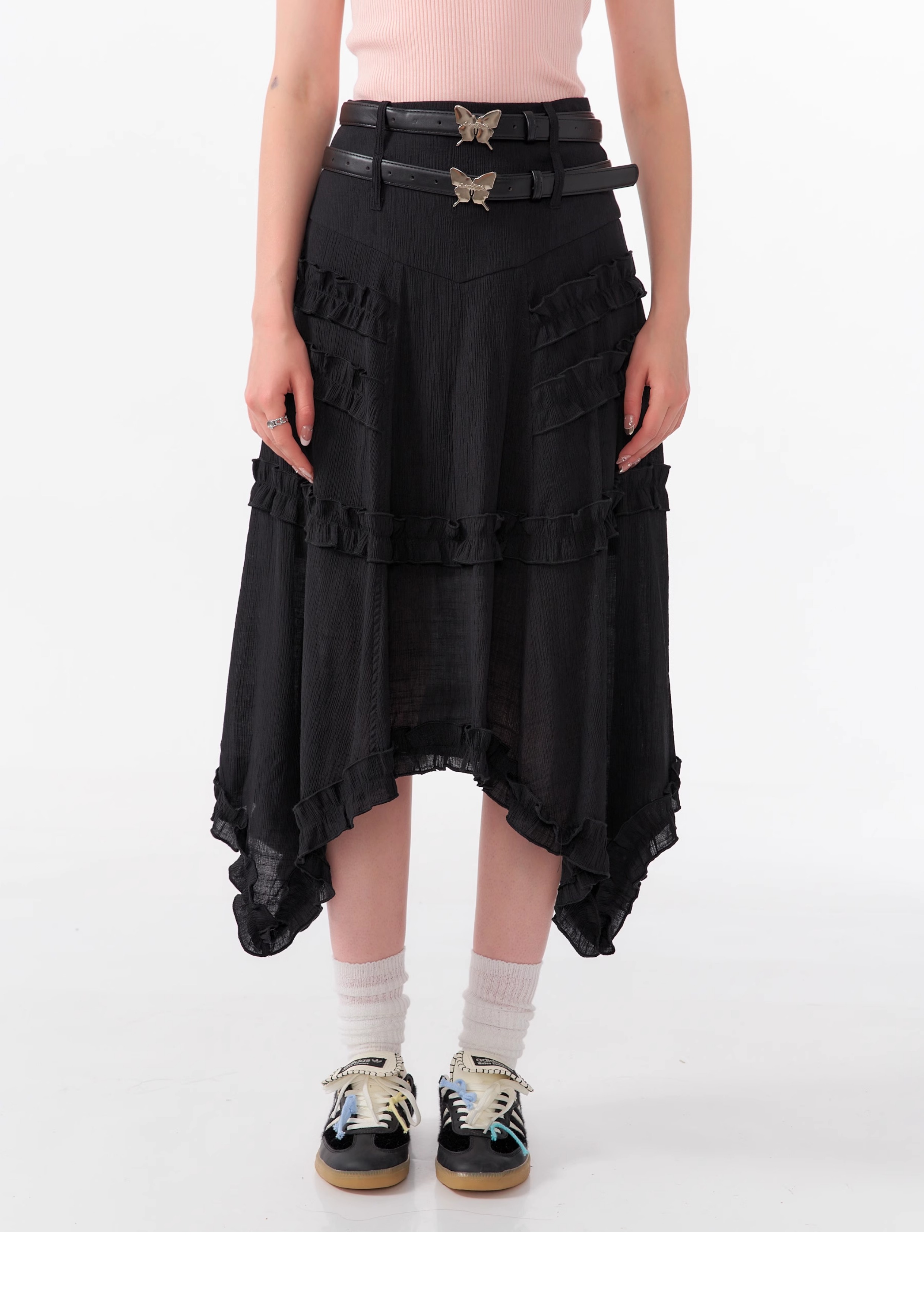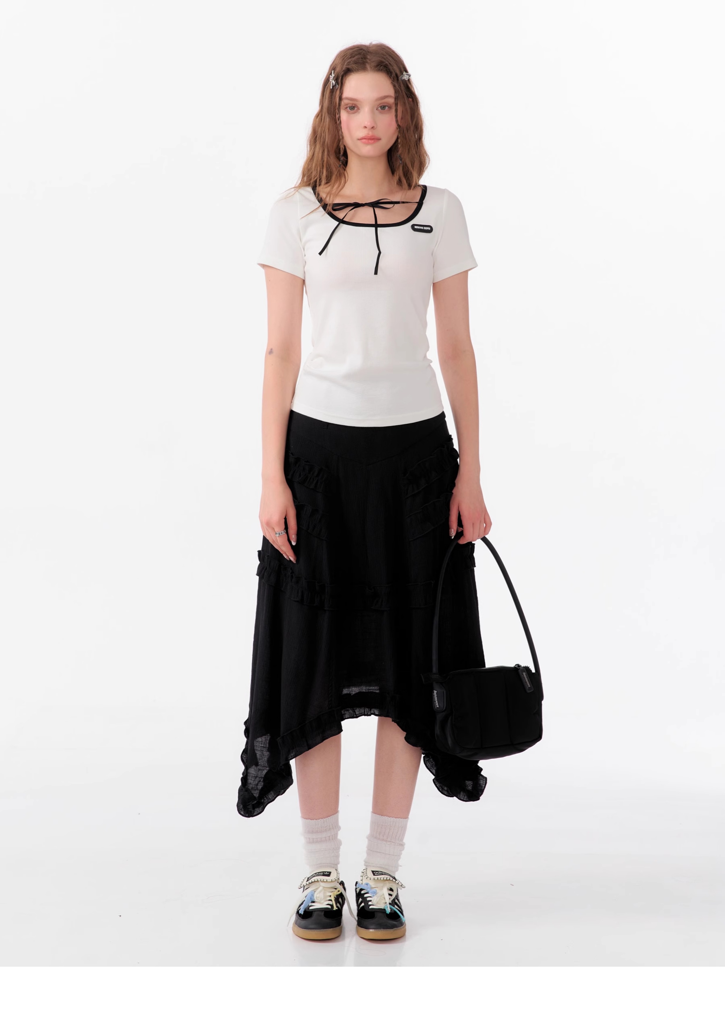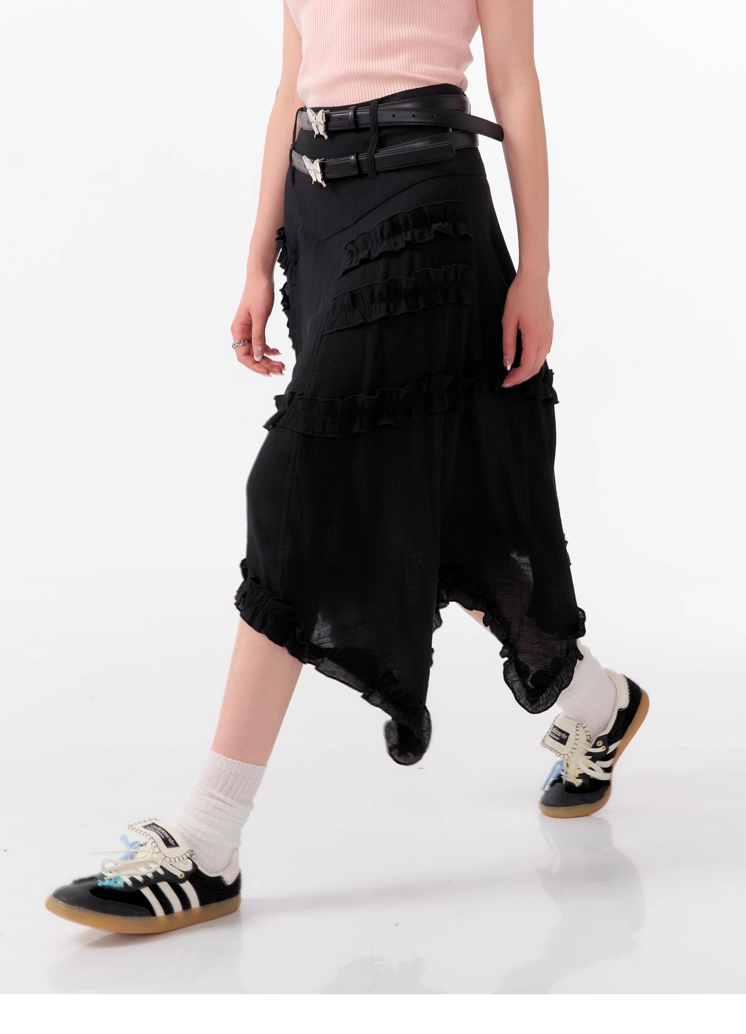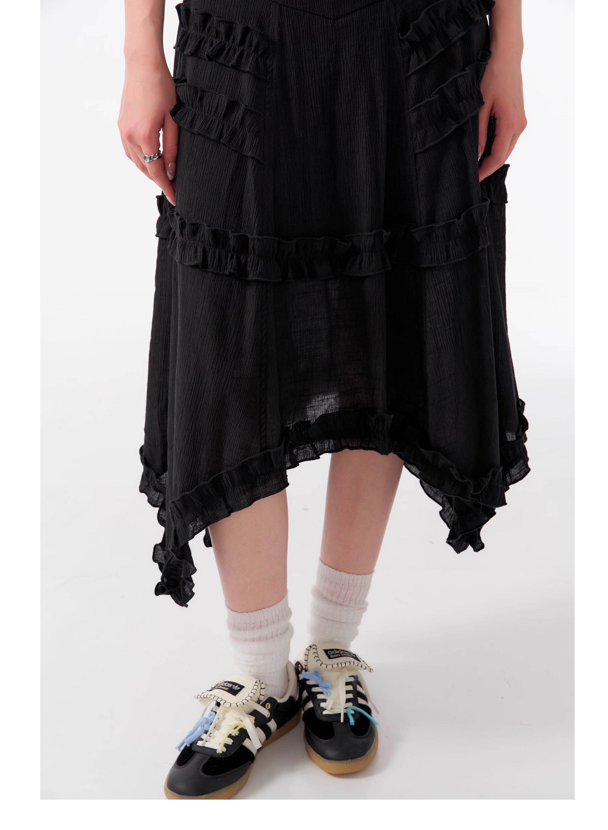 Robe en dentelle irrégulière | Taille haute, coupe ajustée, design noir rétro pour l'été