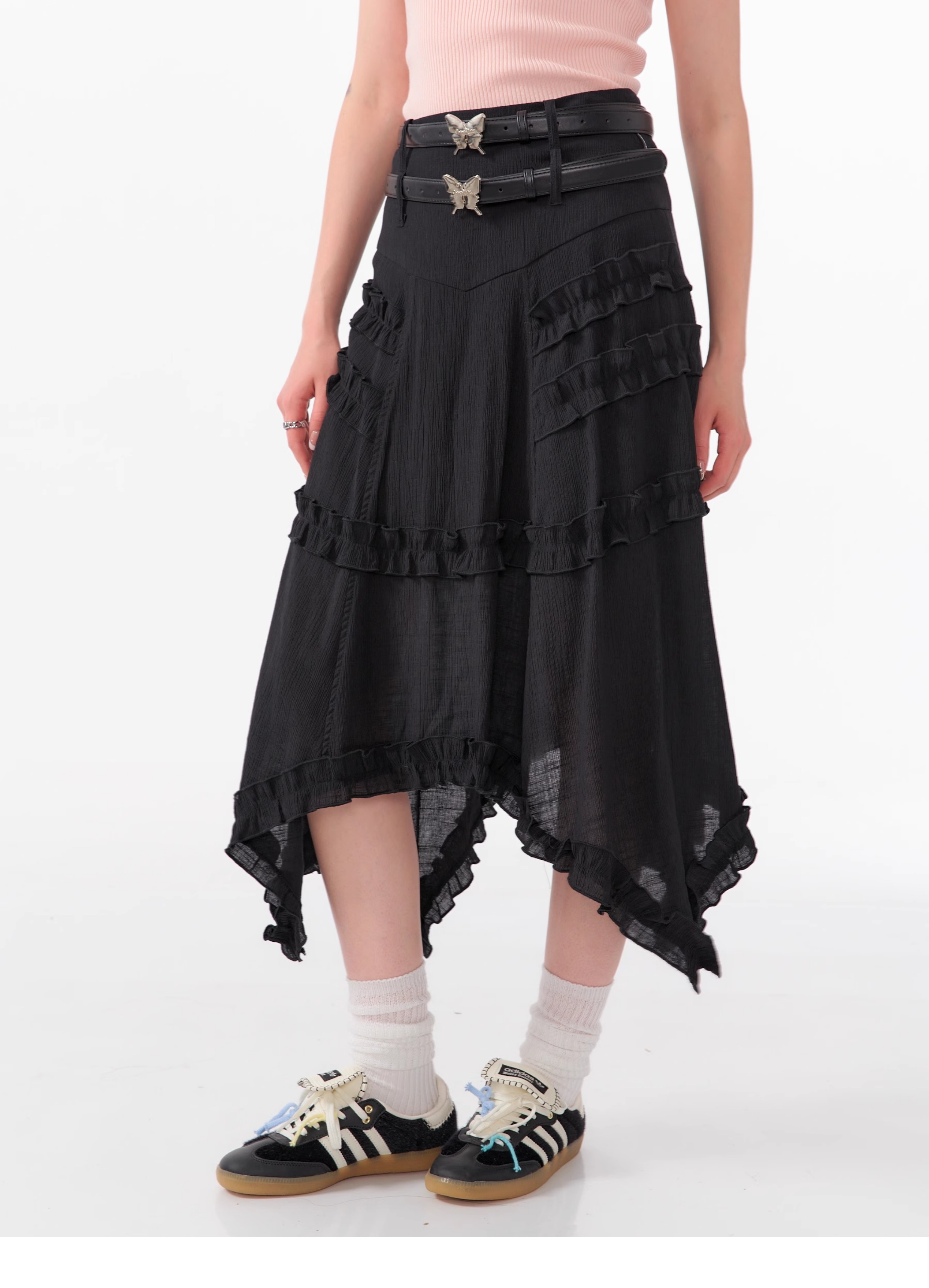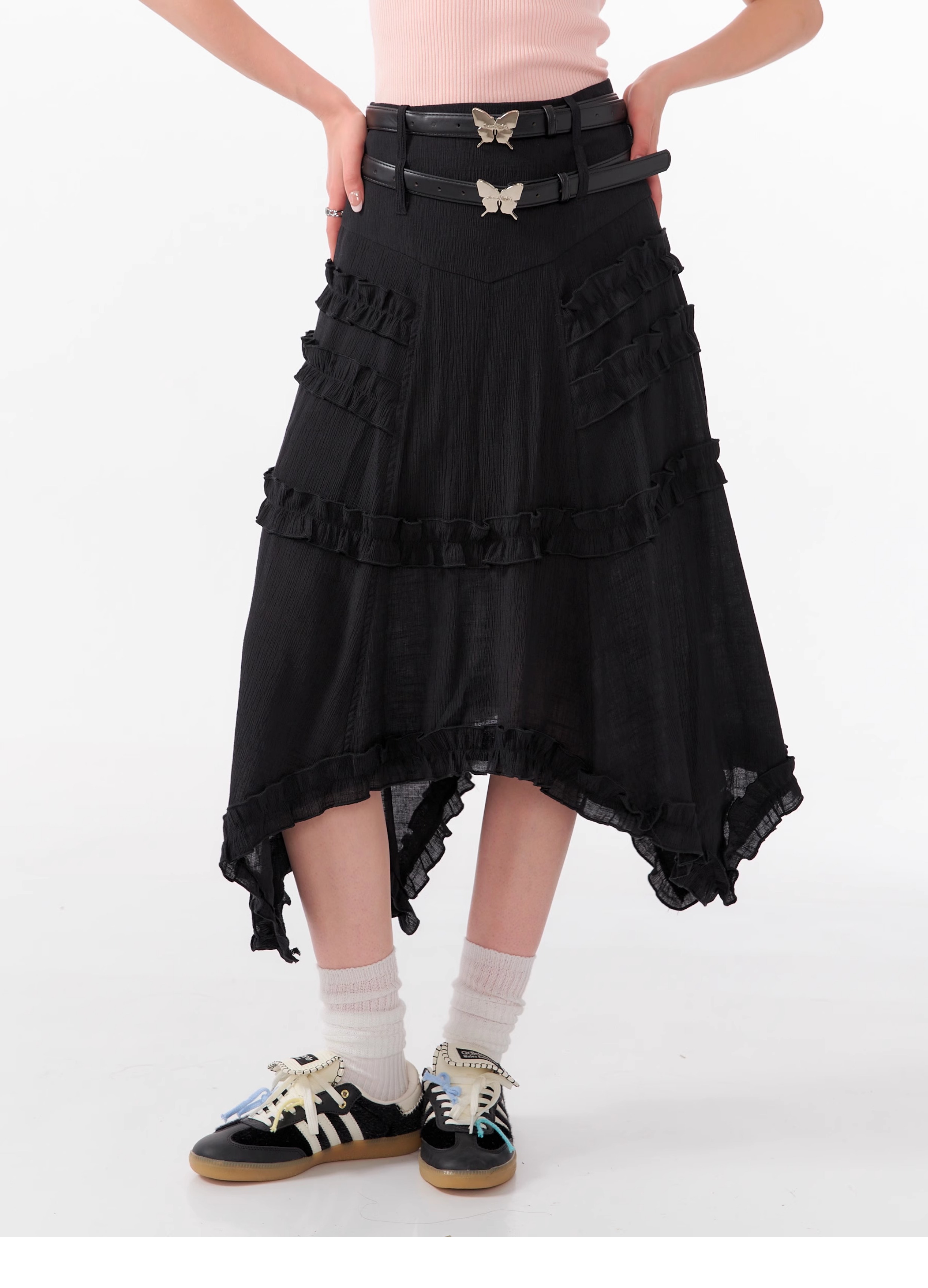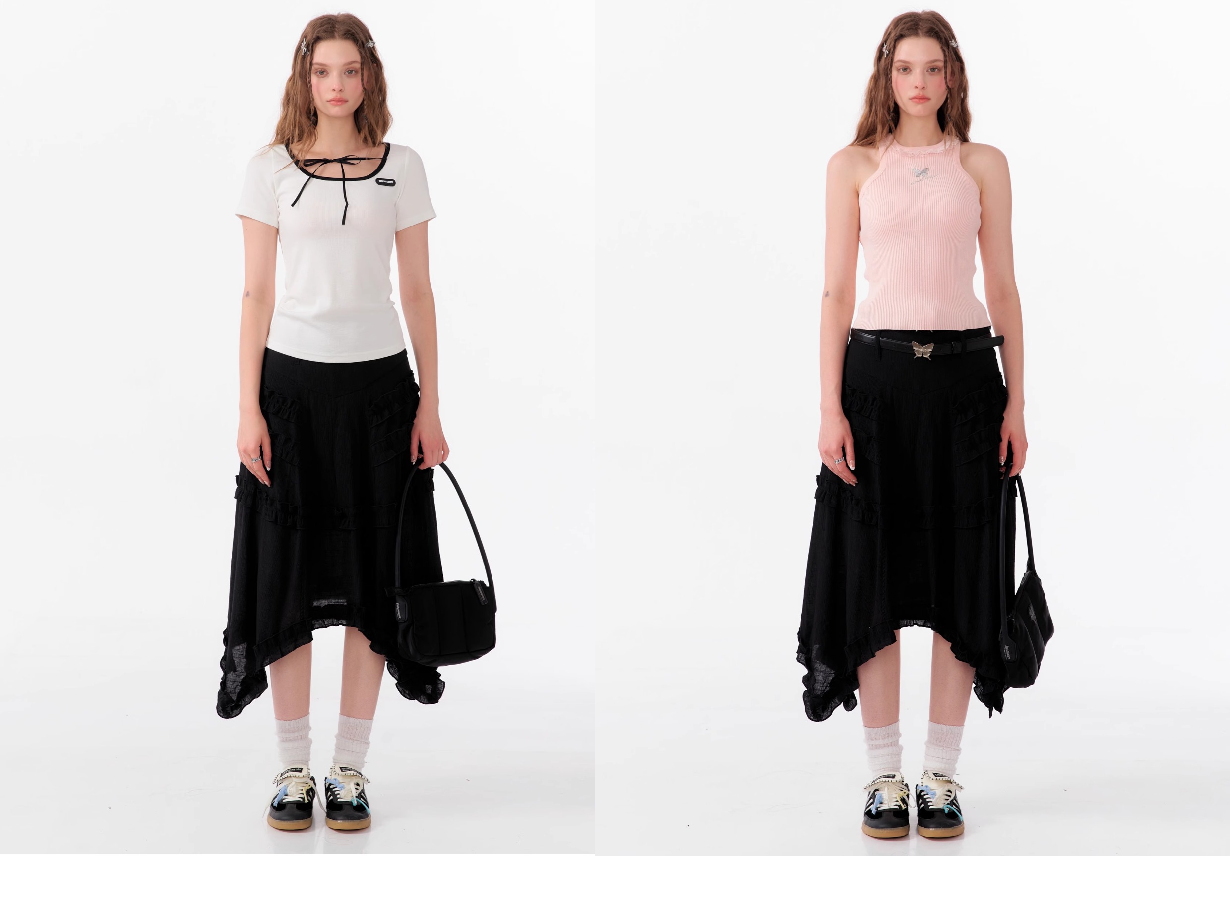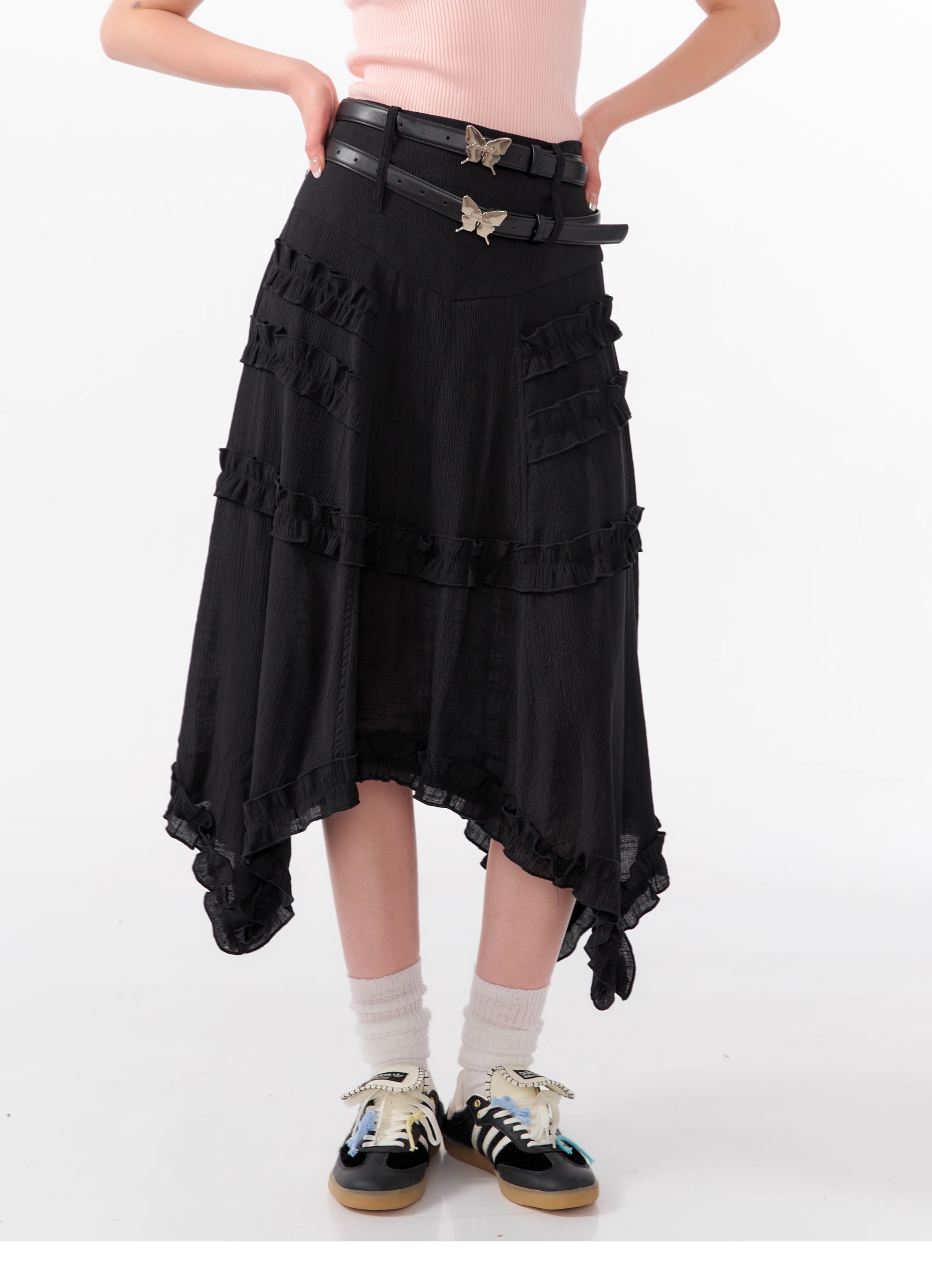 Robe en dentelle irrégulière | Taille haute, coupe ajustée, design noir rétro pour l'été