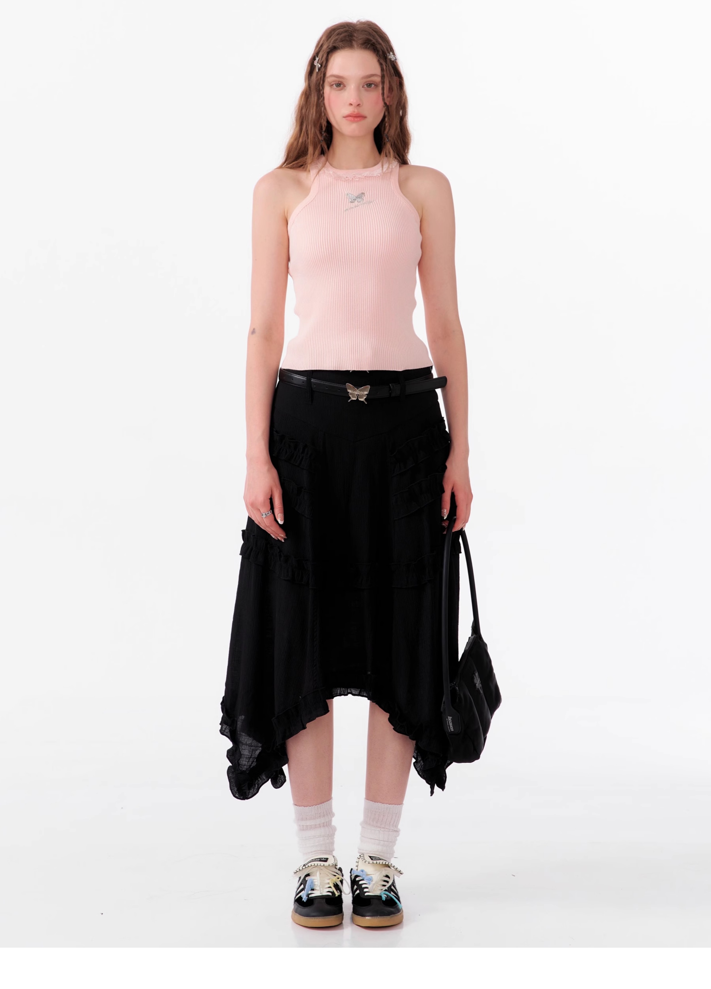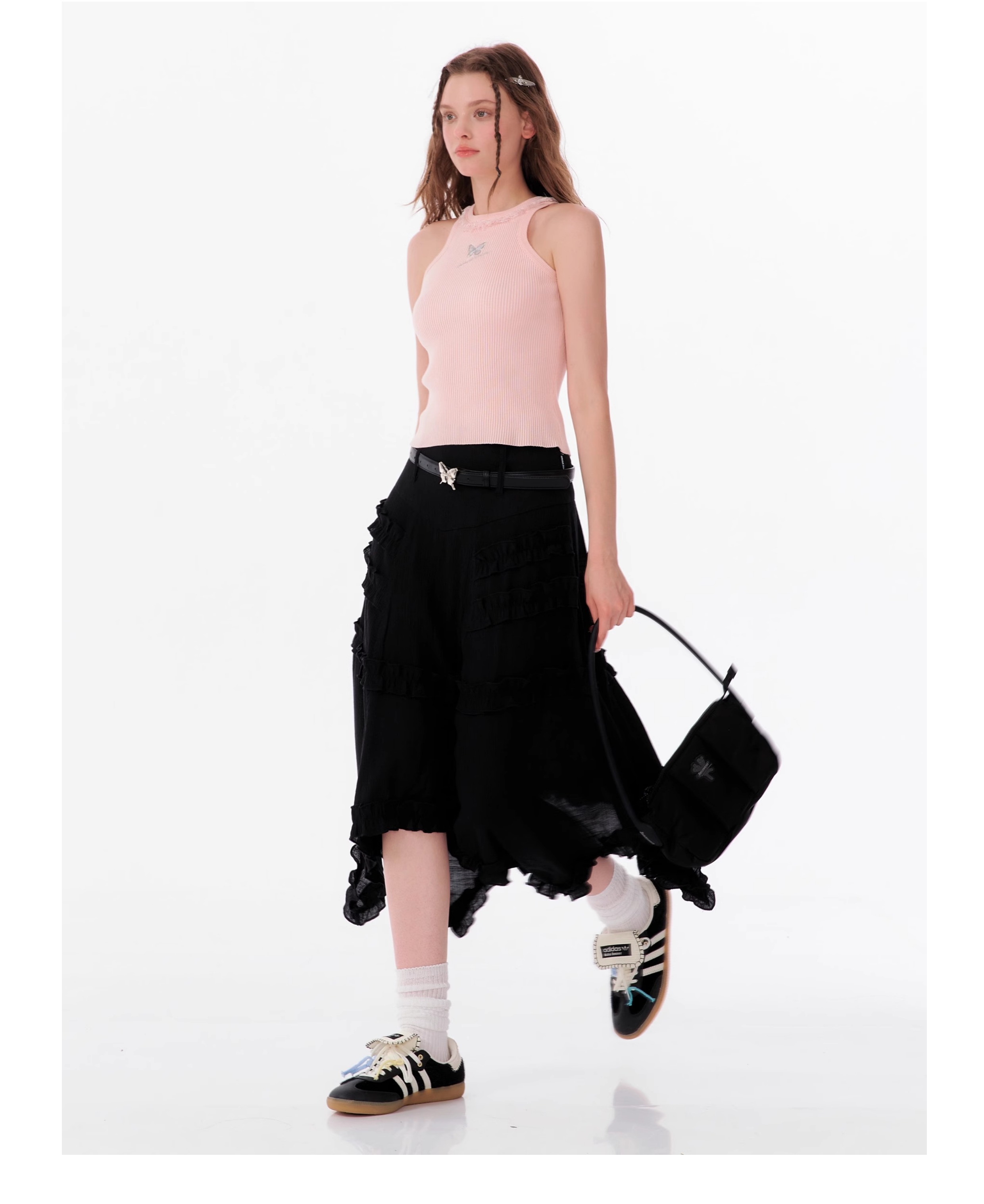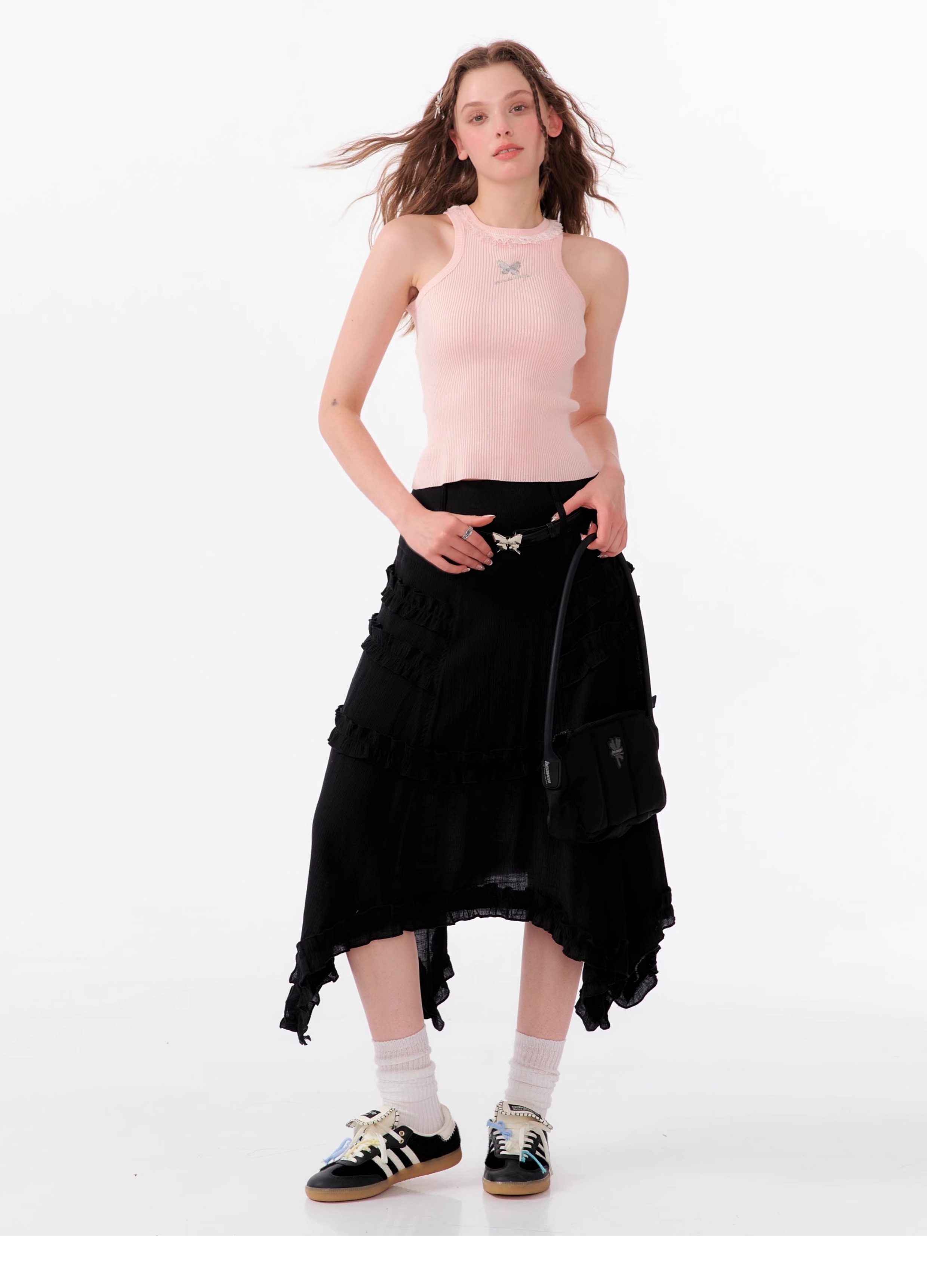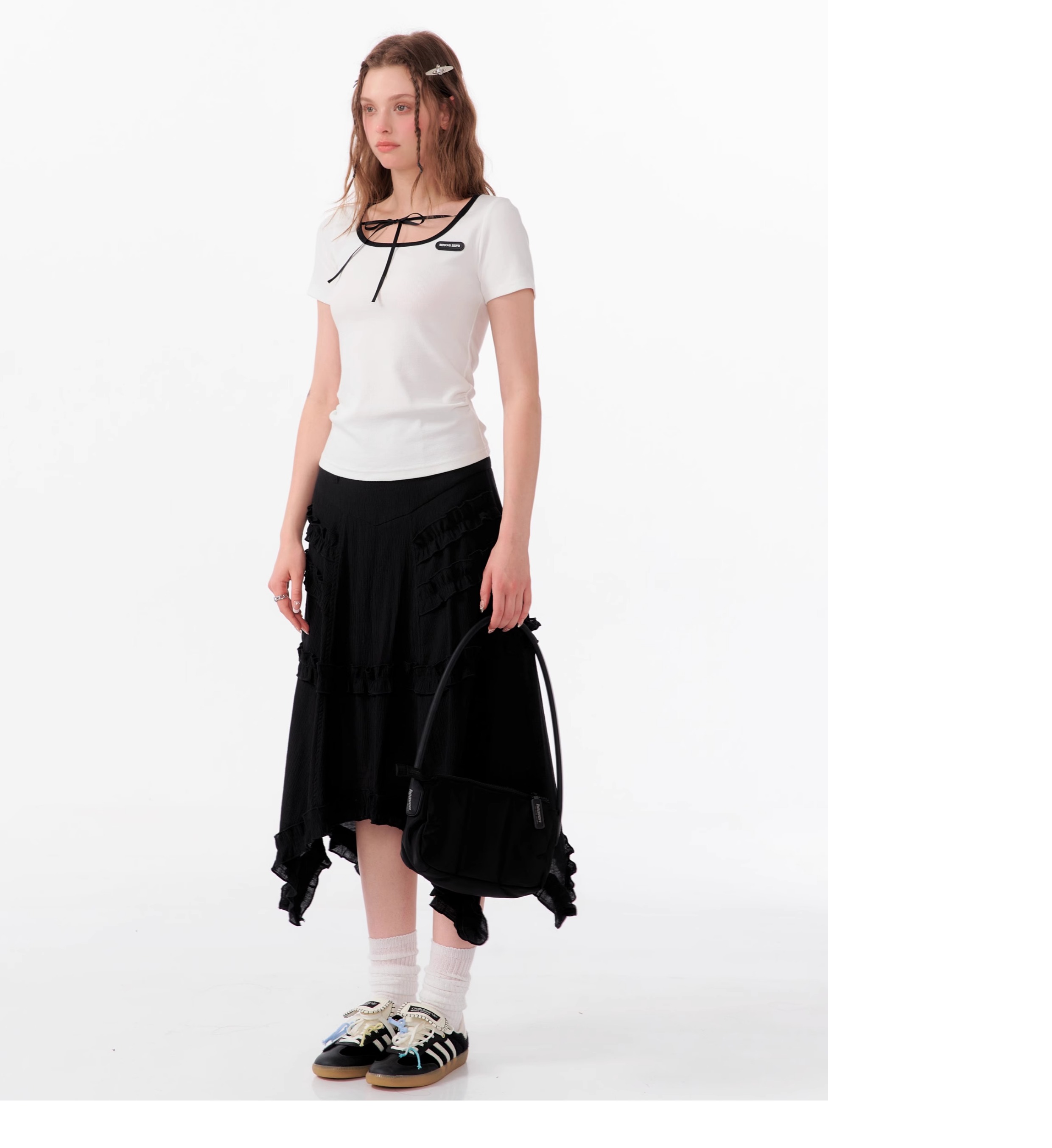 Robe en dentelle irrégulière | Taille haute, coupe ajustée, design noir rétro pour l'été