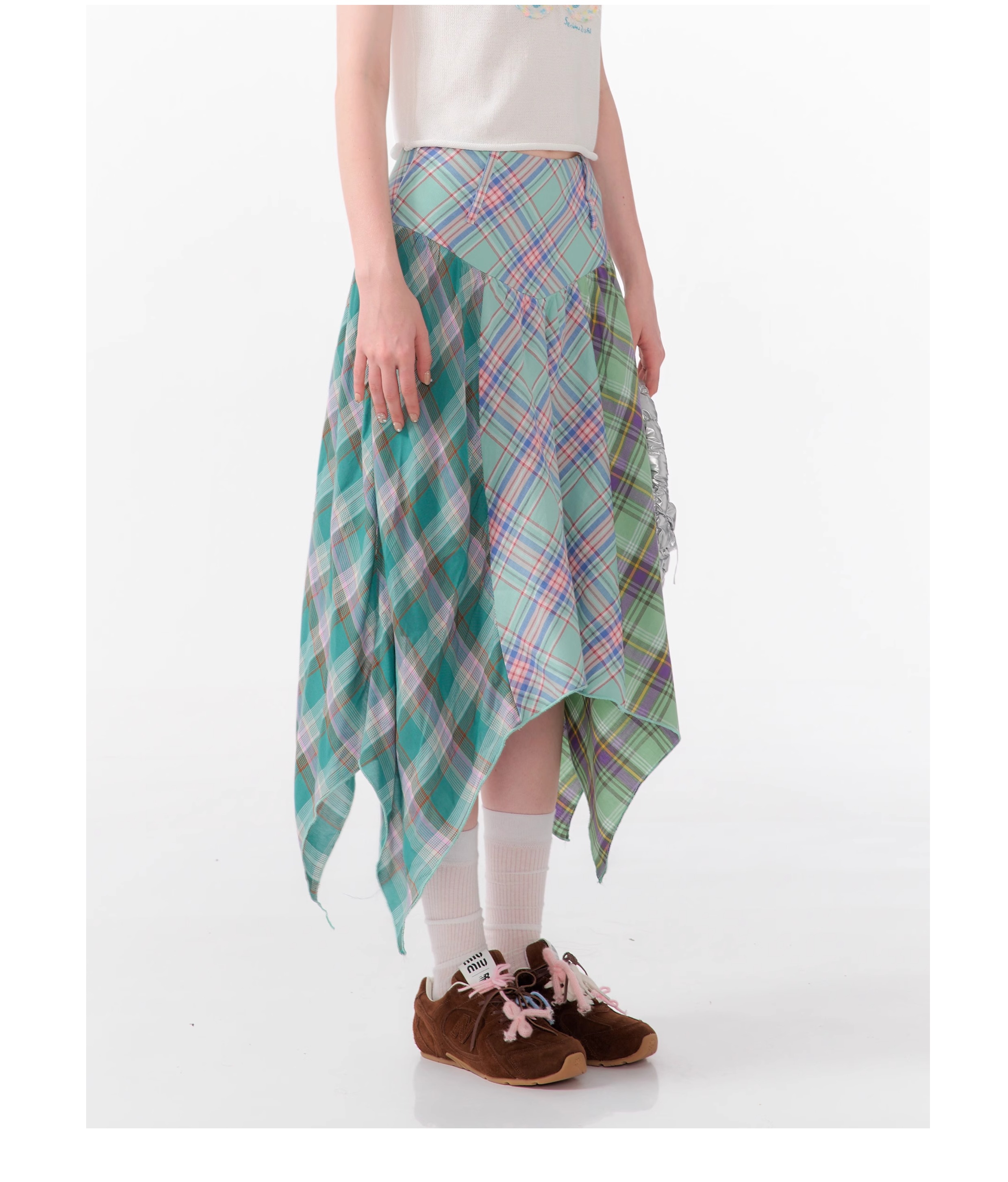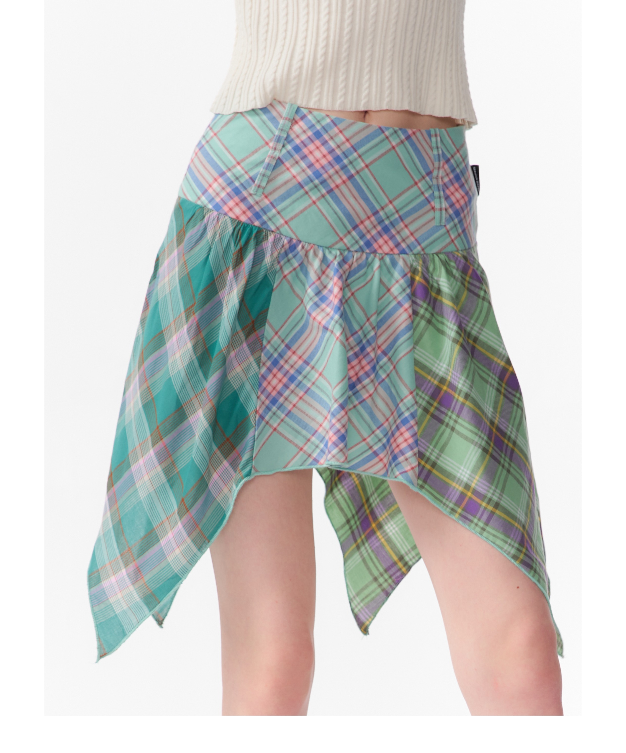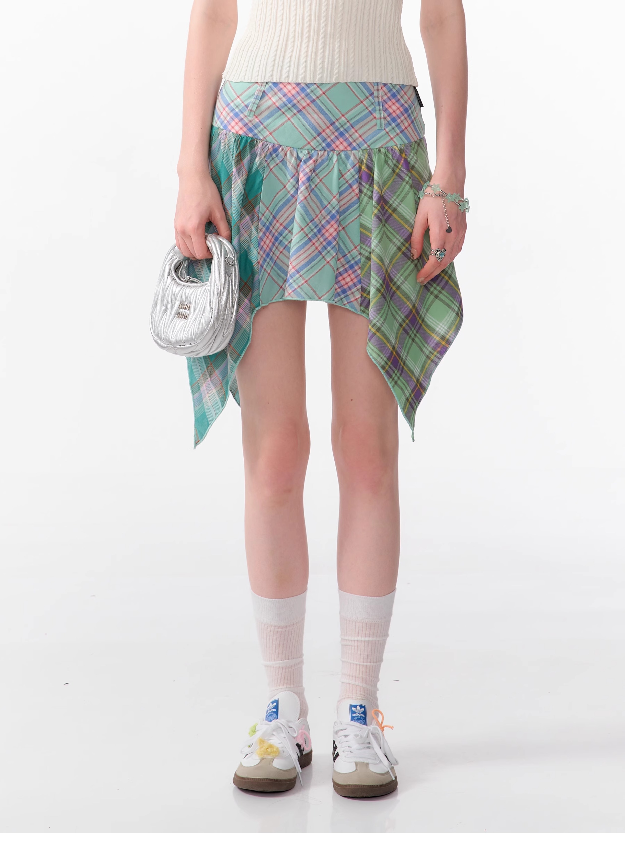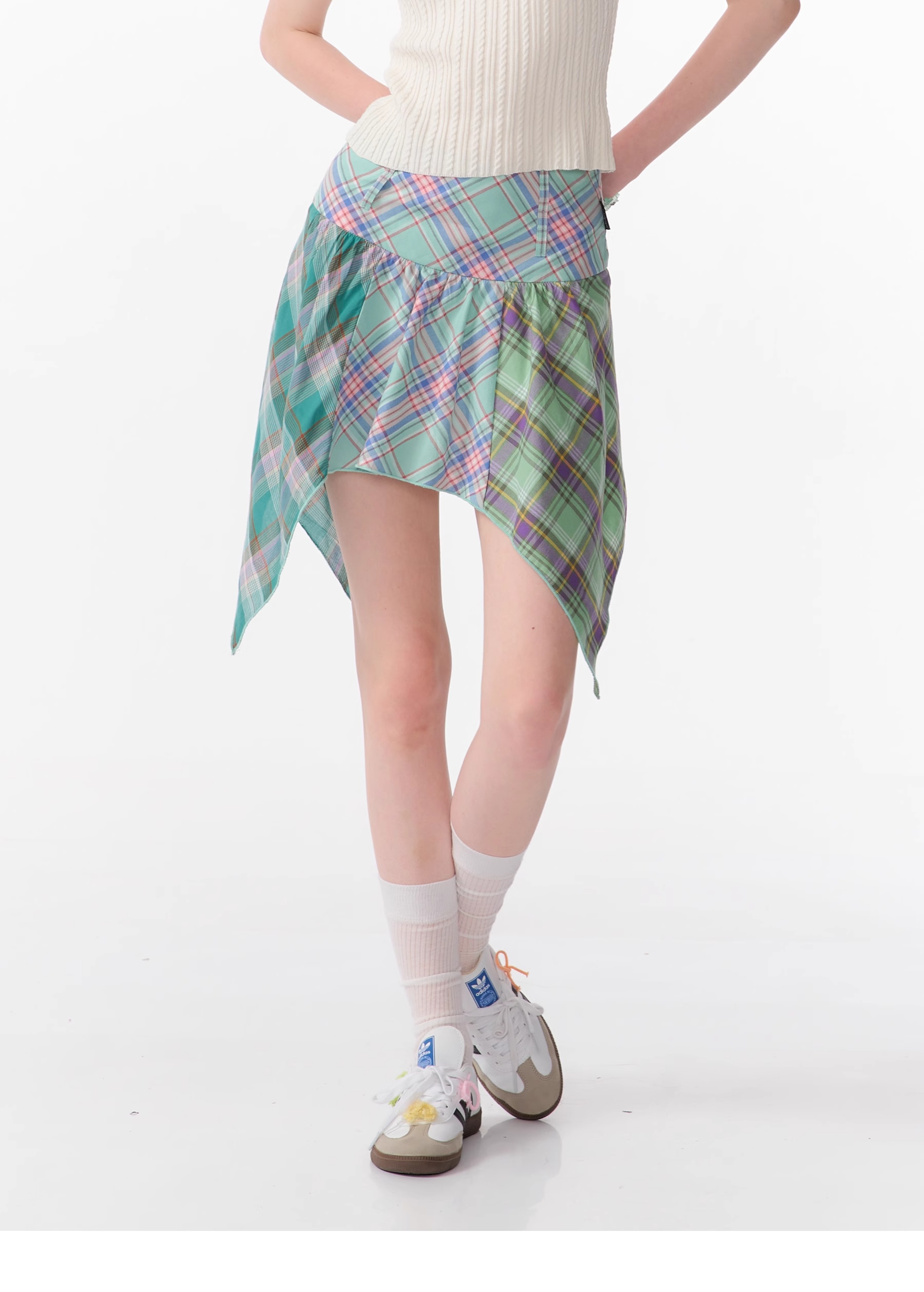 Jupe à carreaux irrégulière | Conception de coupe ajustée à carreaux rétro contrastés d'été