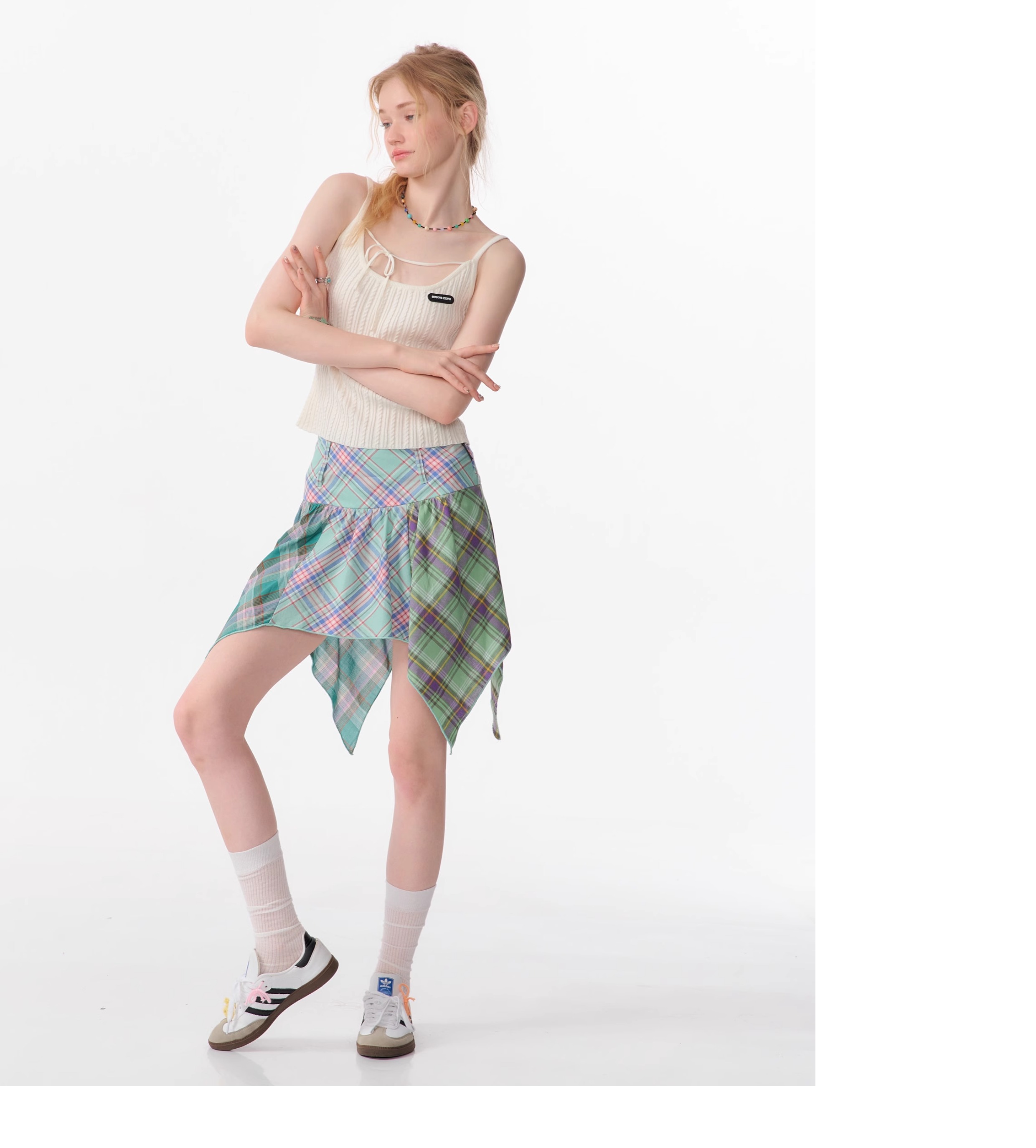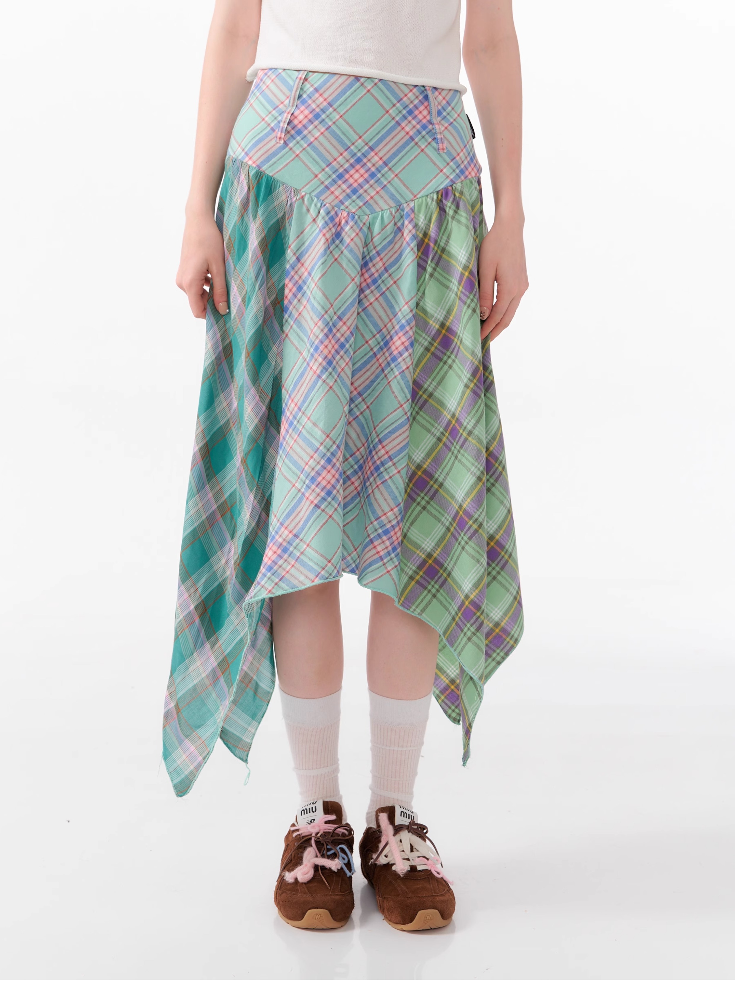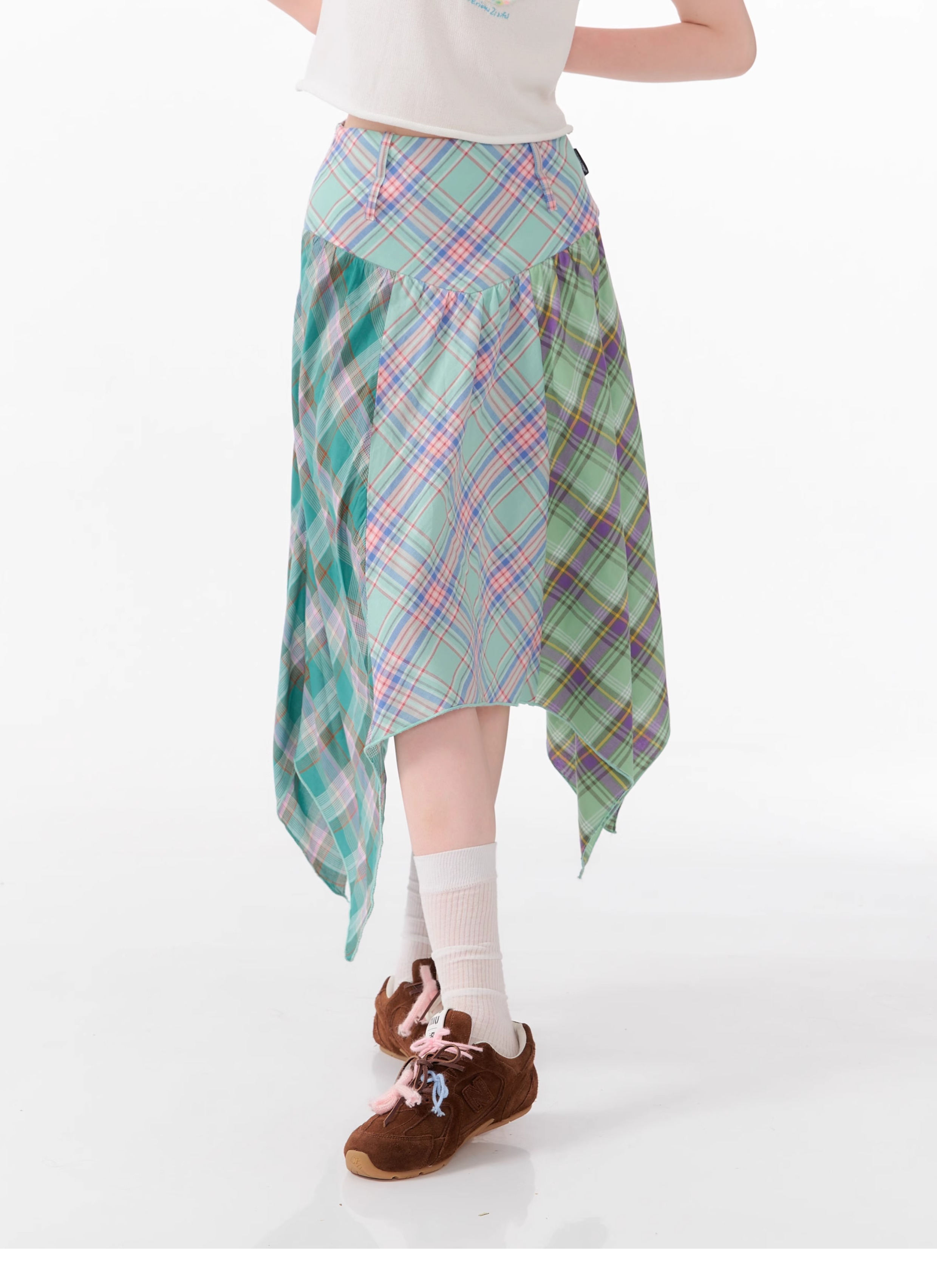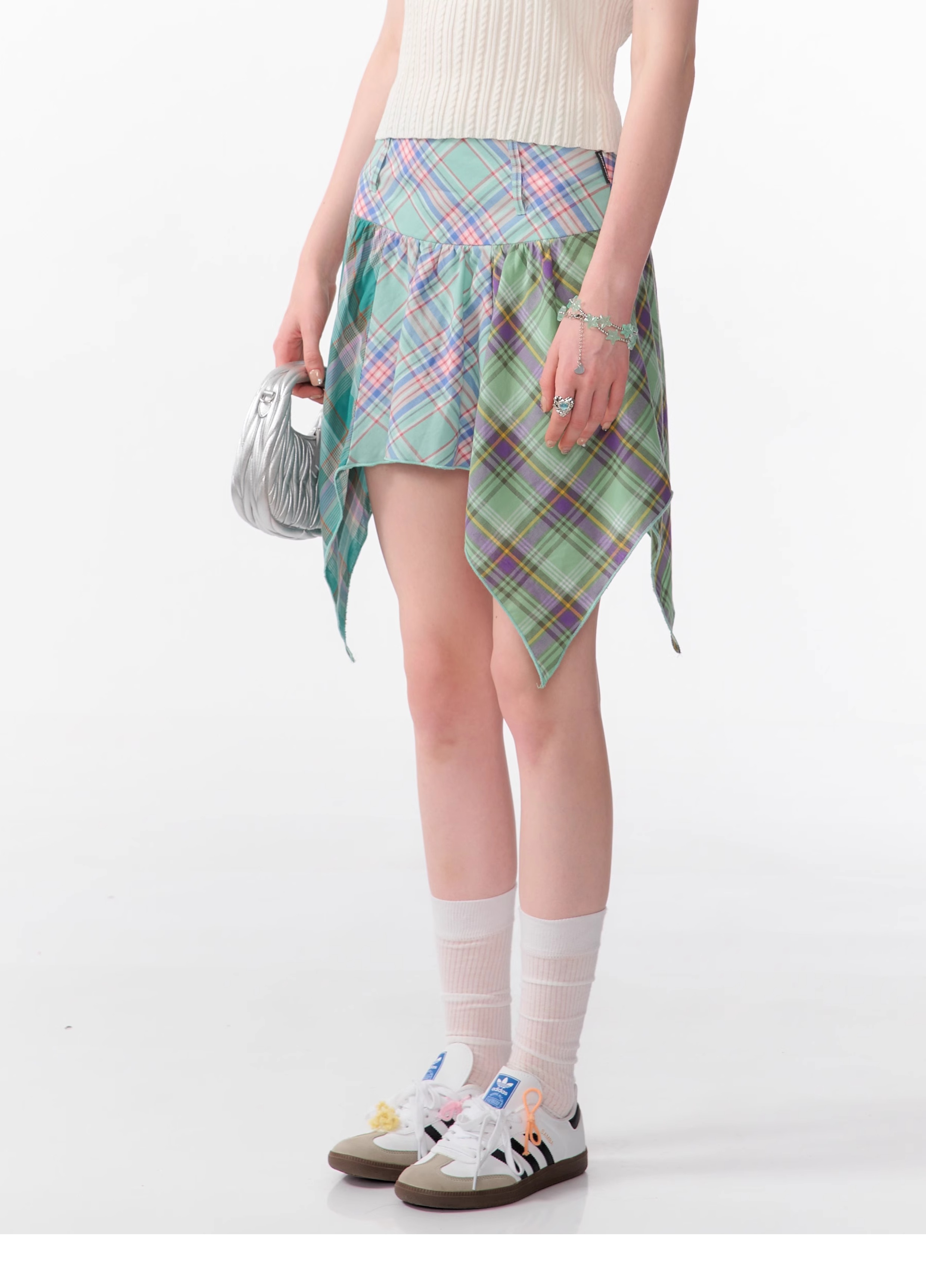 Jupe à carreaux irrégulière | Conception de coupe ajustée à carreaux rétro contrastés d'été