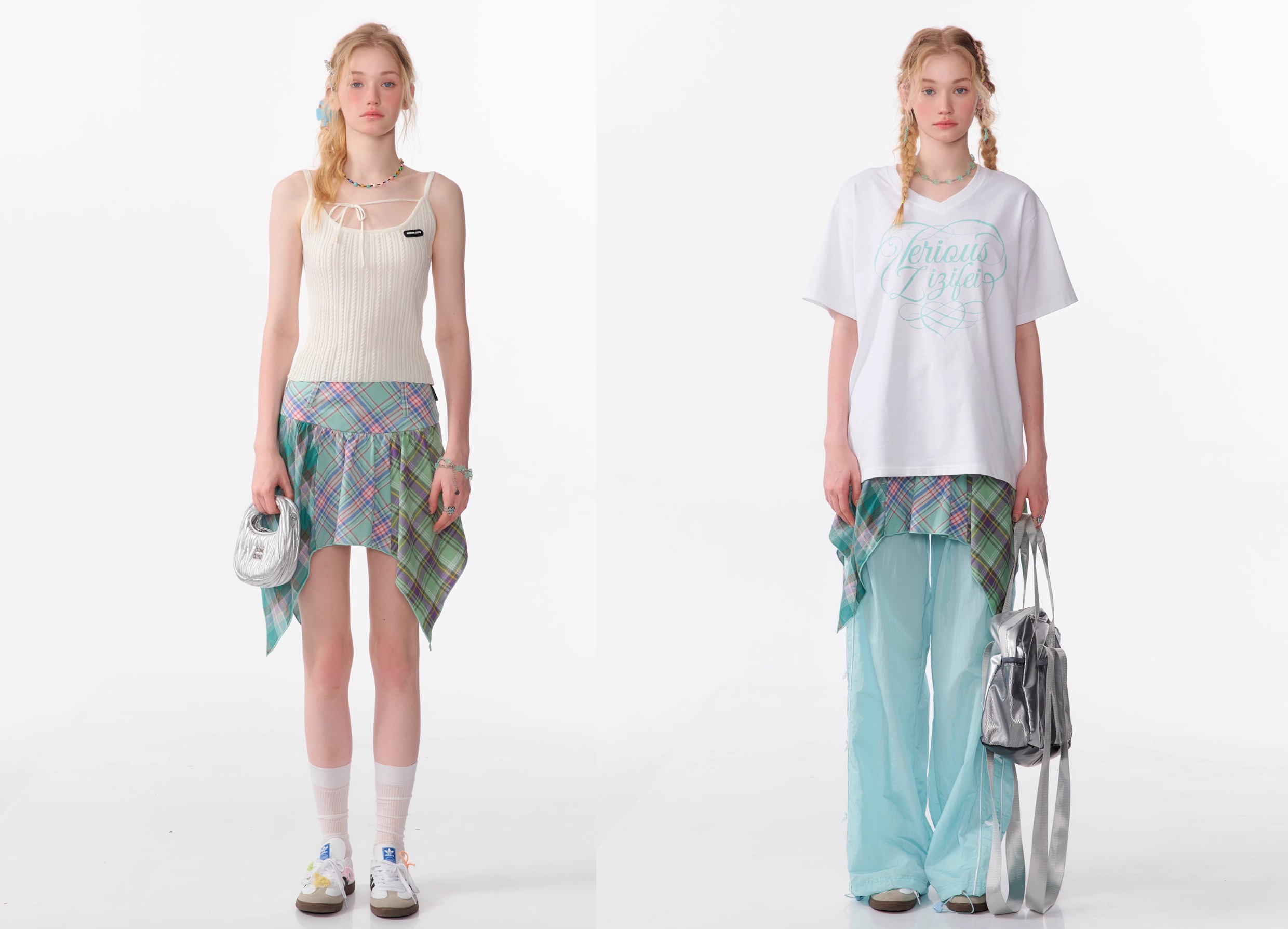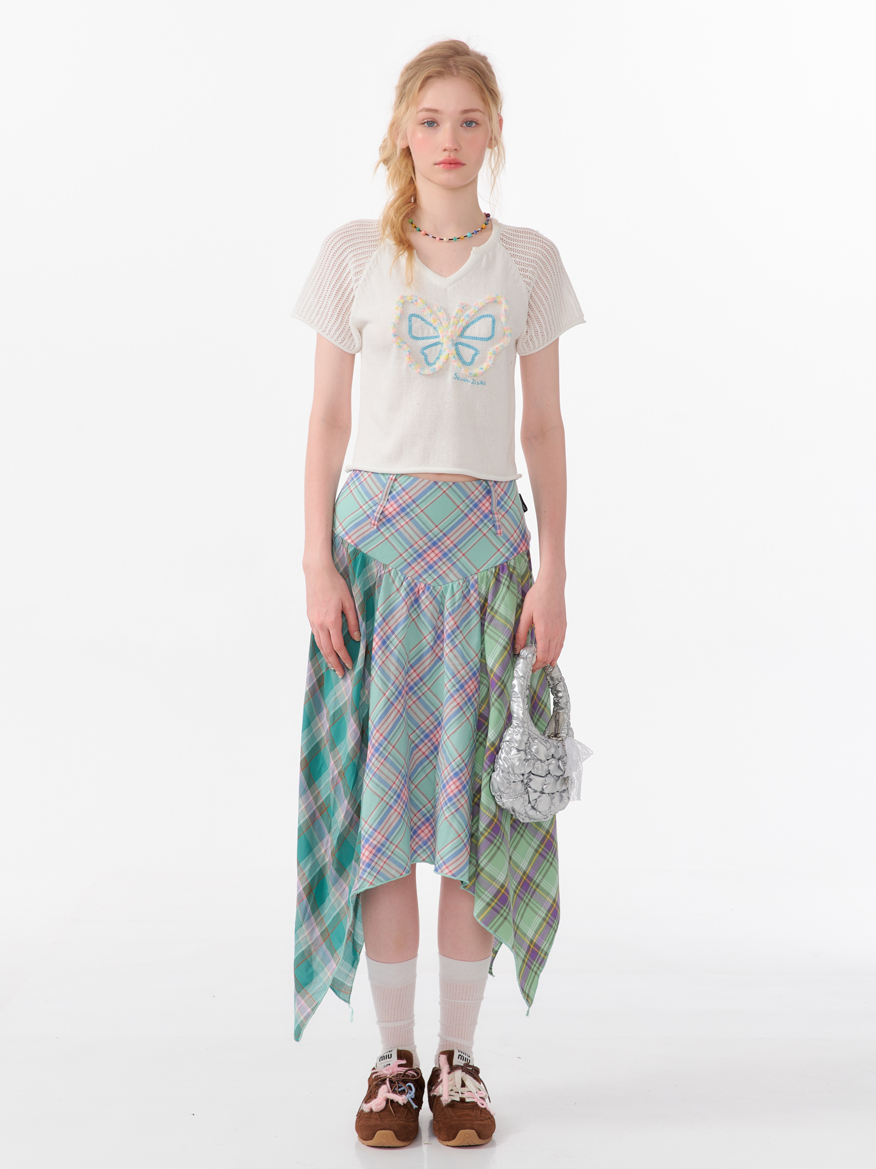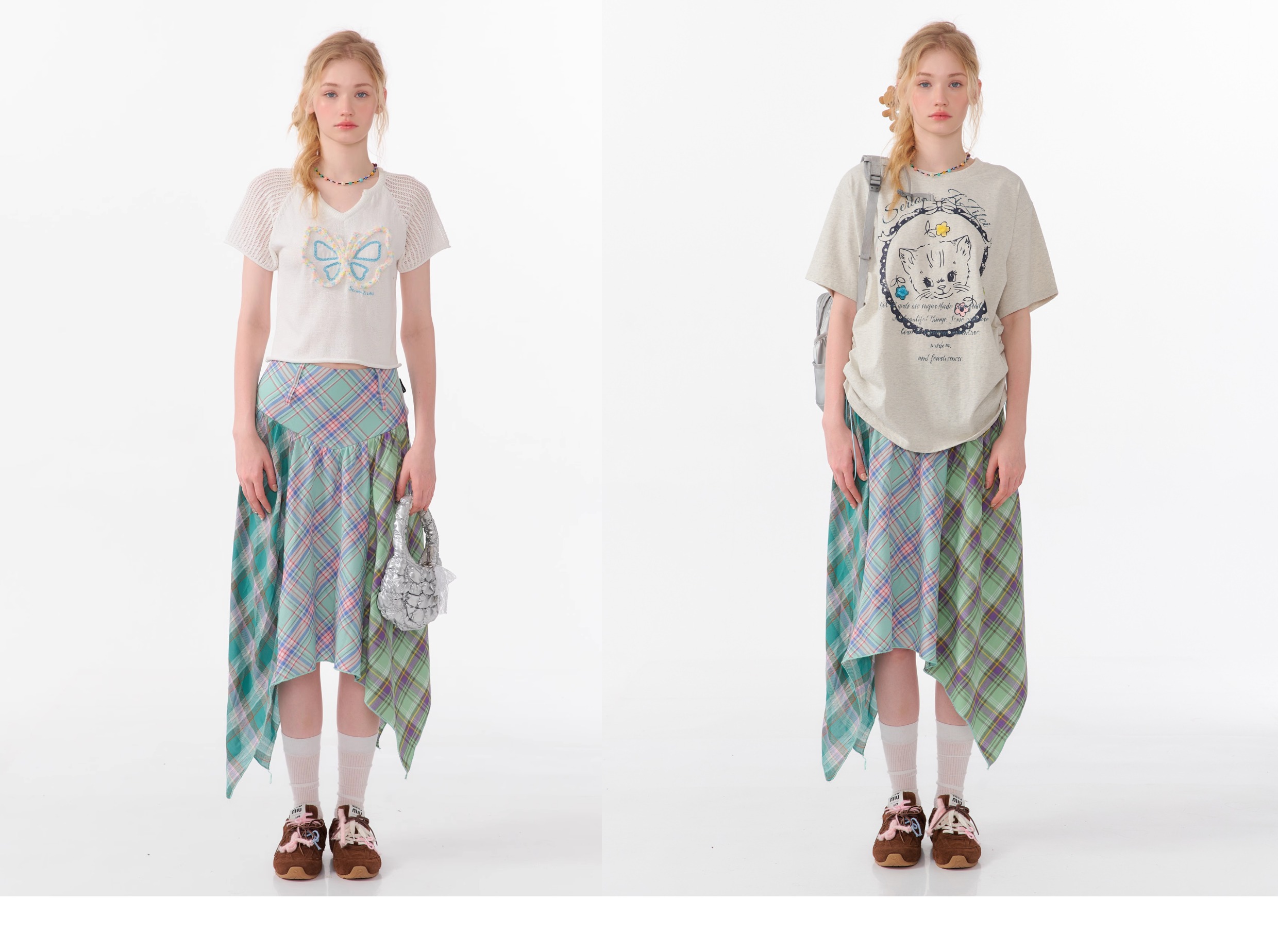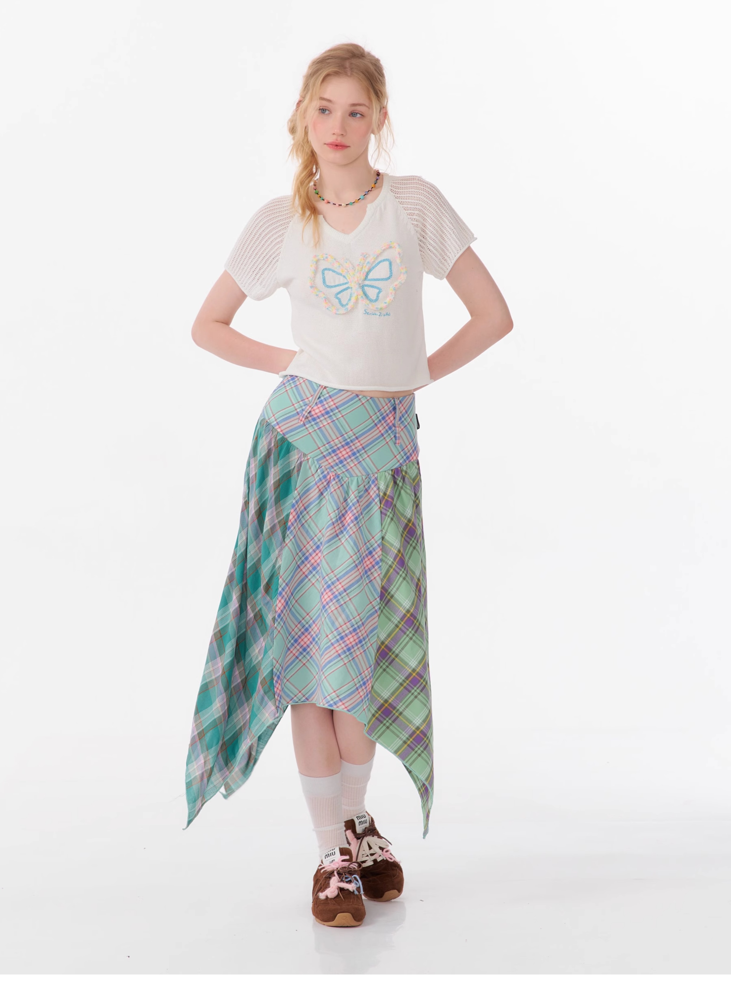 Jupe à carreaux irrégulière | Conception de coupe ajustée à carreaux rétro contrastés d'été