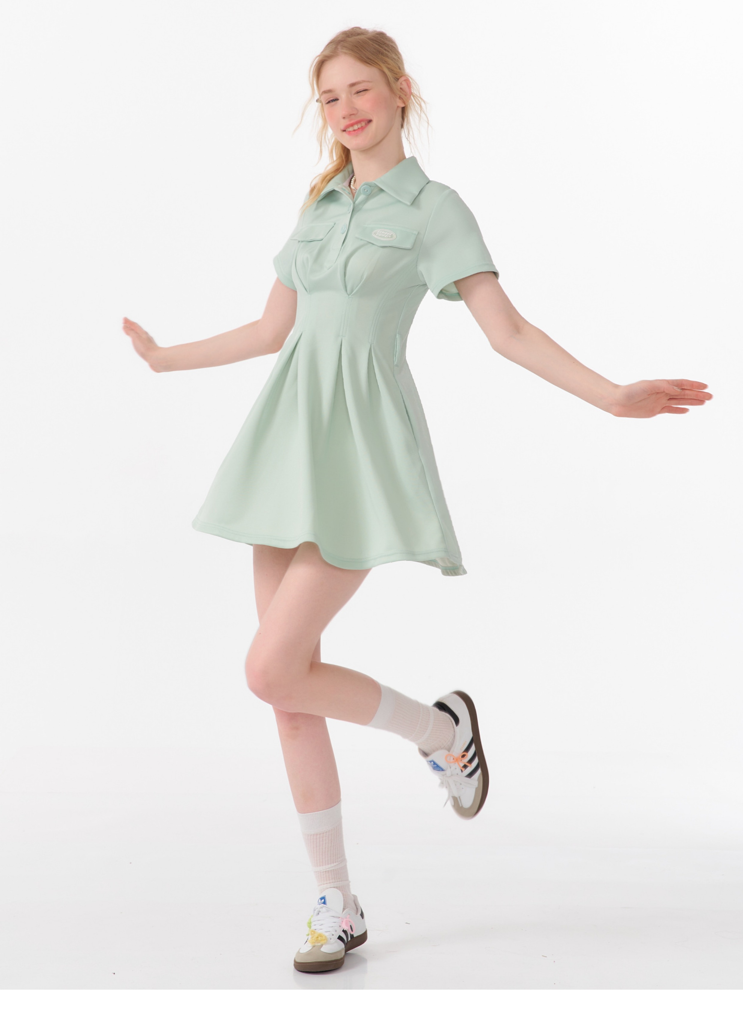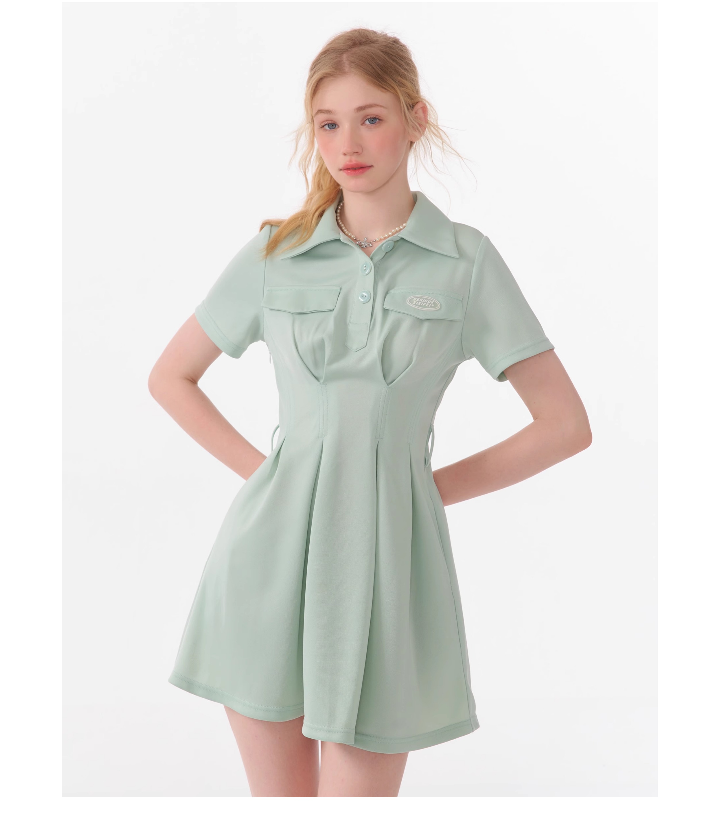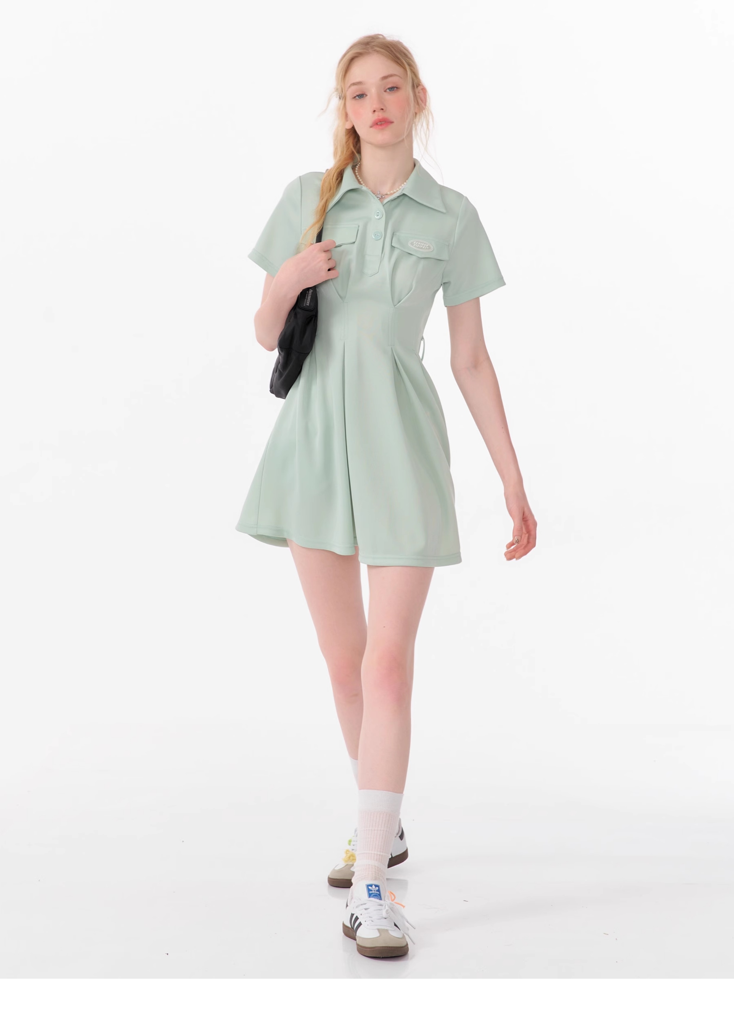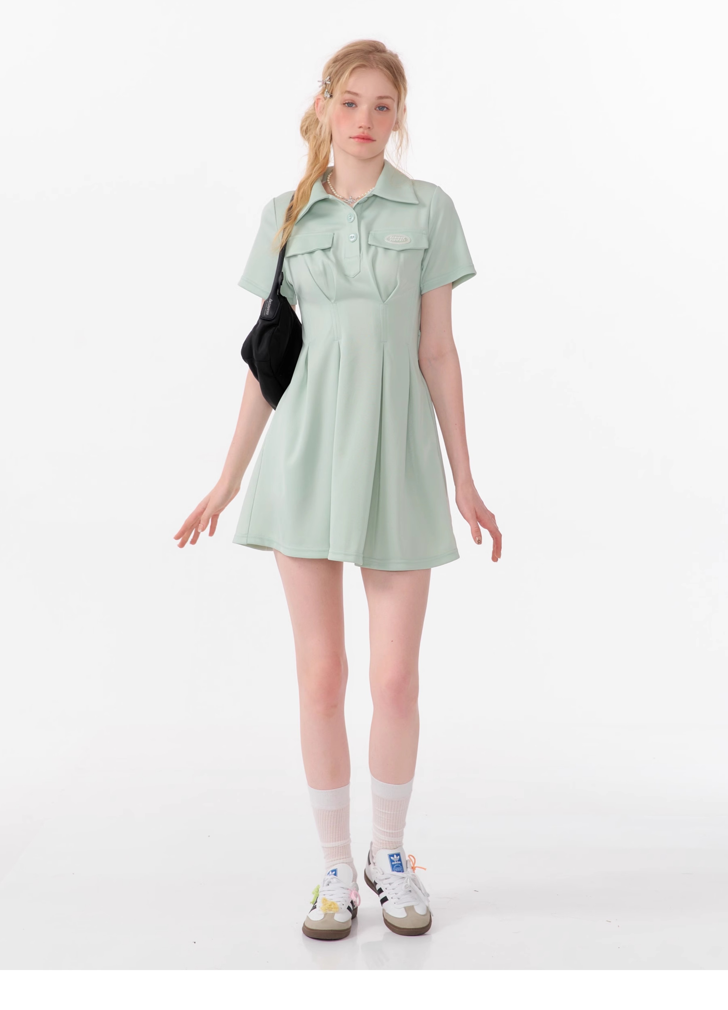 Robe polo verte de style collège américain rétro Slim Fit Summer Essential