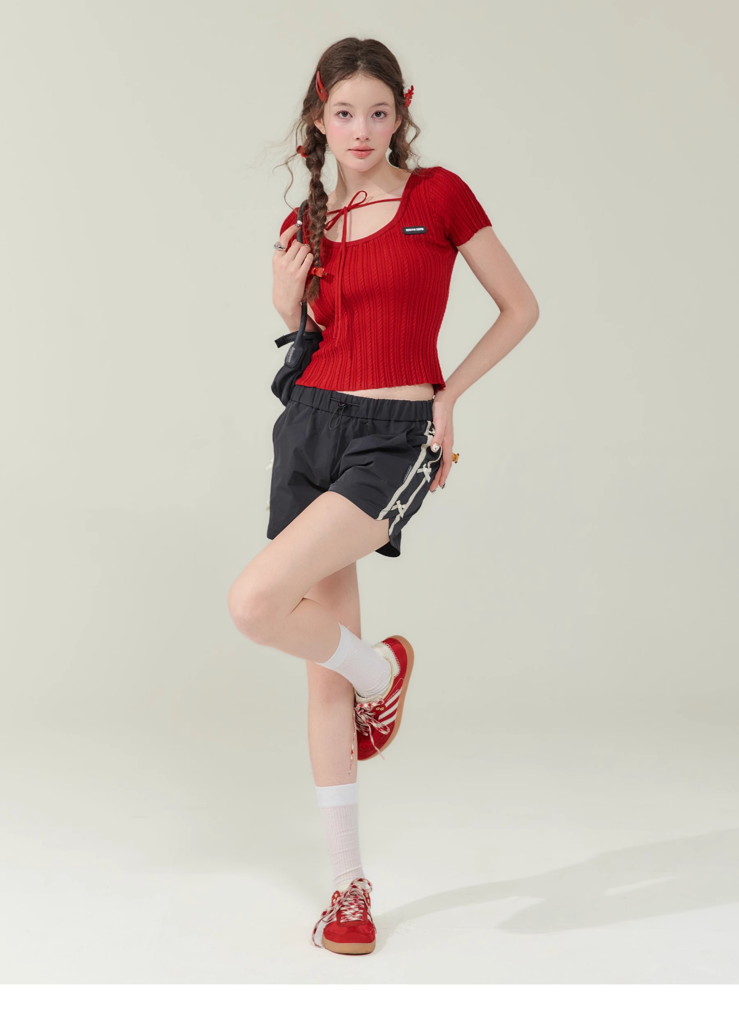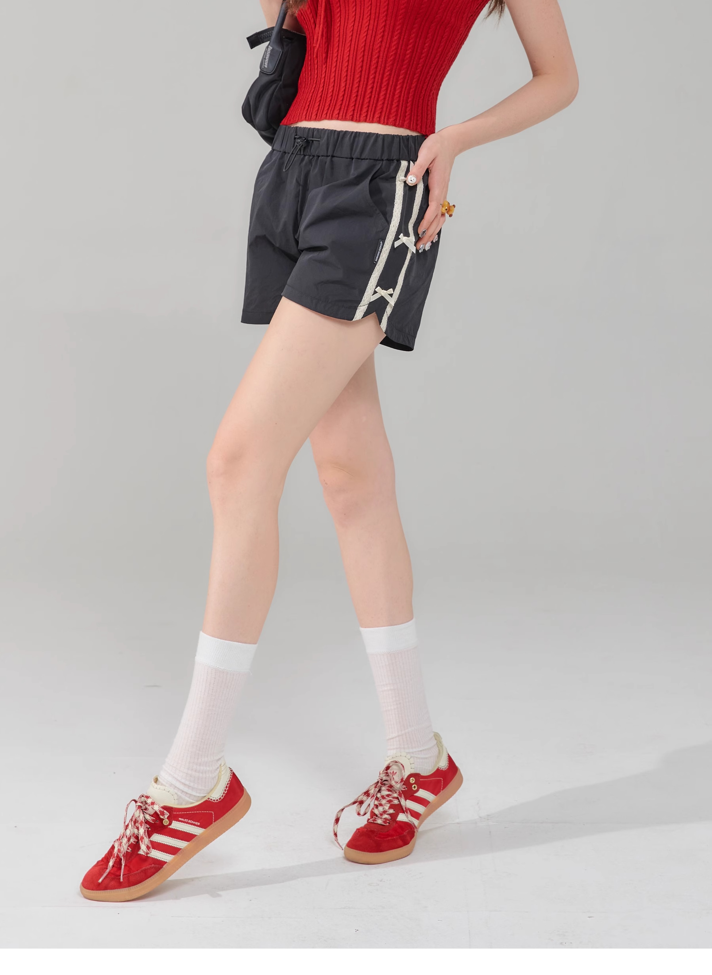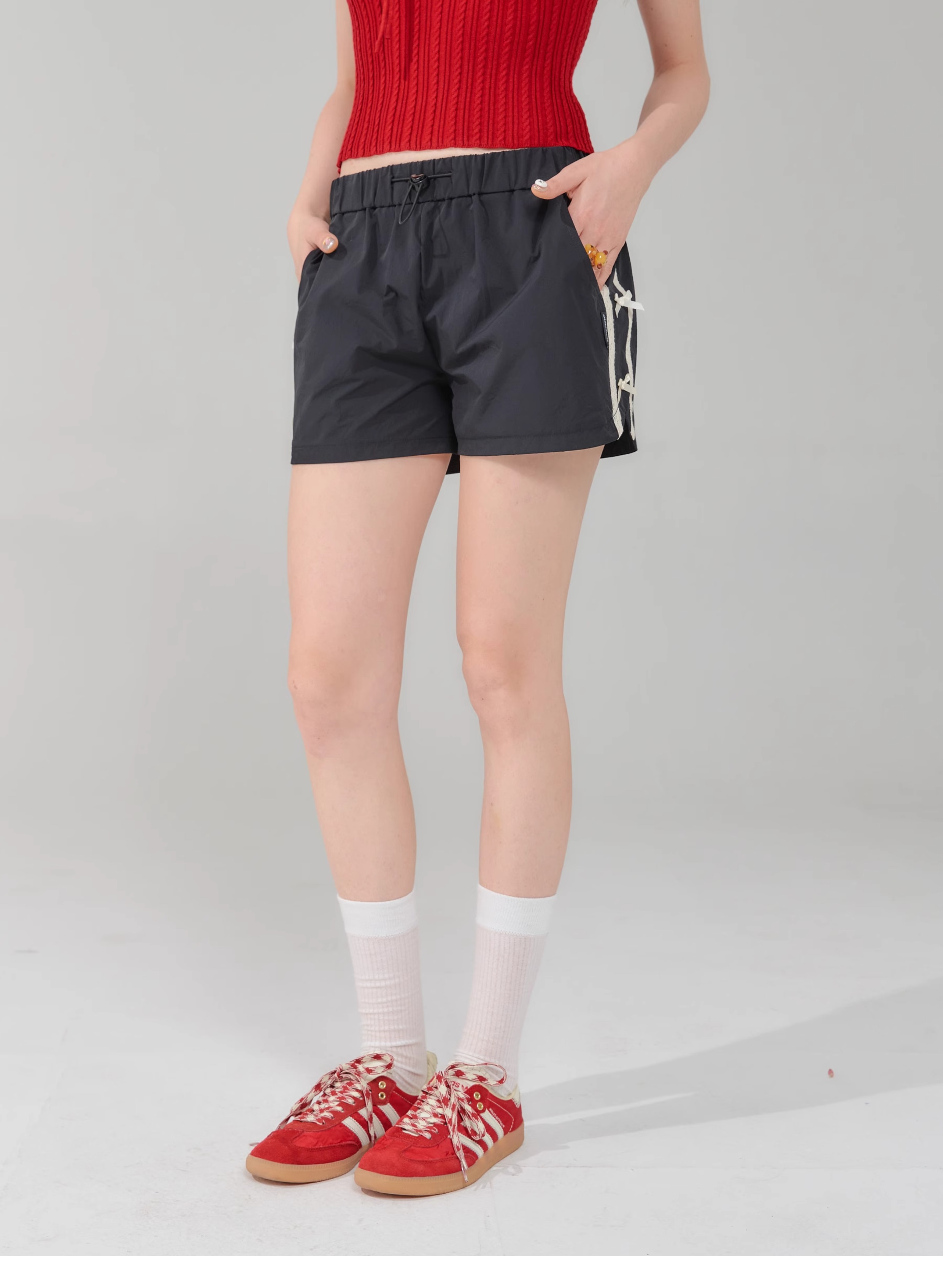 Short de sport amincissant taille haute avec nœud rétro |