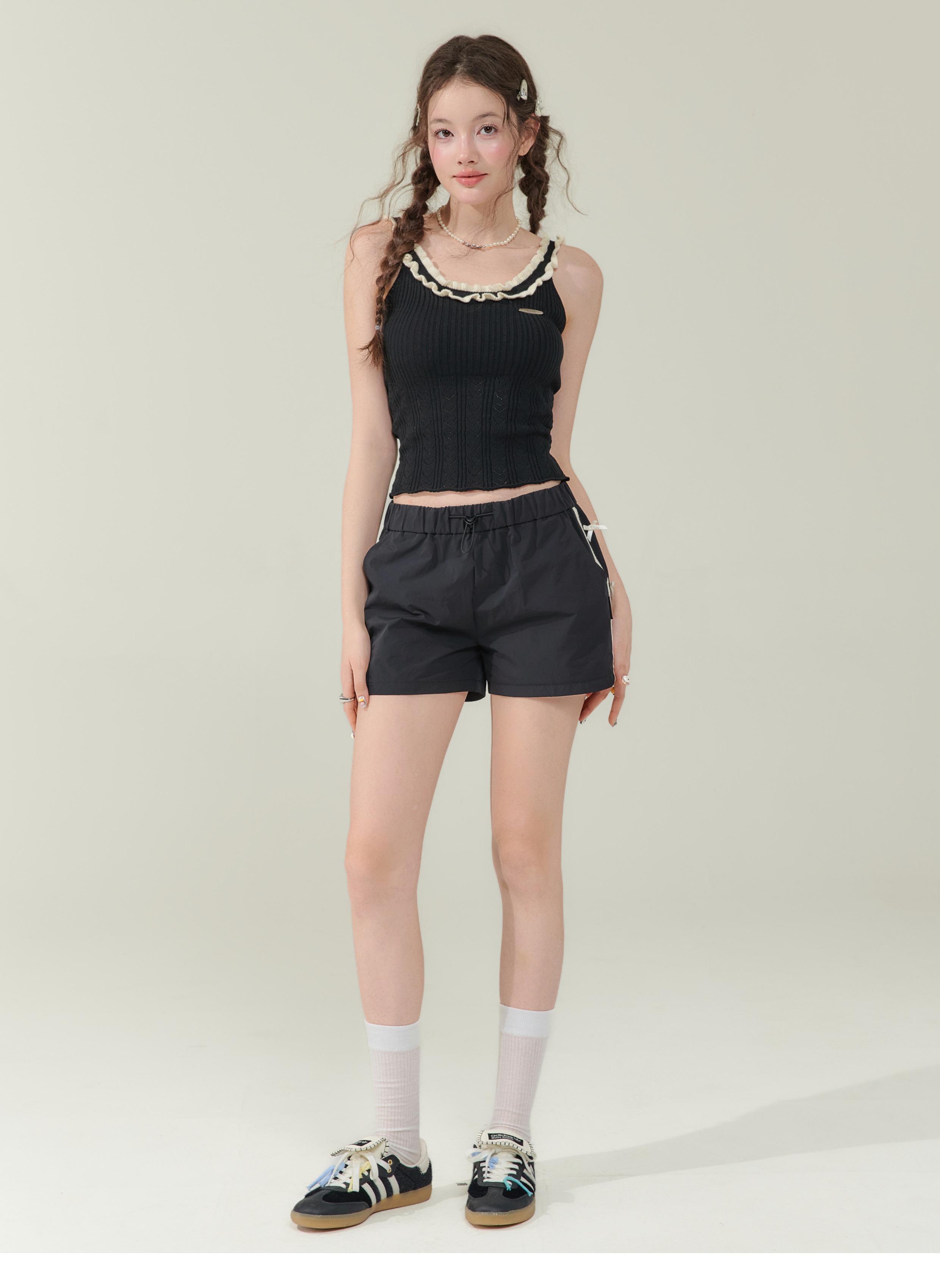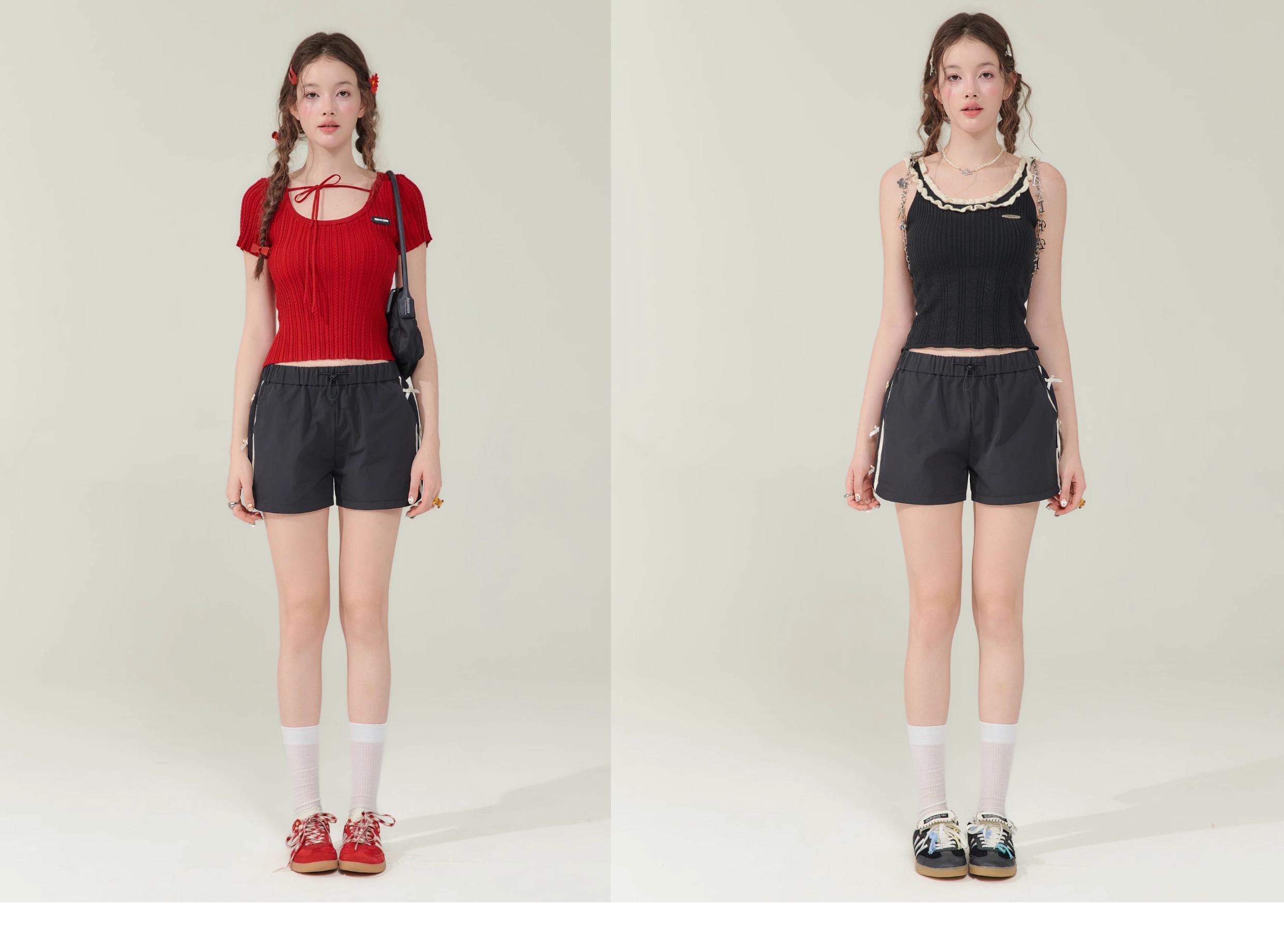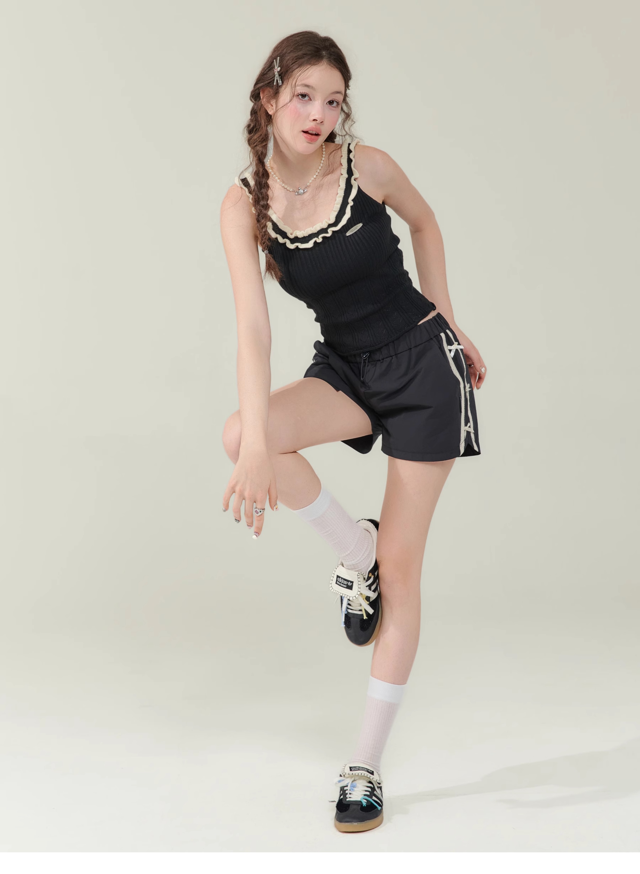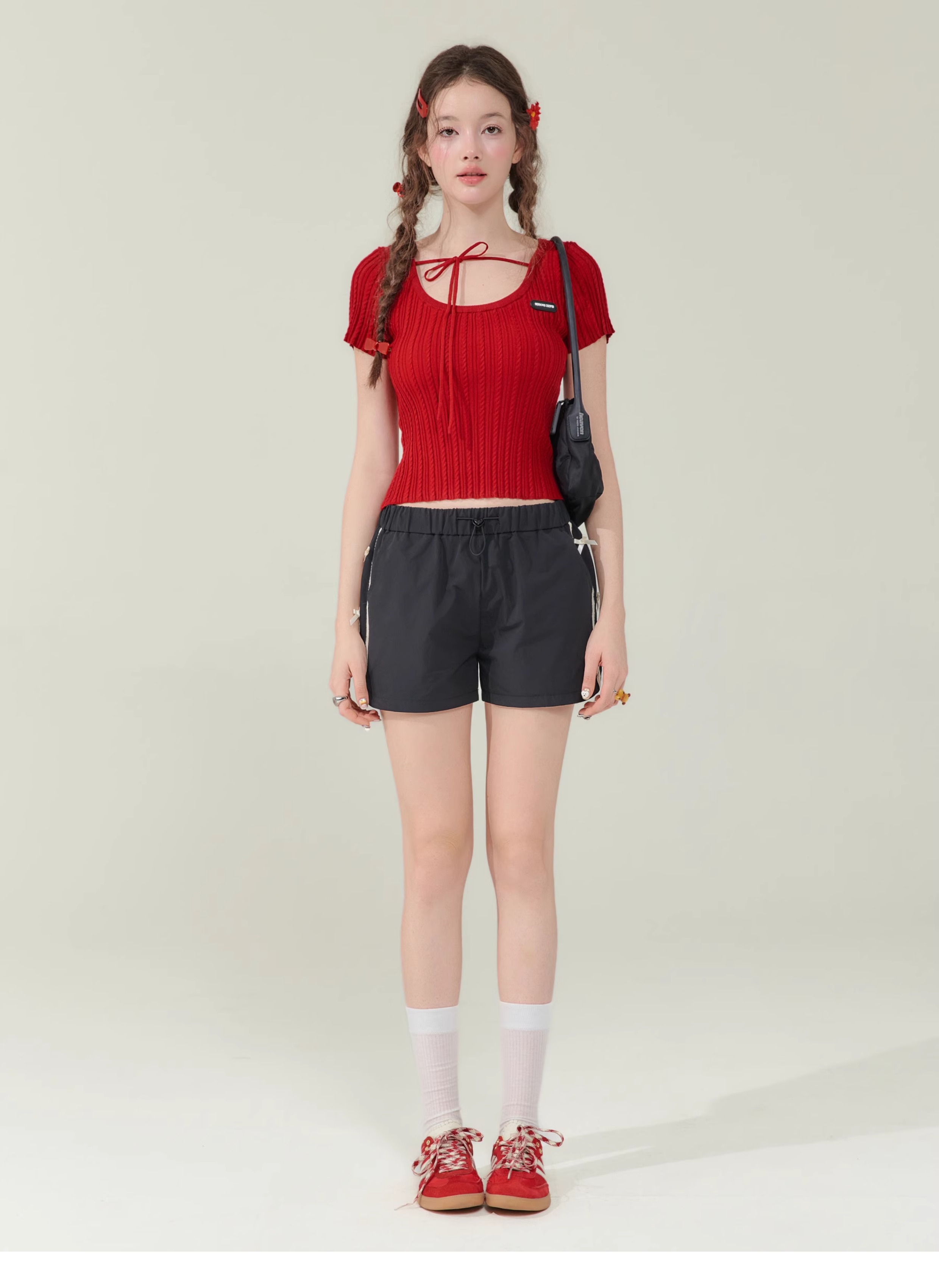 Short de sport amincissant taille haute avec nœud rétro |