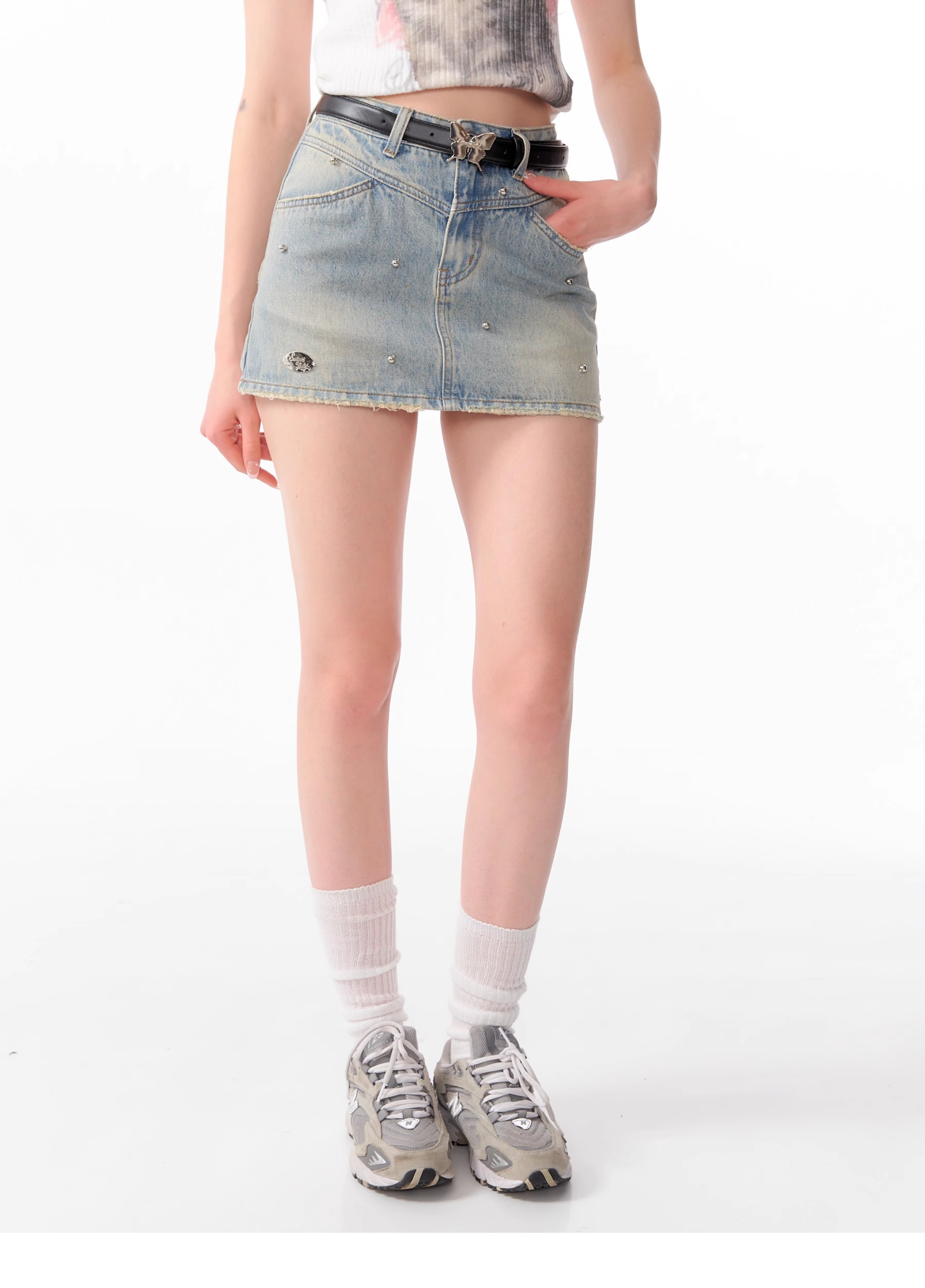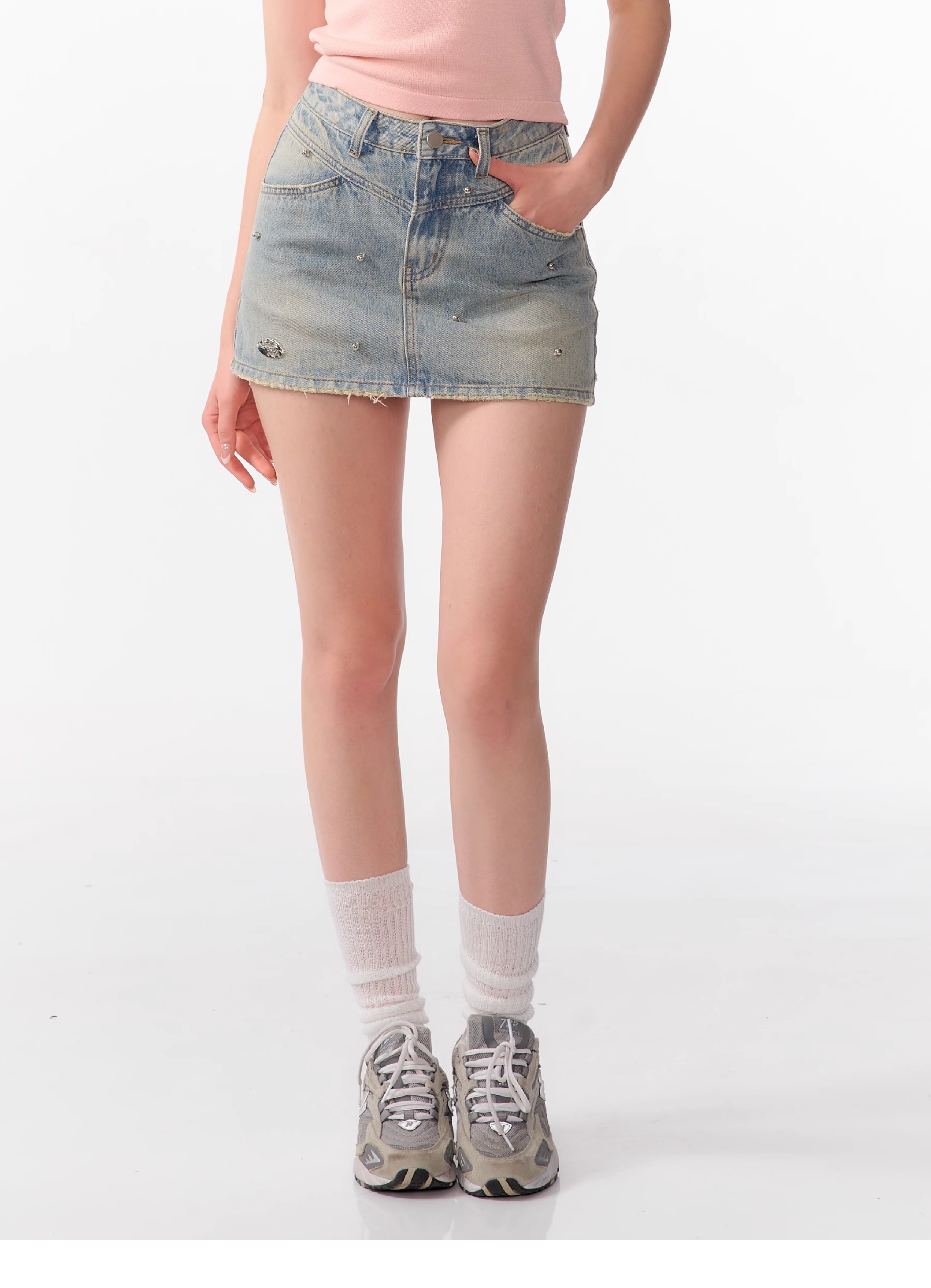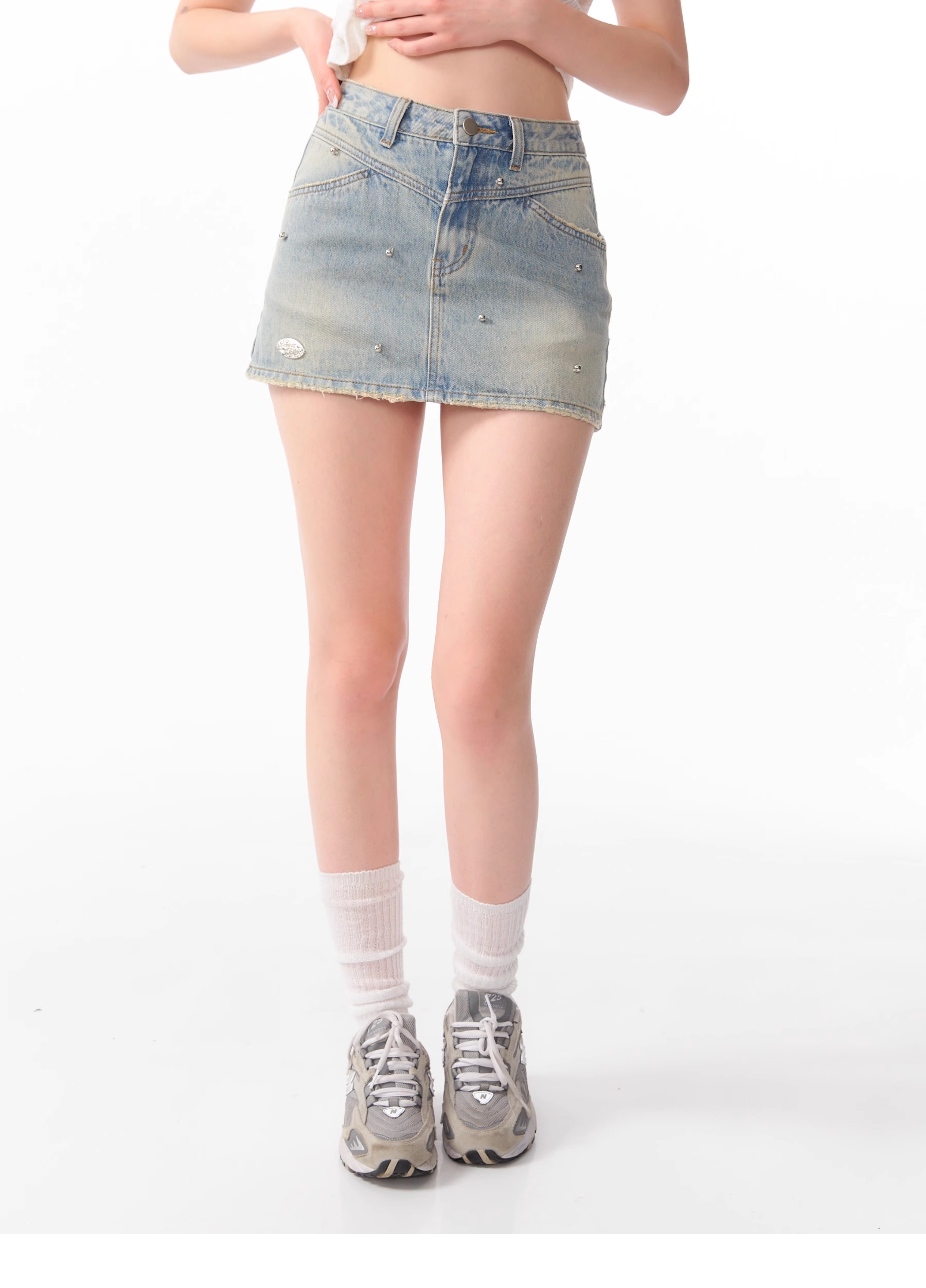 Jupe en jean trapèze à perles argentées | Style d'été rétro taille haute coupe slim
