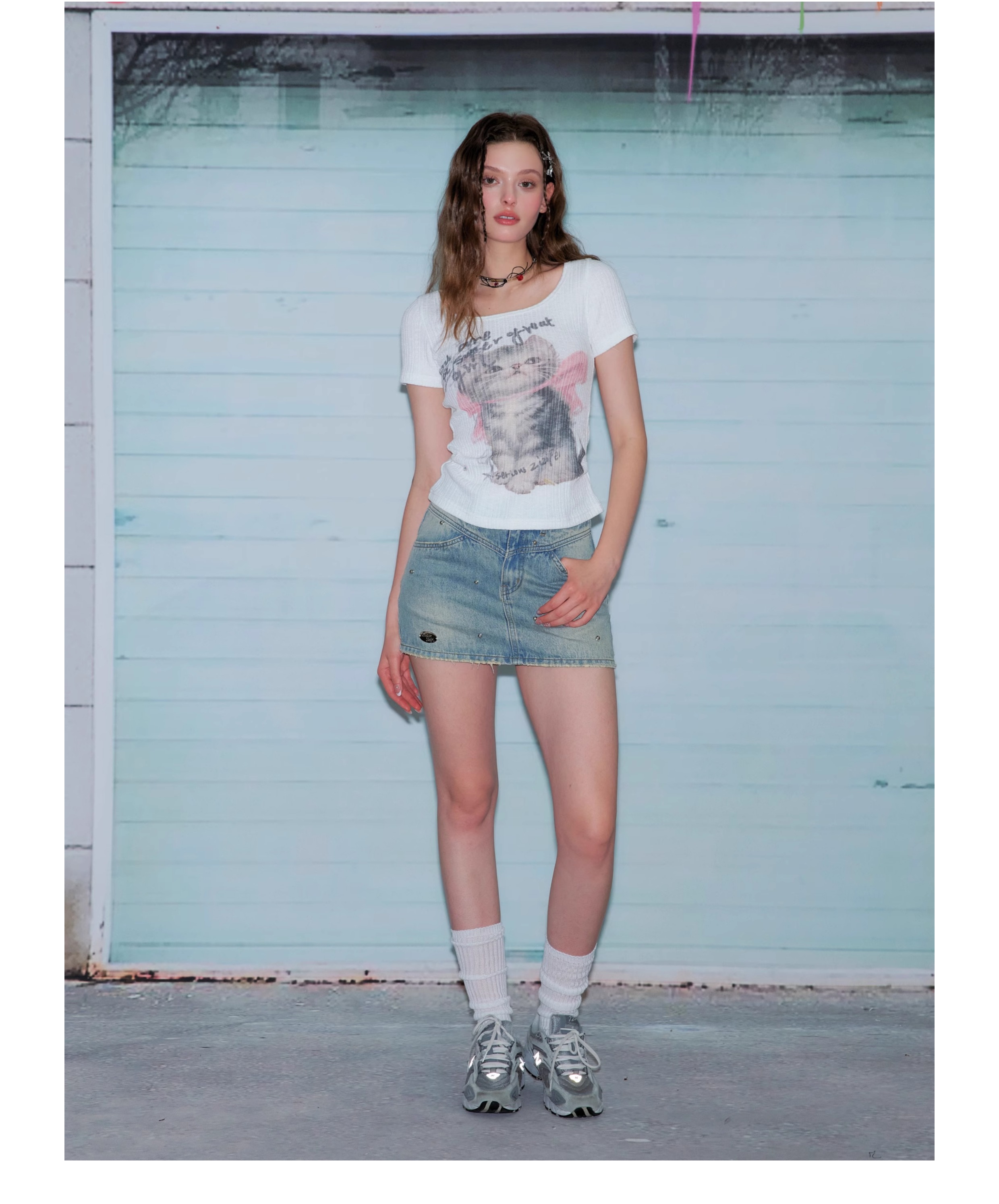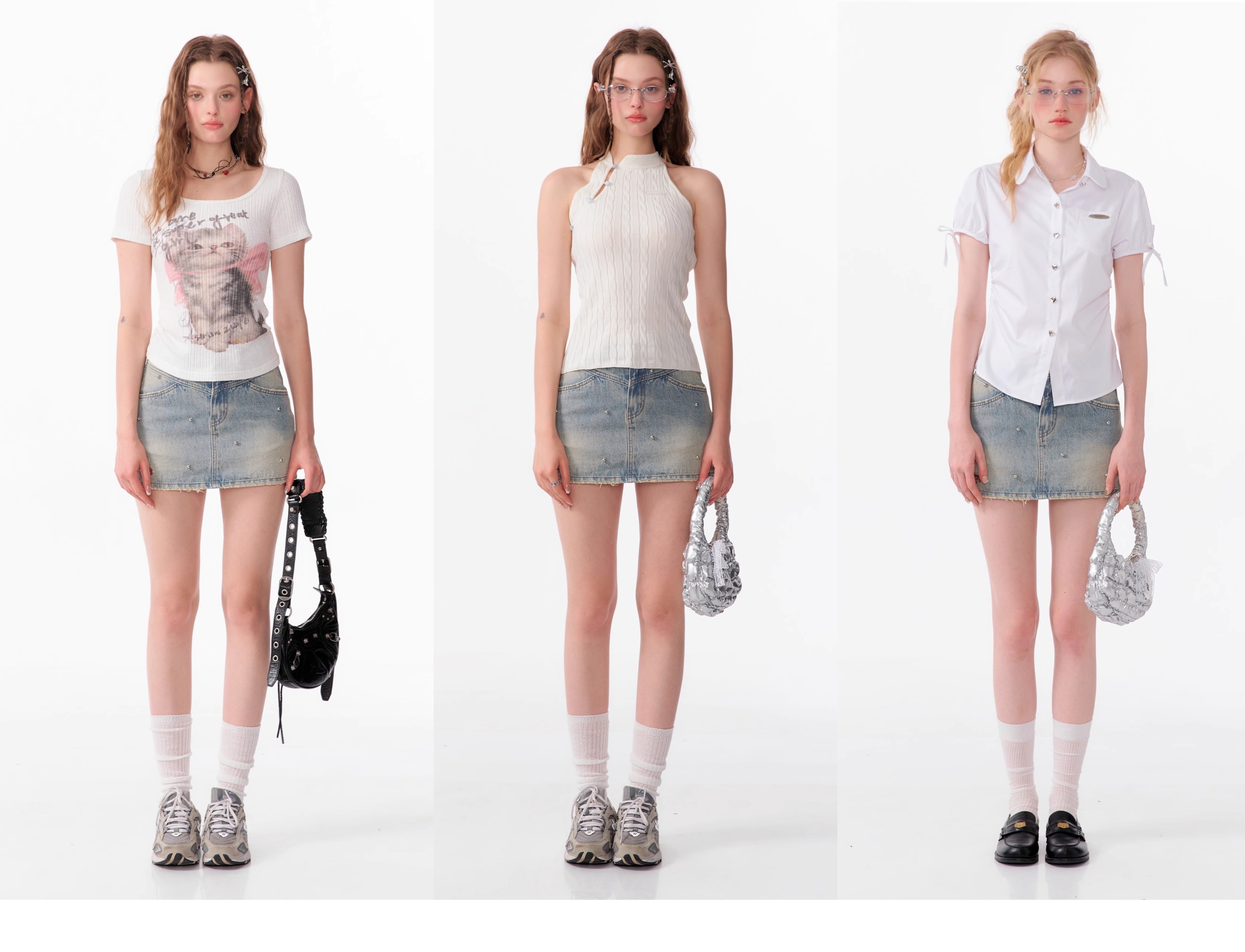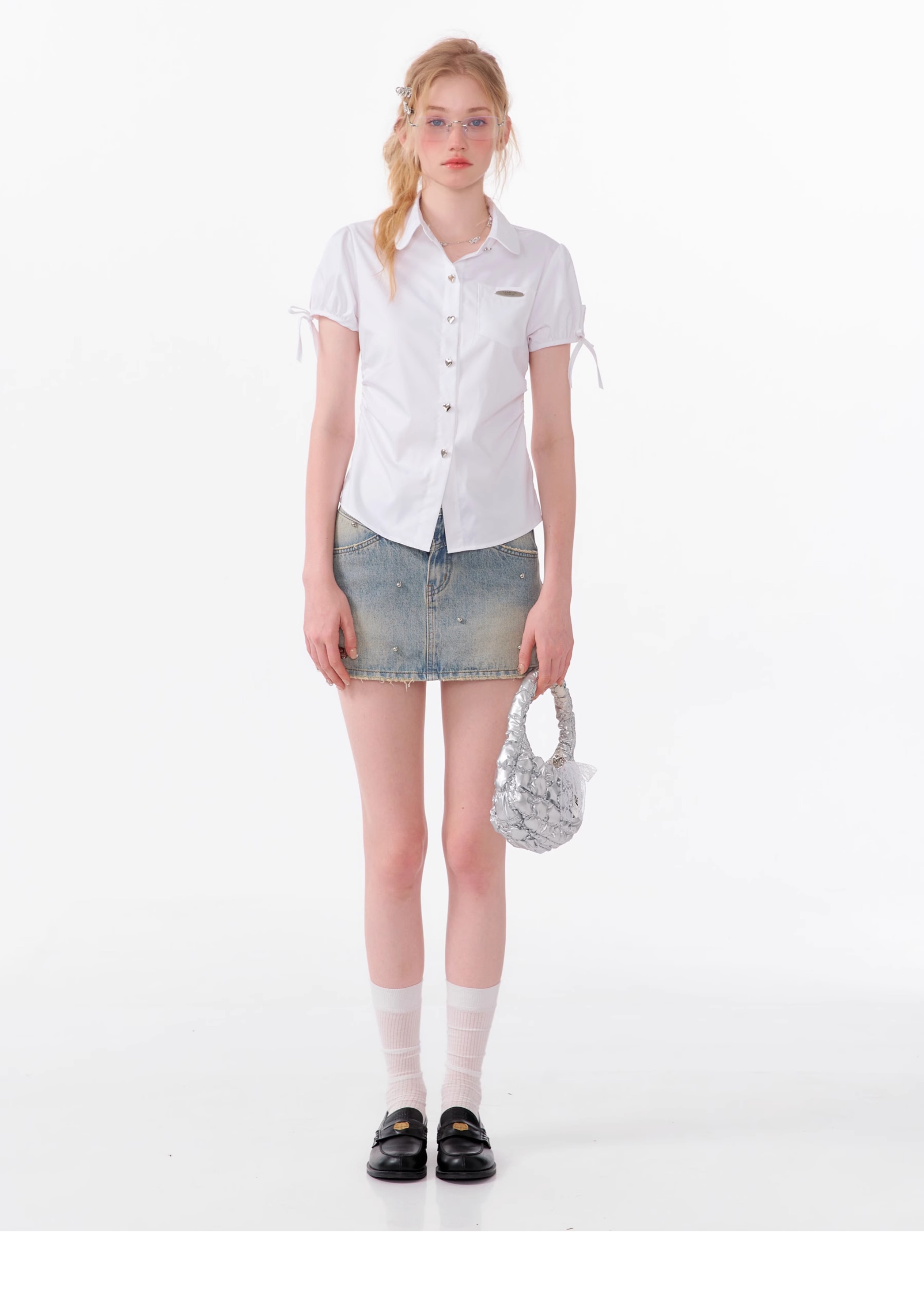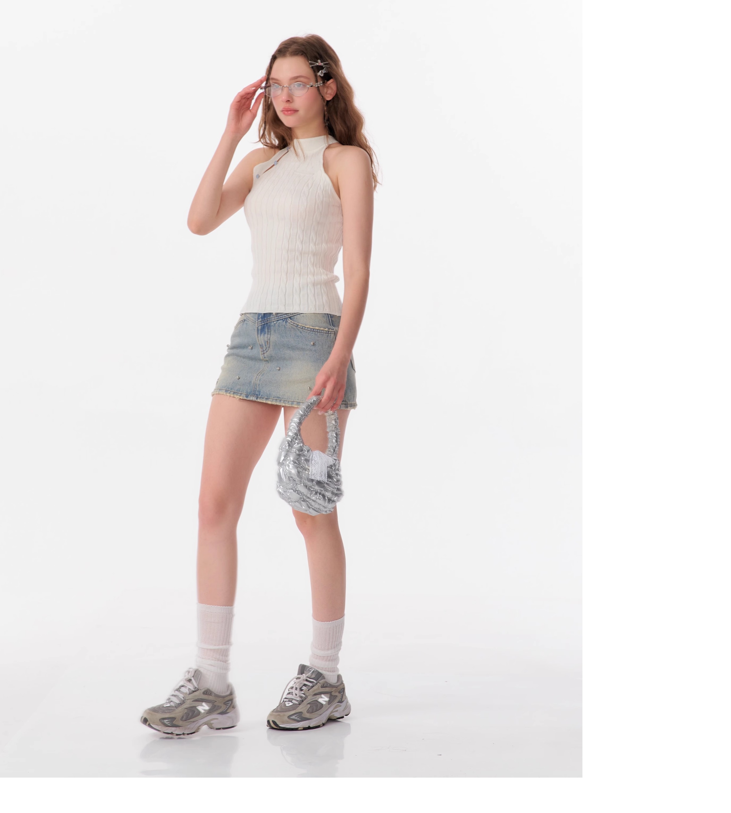 Jupe en jean trapèze à perles argentées | Style d'été rétro taille haute coupe slim