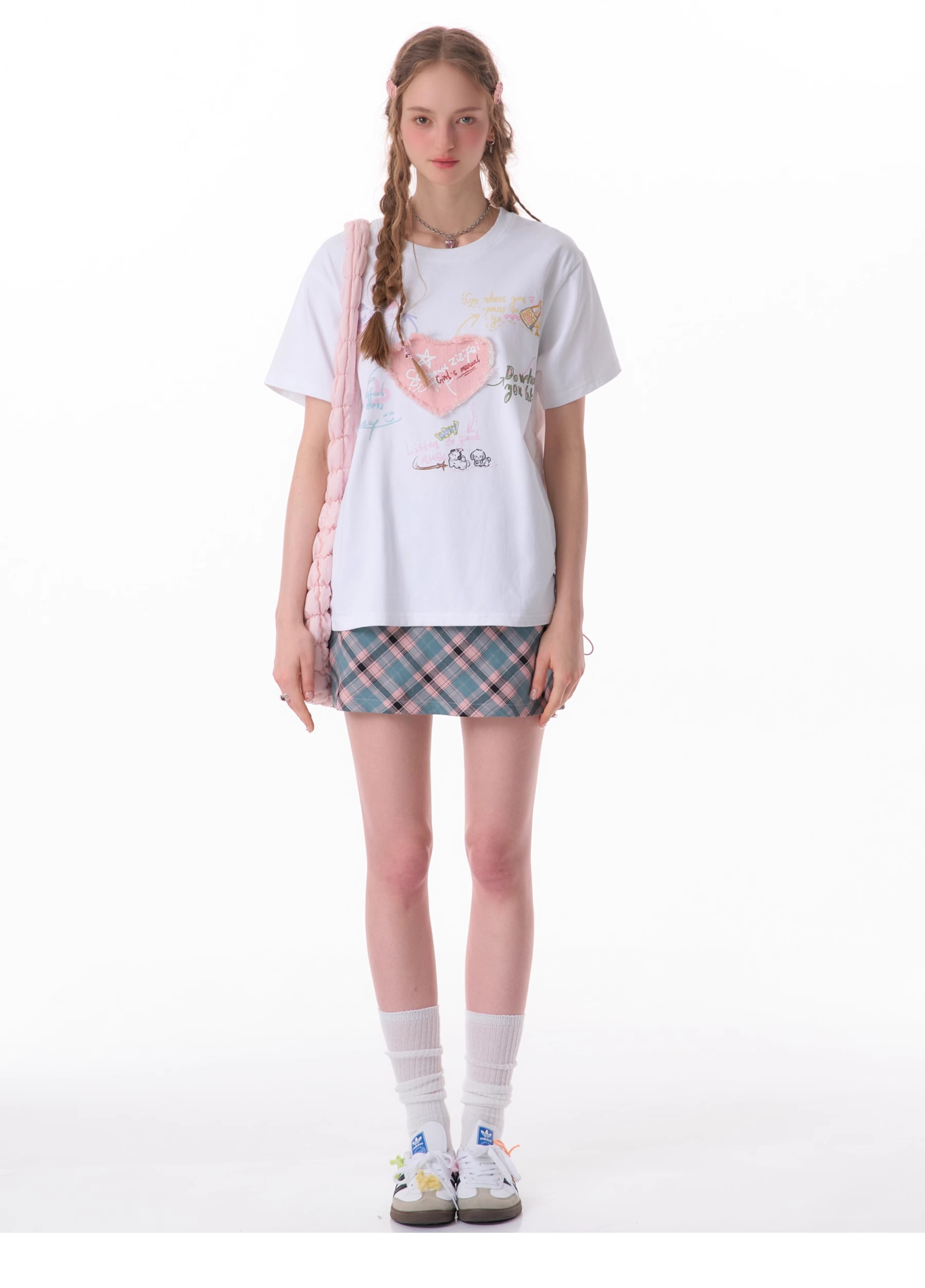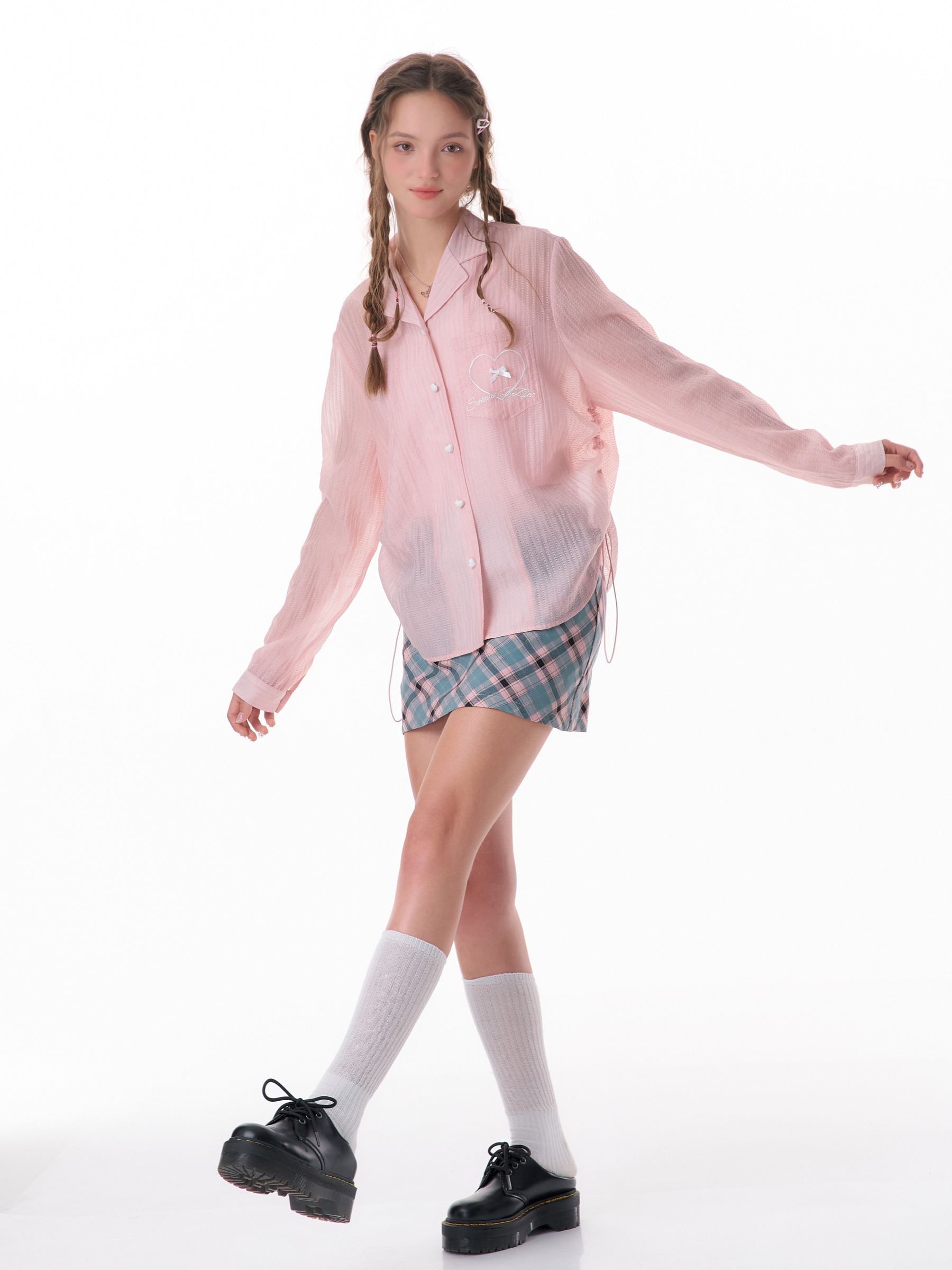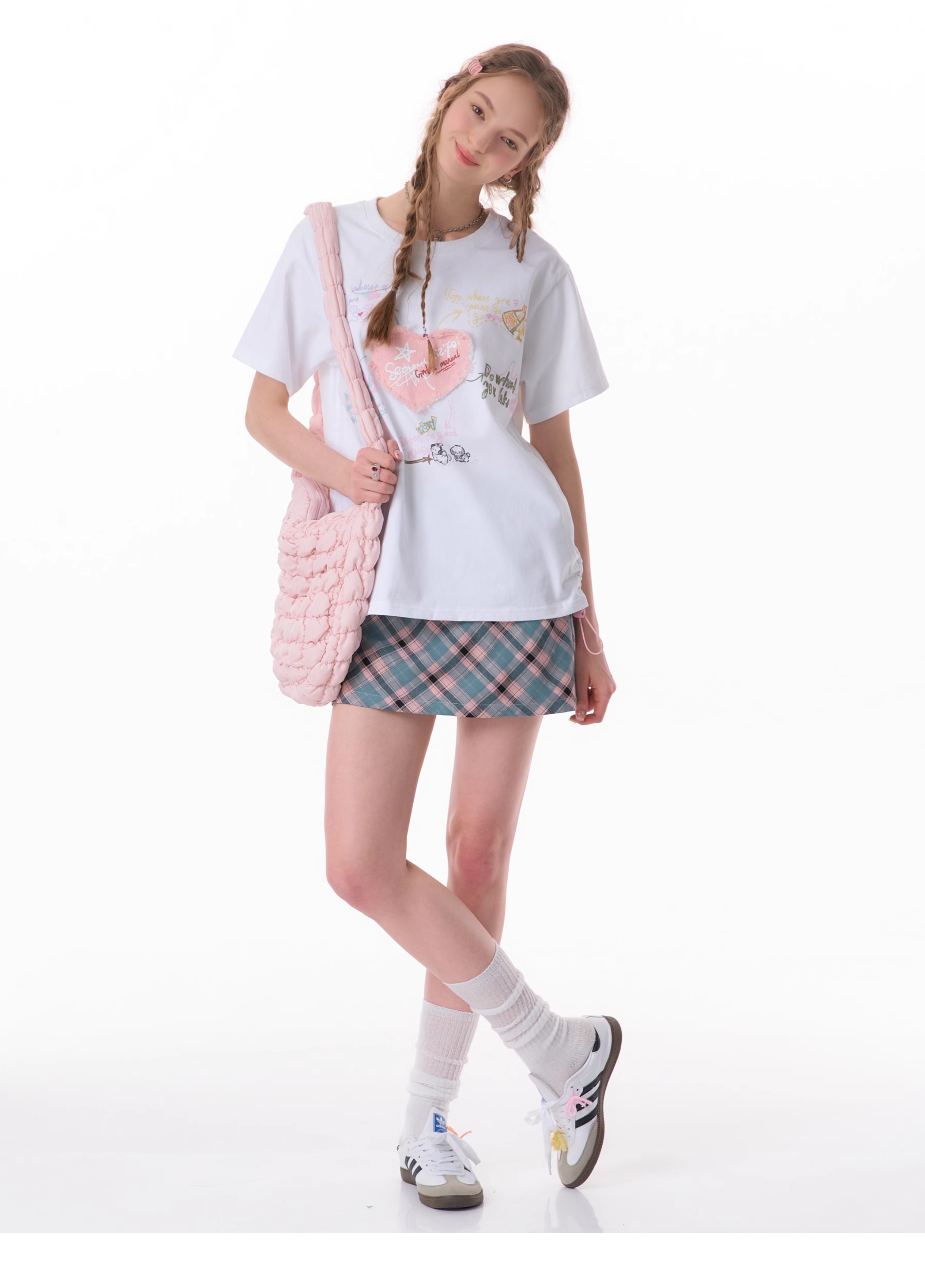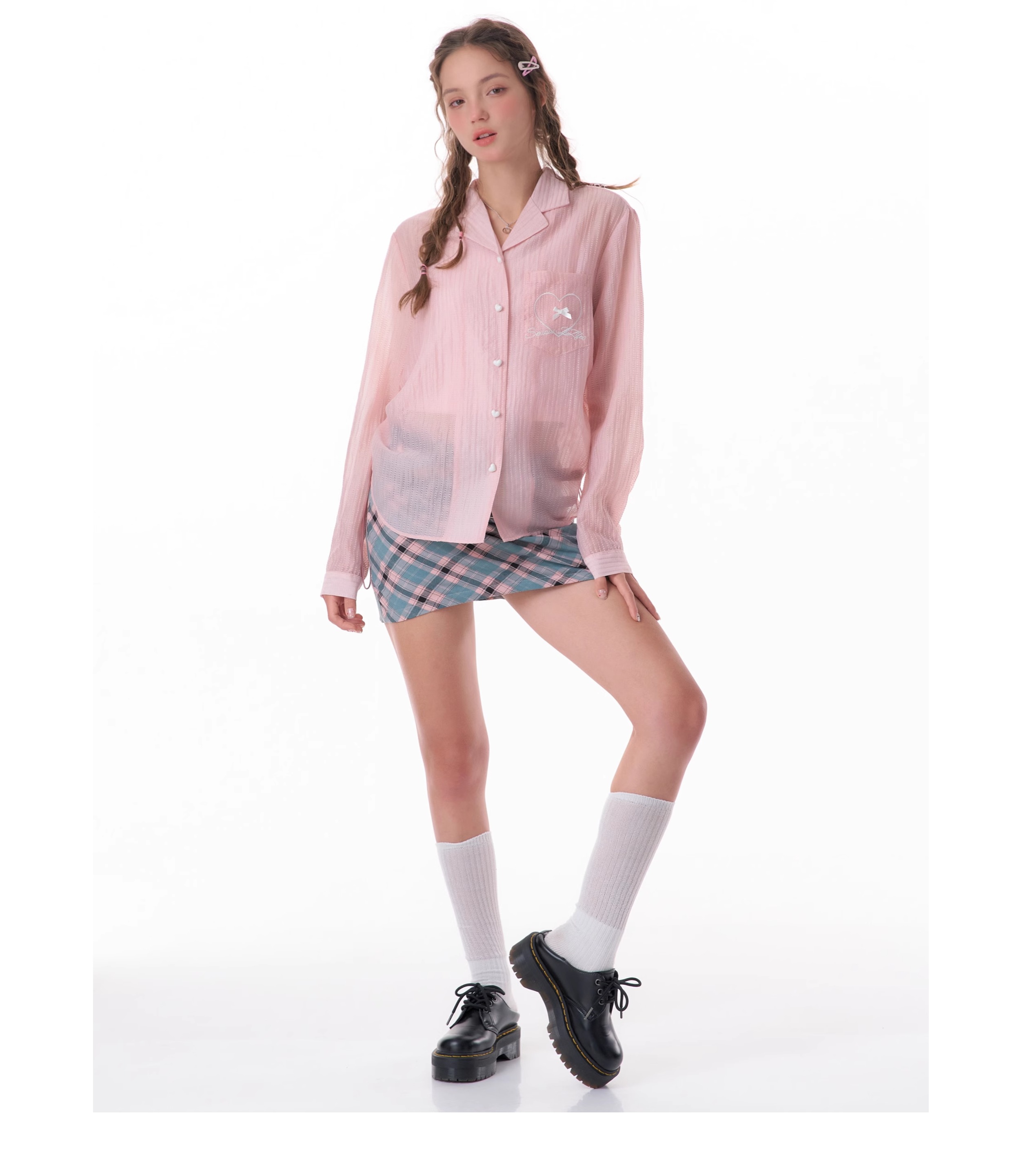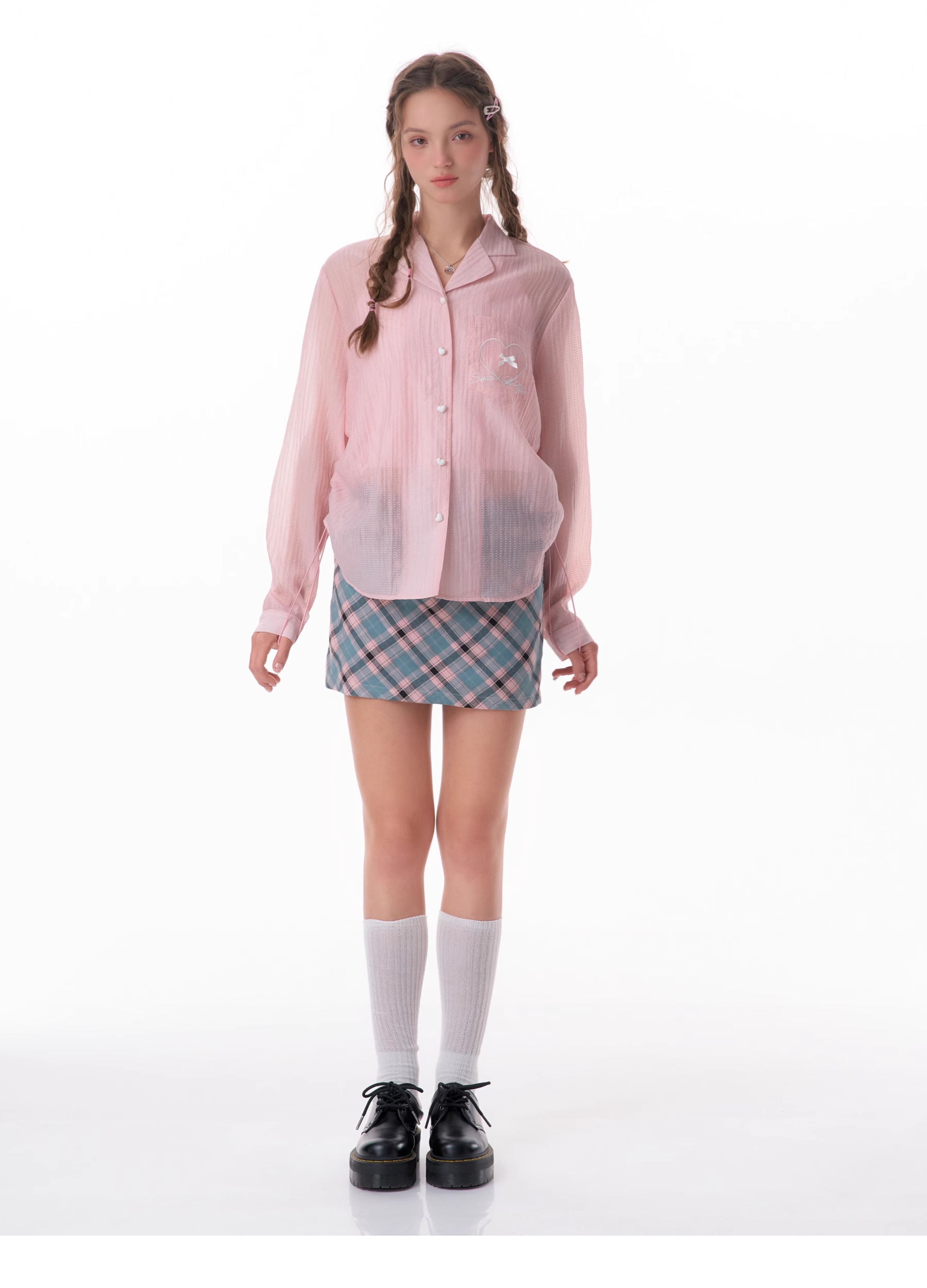 Jupe trapèze à carreaux rose et bleu | Coupe slim rétro taille haute pour l’été