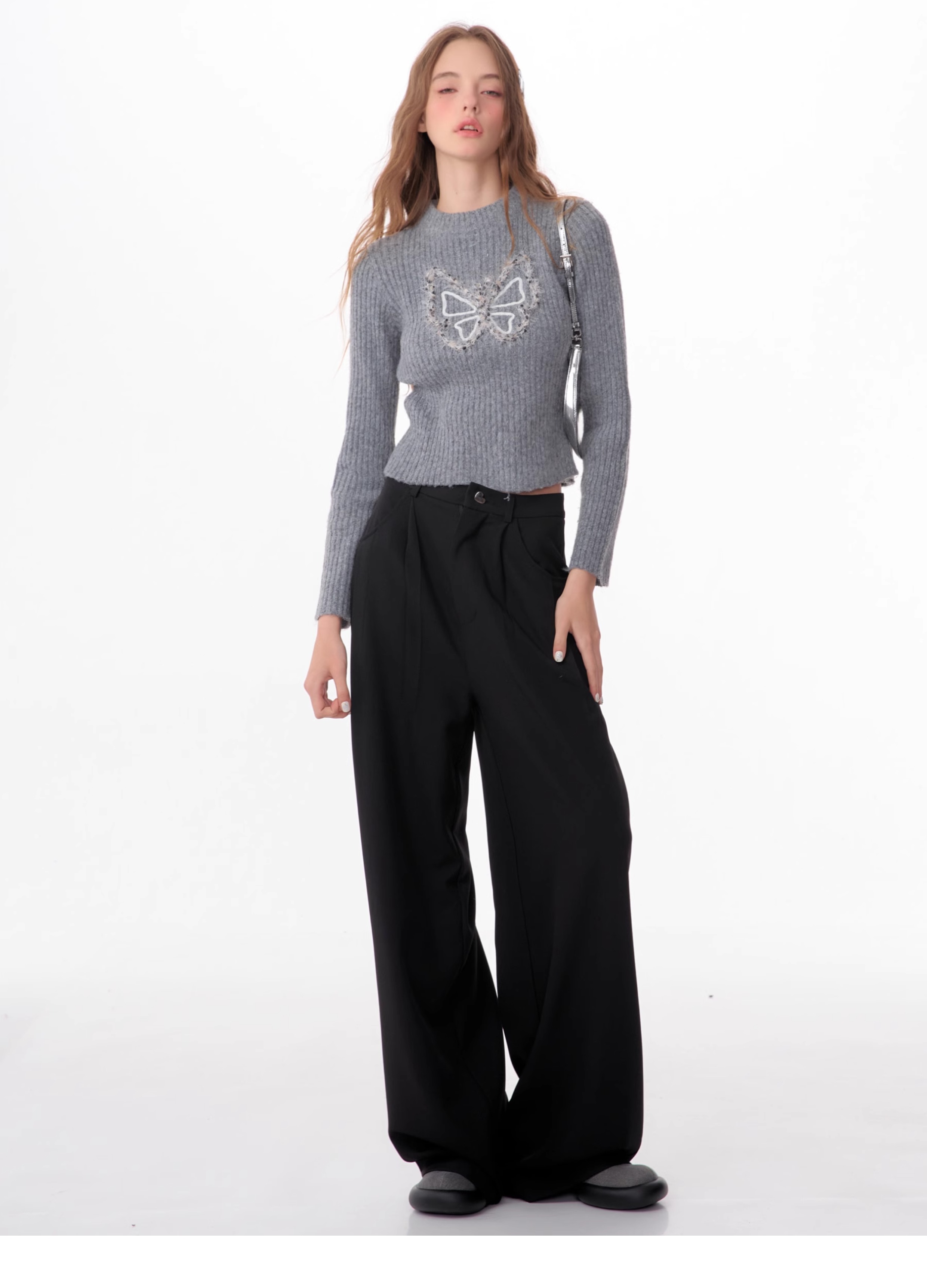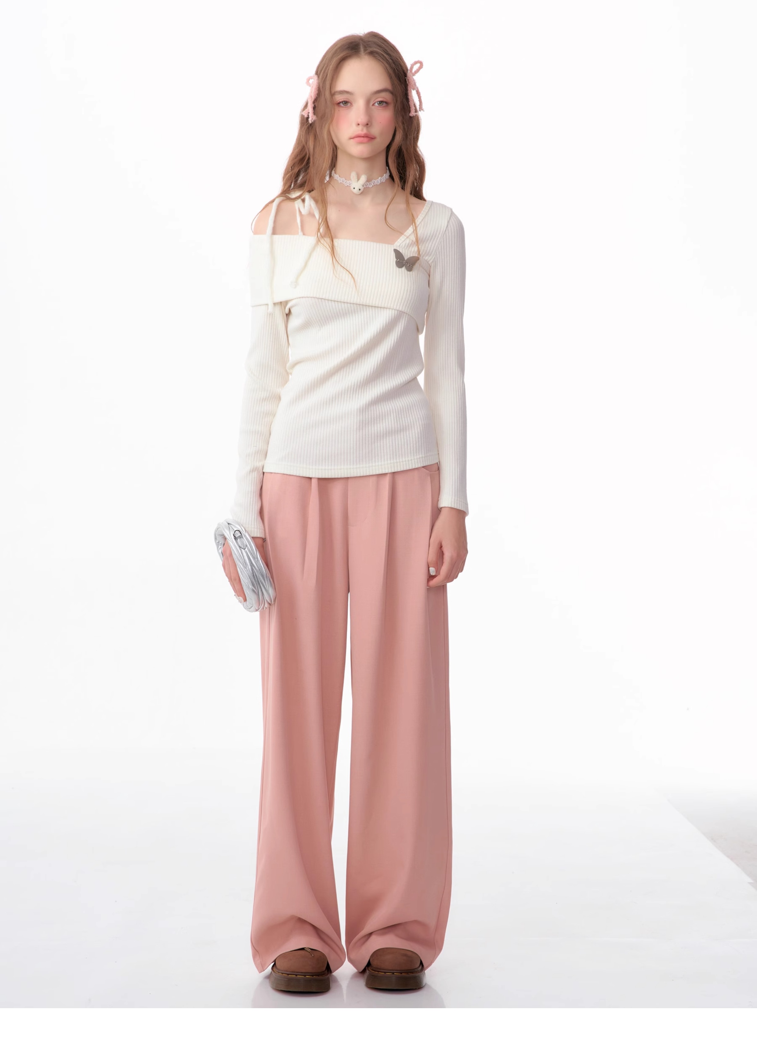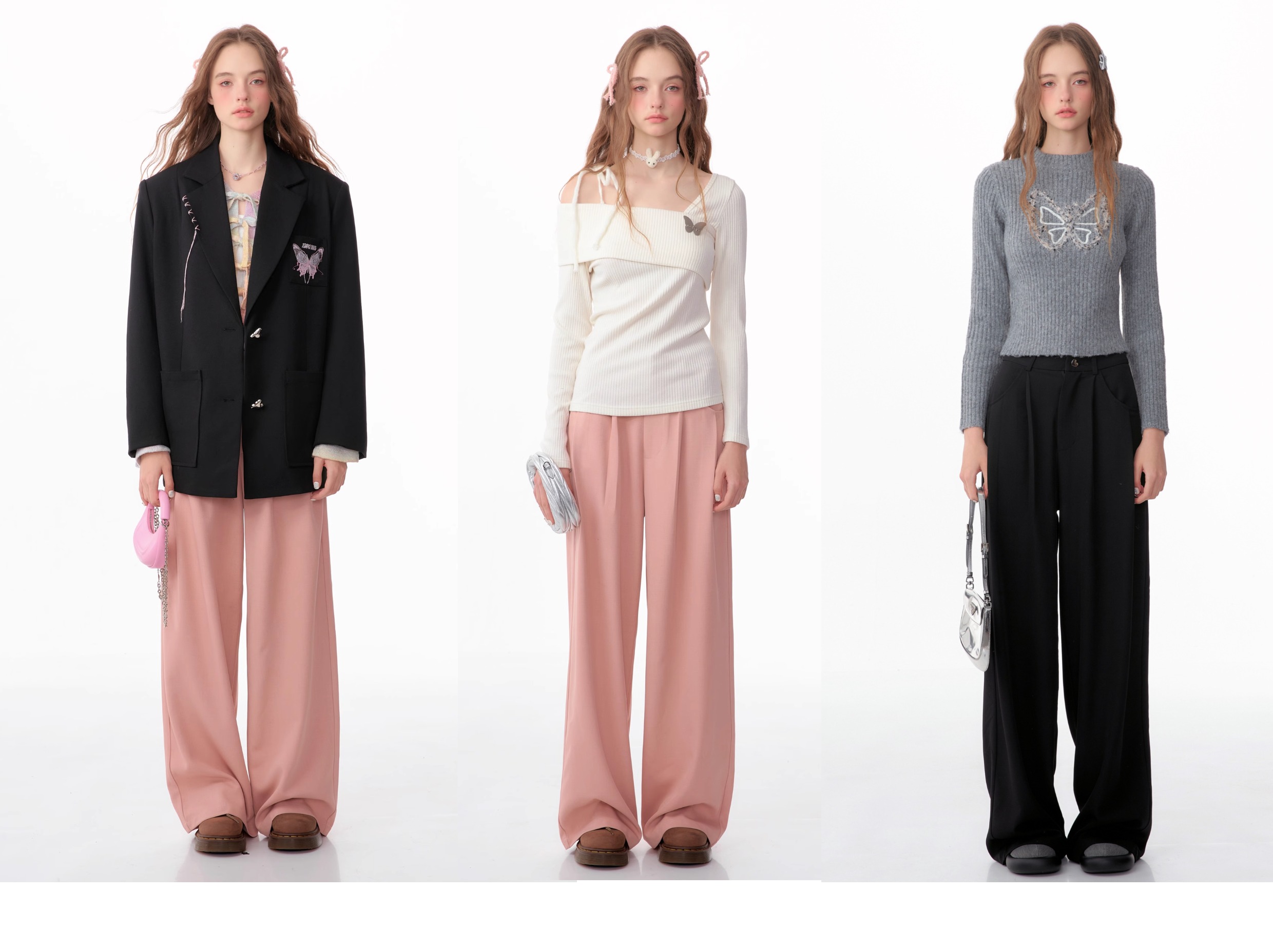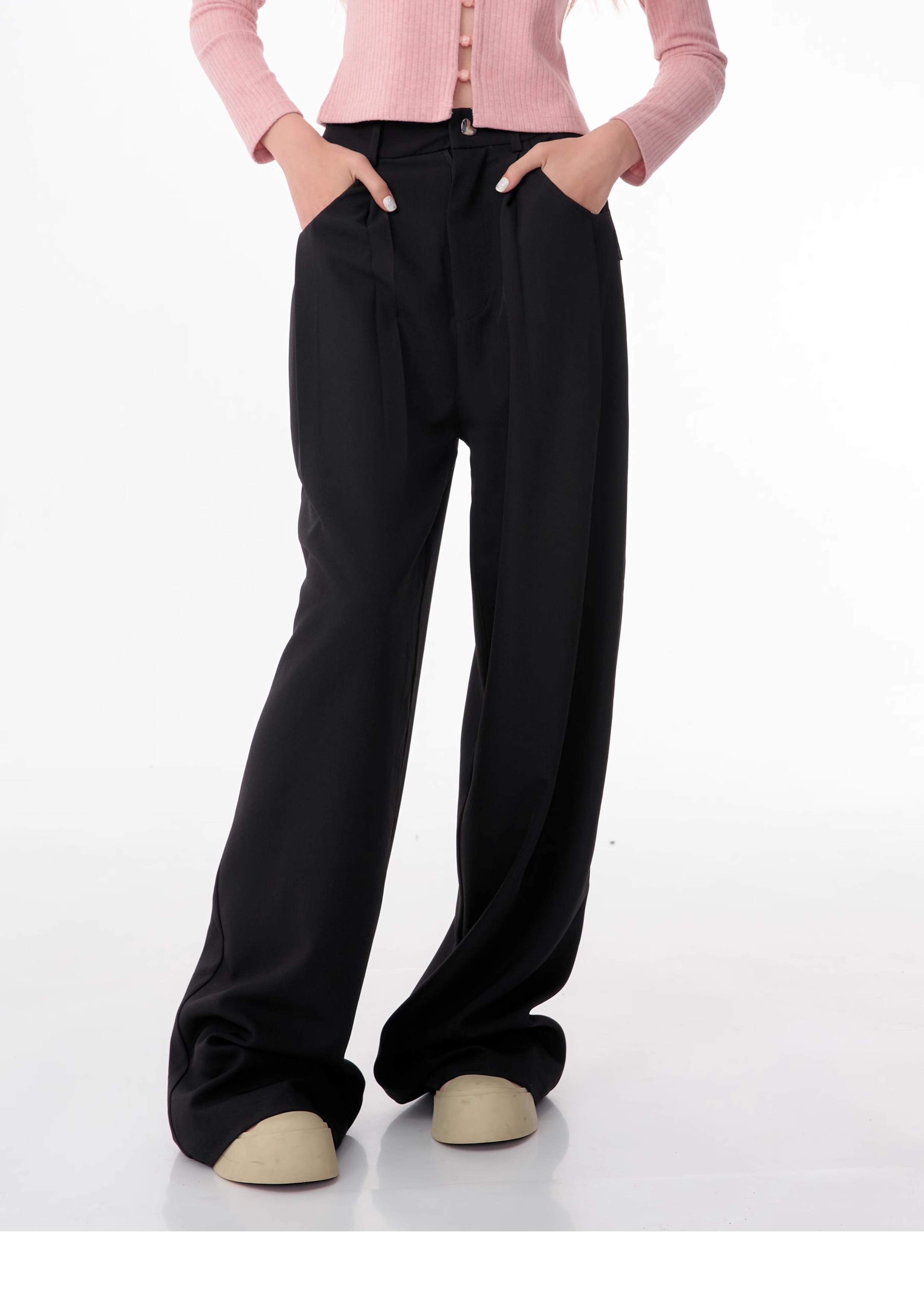 Pantalon rétro taille haute à jambes larges | Coupe slim, design décontracté d'été