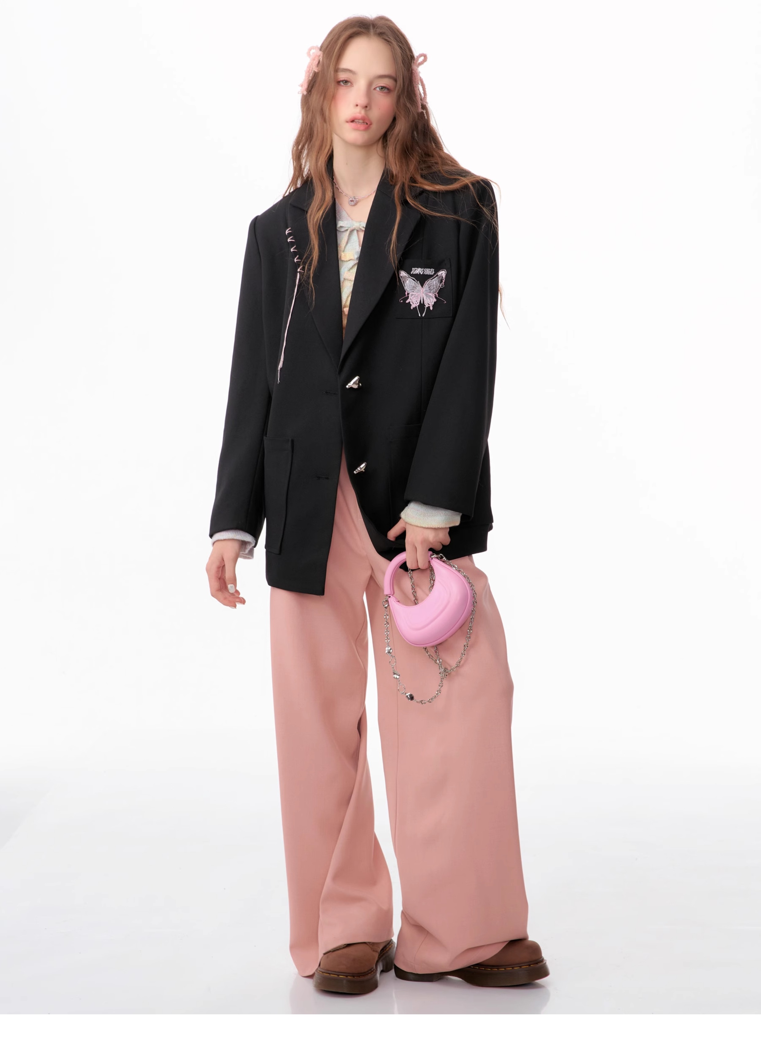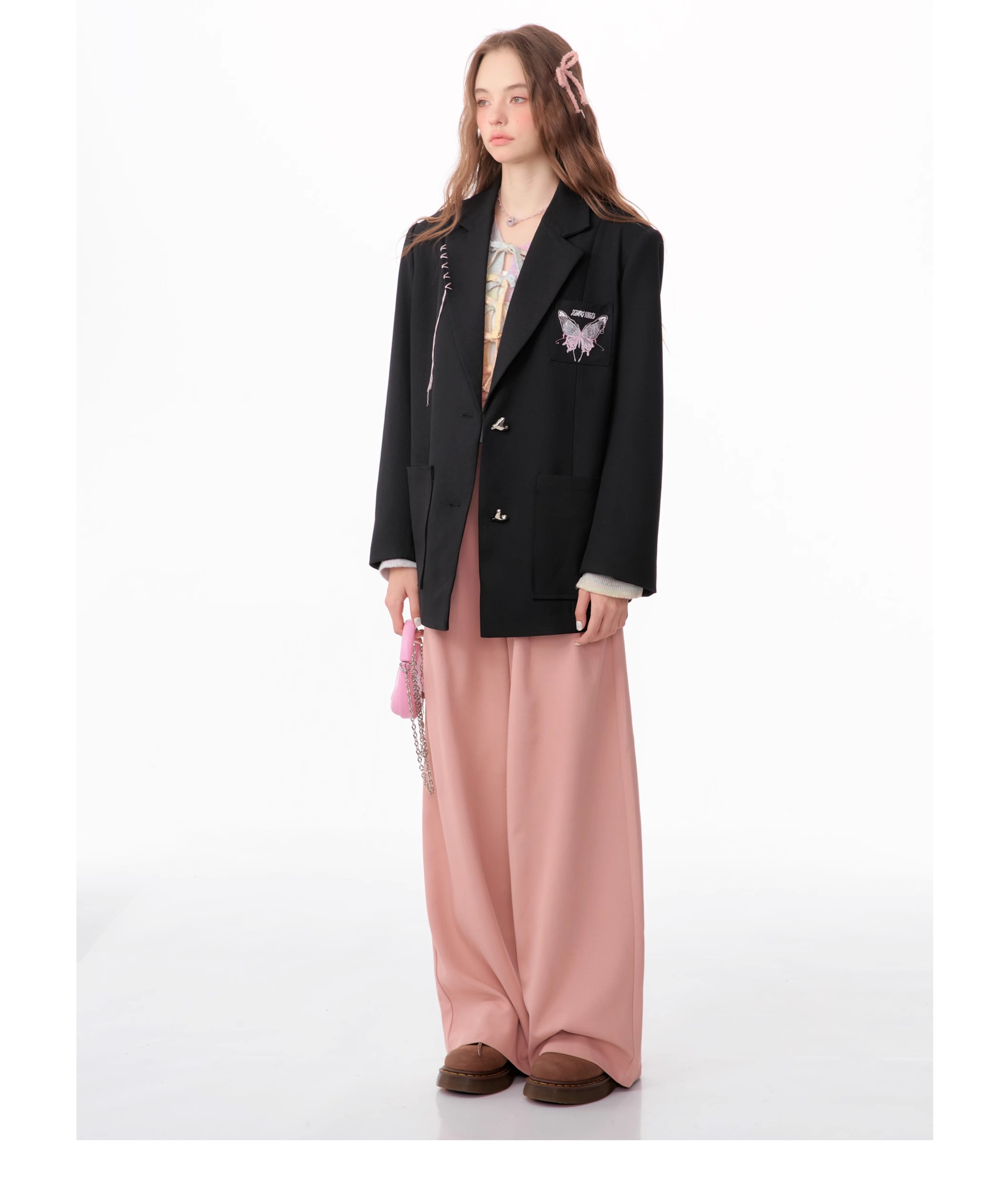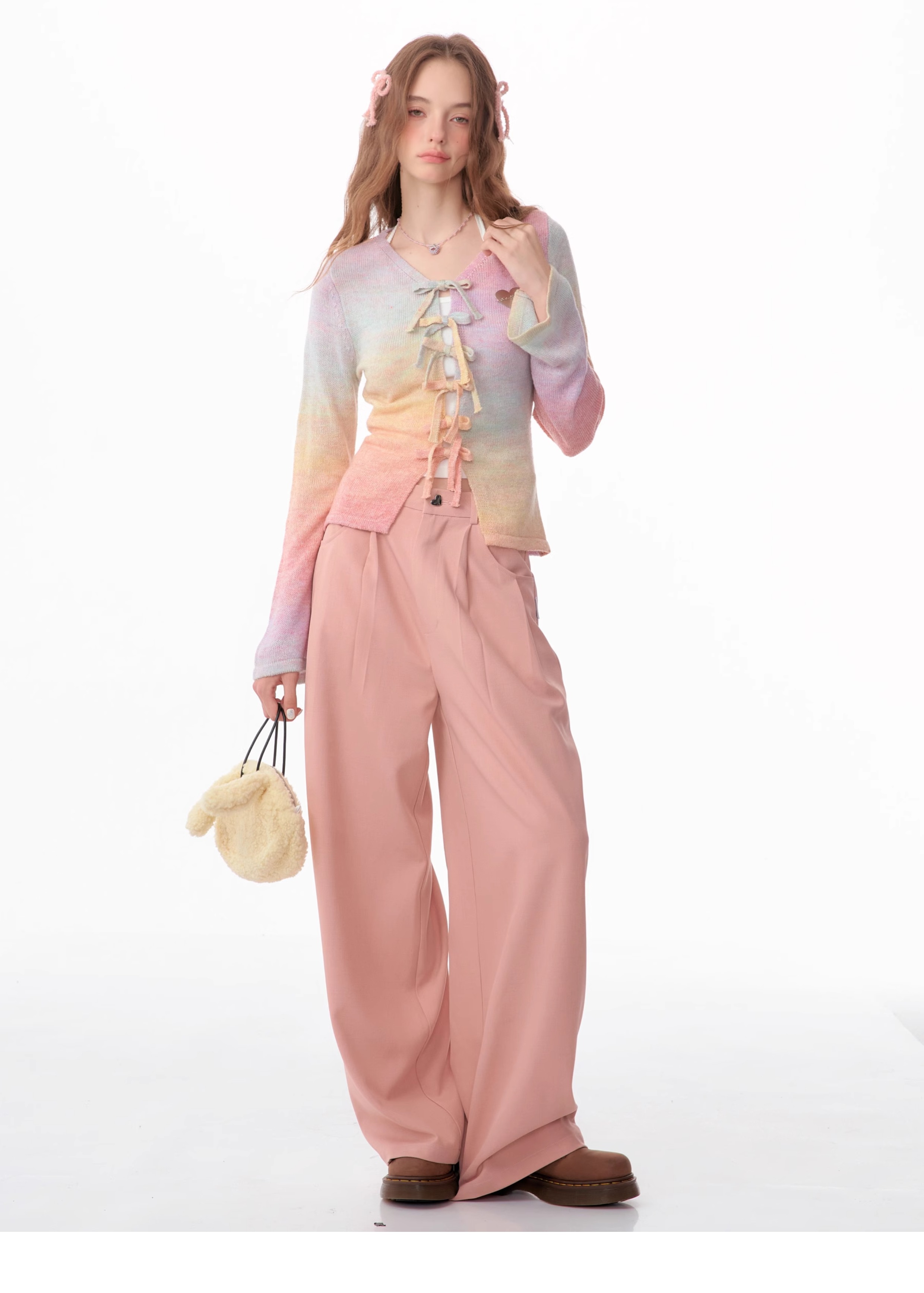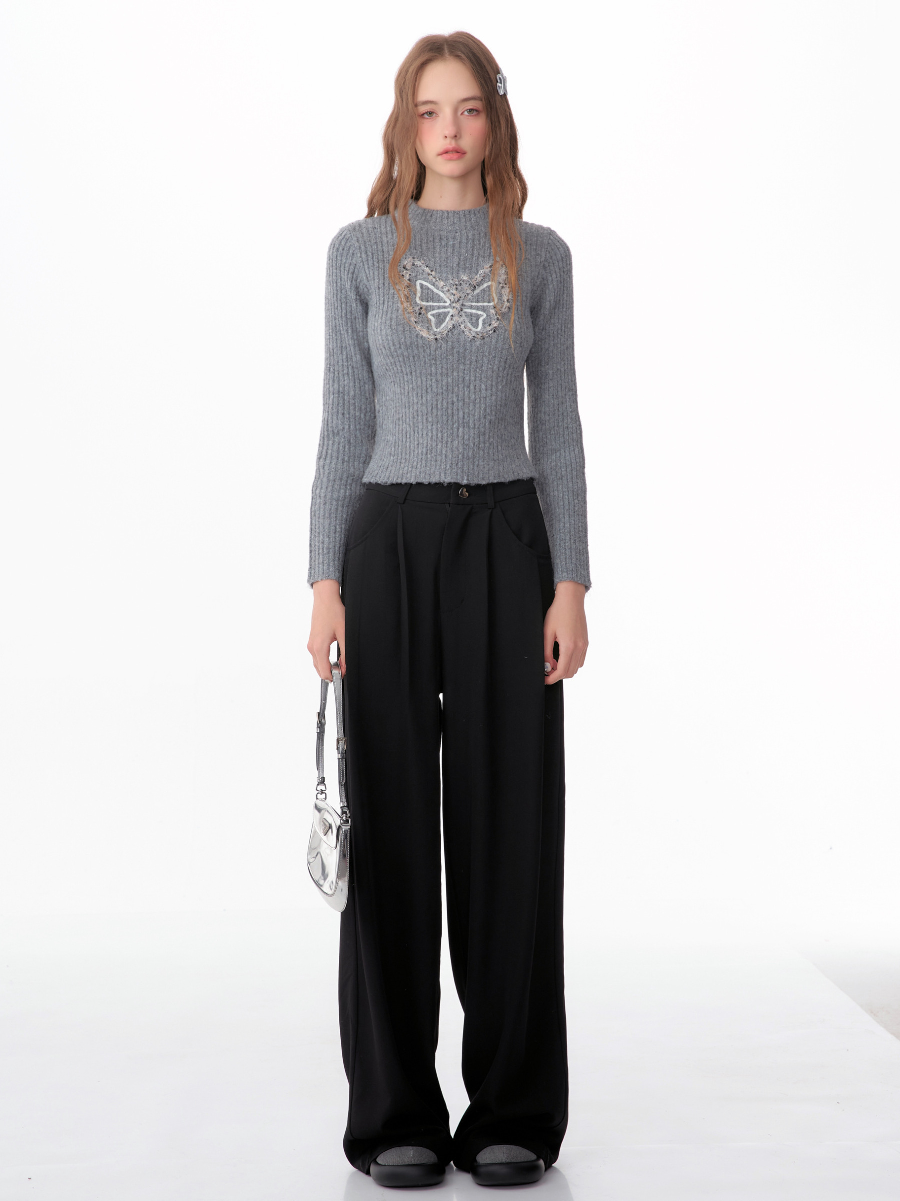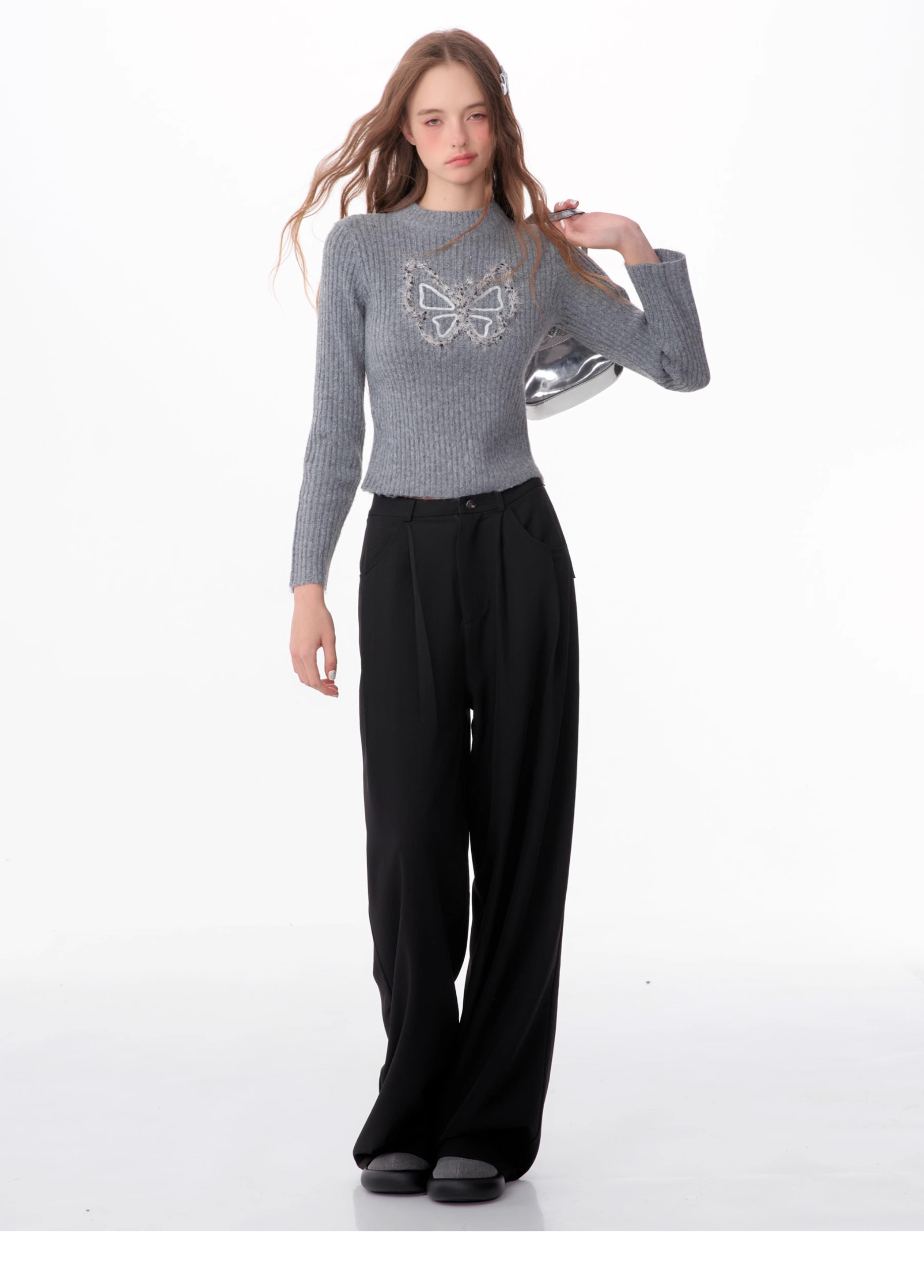 Pantalon rétro taille haute à jambes larges | Coupe slim, design décontracté d'été