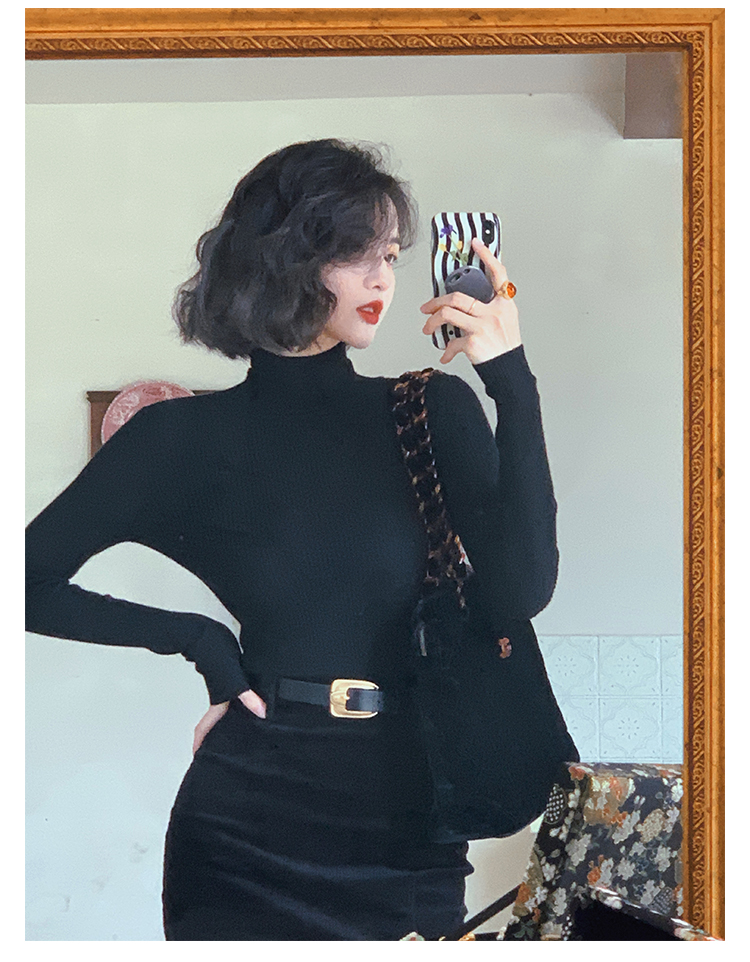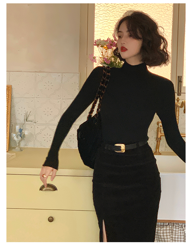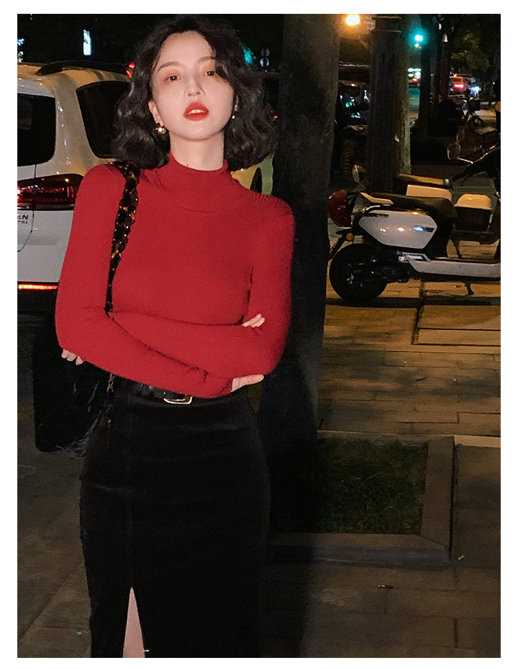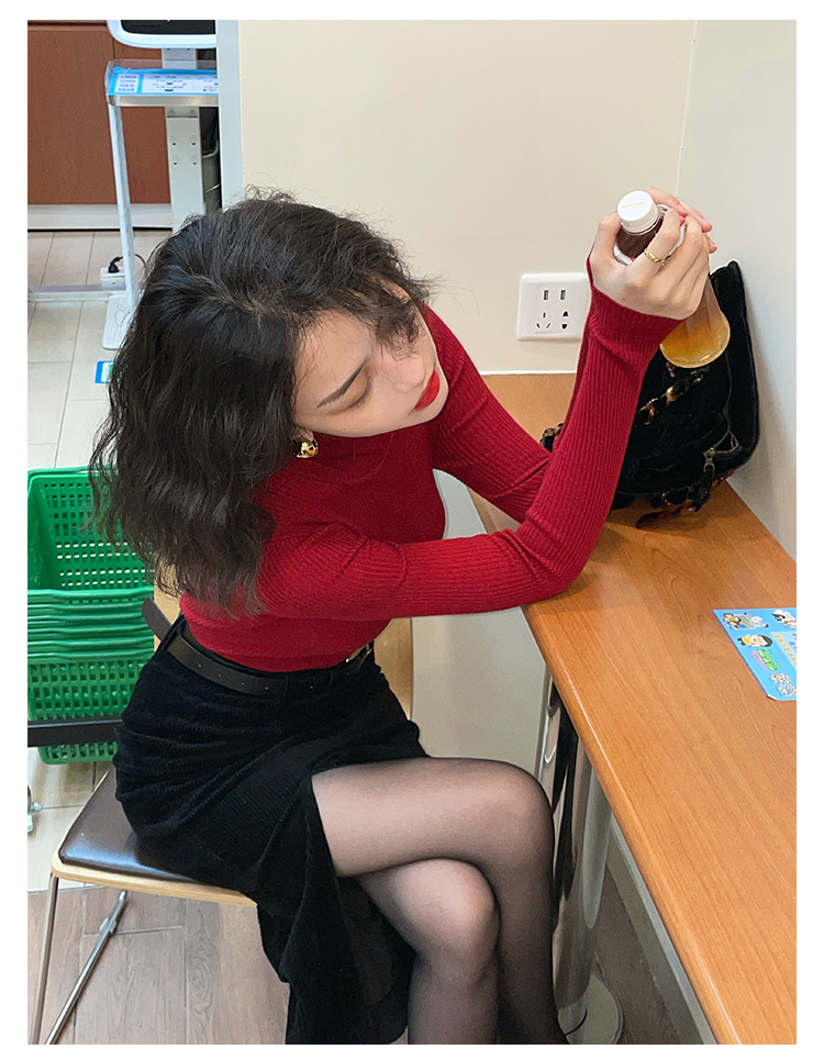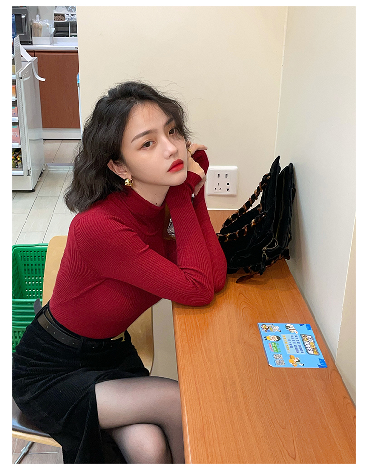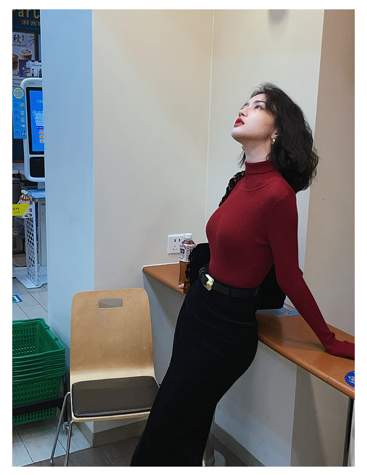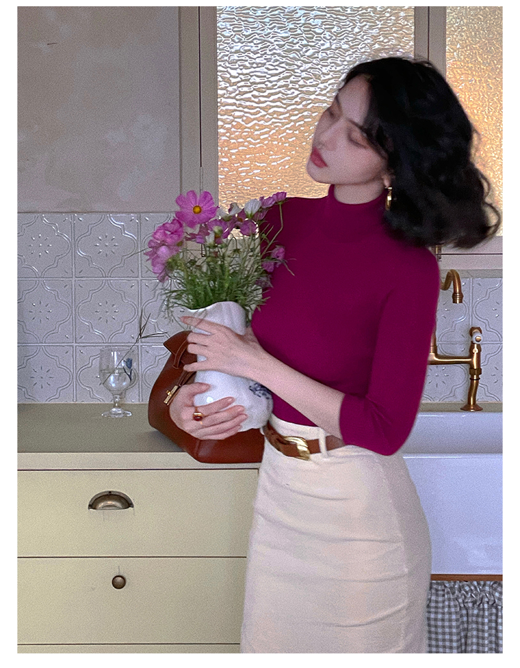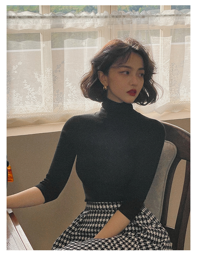 Turtleneck Fitted Knit Top – Classic Long Sleeve Base Layer