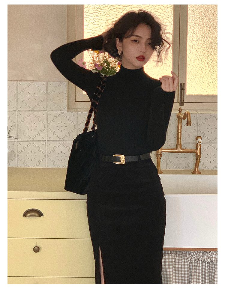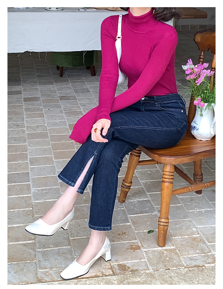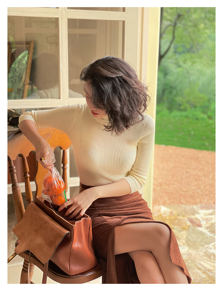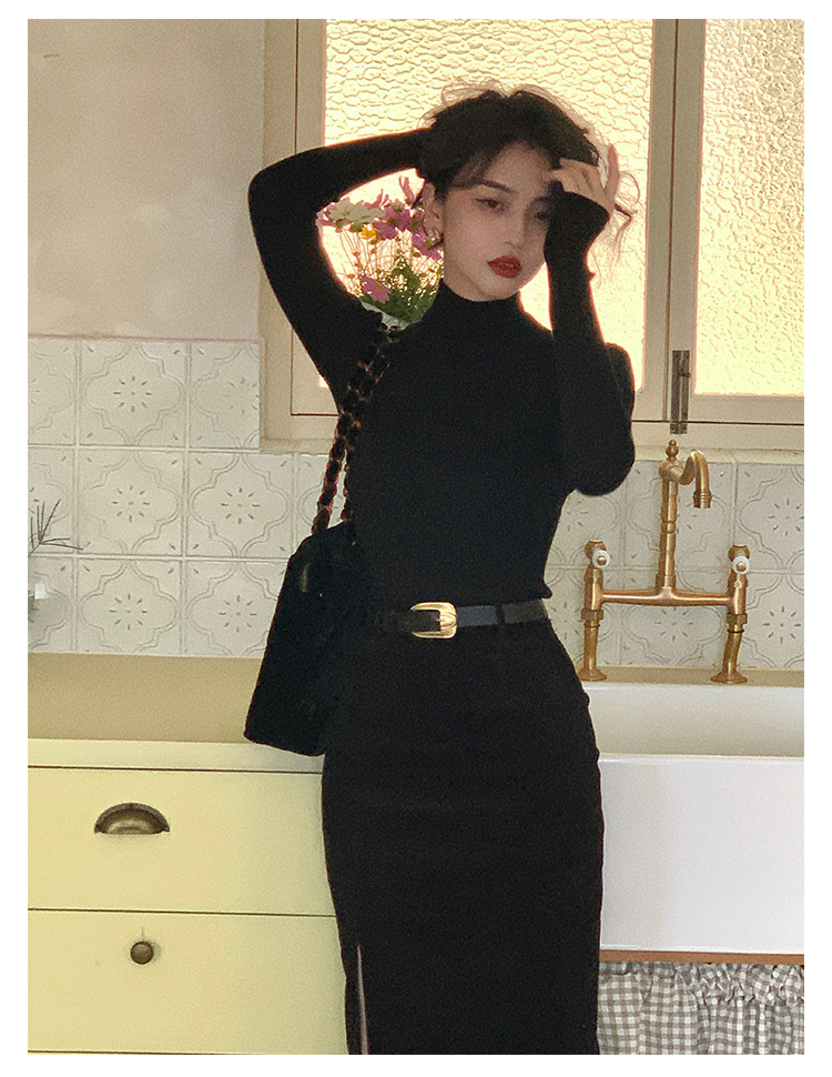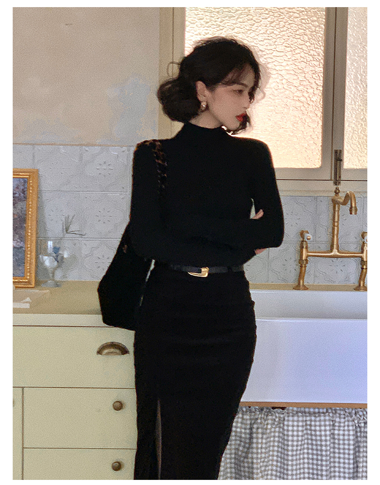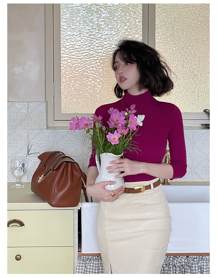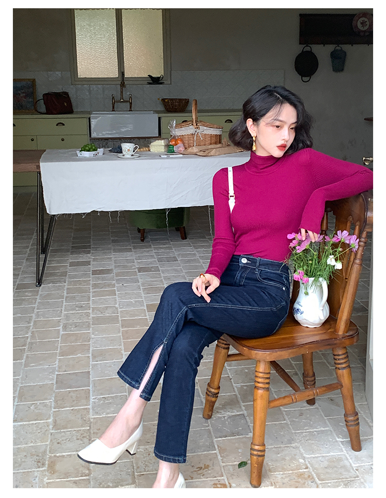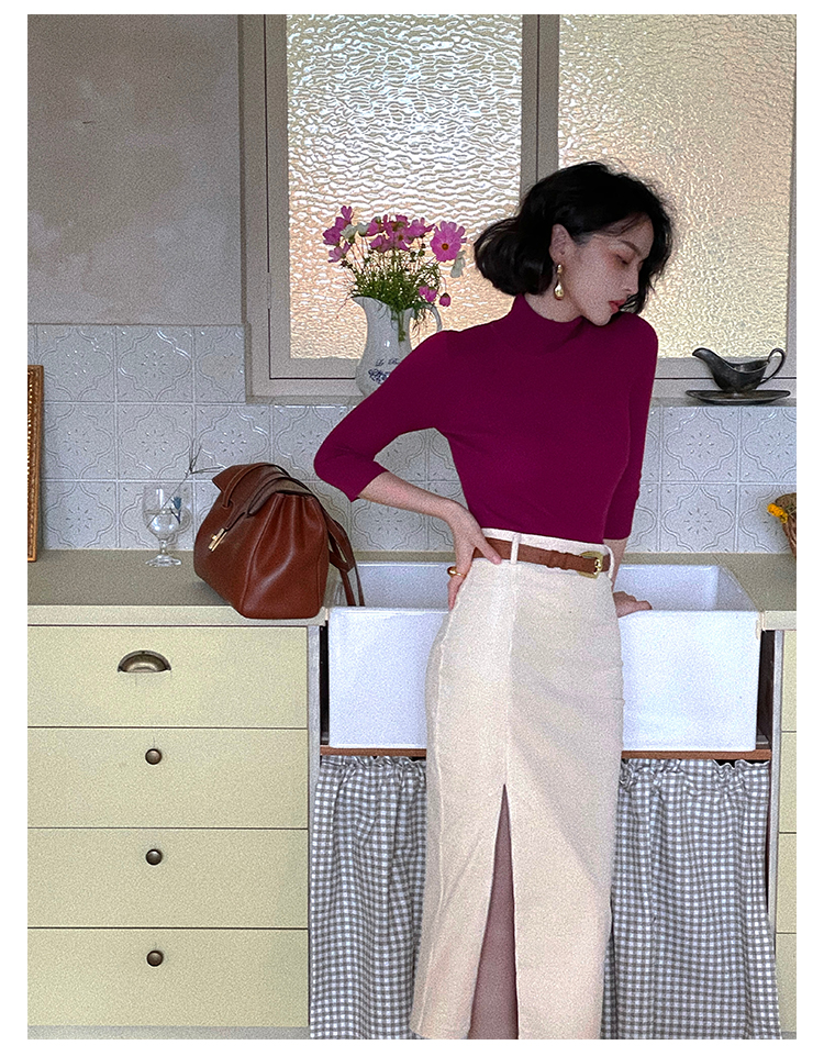 Turtleneck Fitted Knit Top – Classic Long Sleeve Base Layer