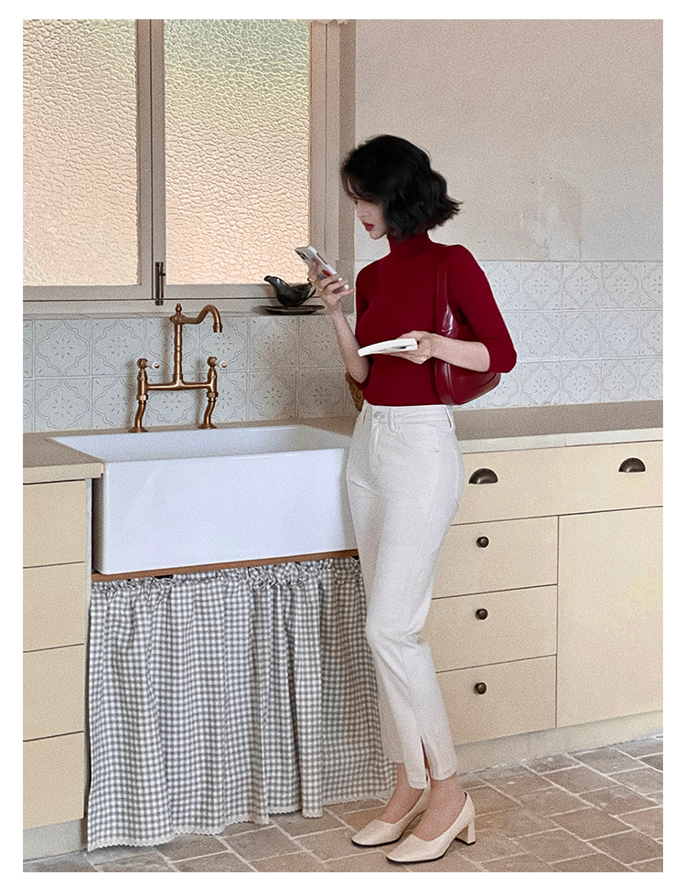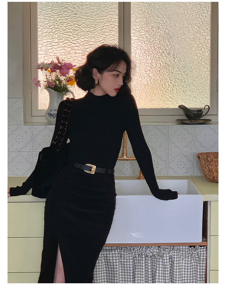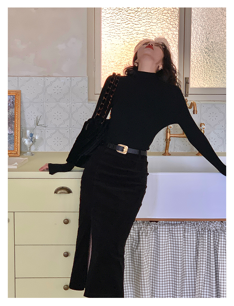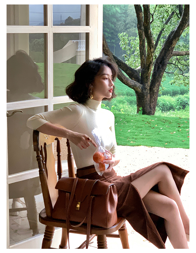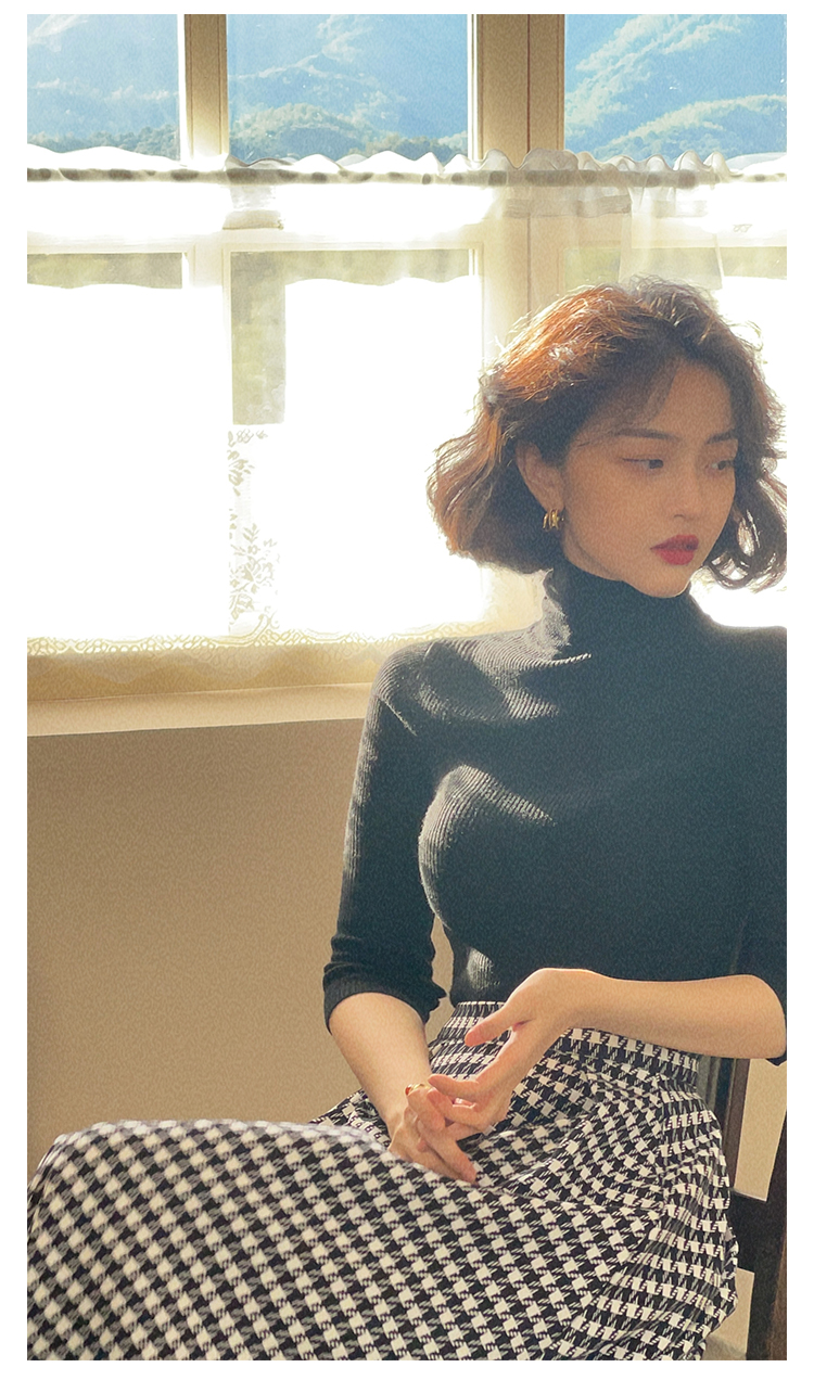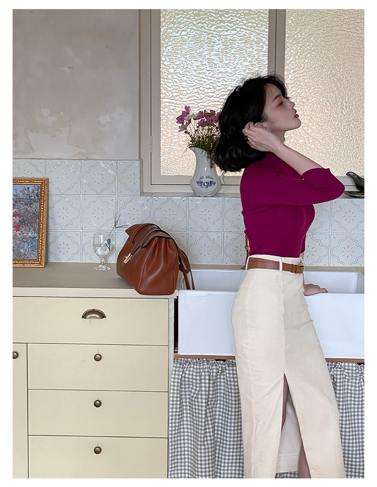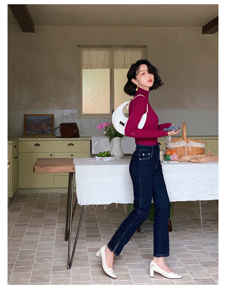 Turtleneck Fitted Knit Top – Classic Long Sleeve Base Layer