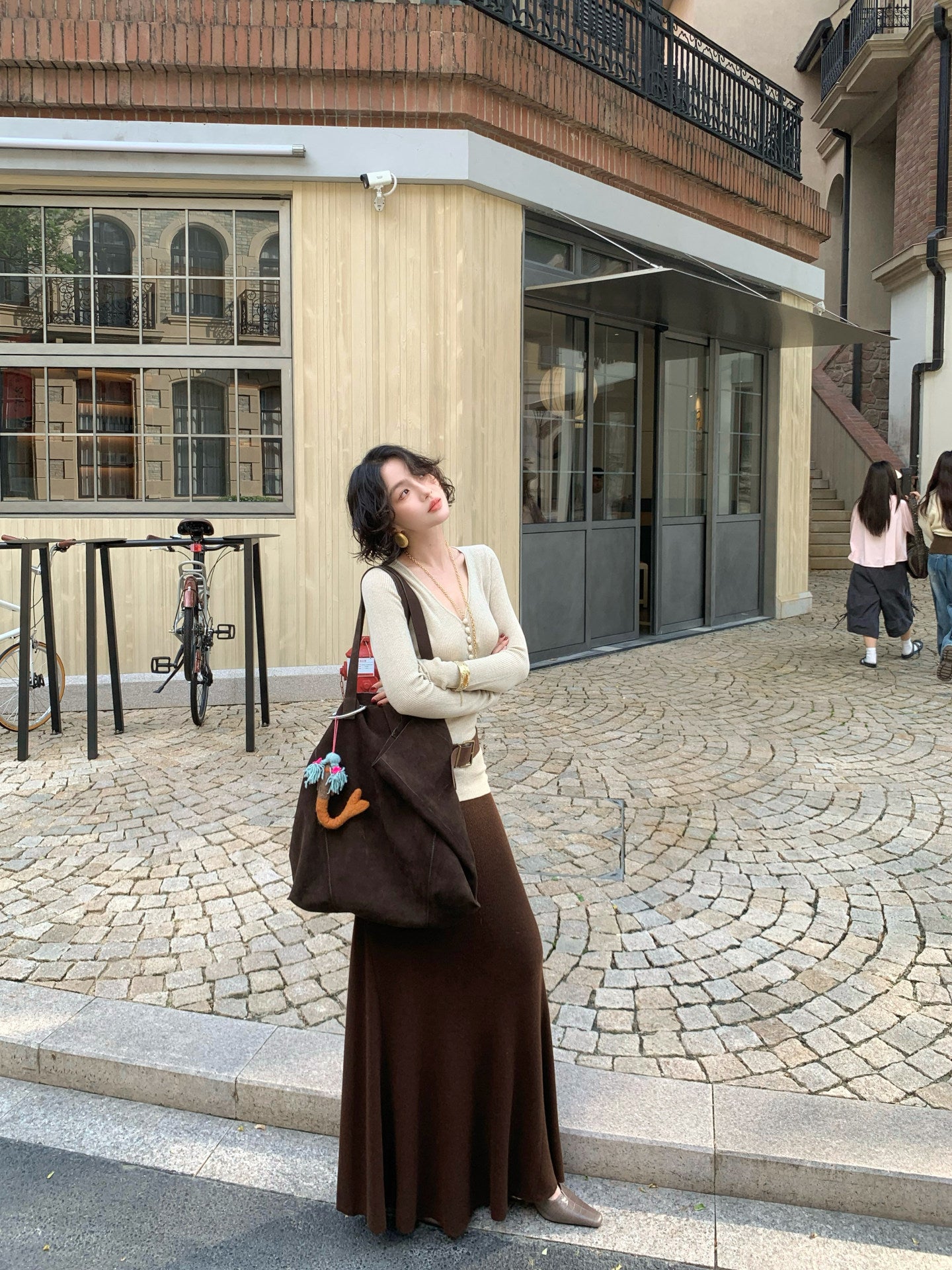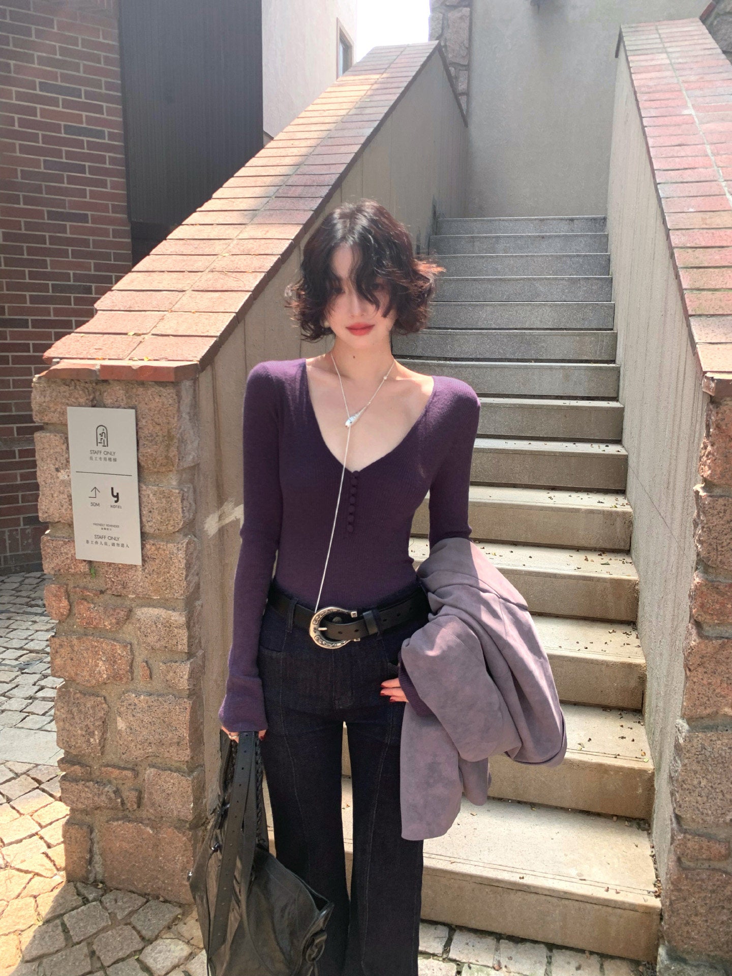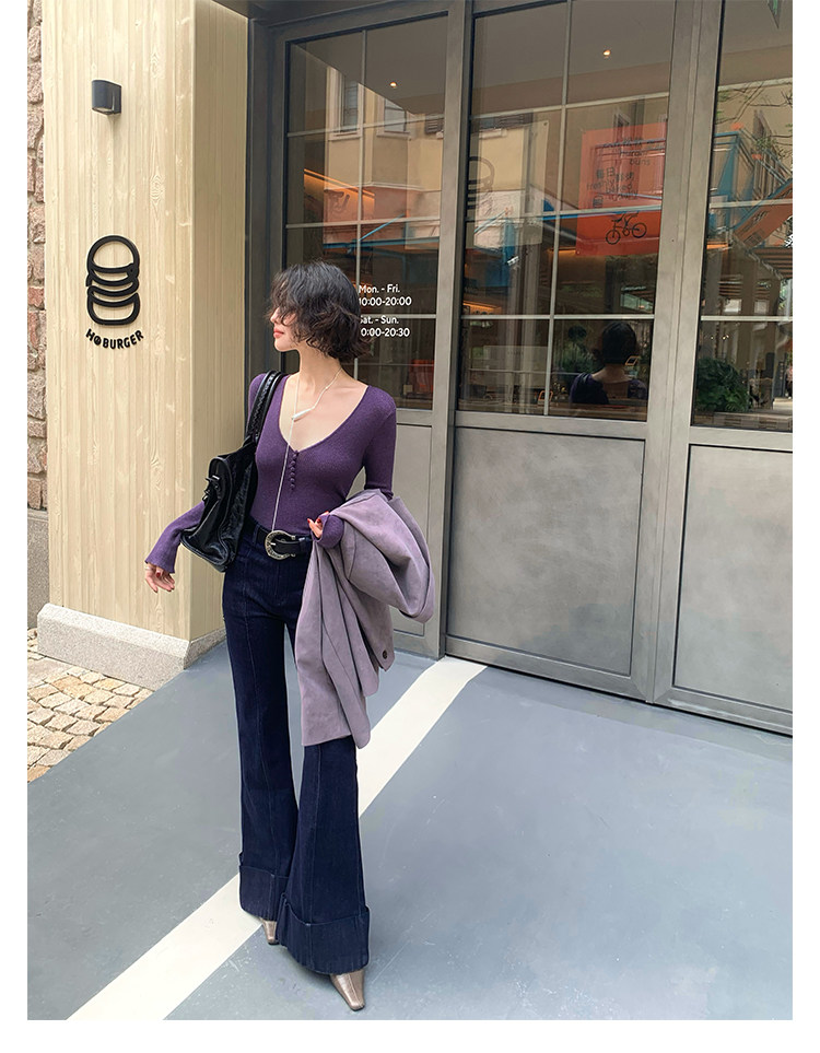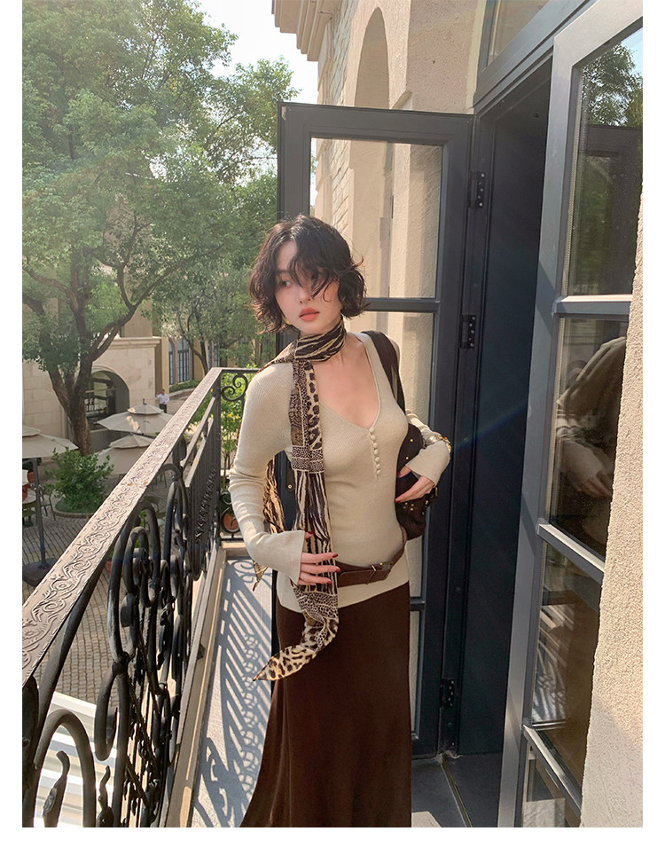 Wine Afternoon Hong Kong Retro V-Neck Slim Knit