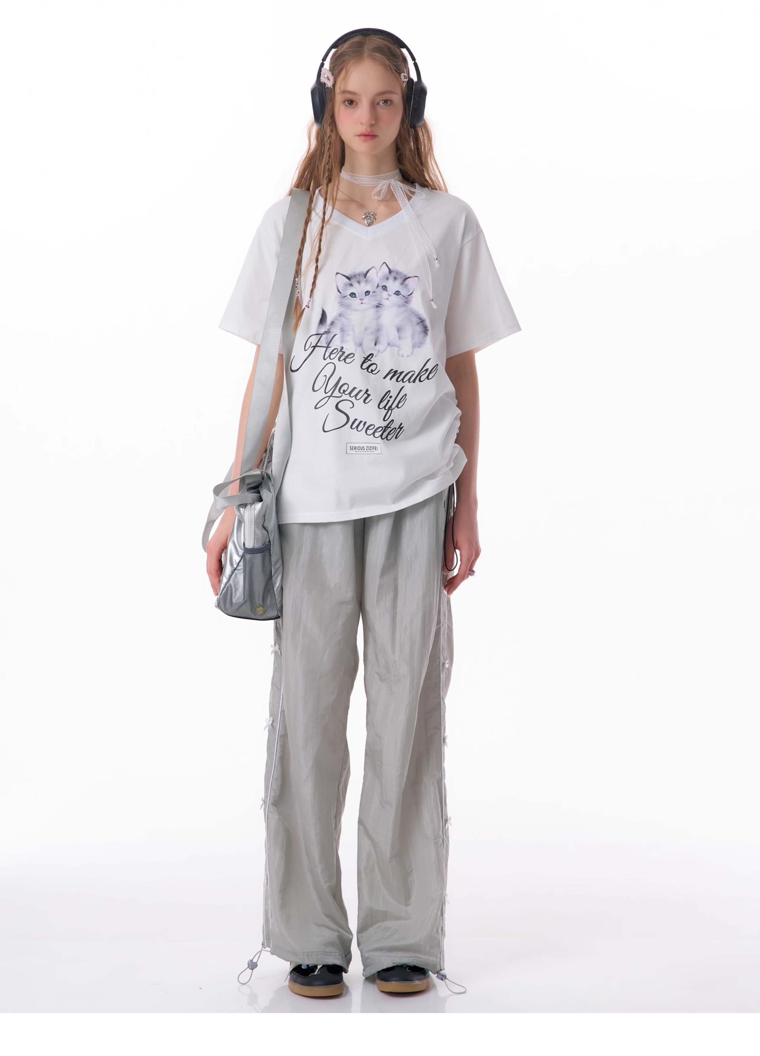 Pantalon de sport à séchage rapide | Coupe slim avec nœud et jambes larges pour femme