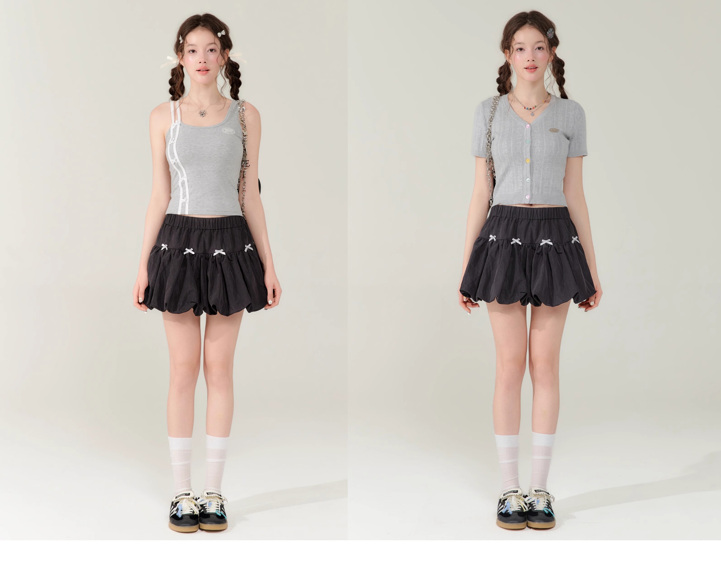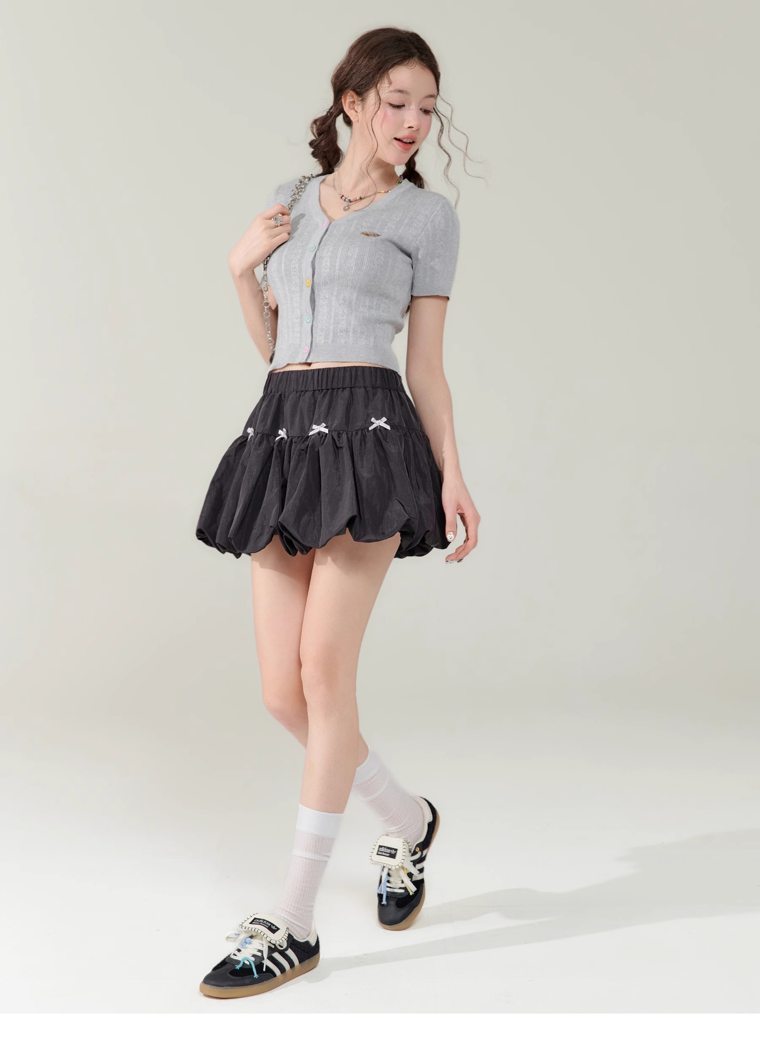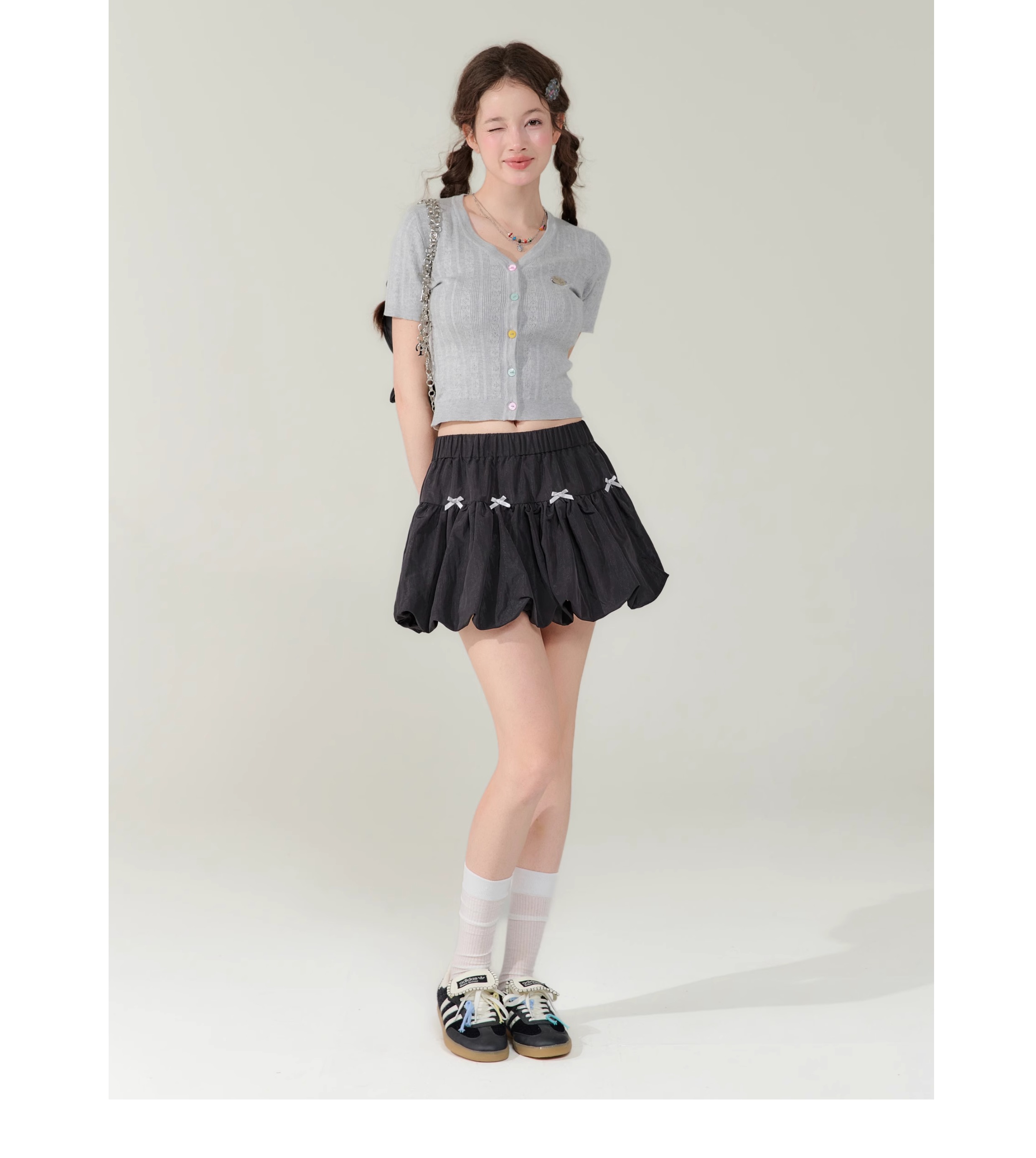 Jupe trapèze en dentelle à nœud | Rétro taille haute, taille élastique, design d'été