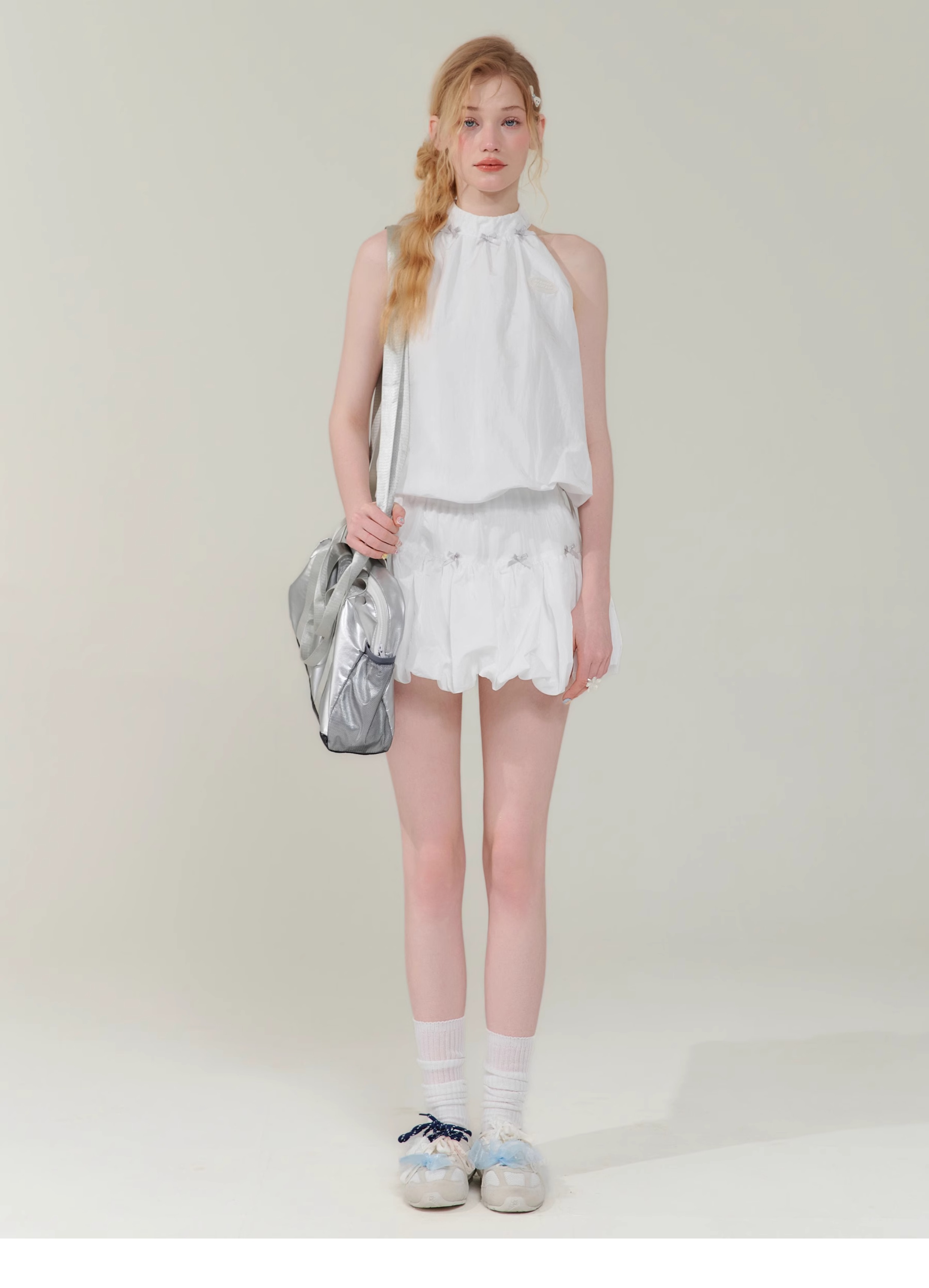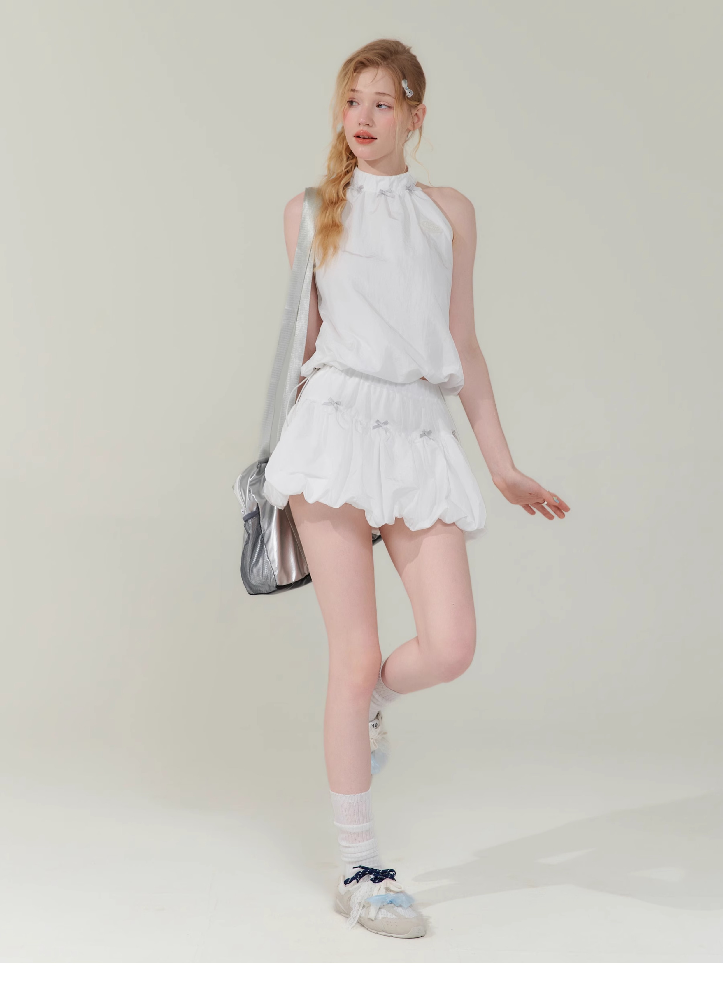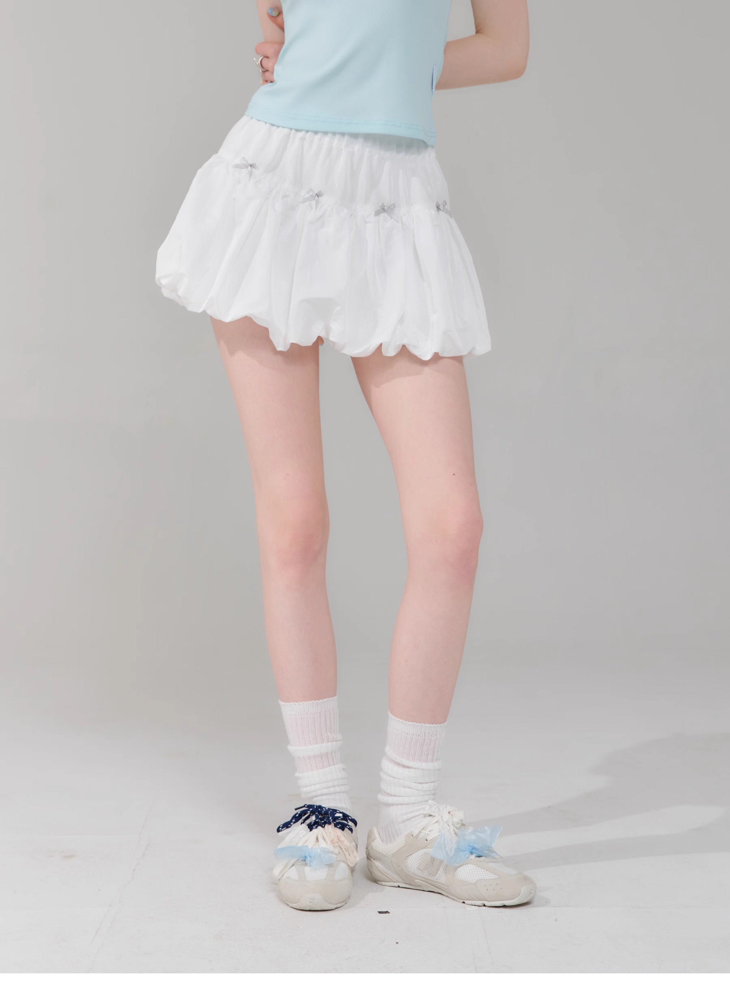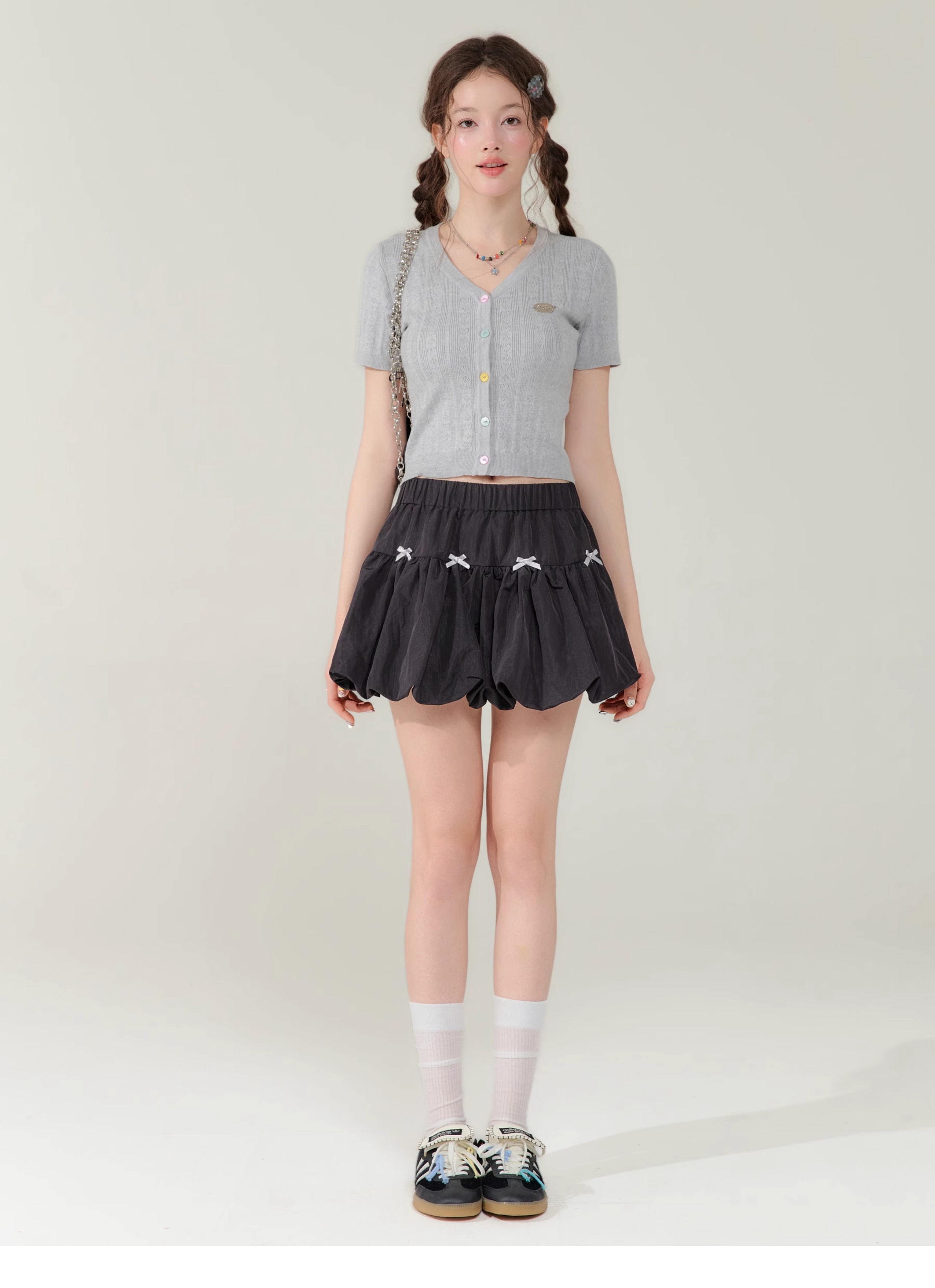 Jupe trapèze en dentelle à nœud | Rétro taille haute, taille élastique, design d'été