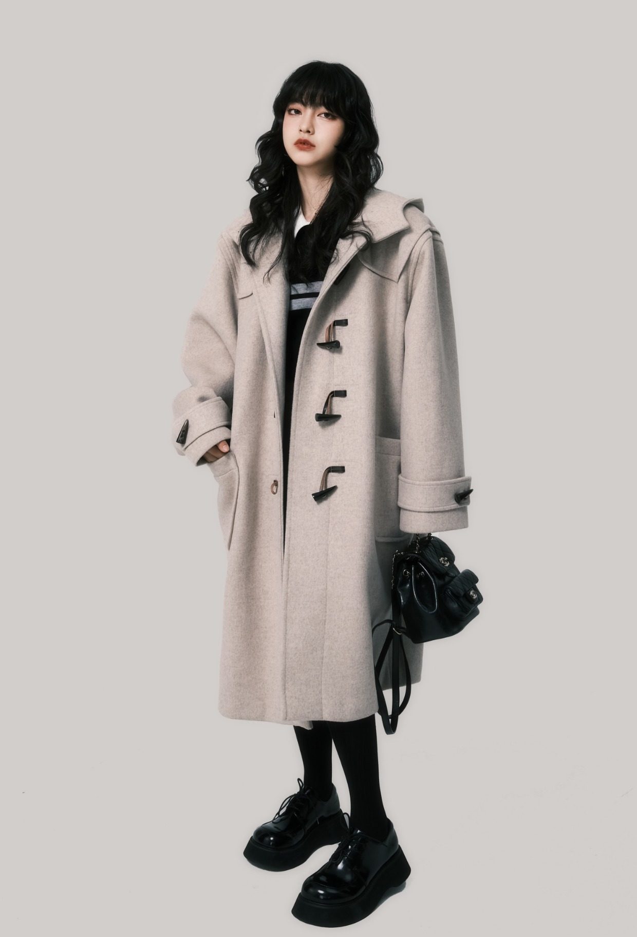 Cappotto con bottoni in corno di avena tutta lana - Pesante