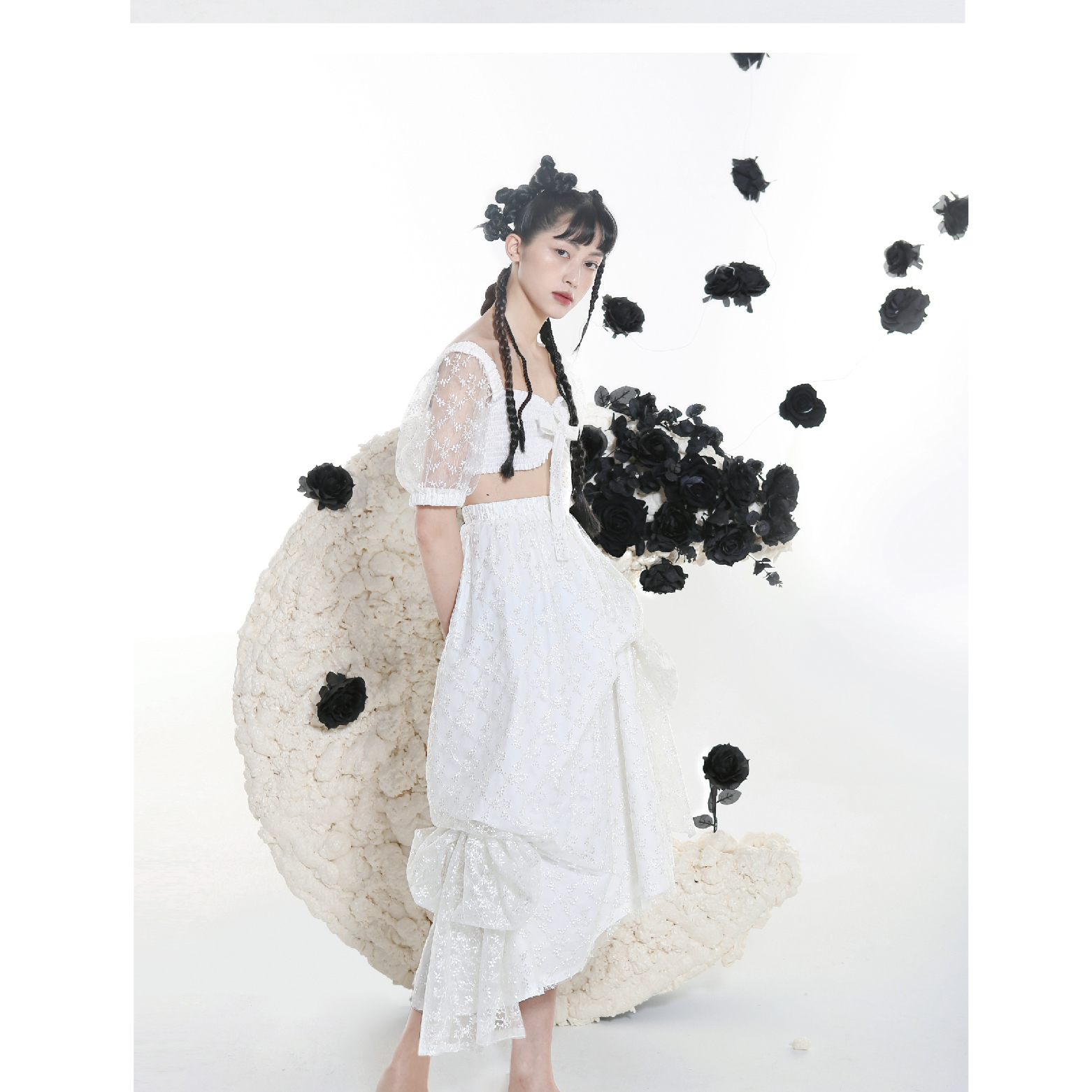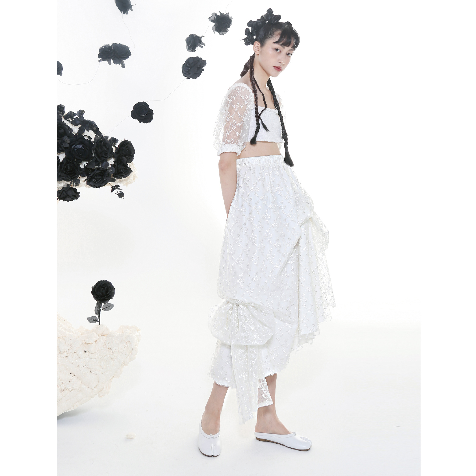 Original Lace Embroidered Bra Dress with Two Half Skirts