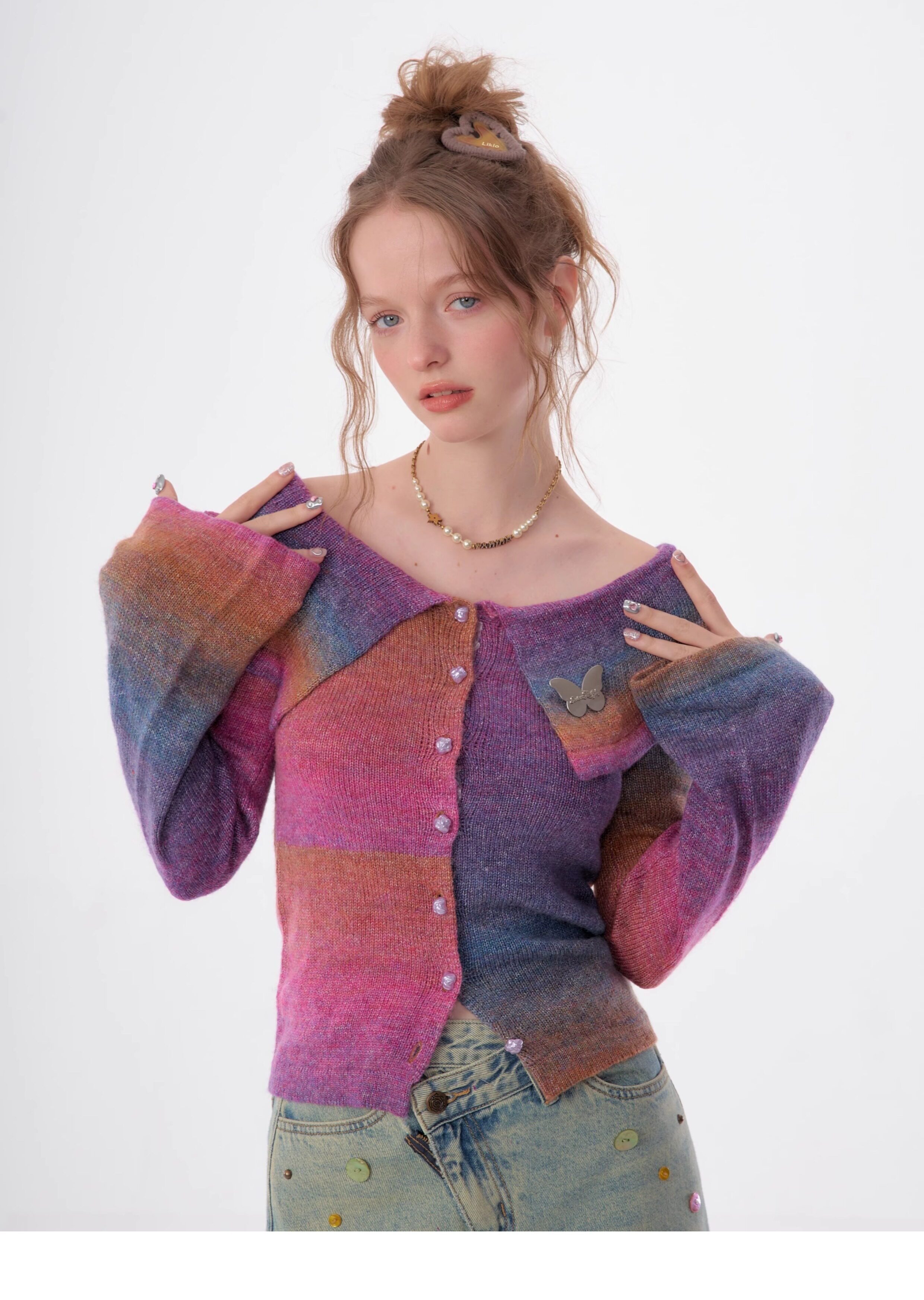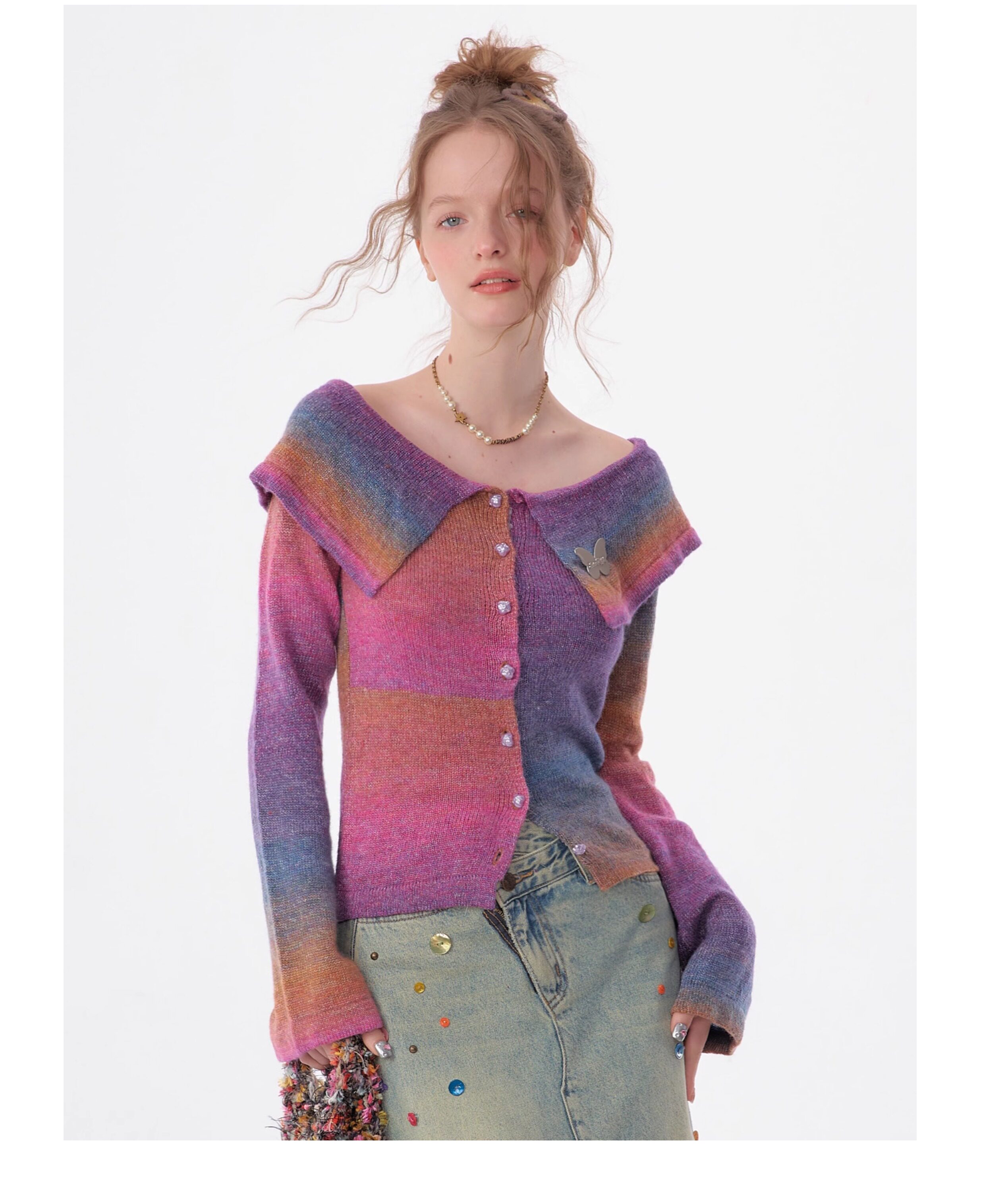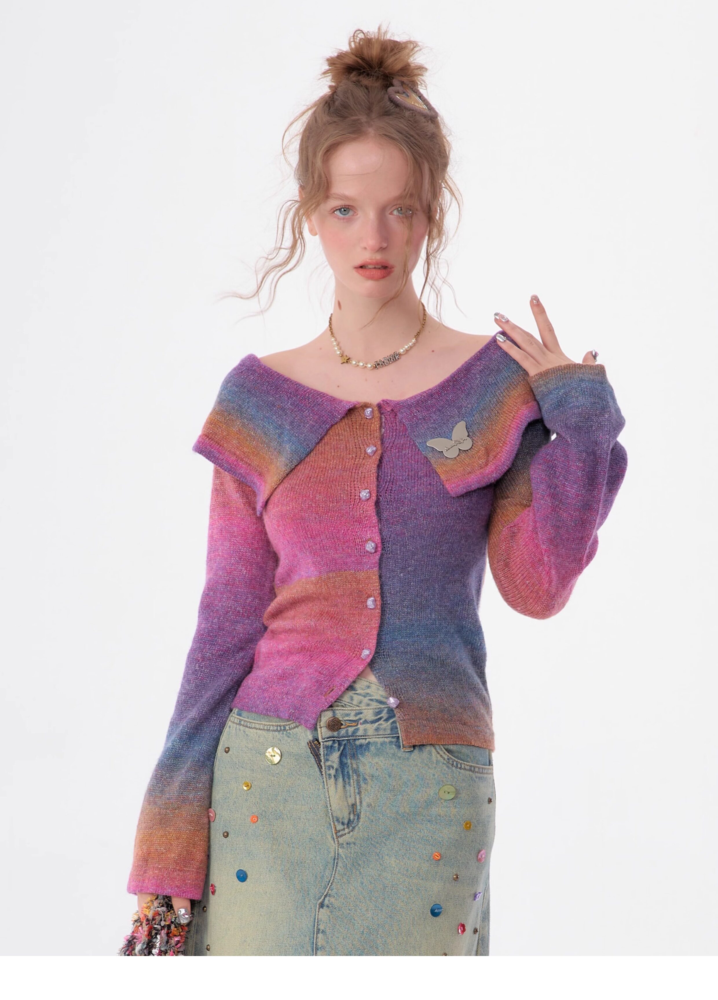 Top in maglia polo con una spalla |. Design retrò con maniche a tromba e spalle scoperte per l'autunno/inverno