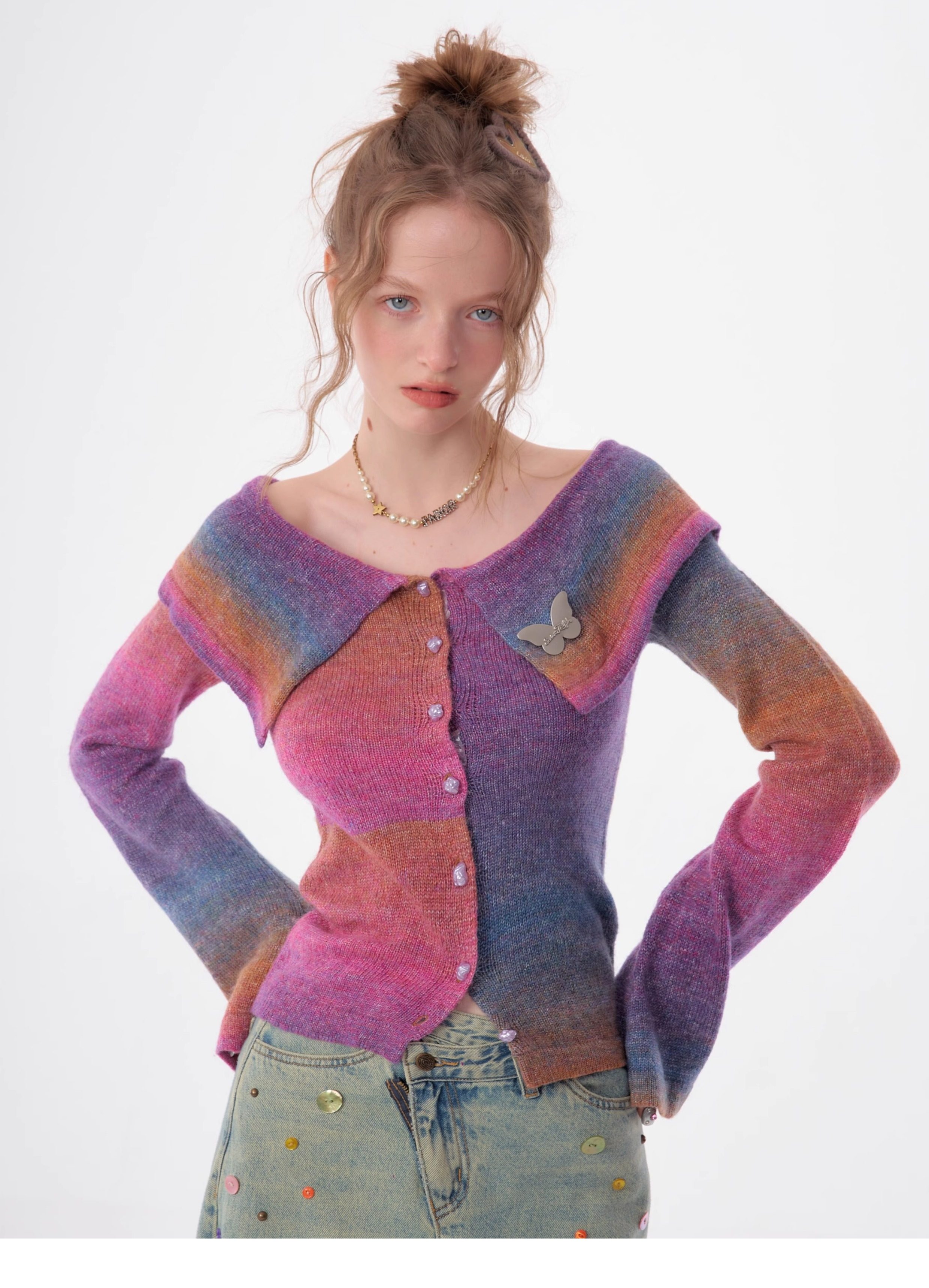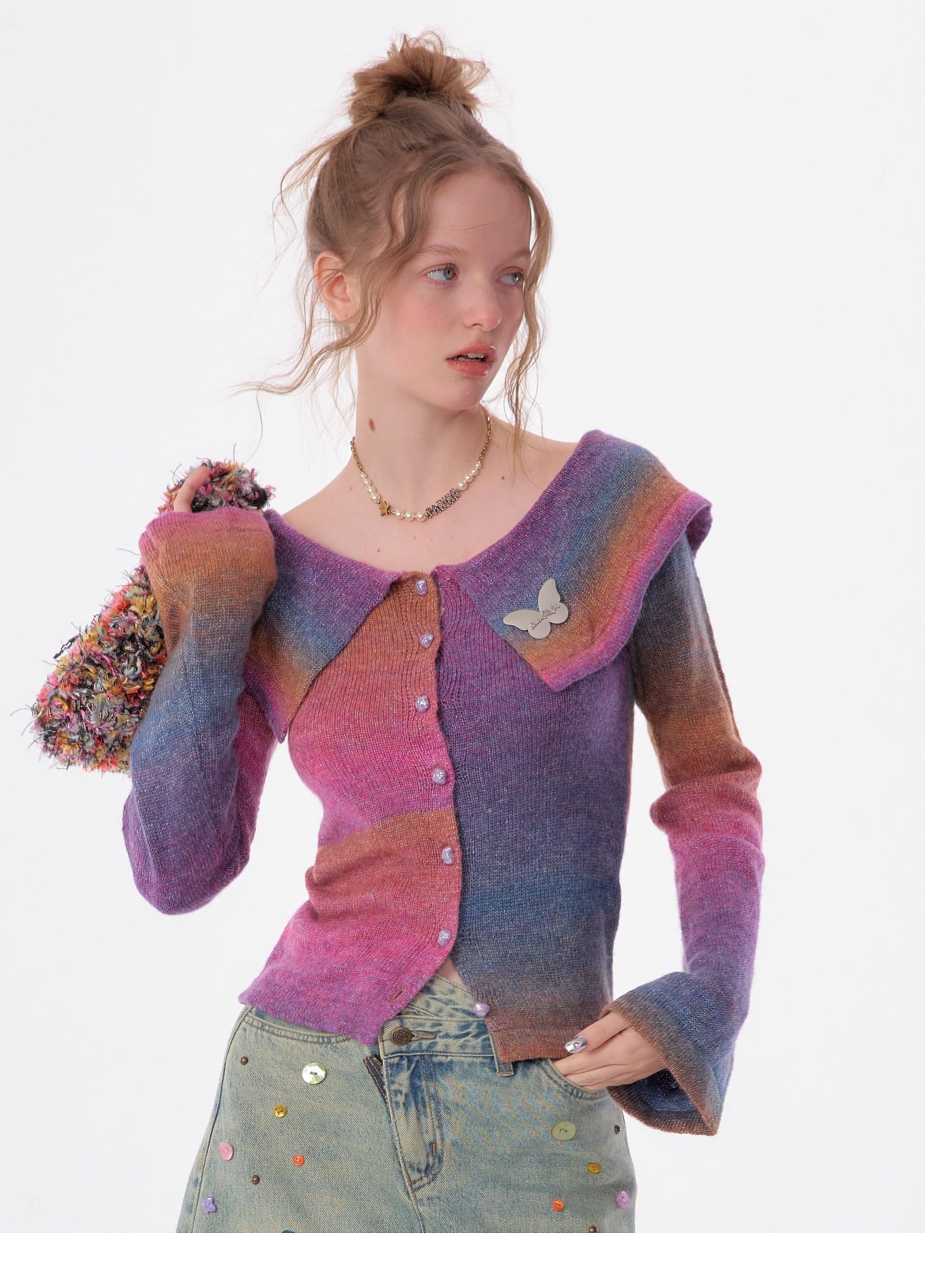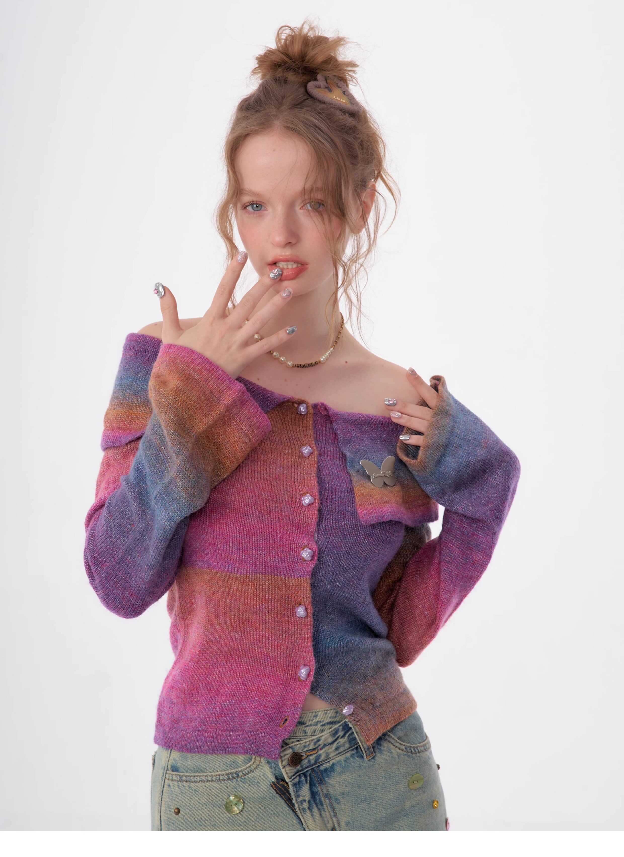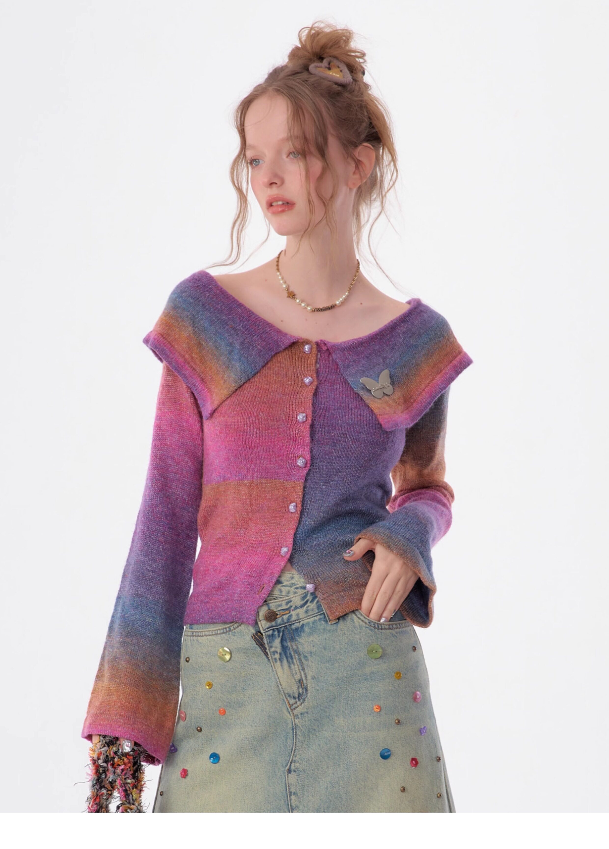 Top in maglia polo con una spalla |. Design retrò con maniche a tromba e spalle scoperte per l'autunno/inverno