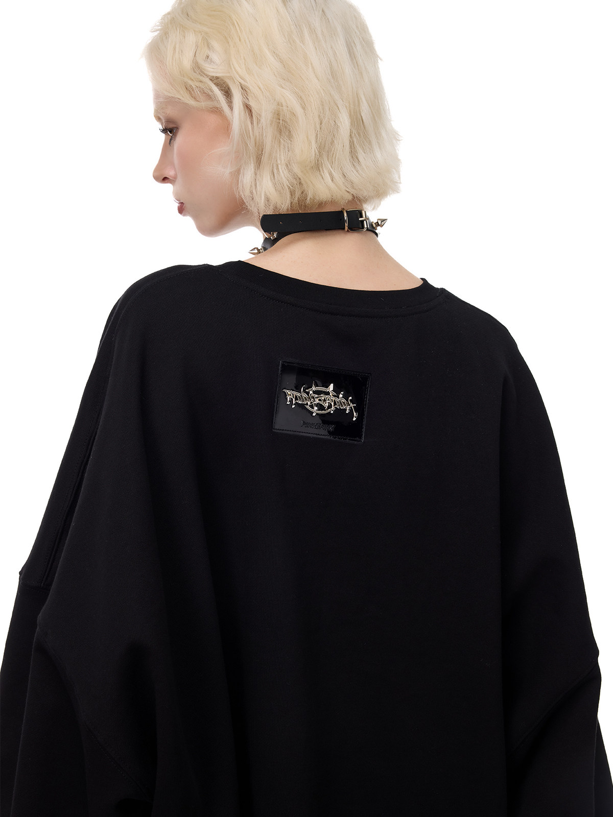 Cat-Themed Black Metal Thorn Embroidered Y2K Sweatshirt