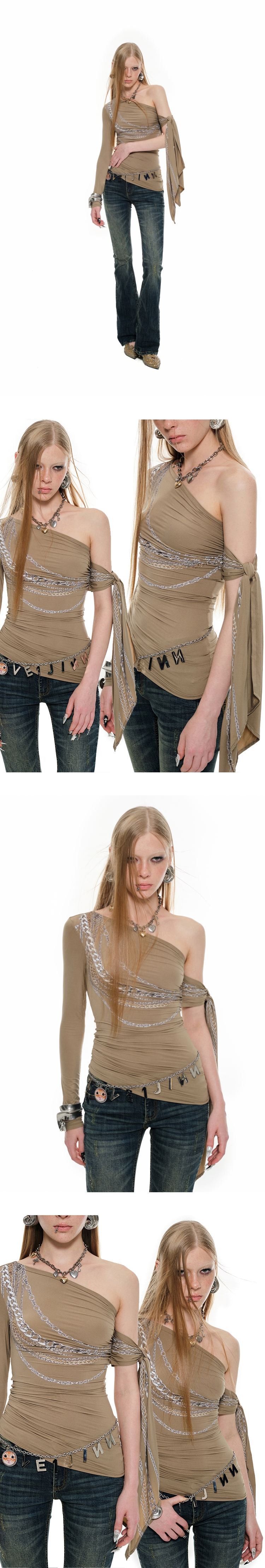 Chain Print Off-Shoulder Streamer Vest – French Style Slim Fit Tee