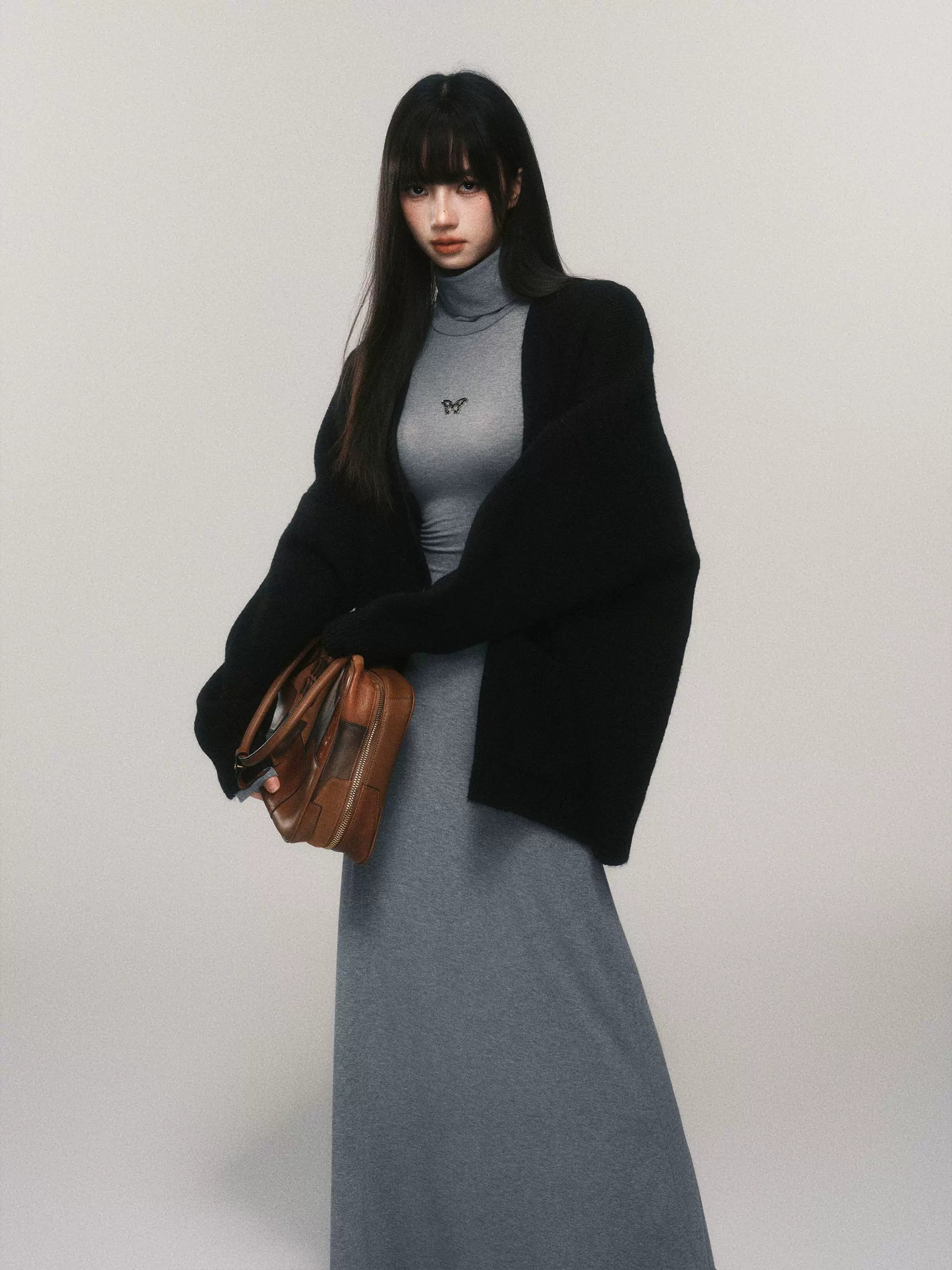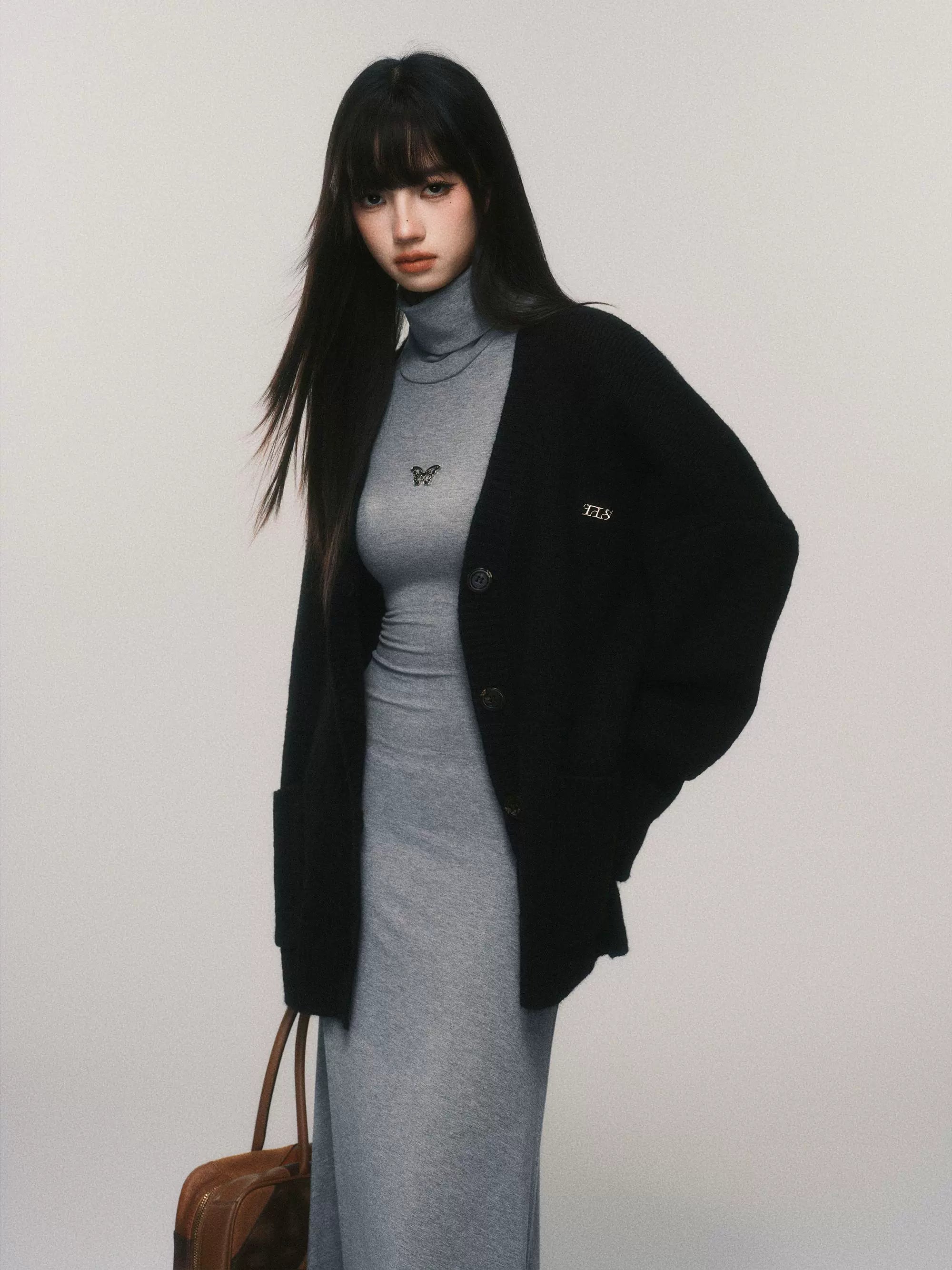 Premium Black Wool Knit Cardigan Sweater Jacket (Casual Fit)
