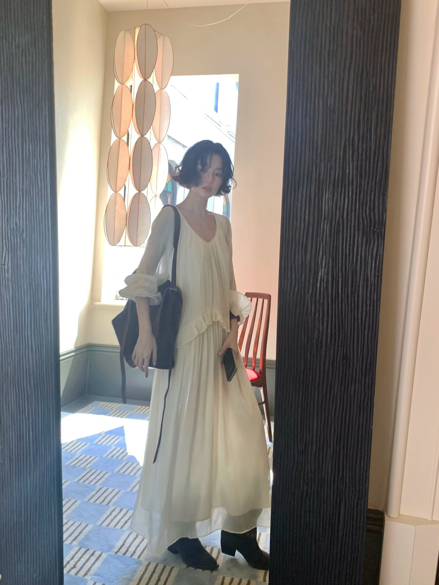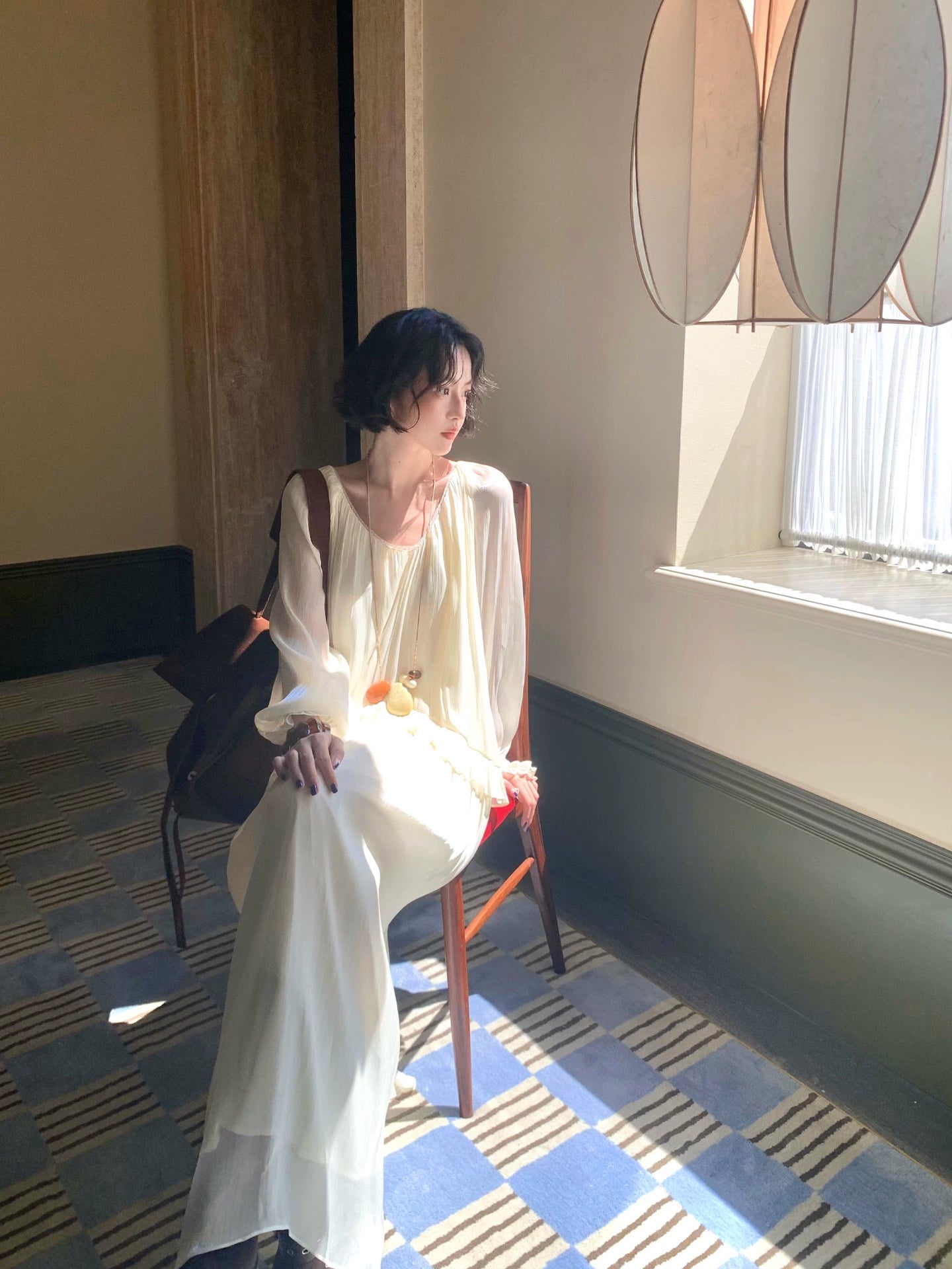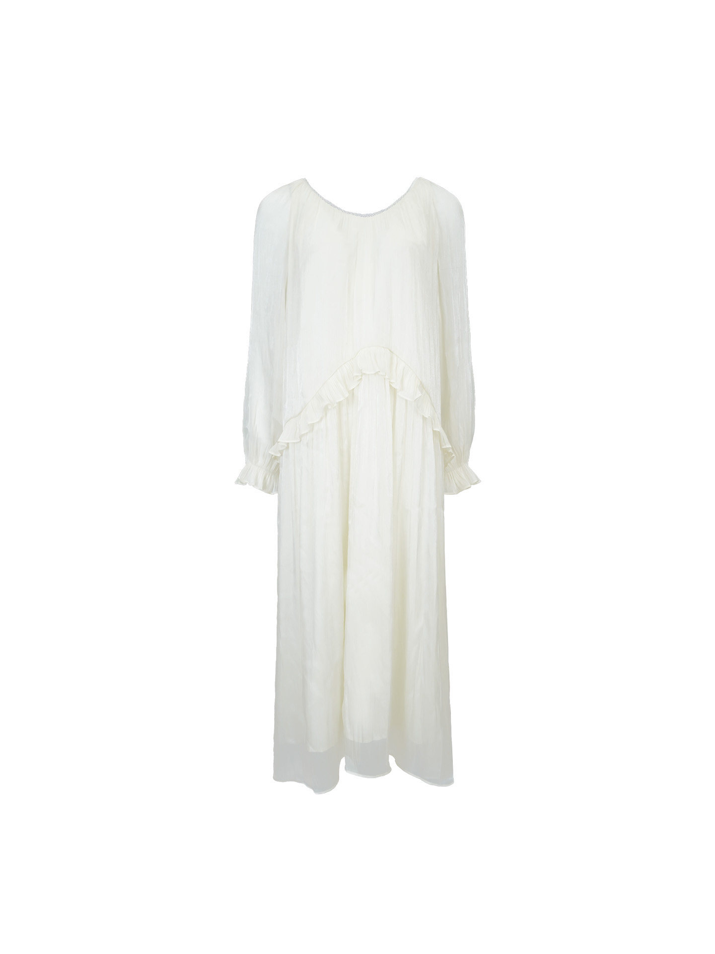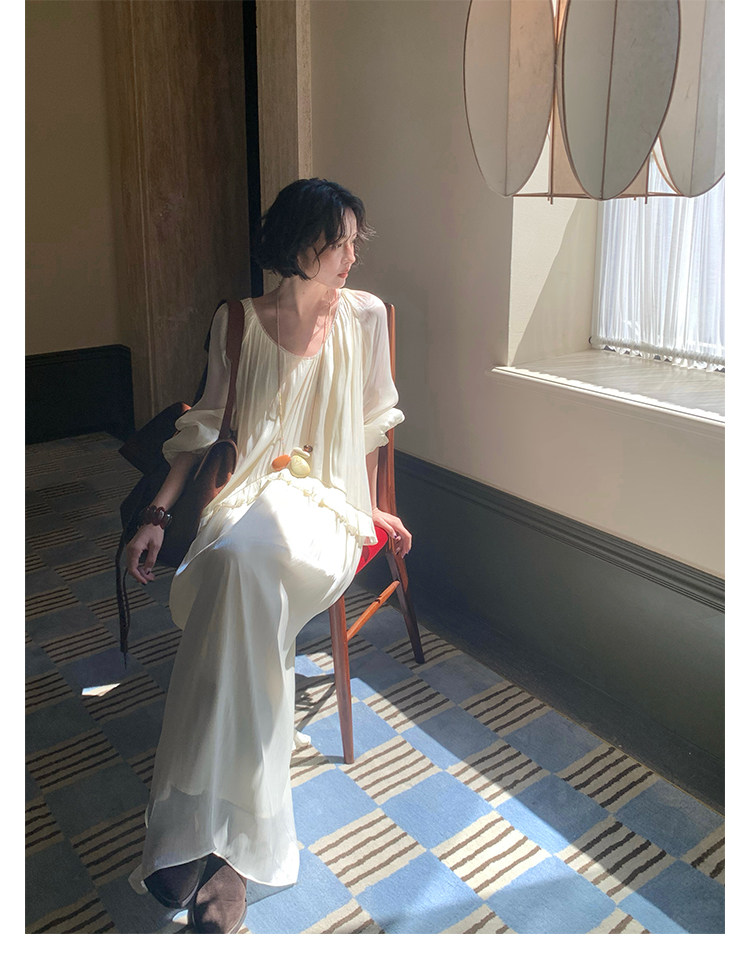 French Retro Pleated Ruffle V-Neck Long Sleeve Dress – Elegant Autumn Style