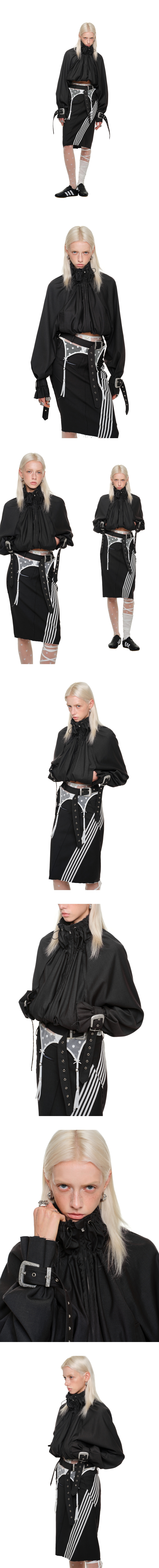 Grey Cropped Balloon Jacket – Waistless Crew Neck Jacket for Spring and Autumn